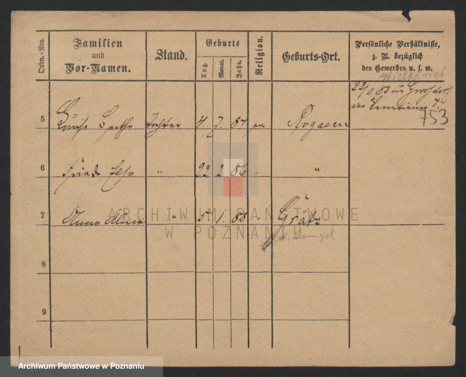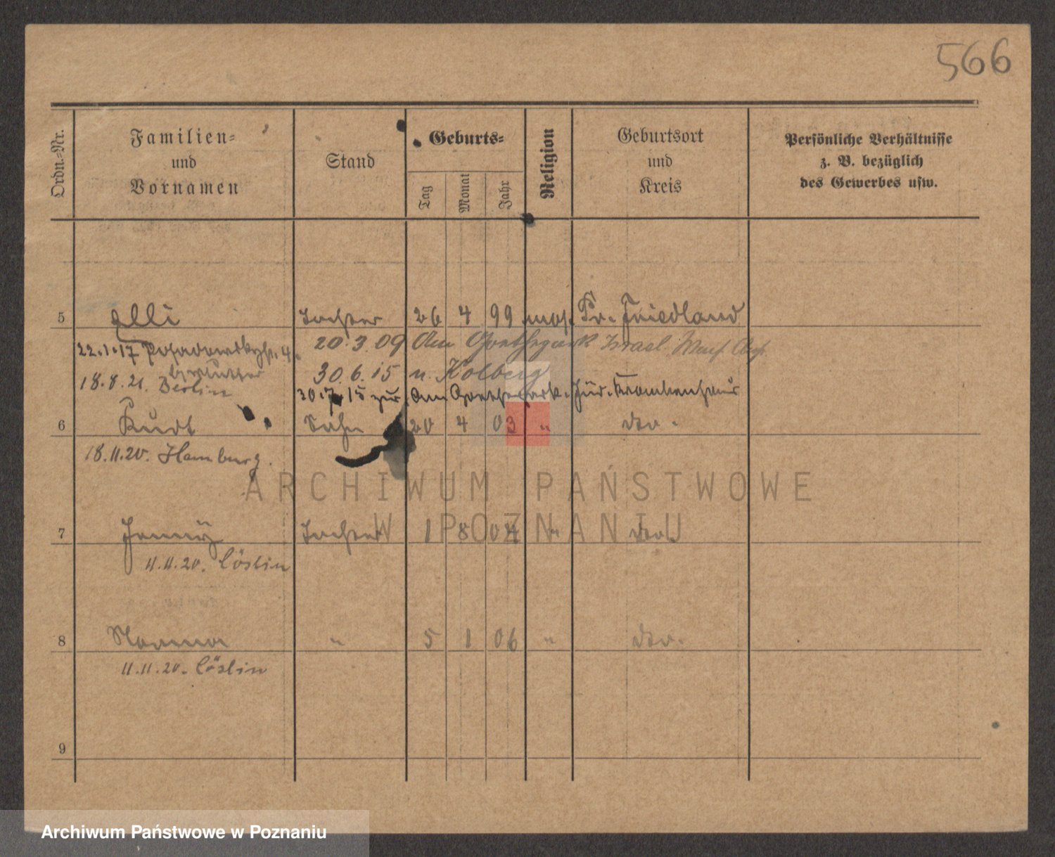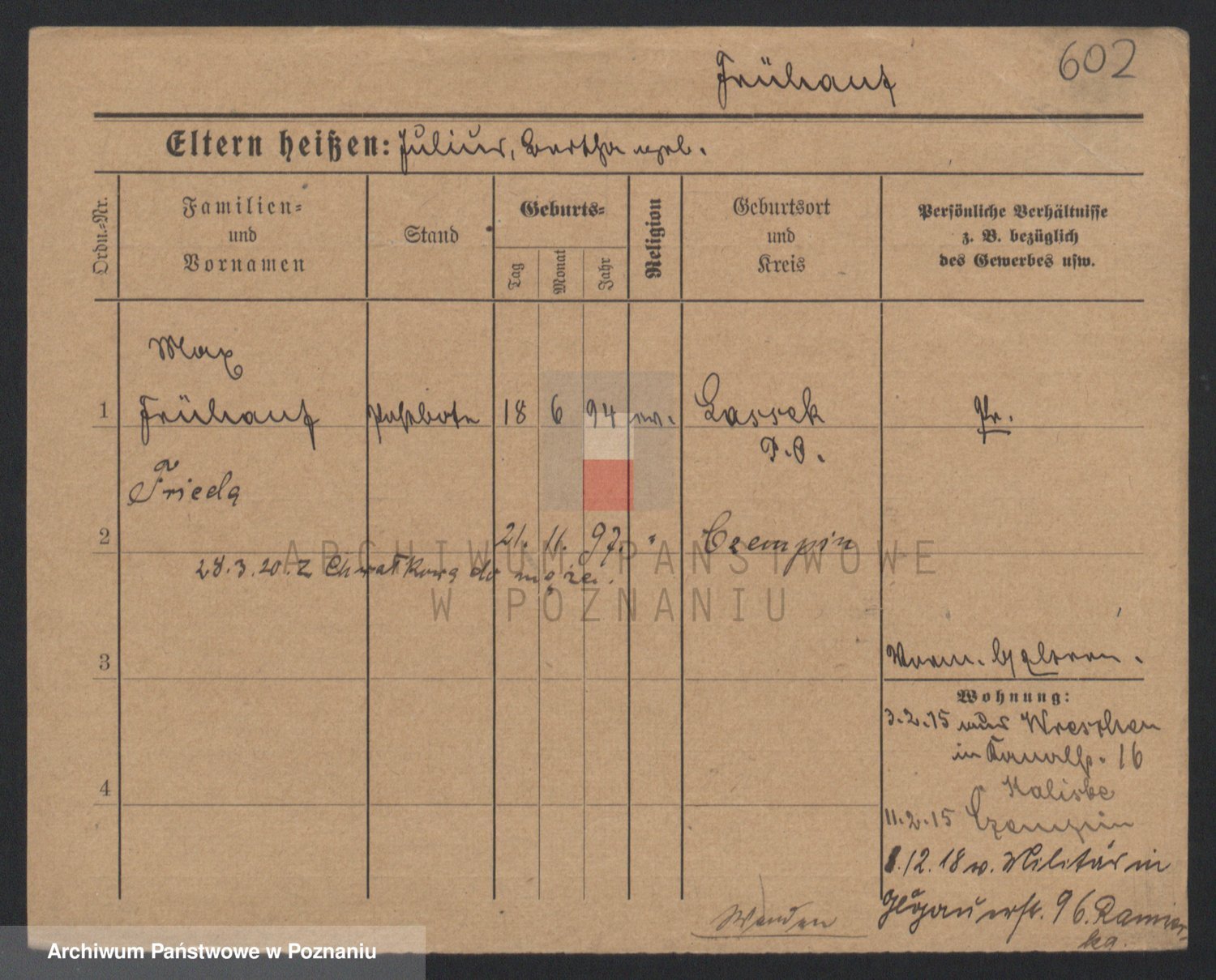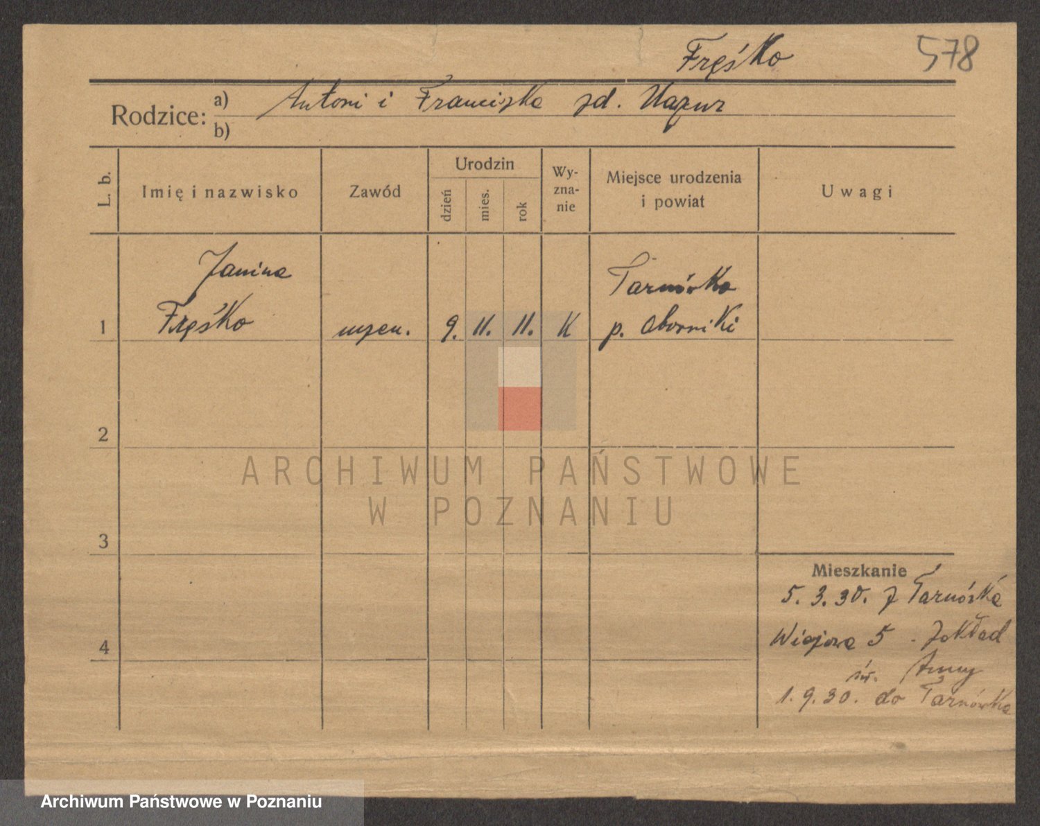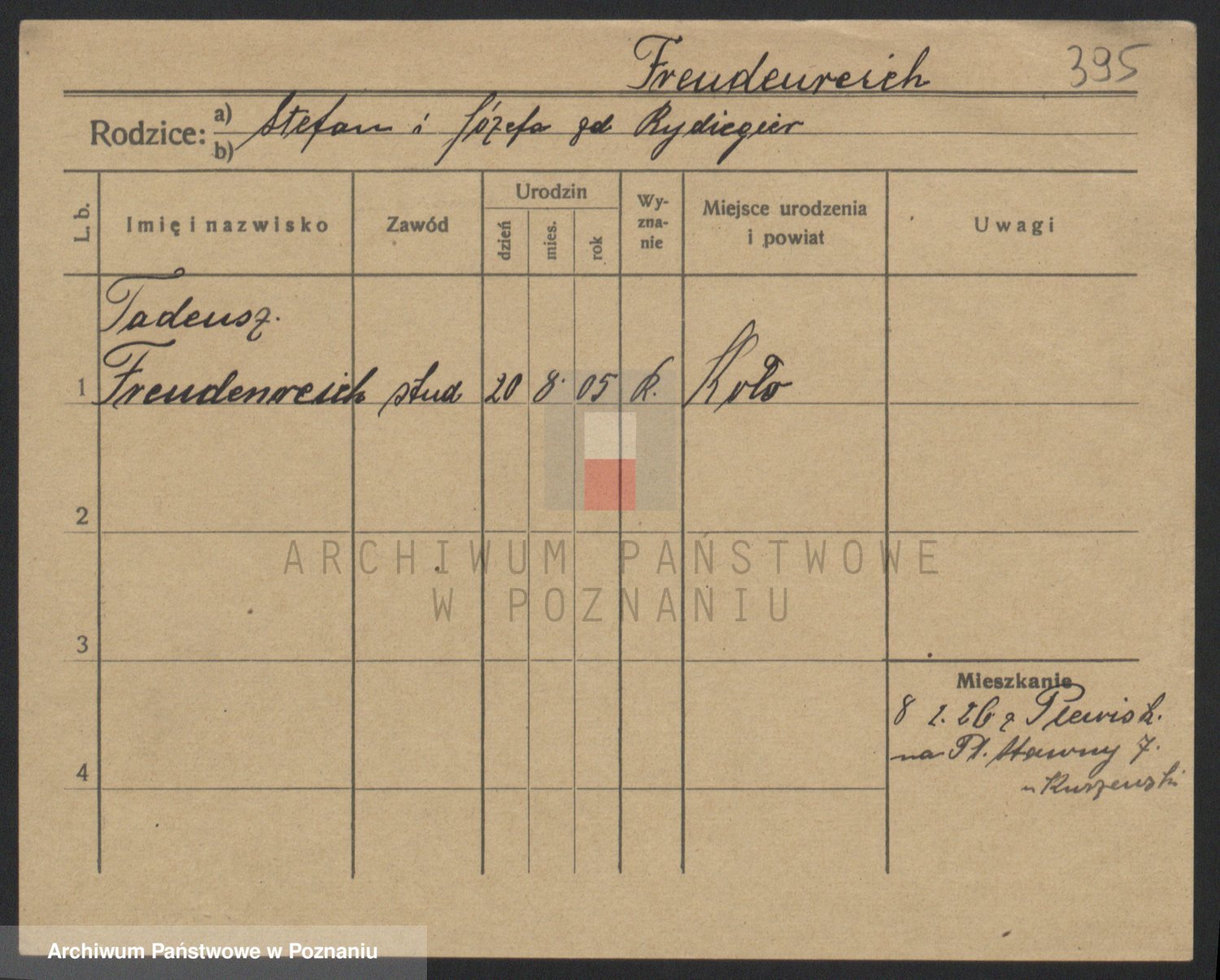 Podgląd karty osobowej dostępny jest po kliknięciu na nazwisko lub ikonkę karty. Można dokonywać powiększenia (ikony na górze) lub przechodzić między kolejnymi skanami (strzałki po bokach).