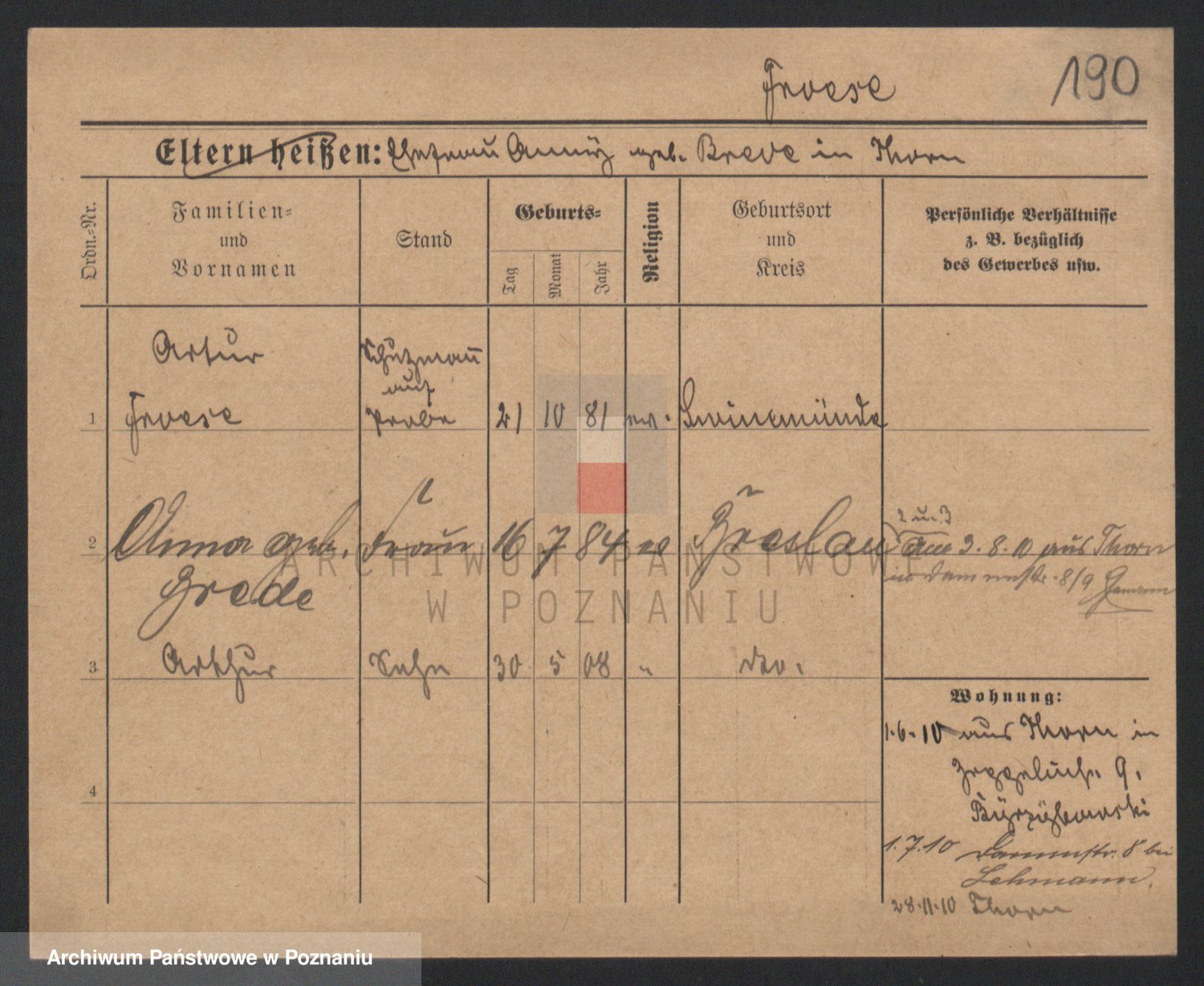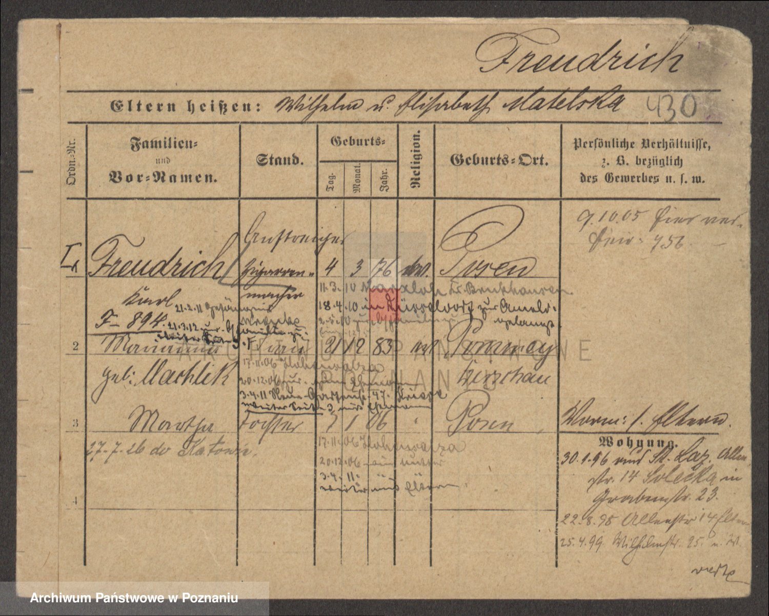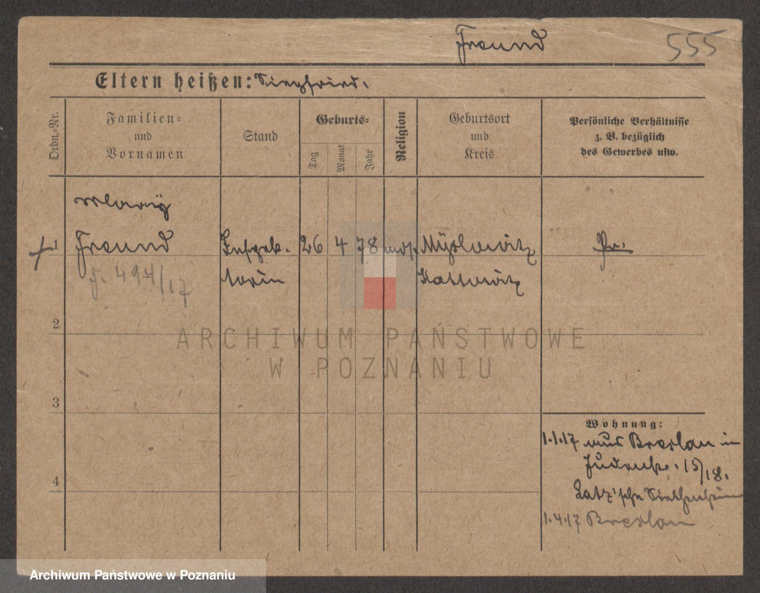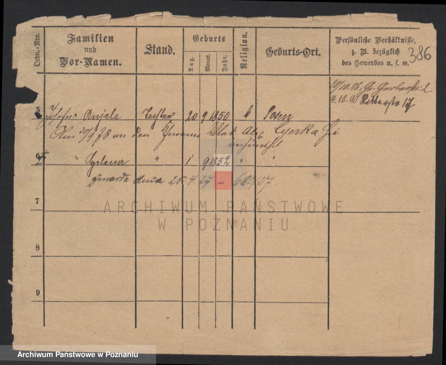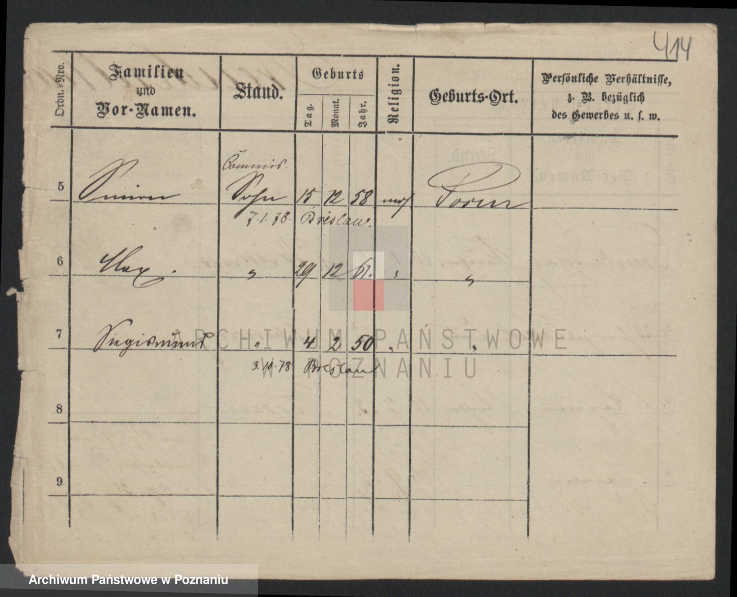 Podgląd karty osobowej dostępny jest po kliknięciu na nazwisko lub ikonkę karty. Można dokonywać powiększenia (ikony na górze) lub przechodzić między kolejnymi skanami (strzałki po bokach).