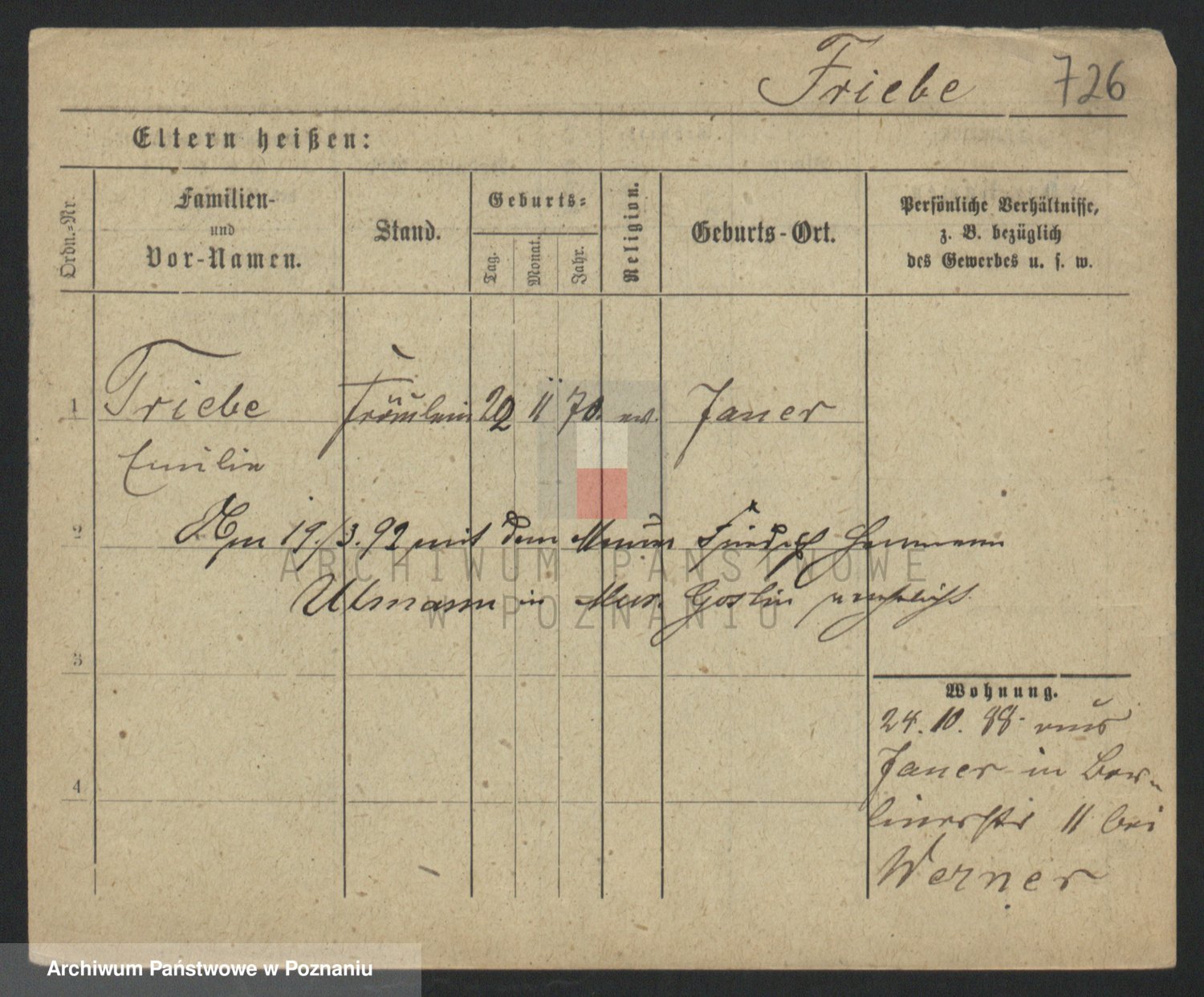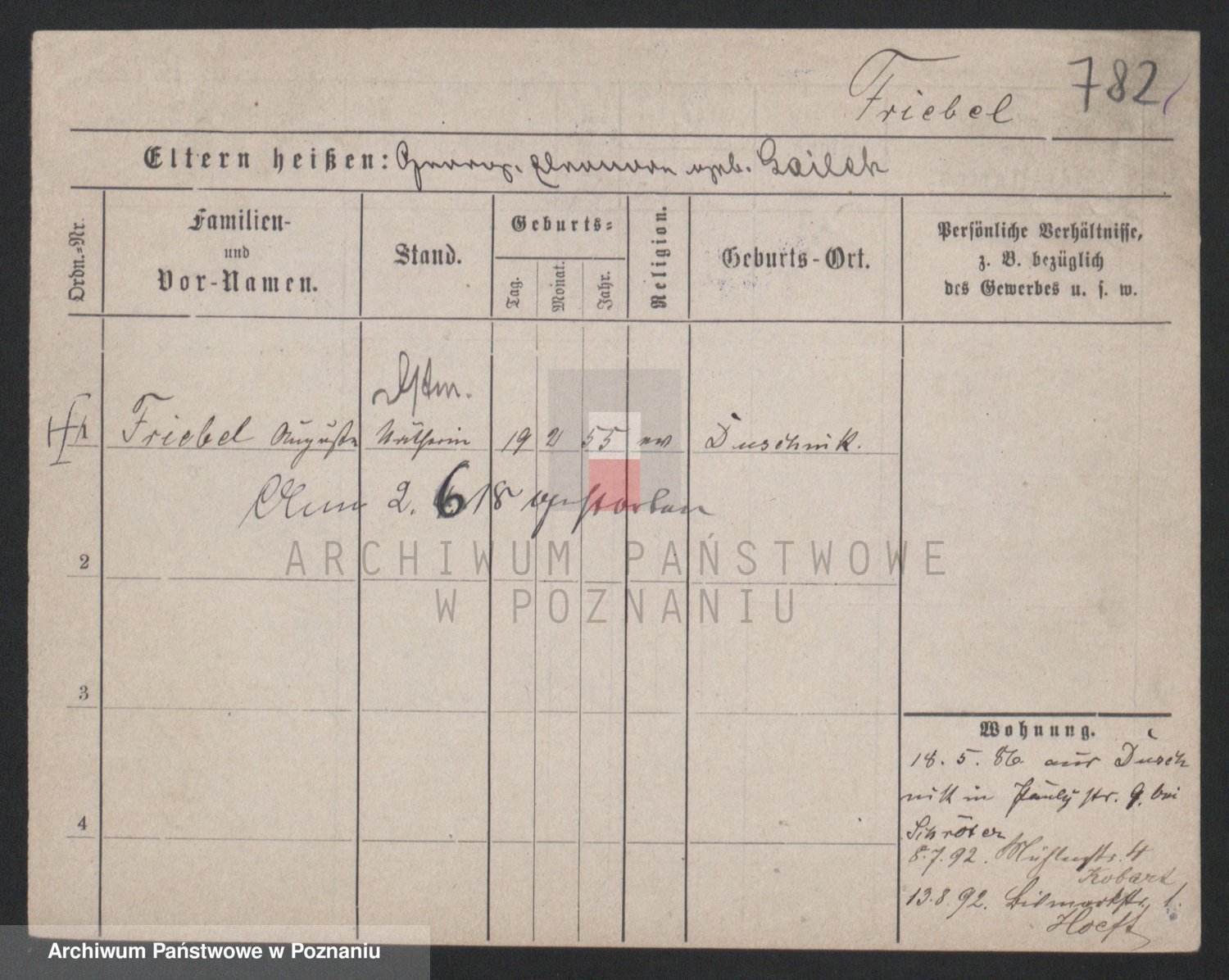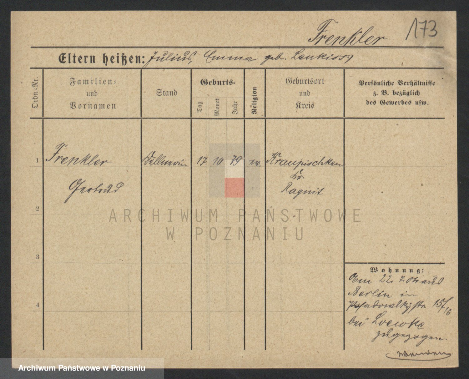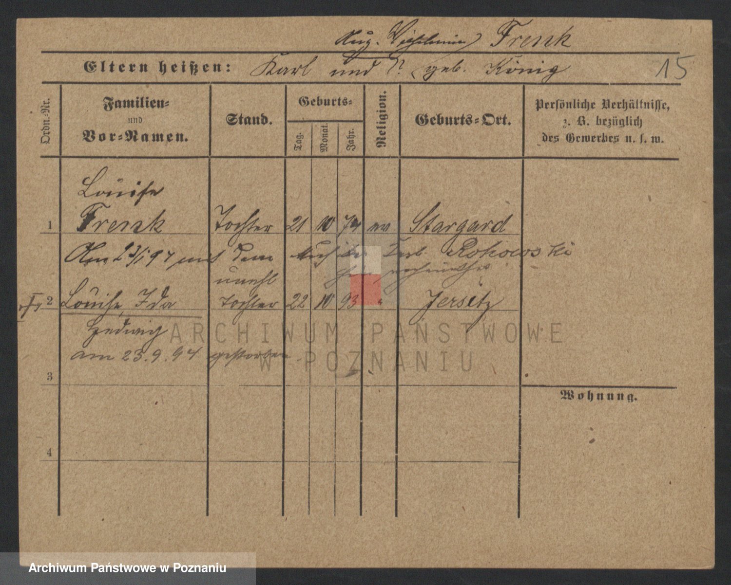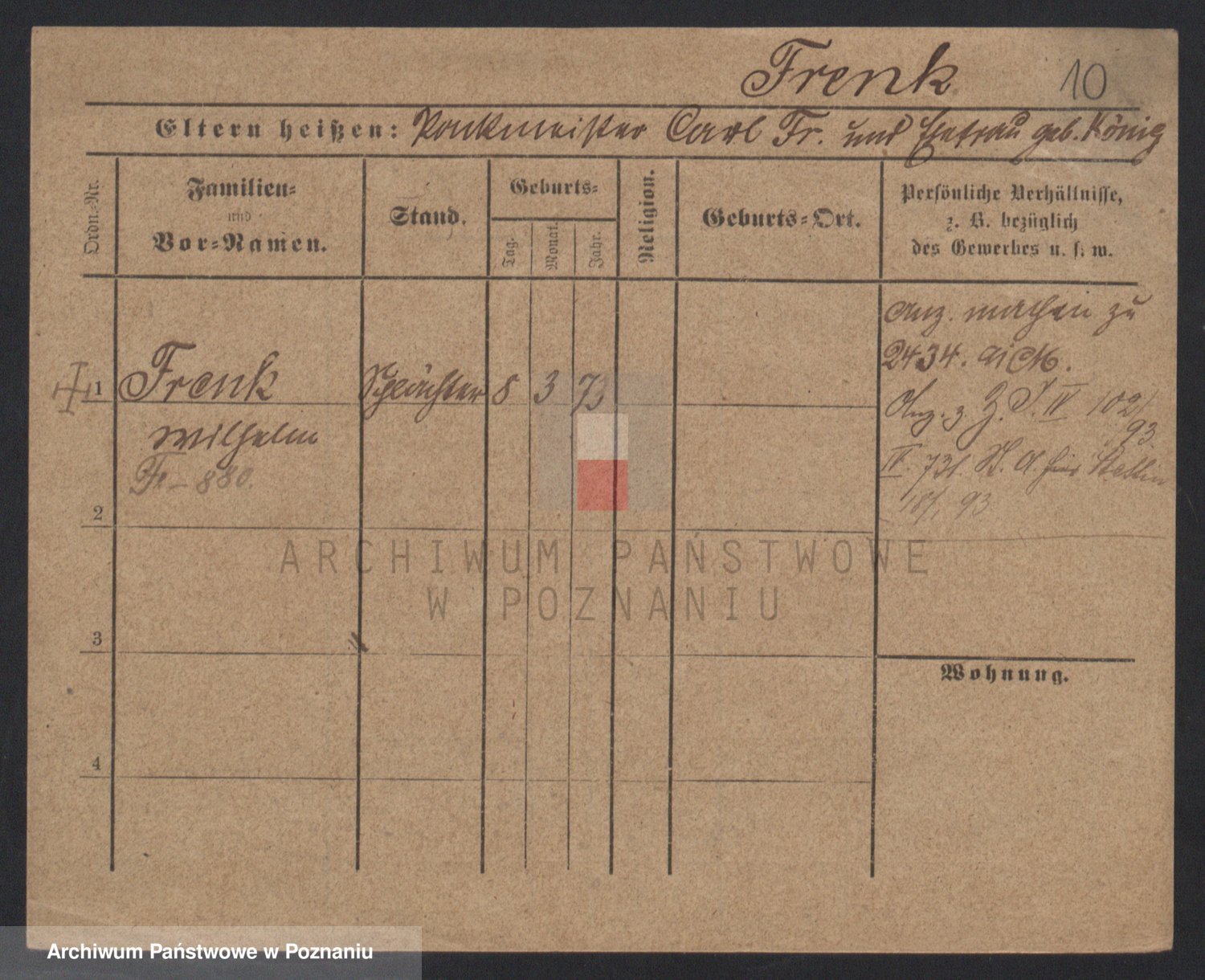 Frenk z d. König, Auguste Wilhelmine