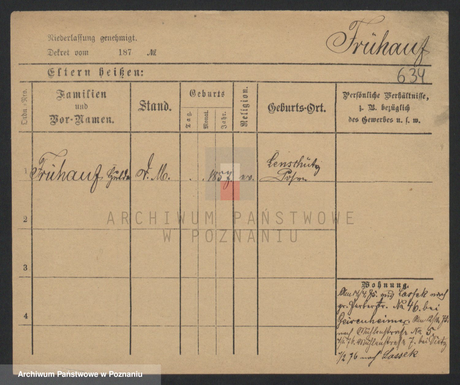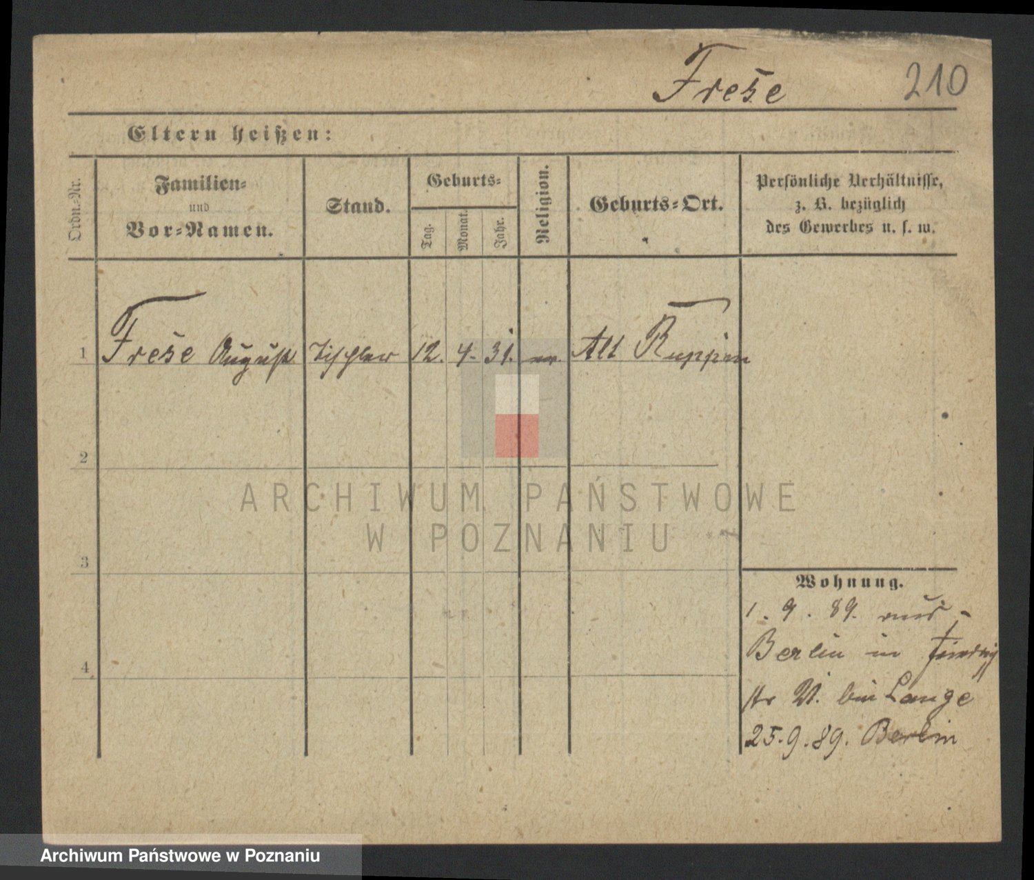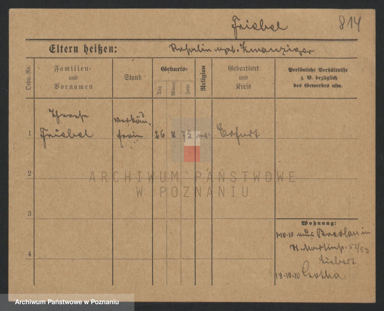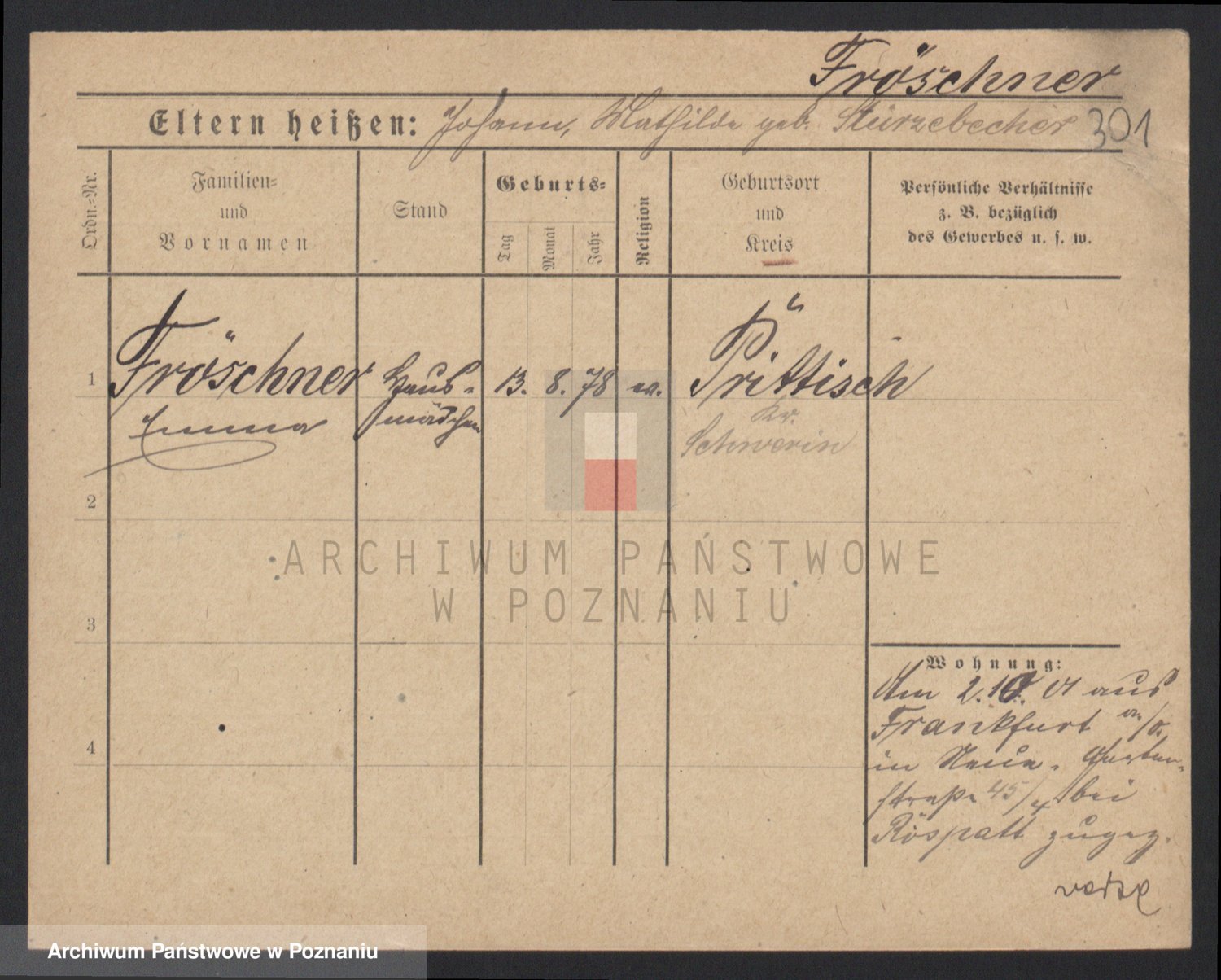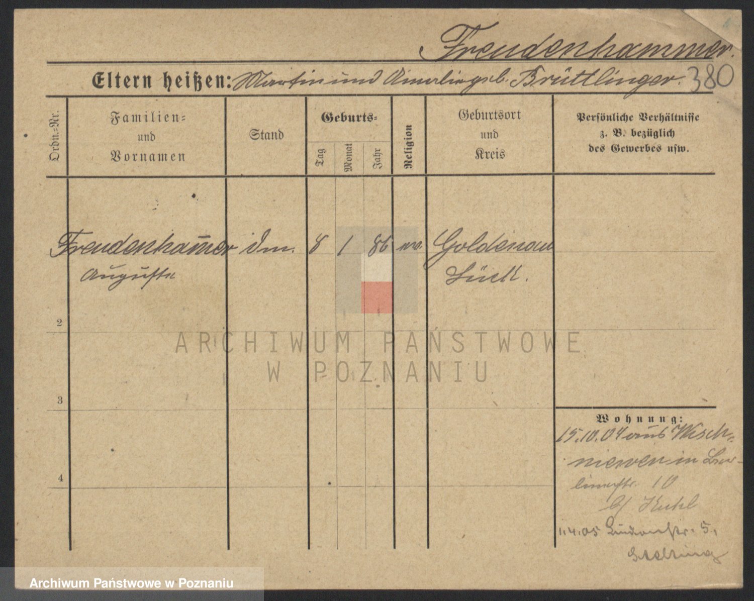 Frenk z d. König, Auguste Wilhelmine