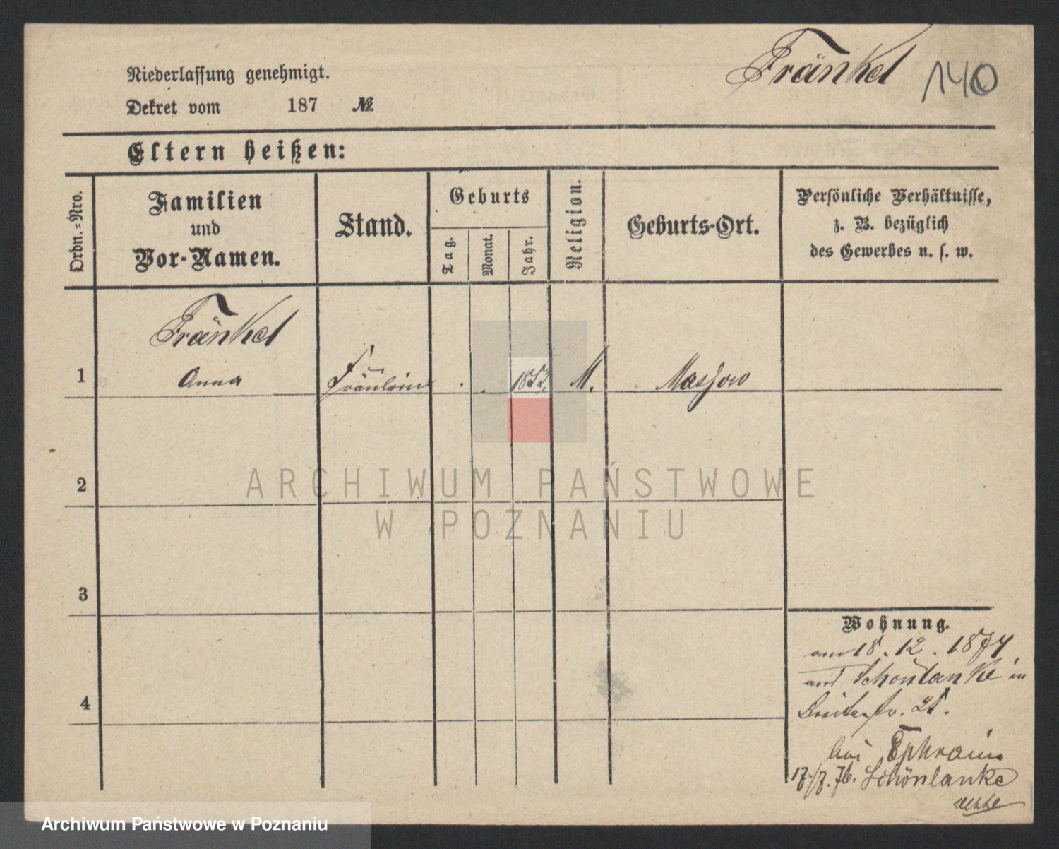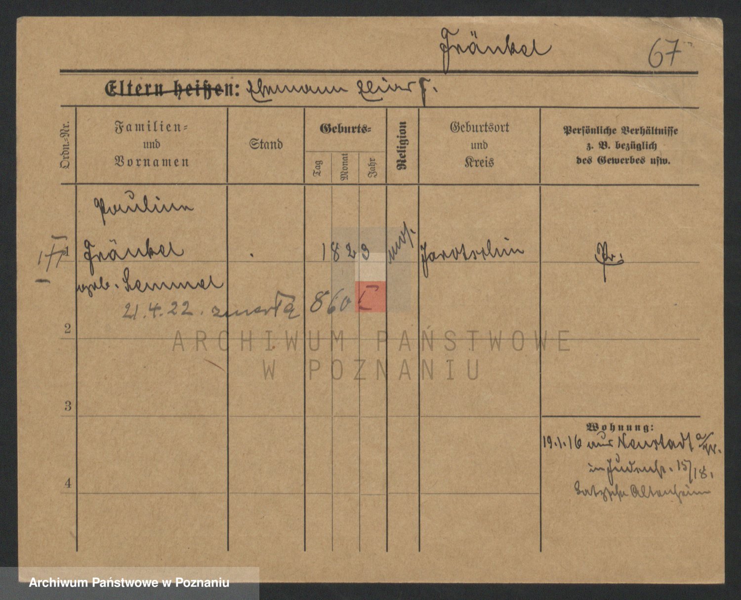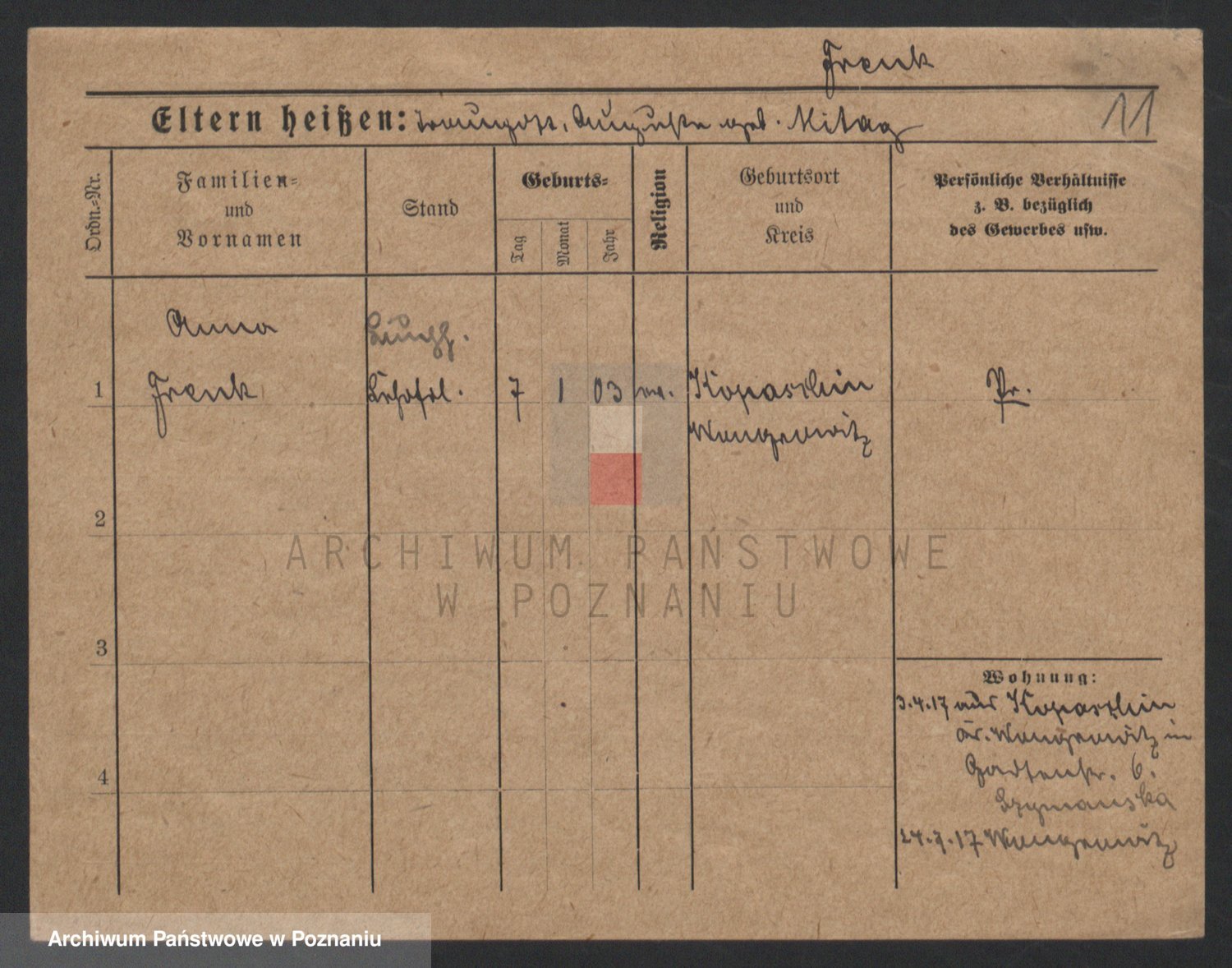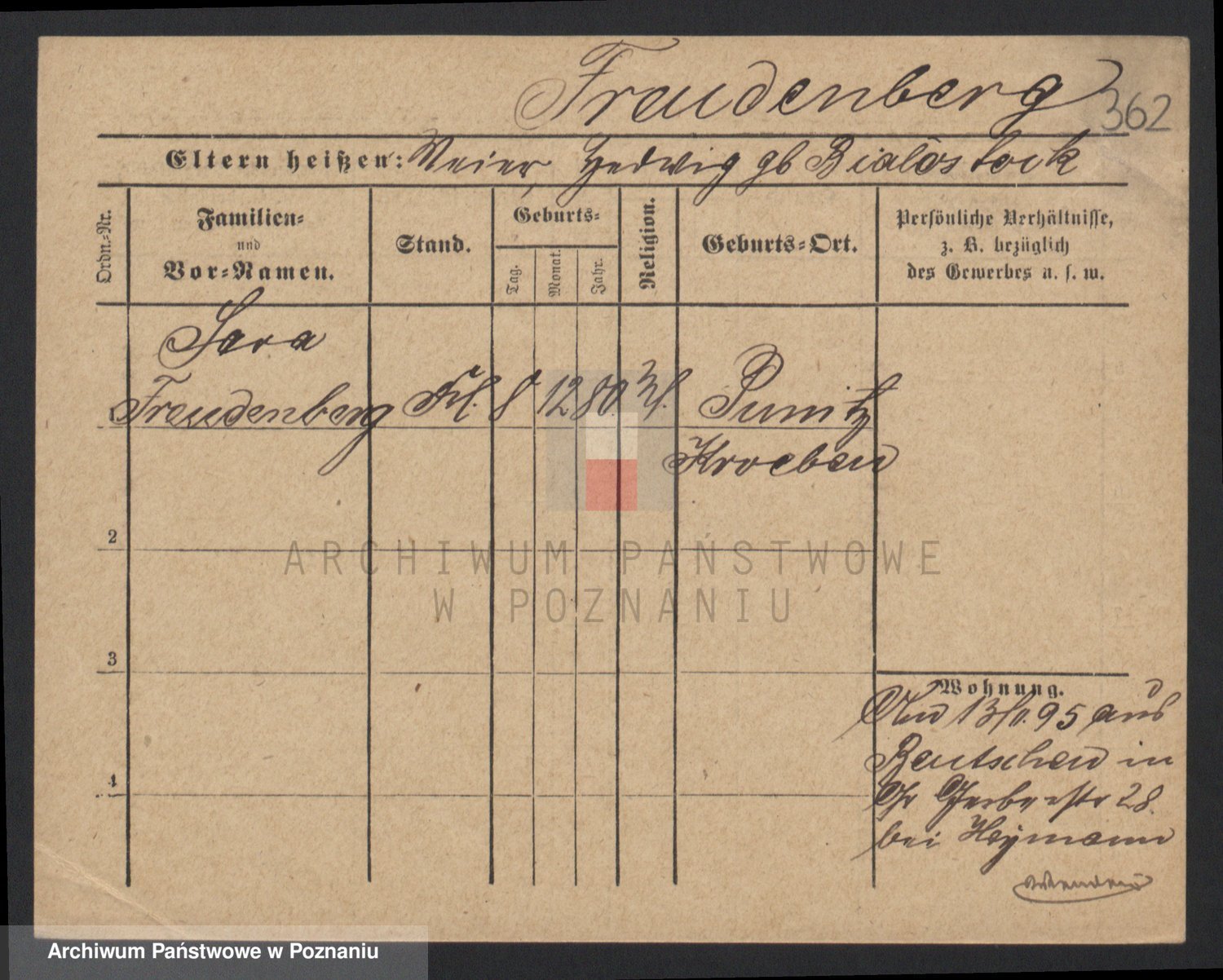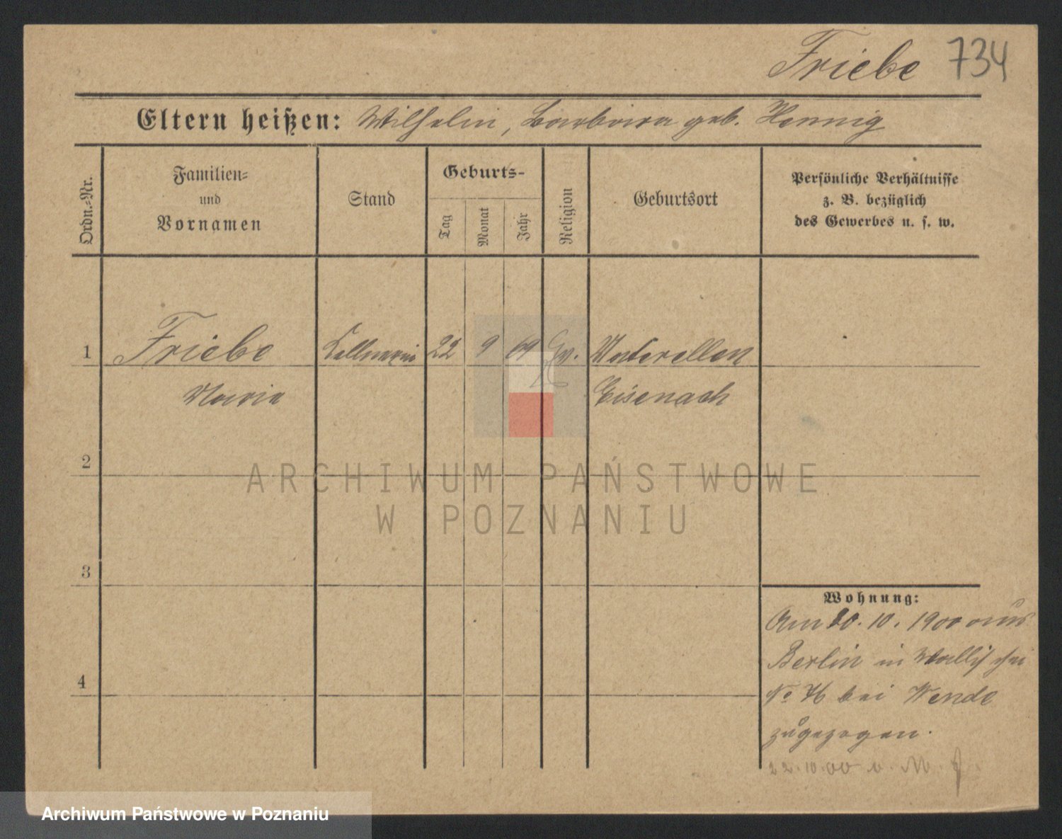 Frenk z d. König, Auguste Wilhelmine