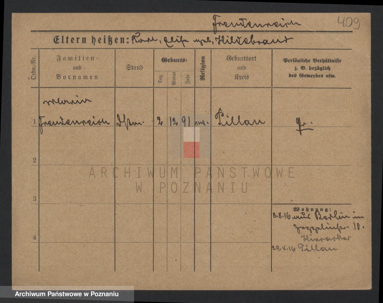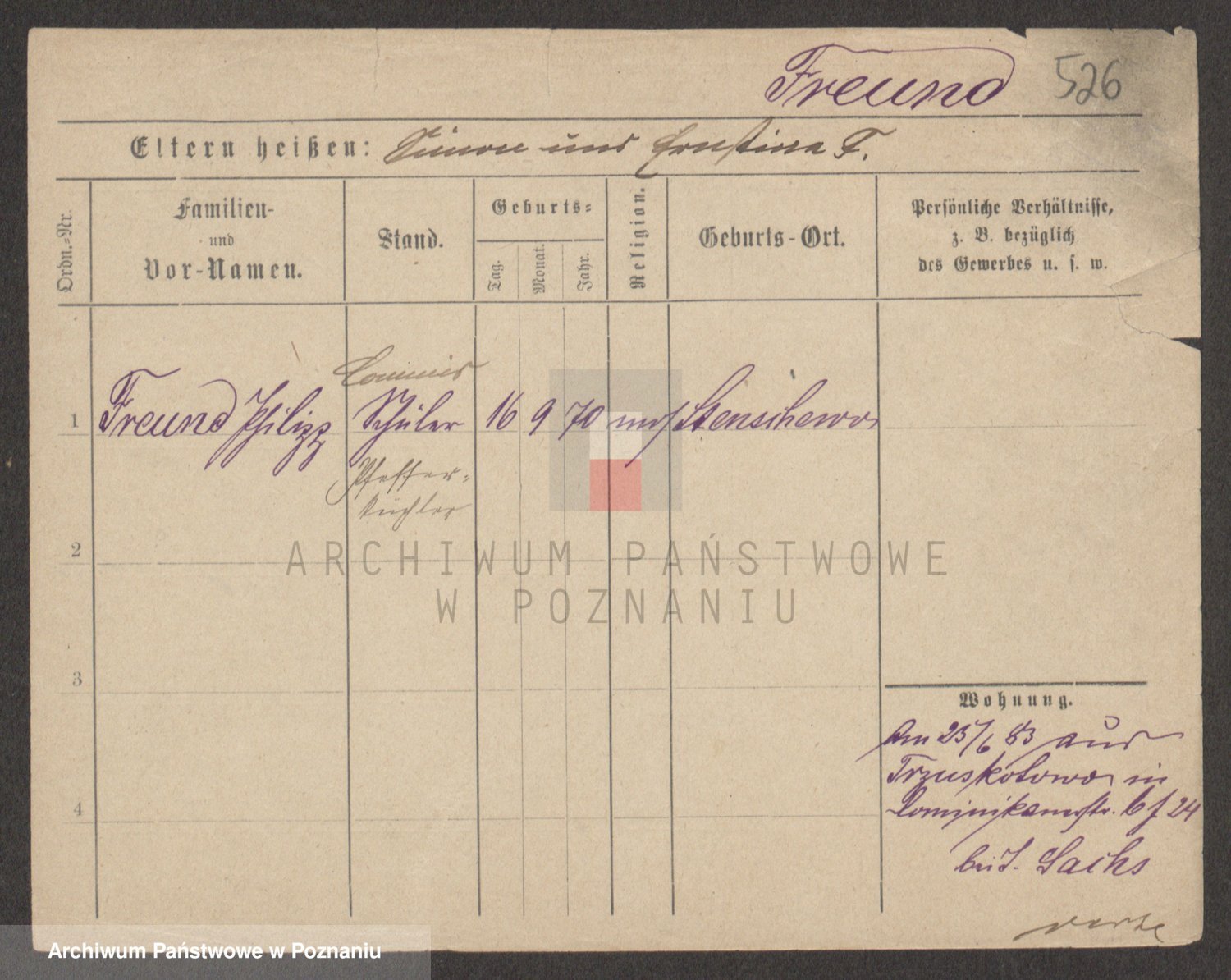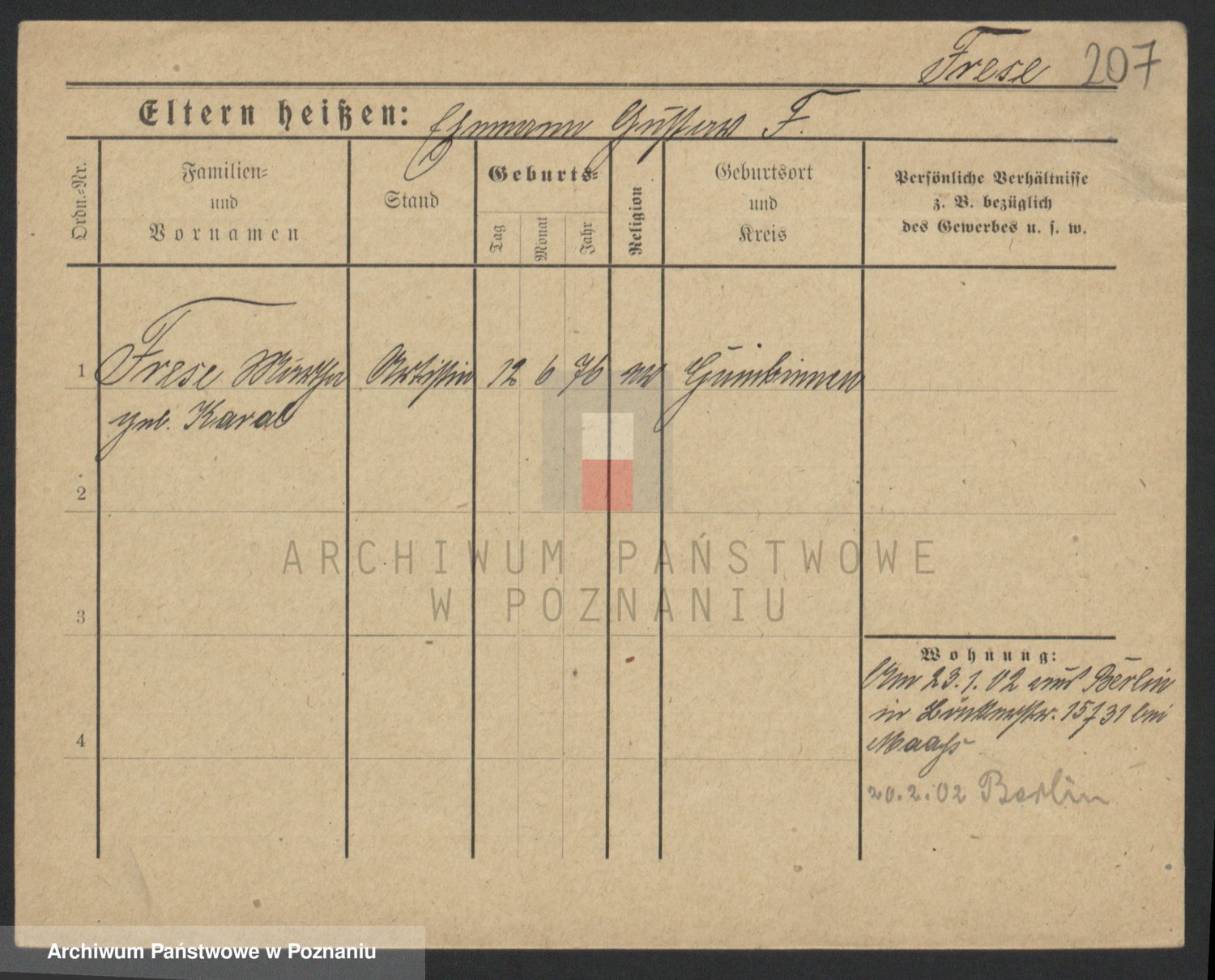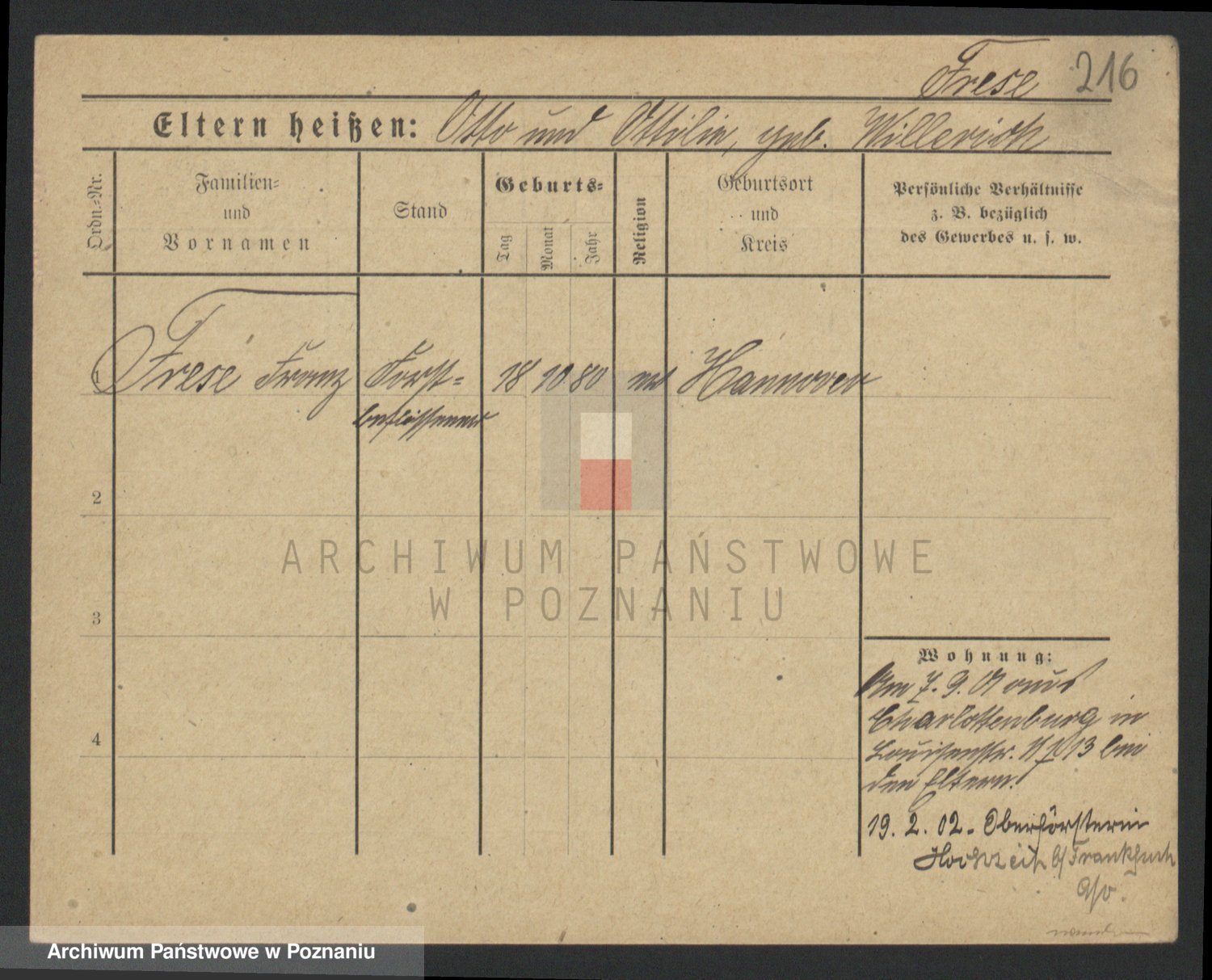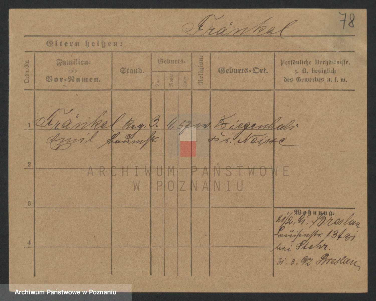 Frenk z d. König, Auguste Wilhelmine