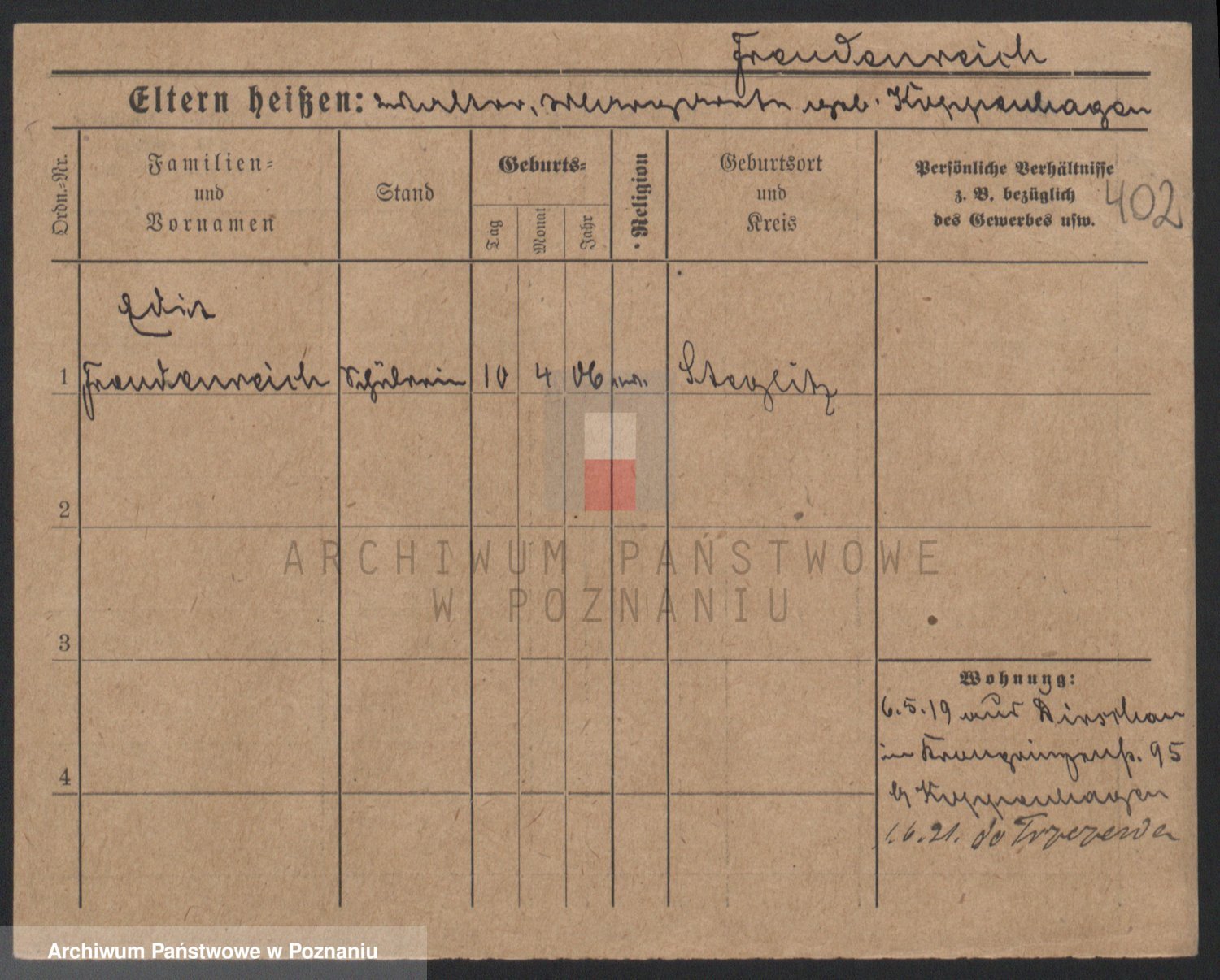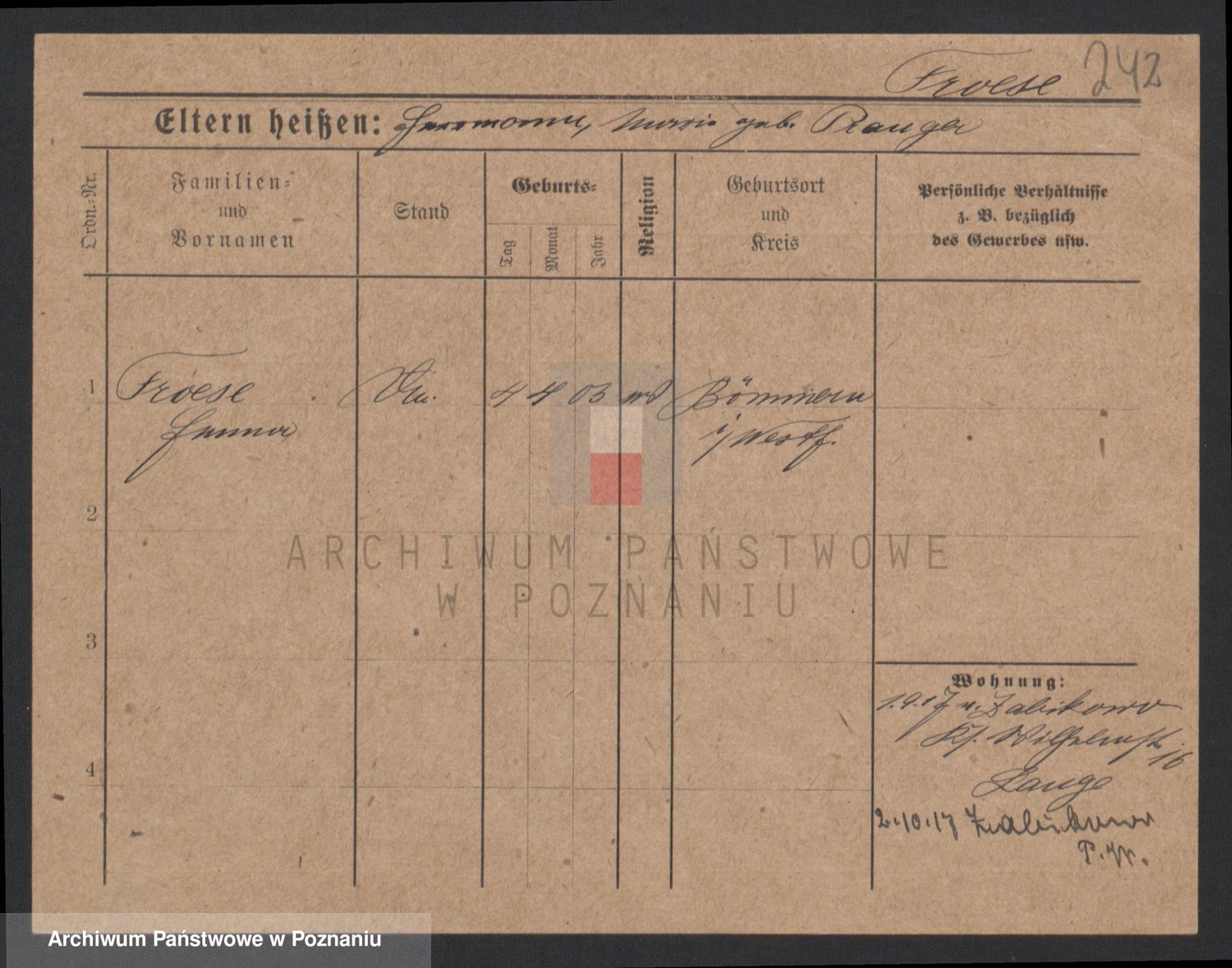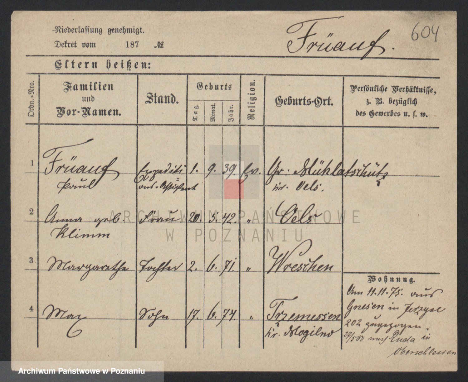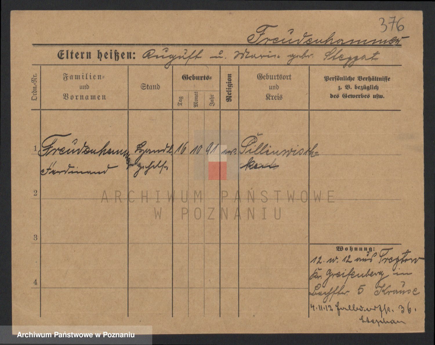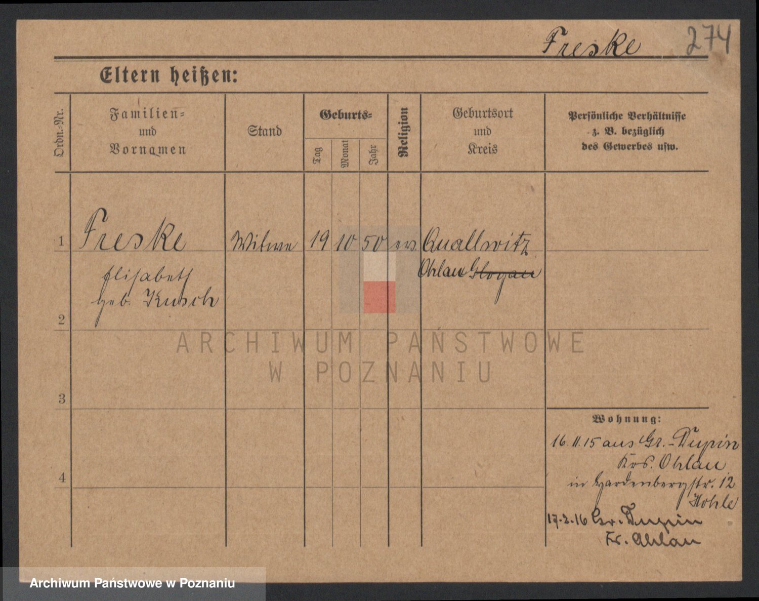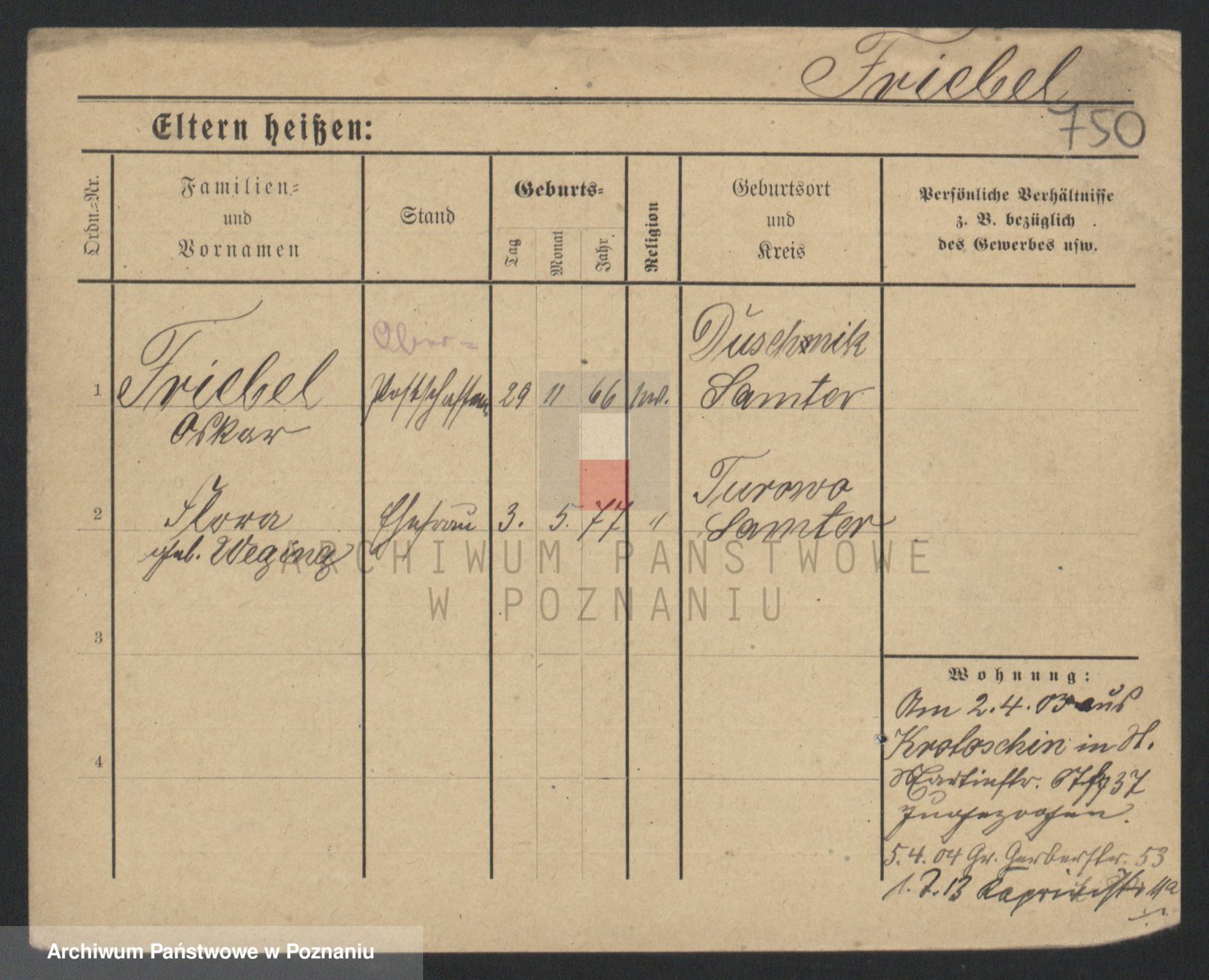Frenk z d. König, Auguste Wilhelmine