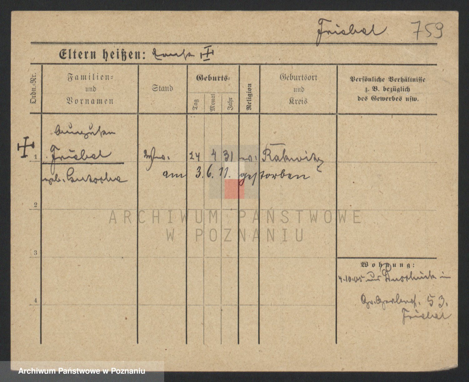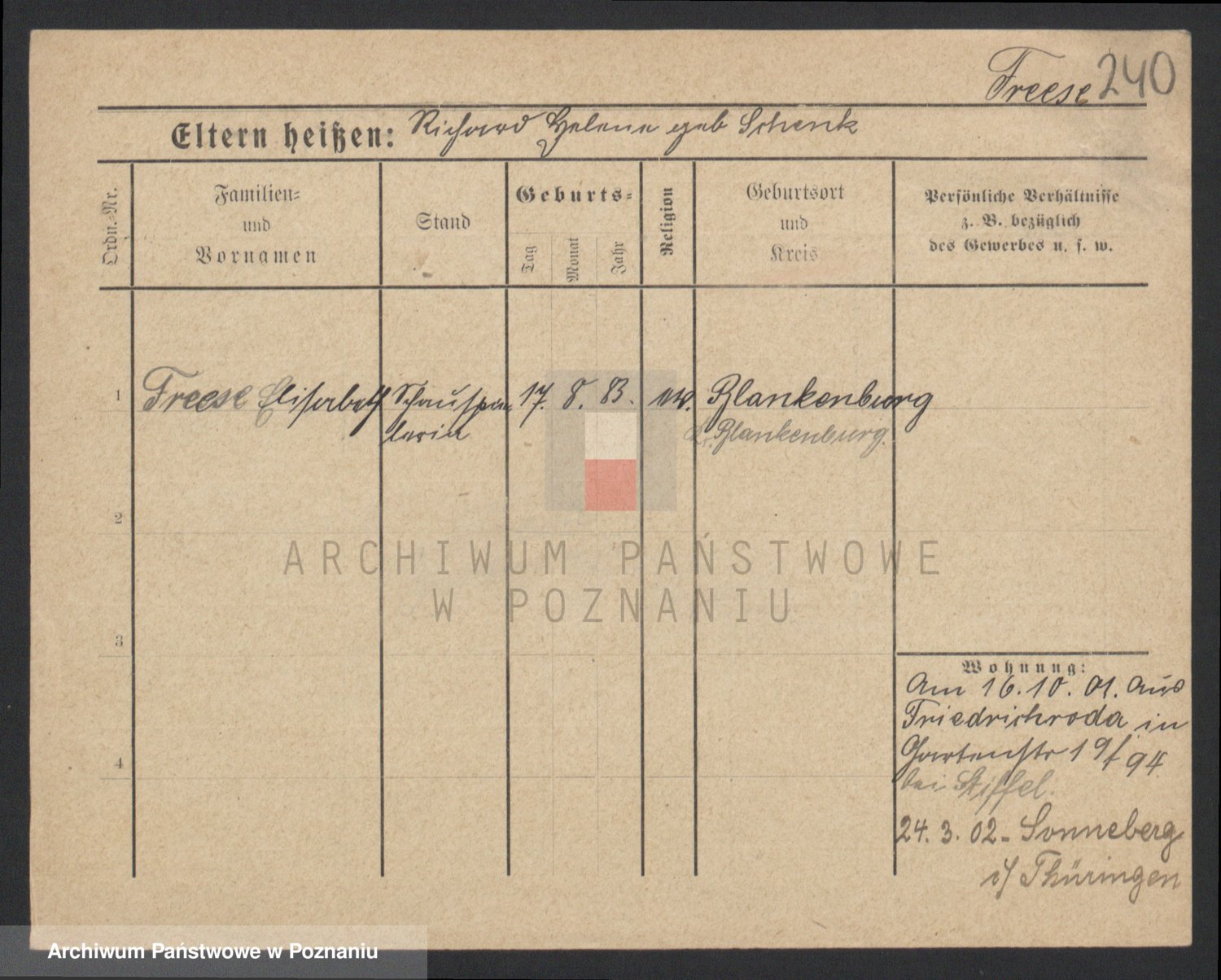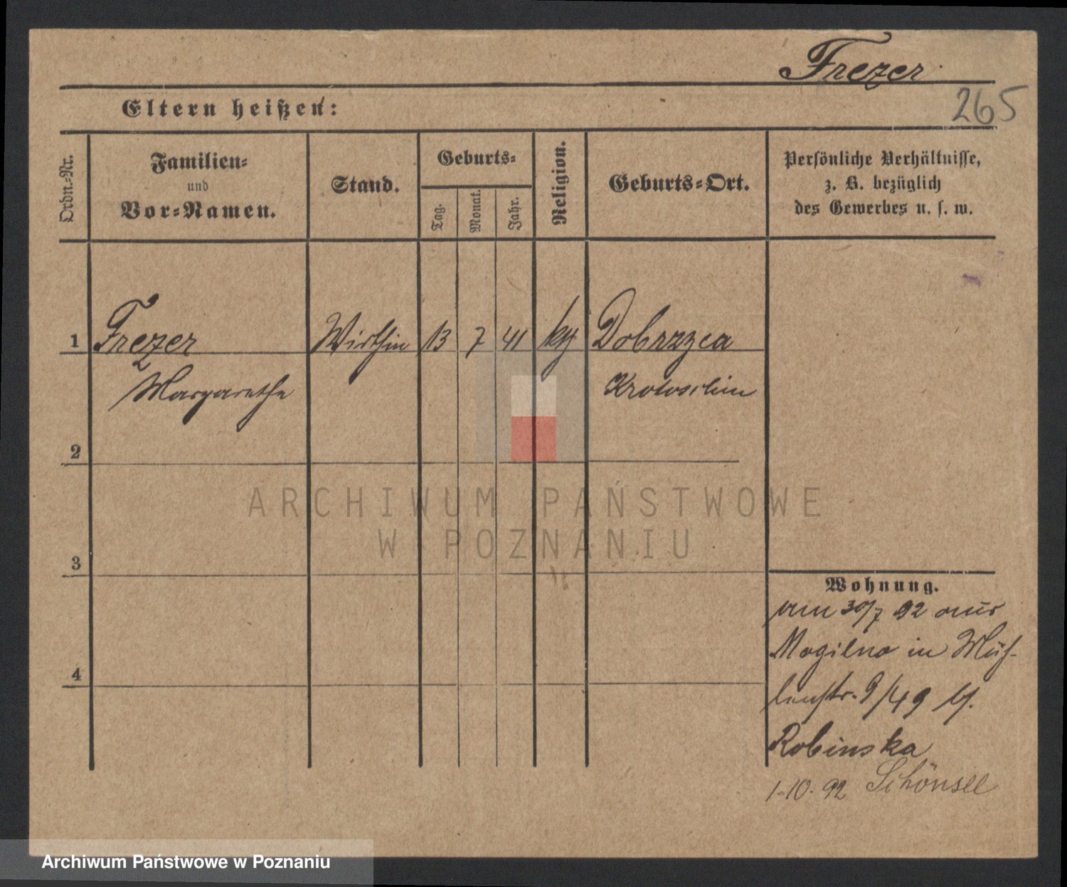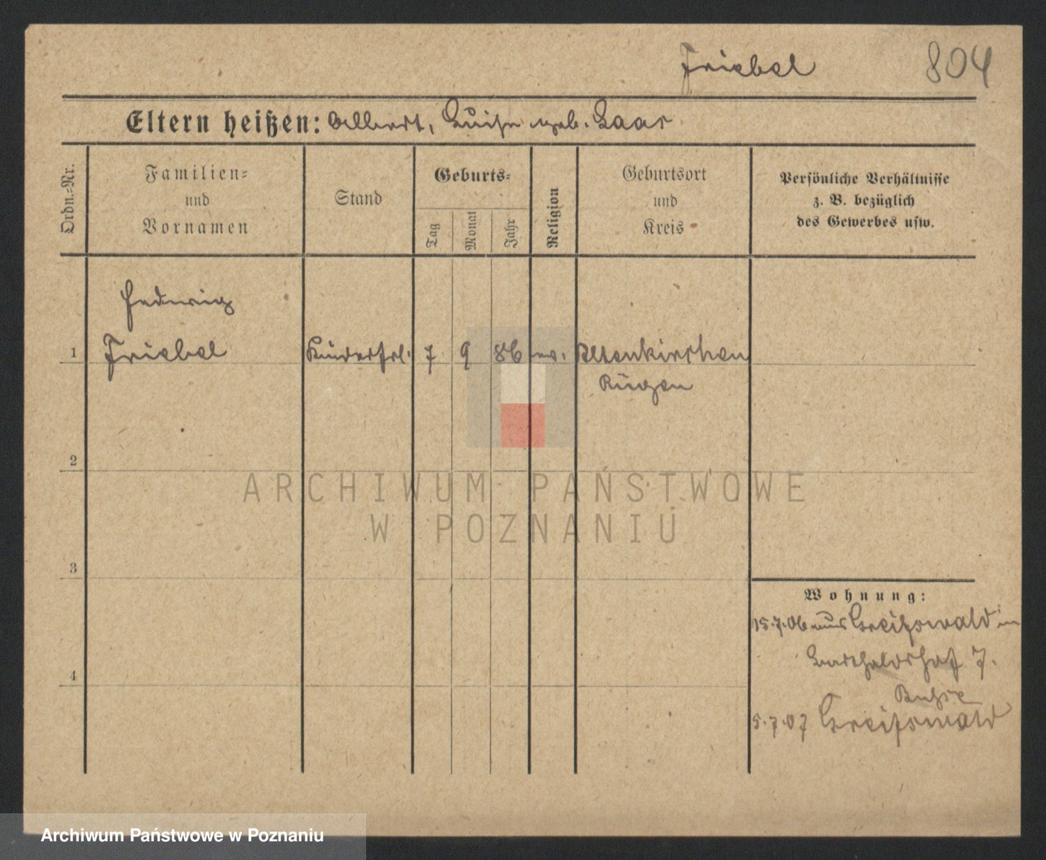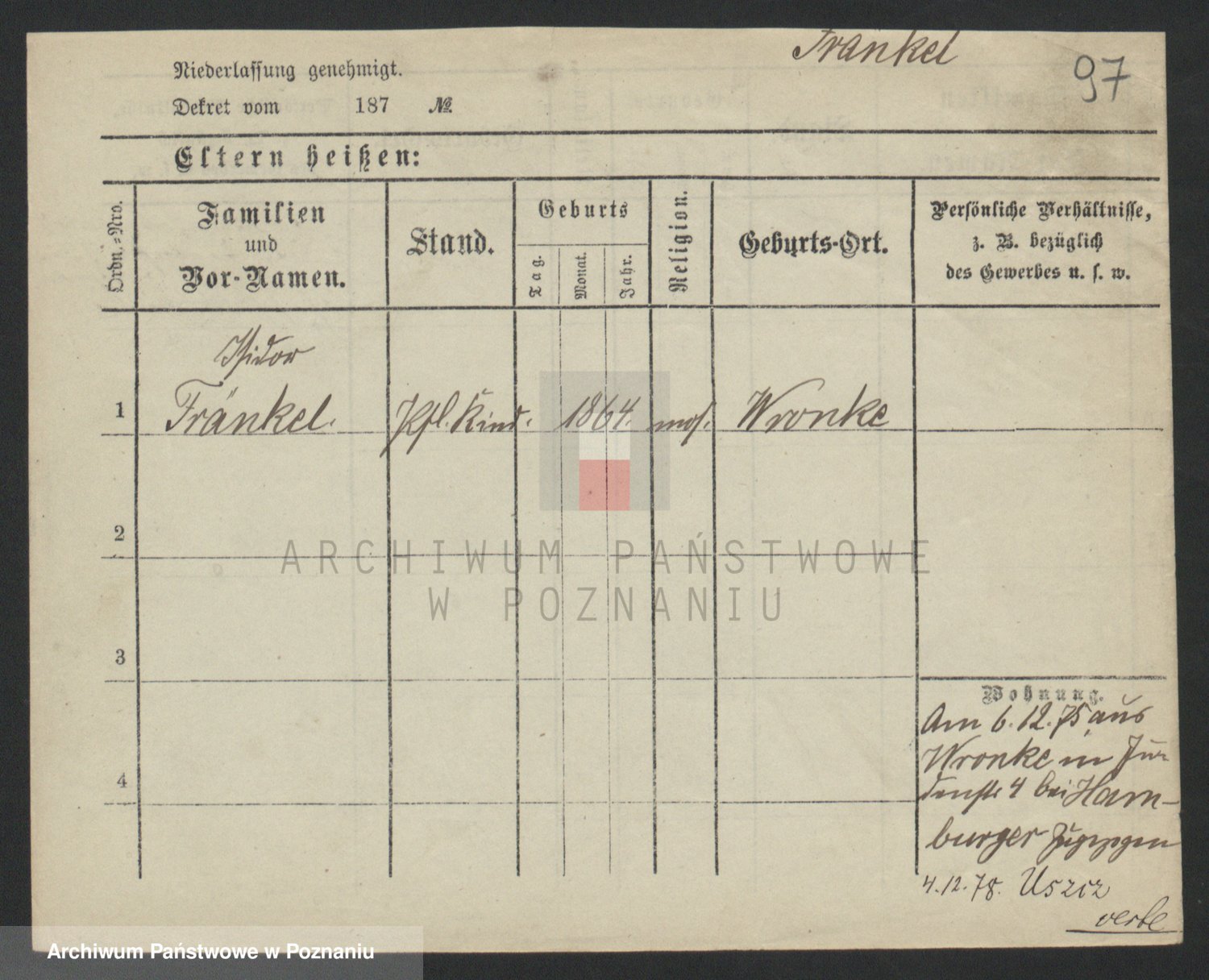 Frenk z d. König, Auguste Wilhelmine
