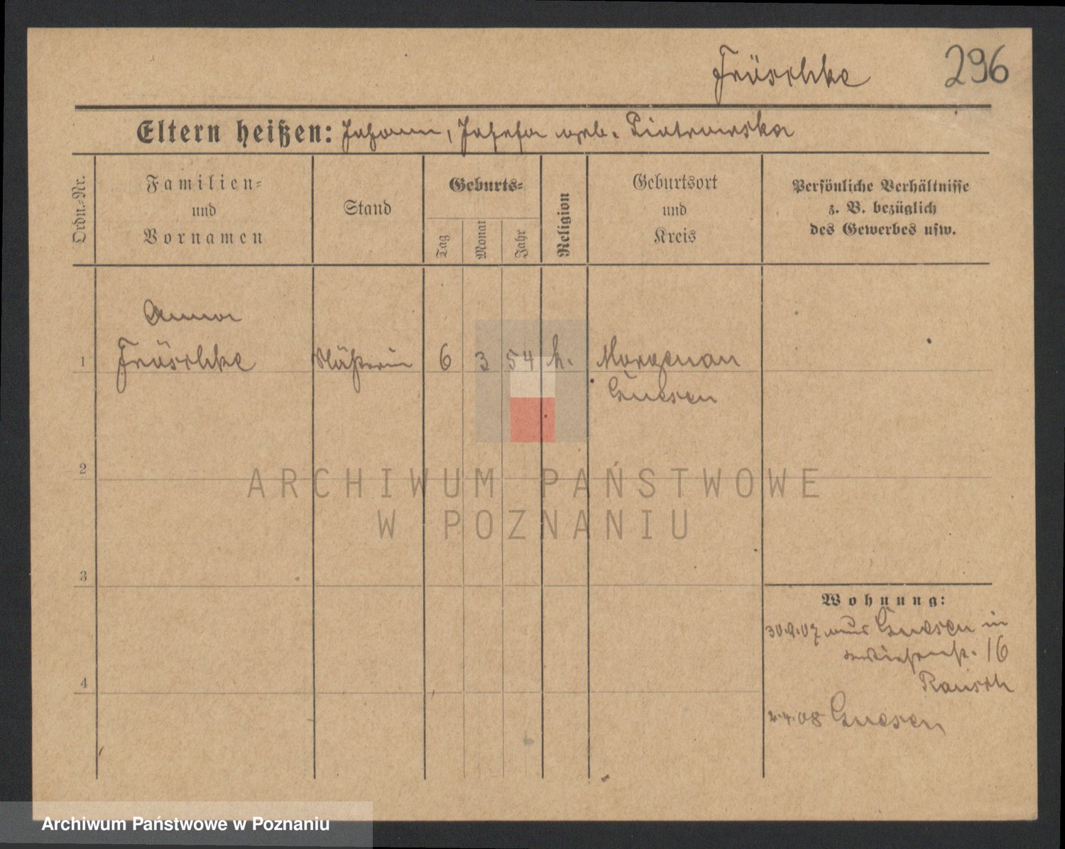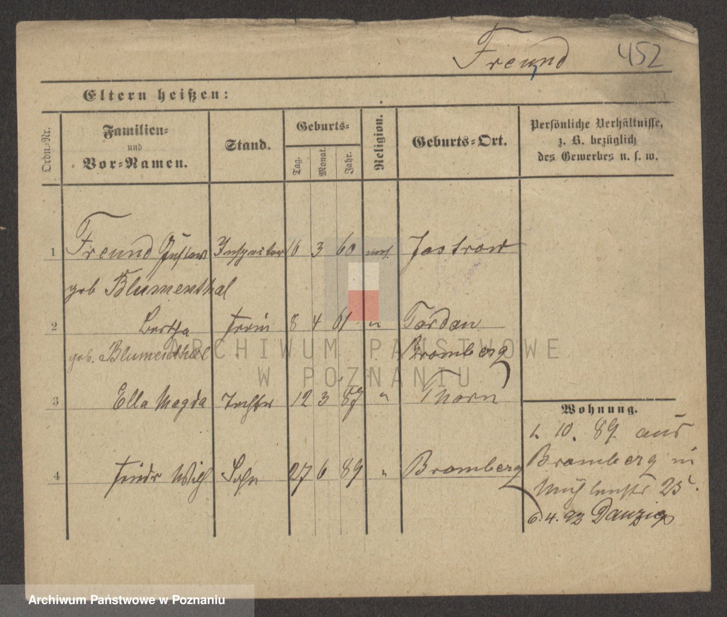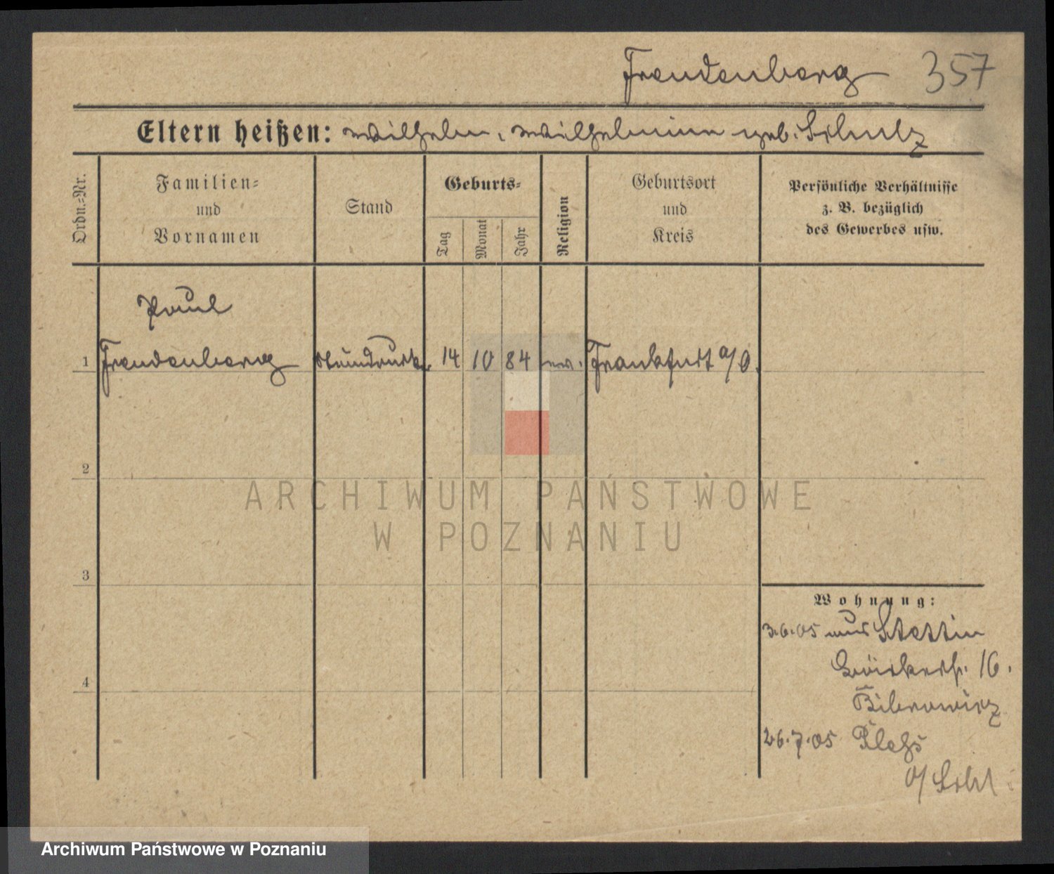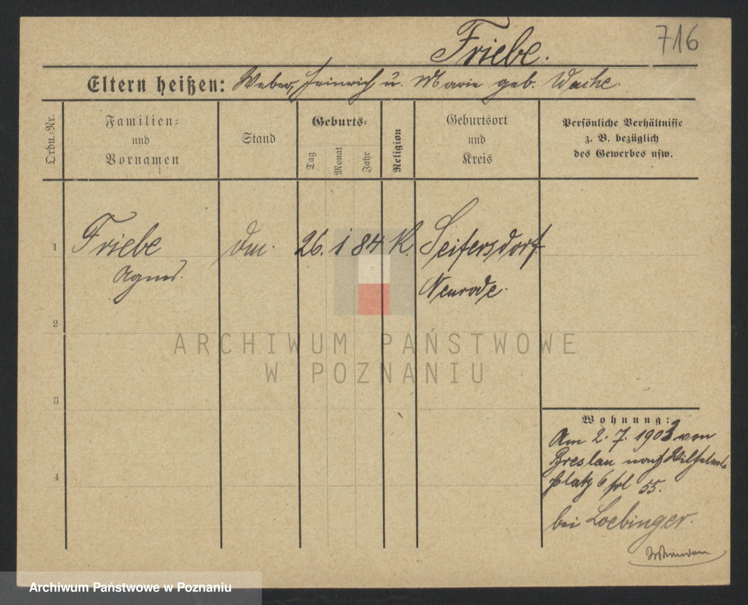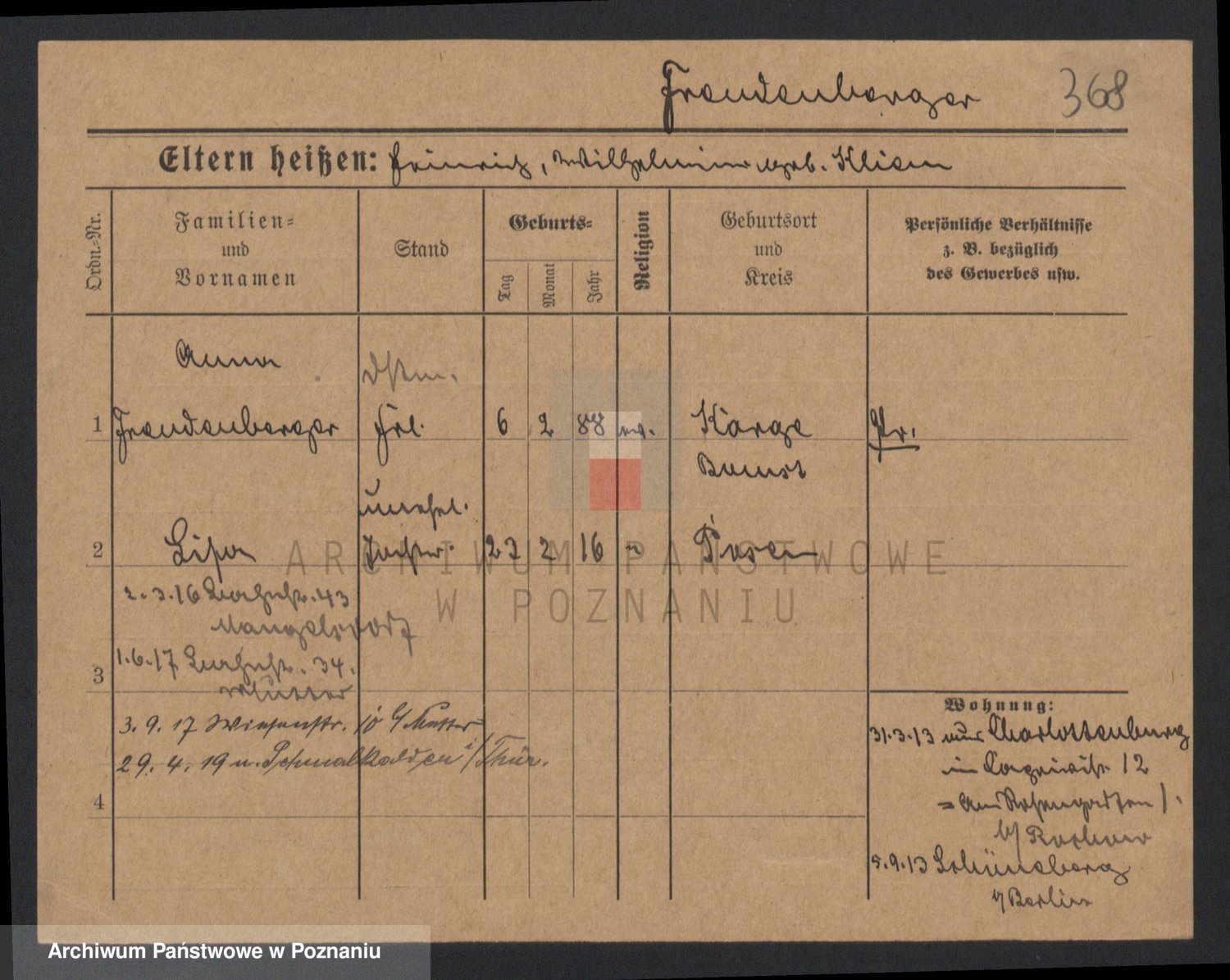 Frenk z d. König, Auguste Wilhelmine