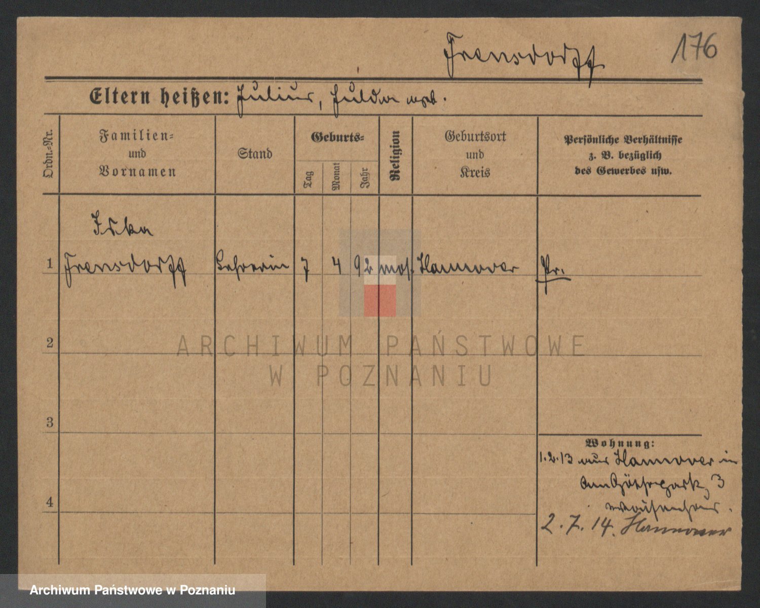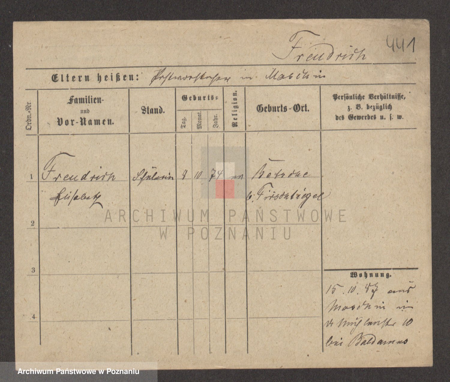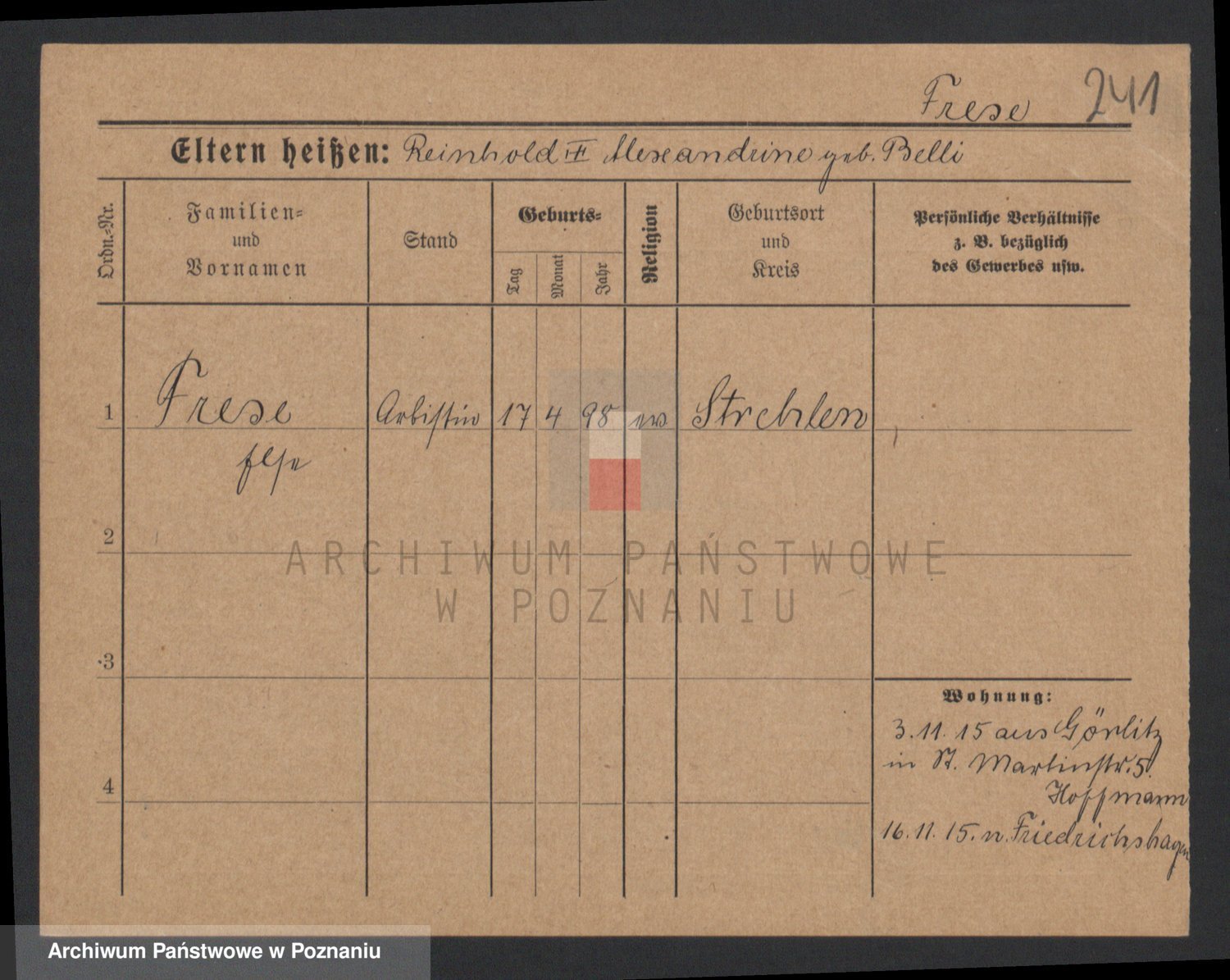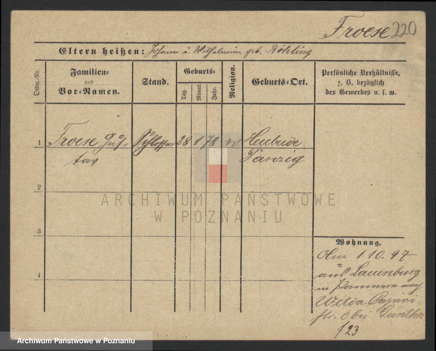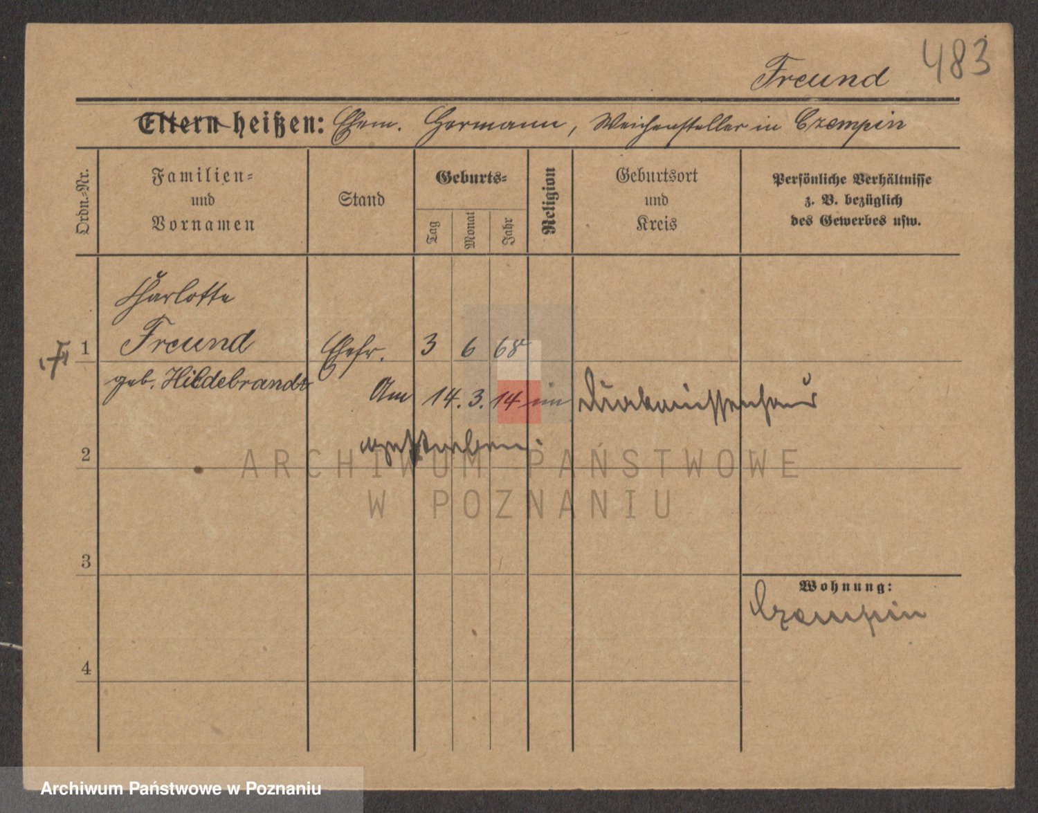 Frenk z d. König, Auguste Wilhelmine