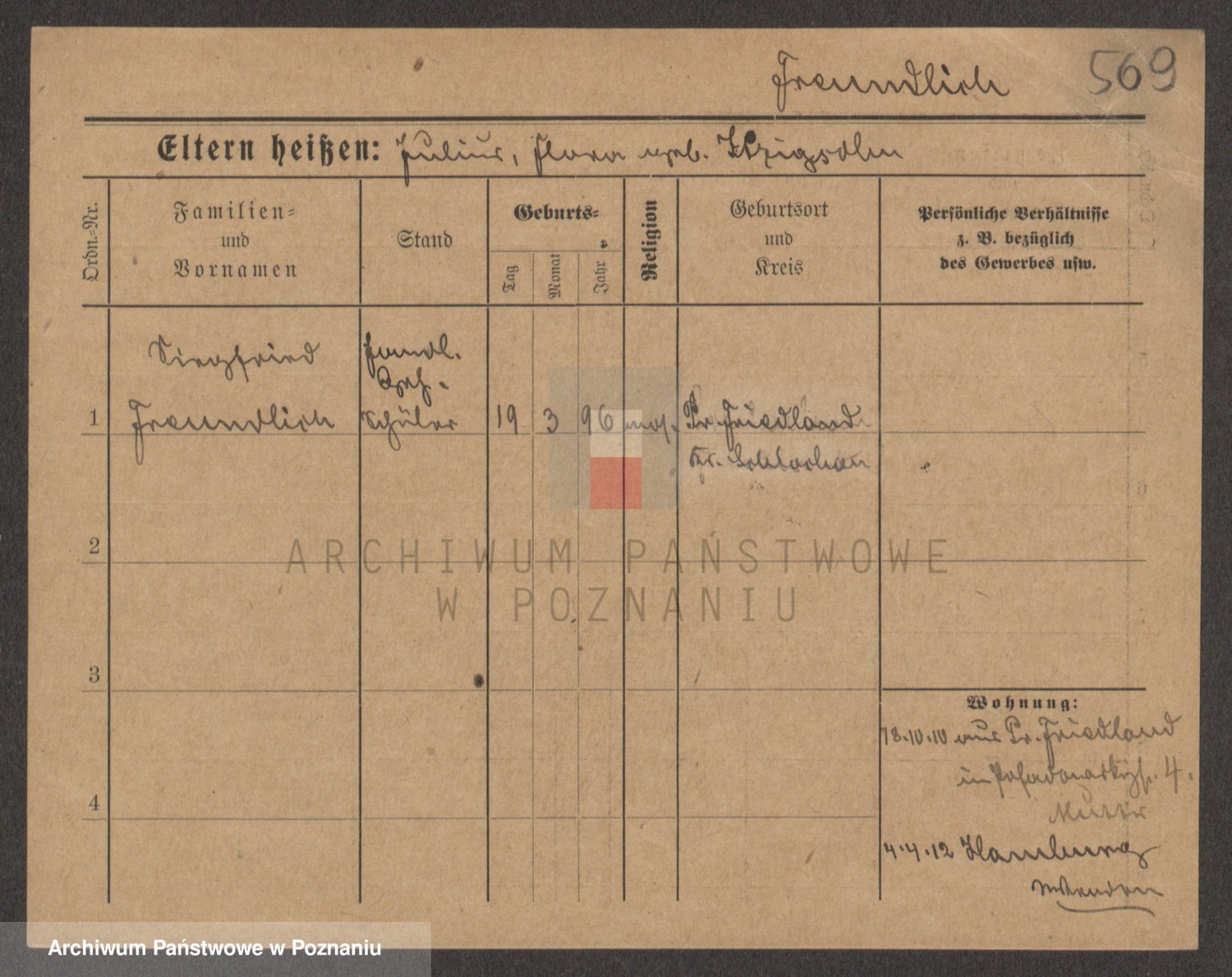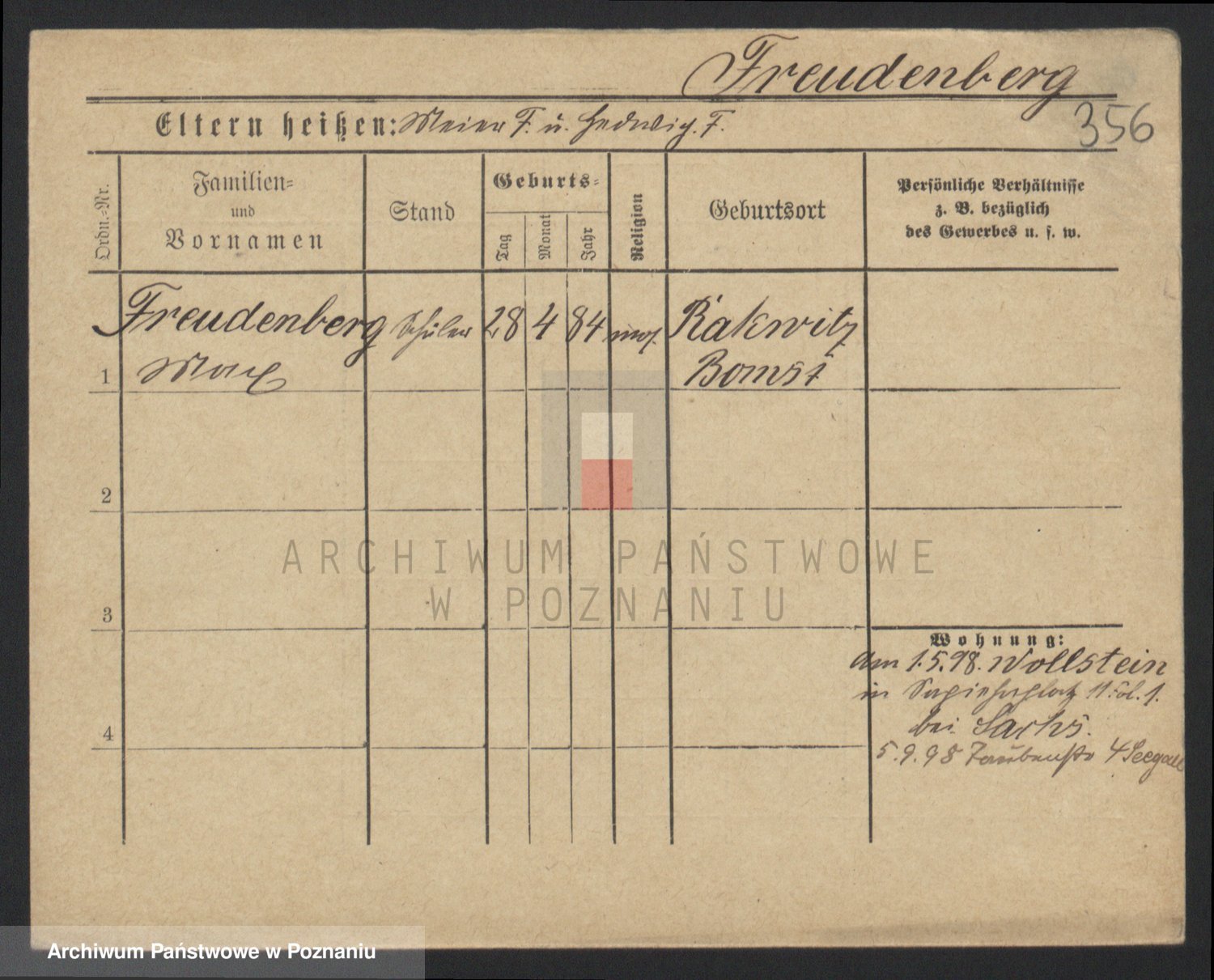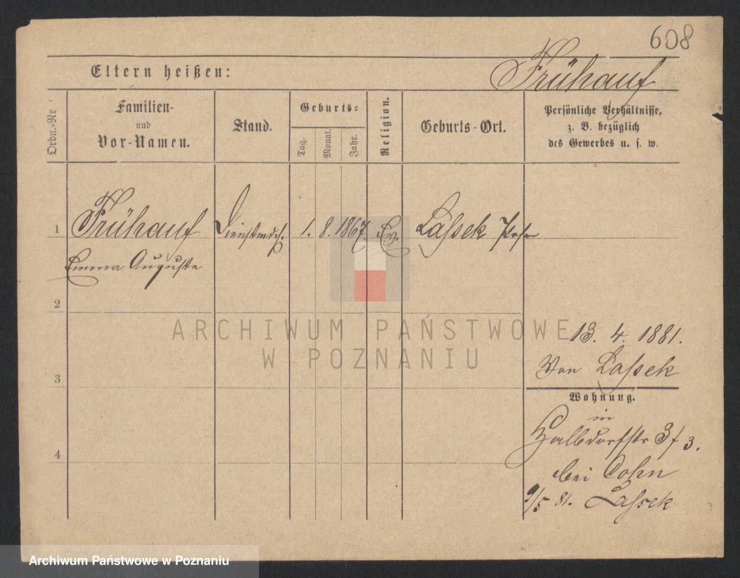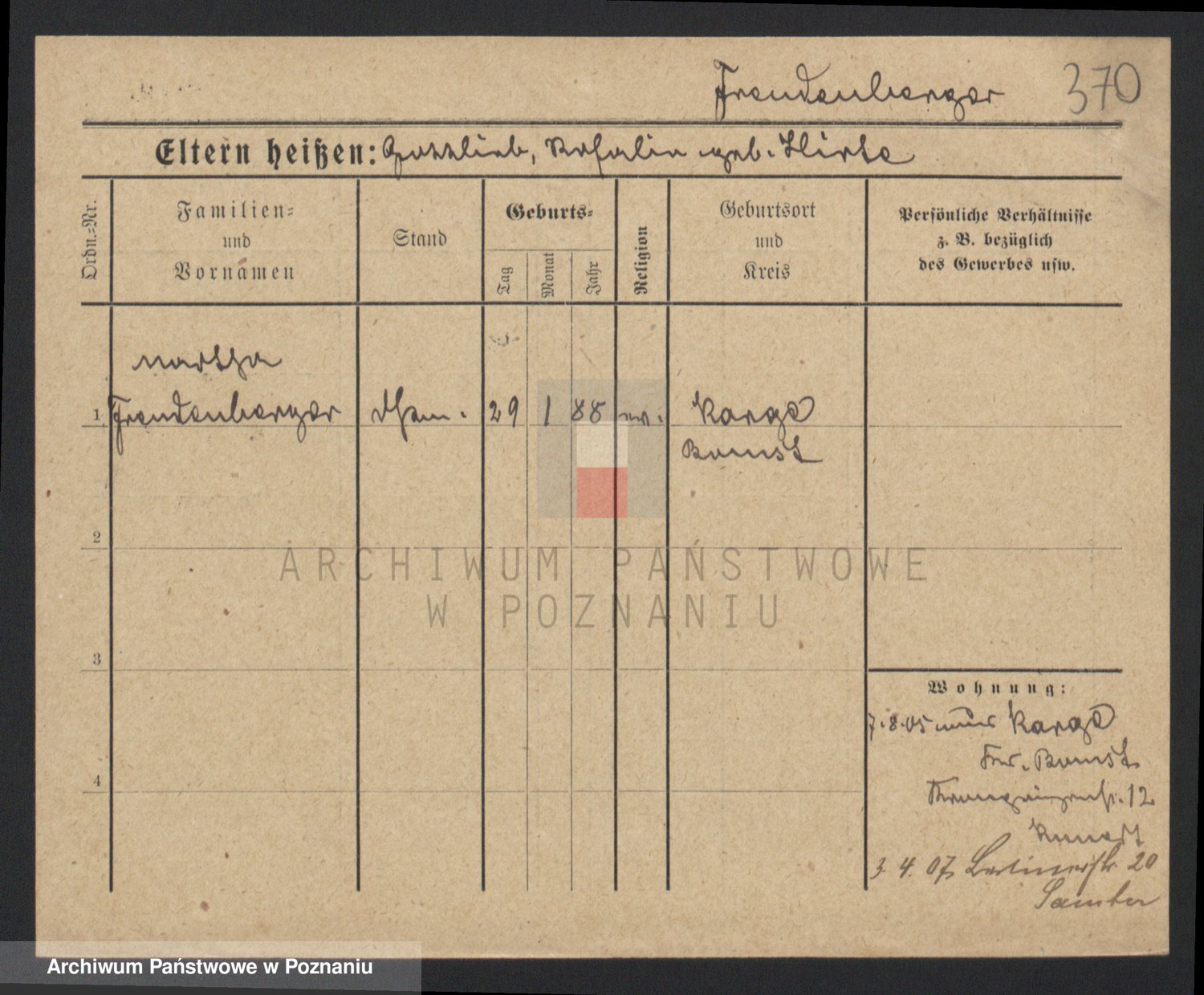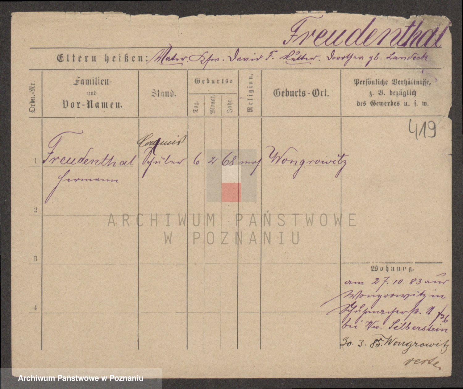 Frenk z d. König, Auguste Wilhelmine