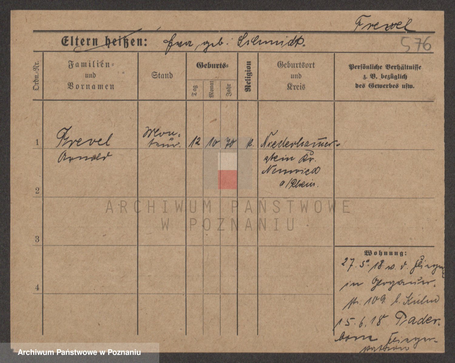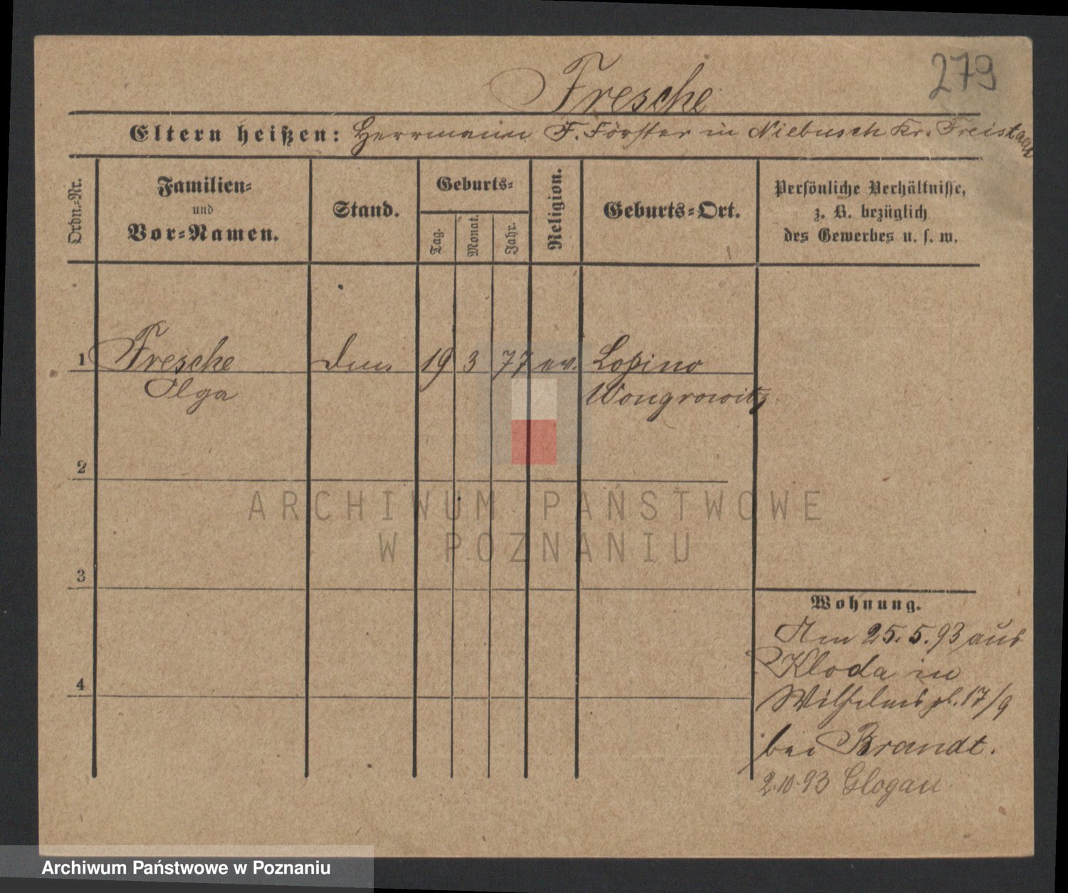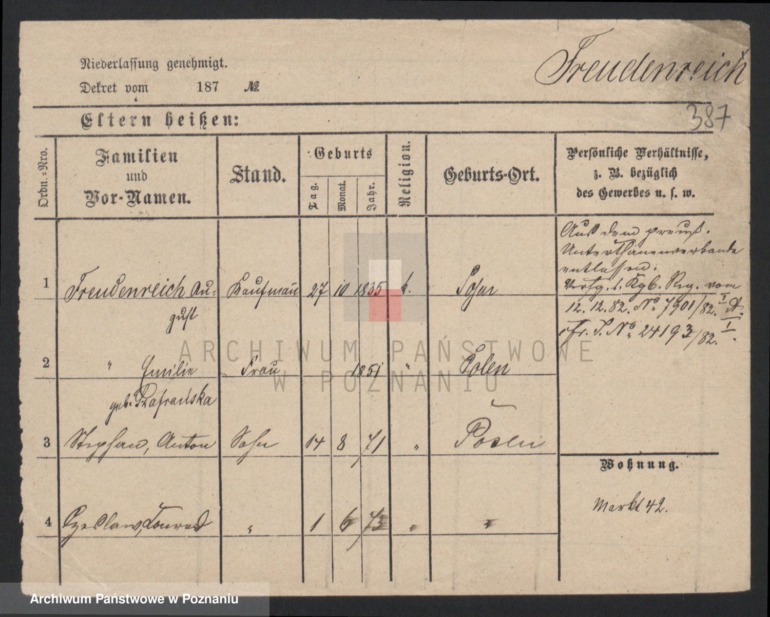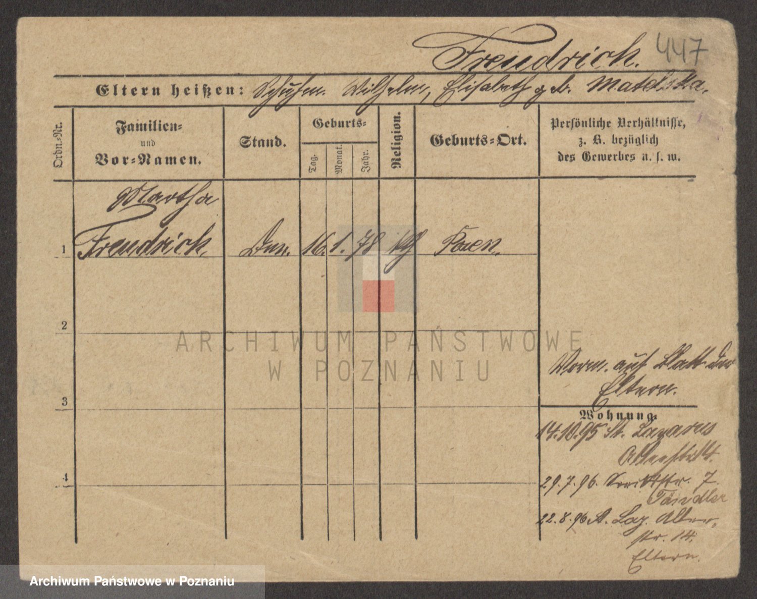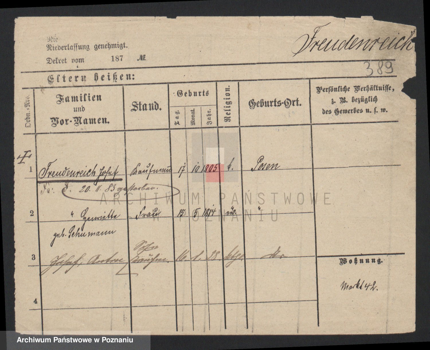 Frenk z d. König, Auguste Wilhelmine