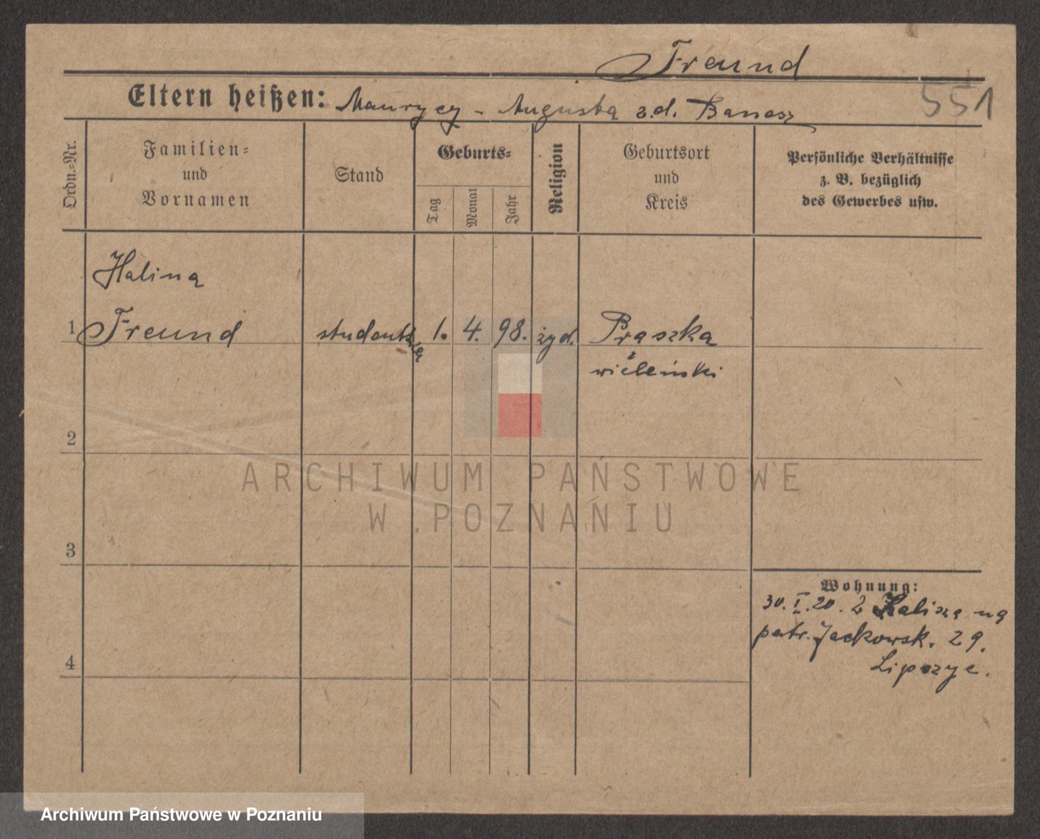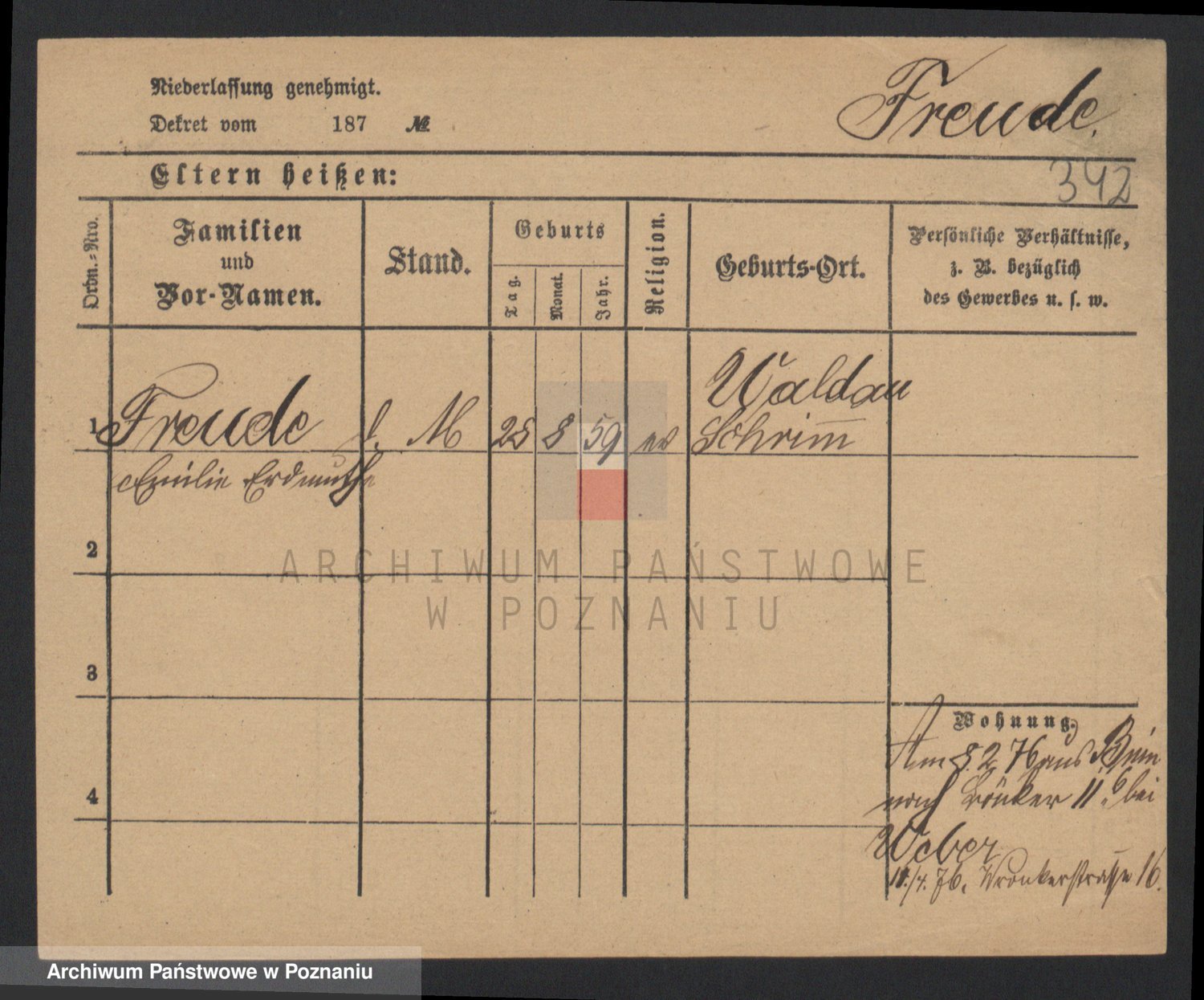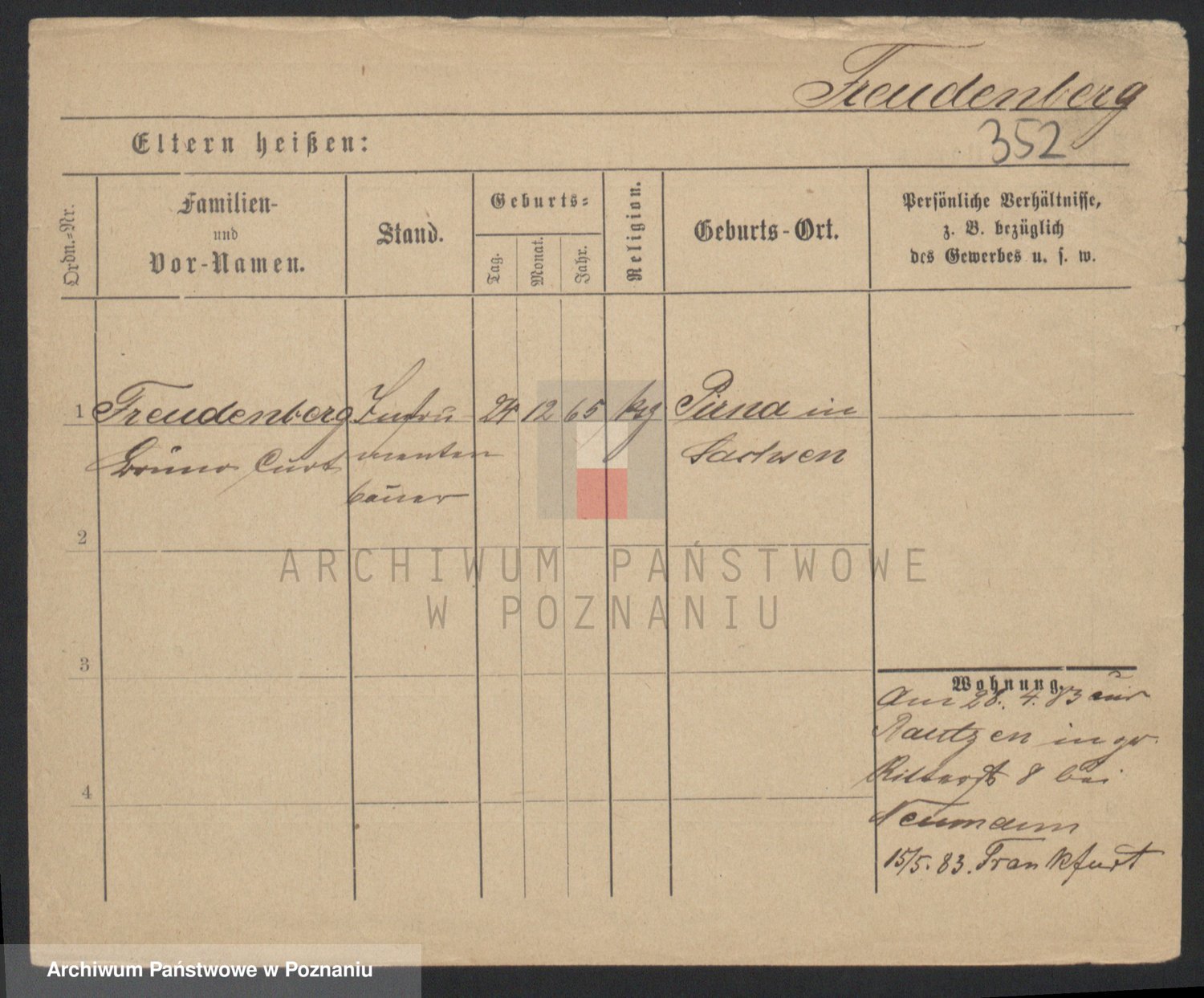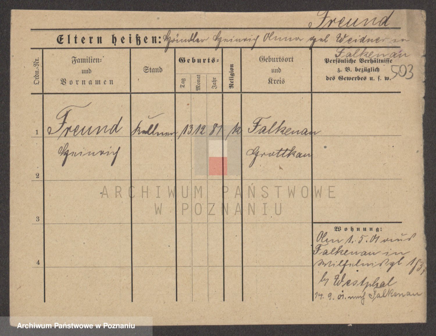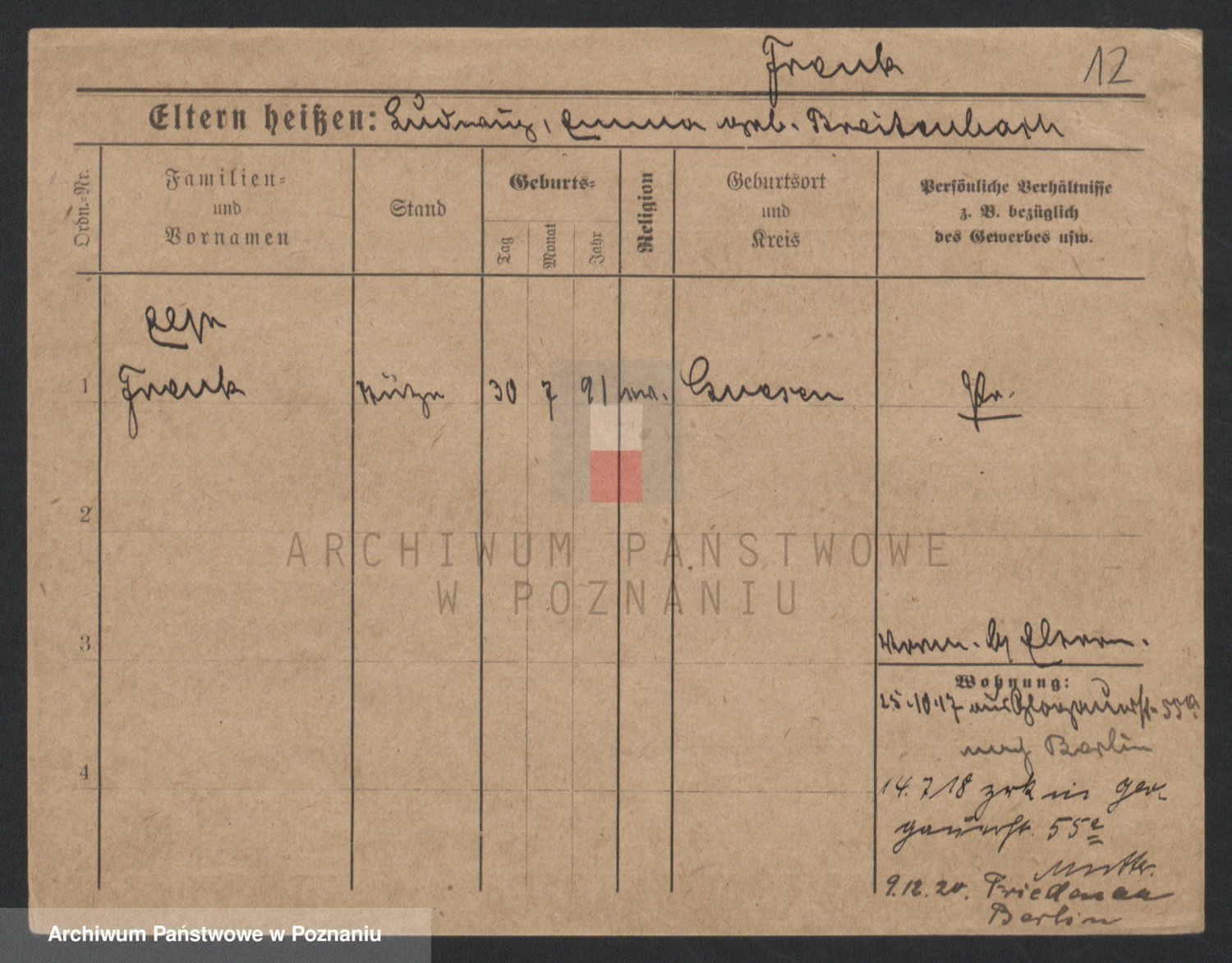 Frenk z d. König, Auguste Wilhelmine