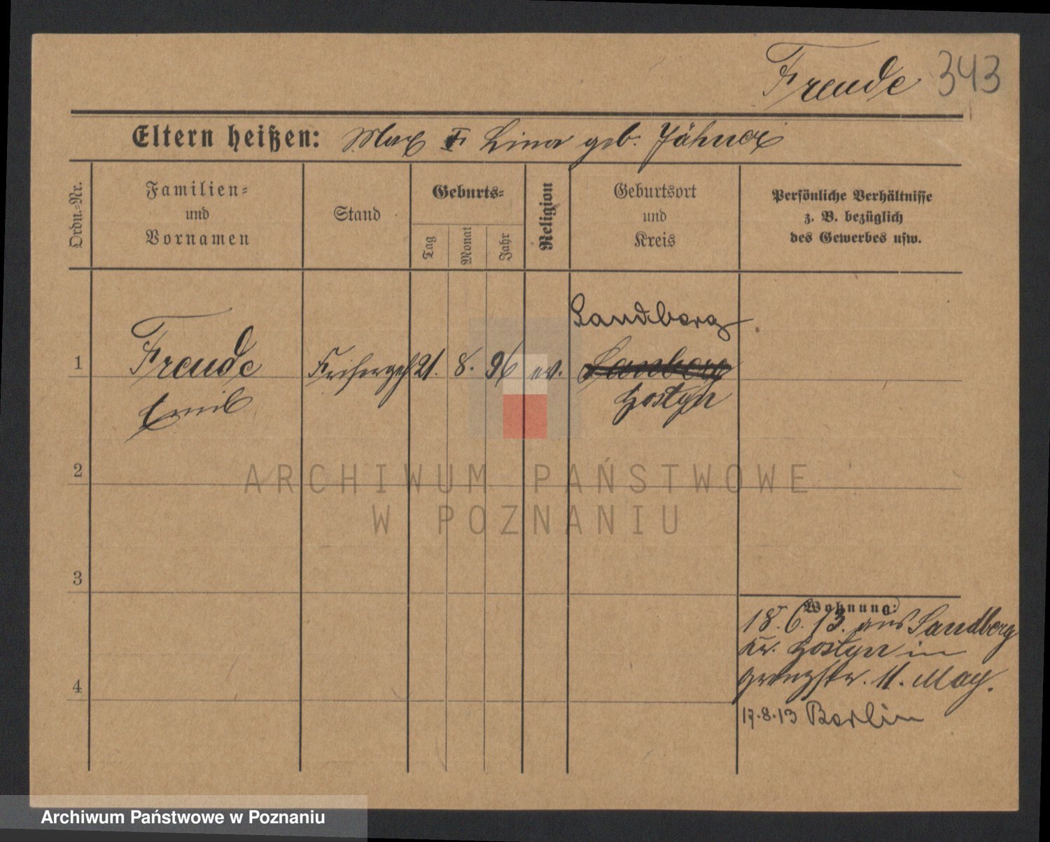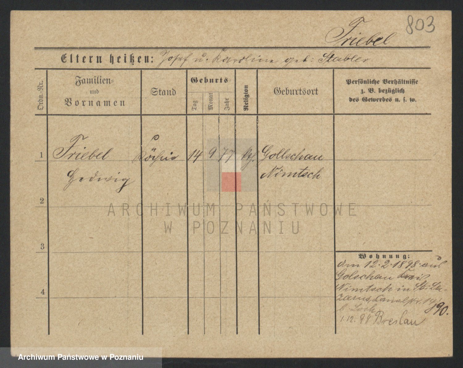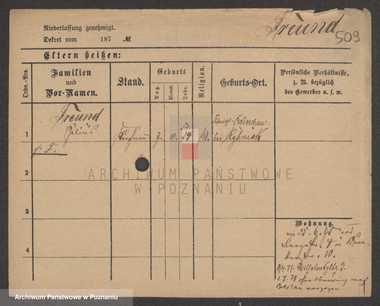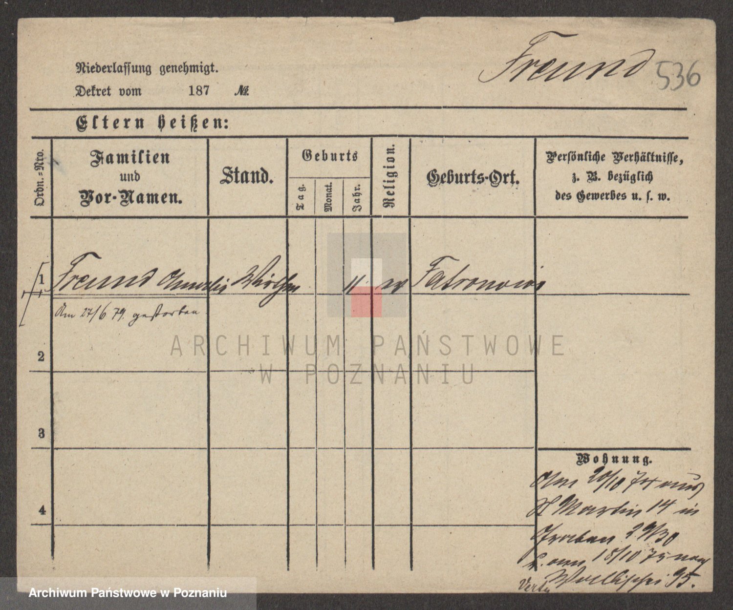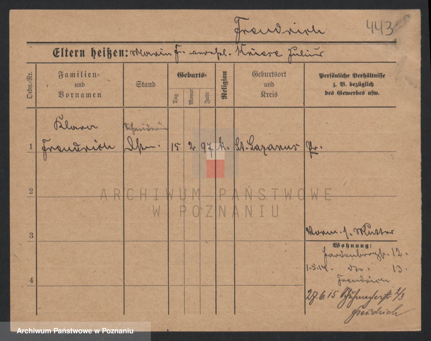 Frenk z d. König, Auguste Wilhelmine