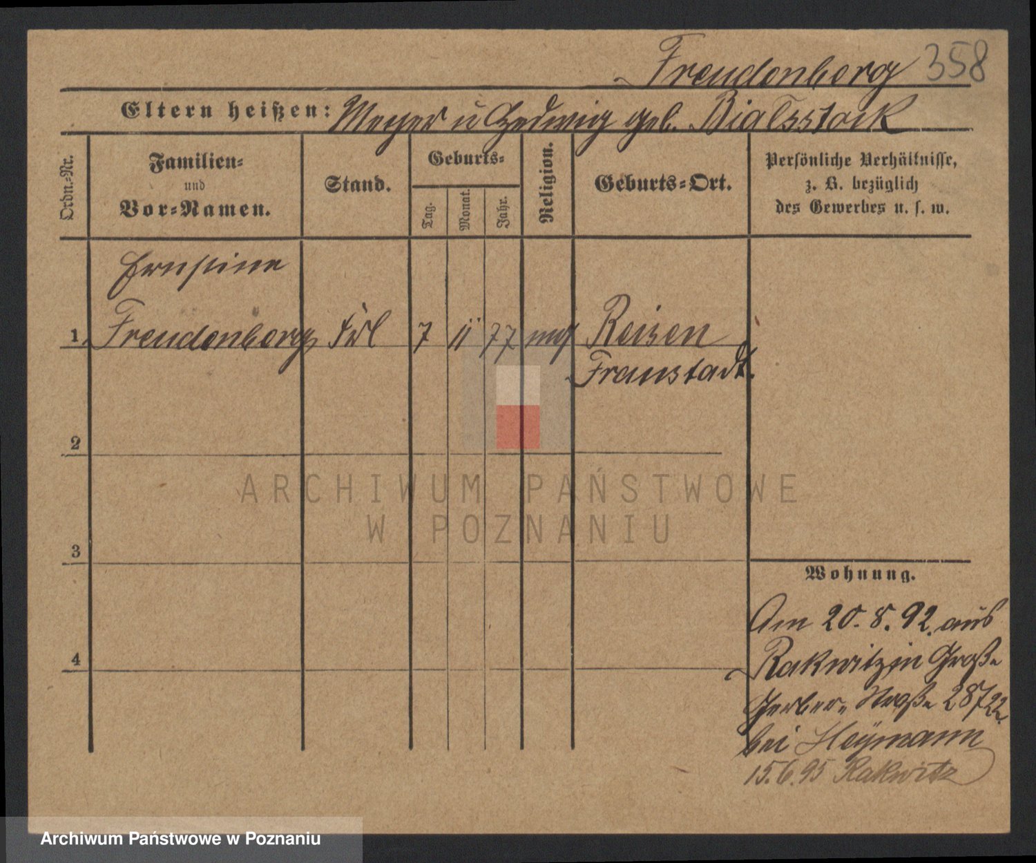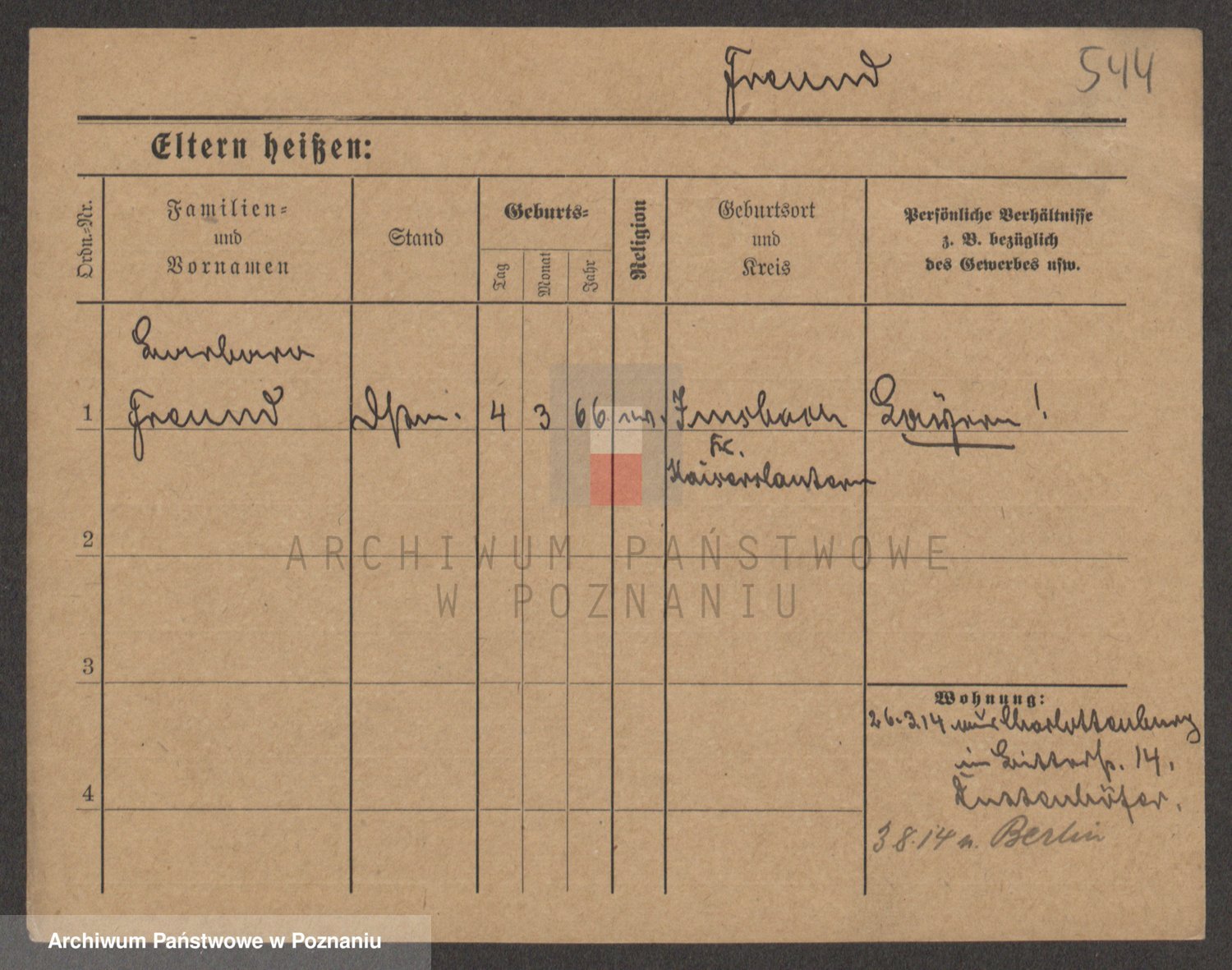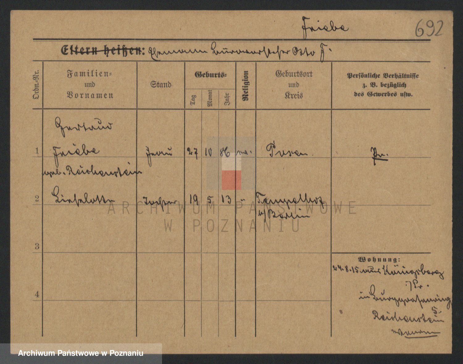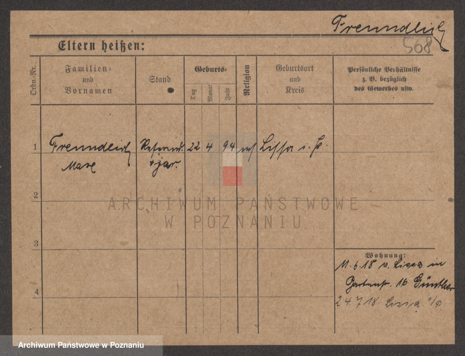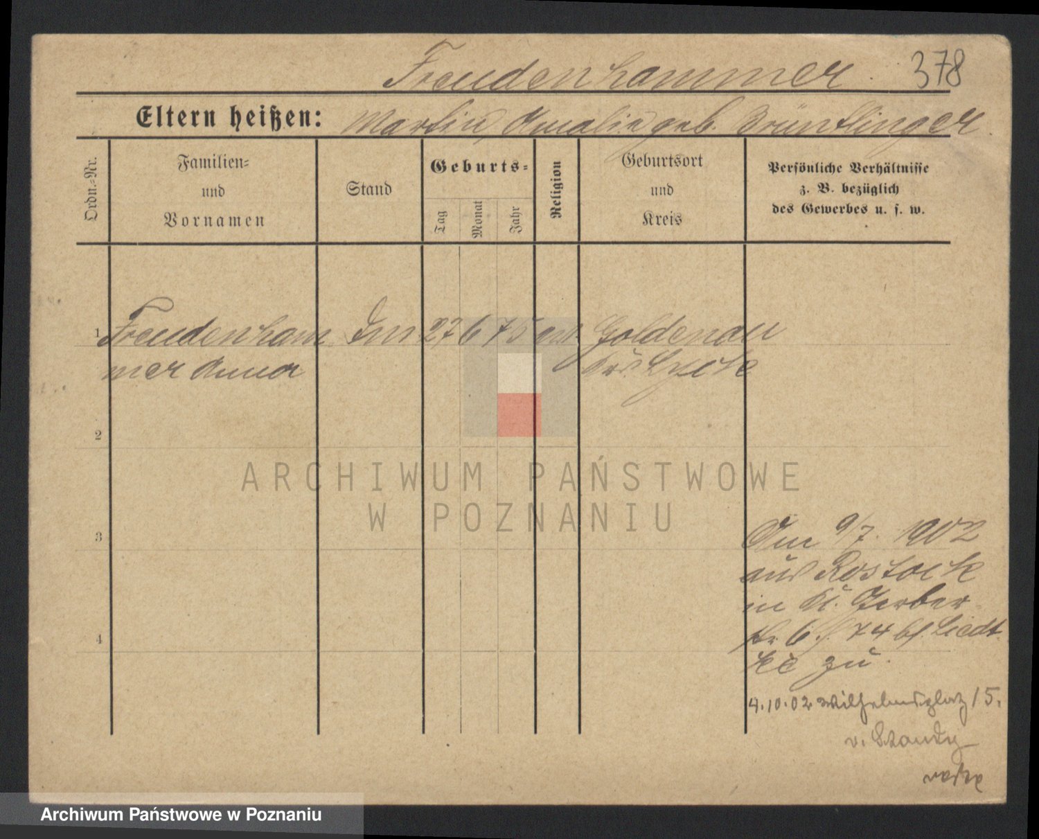 Frenk z d. König, Auguste Wilhelmine