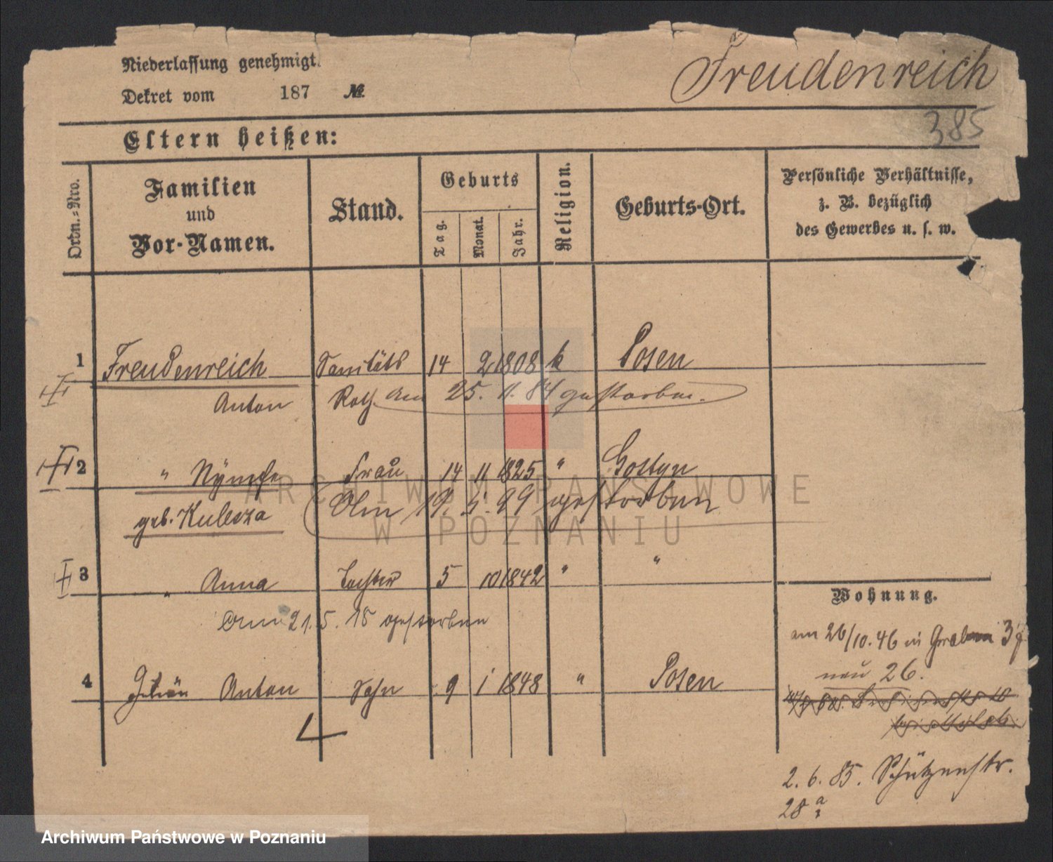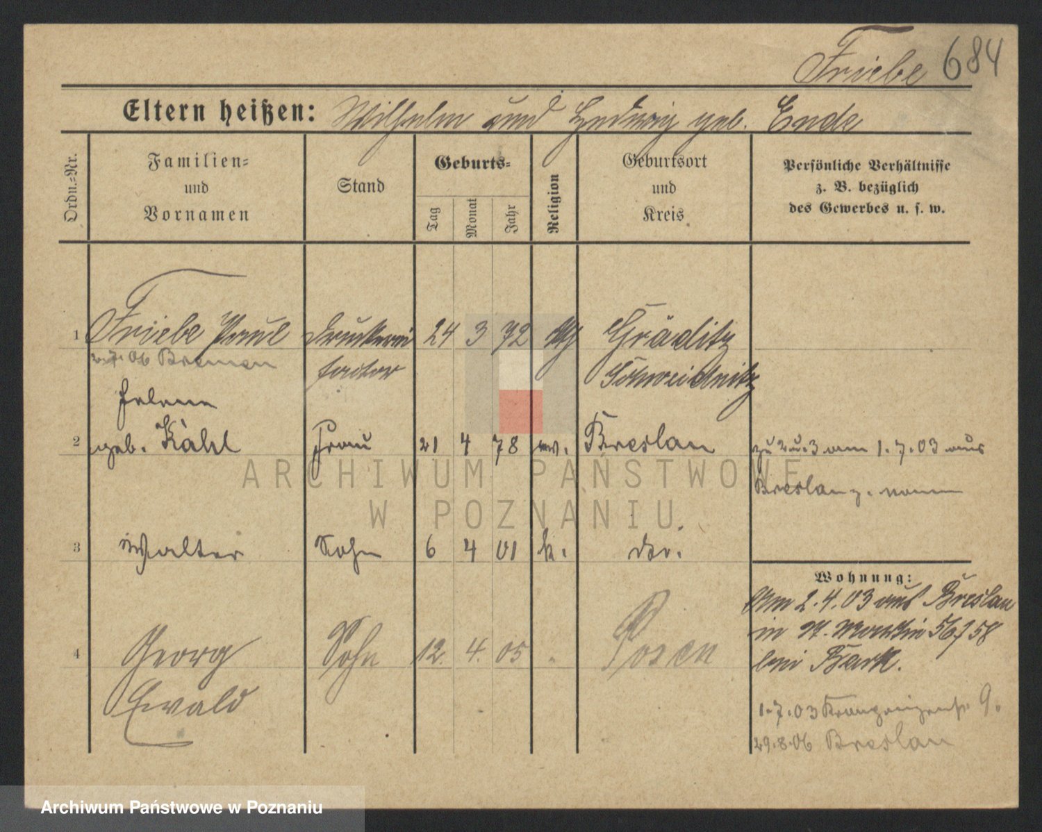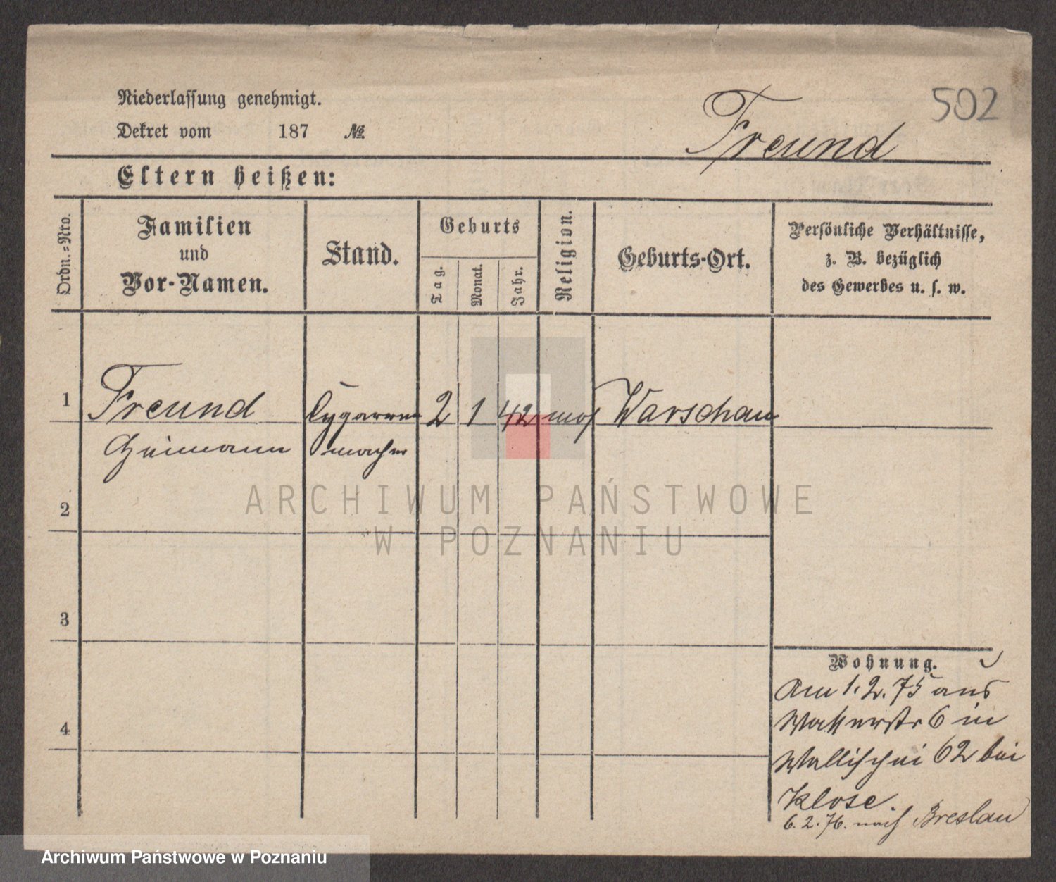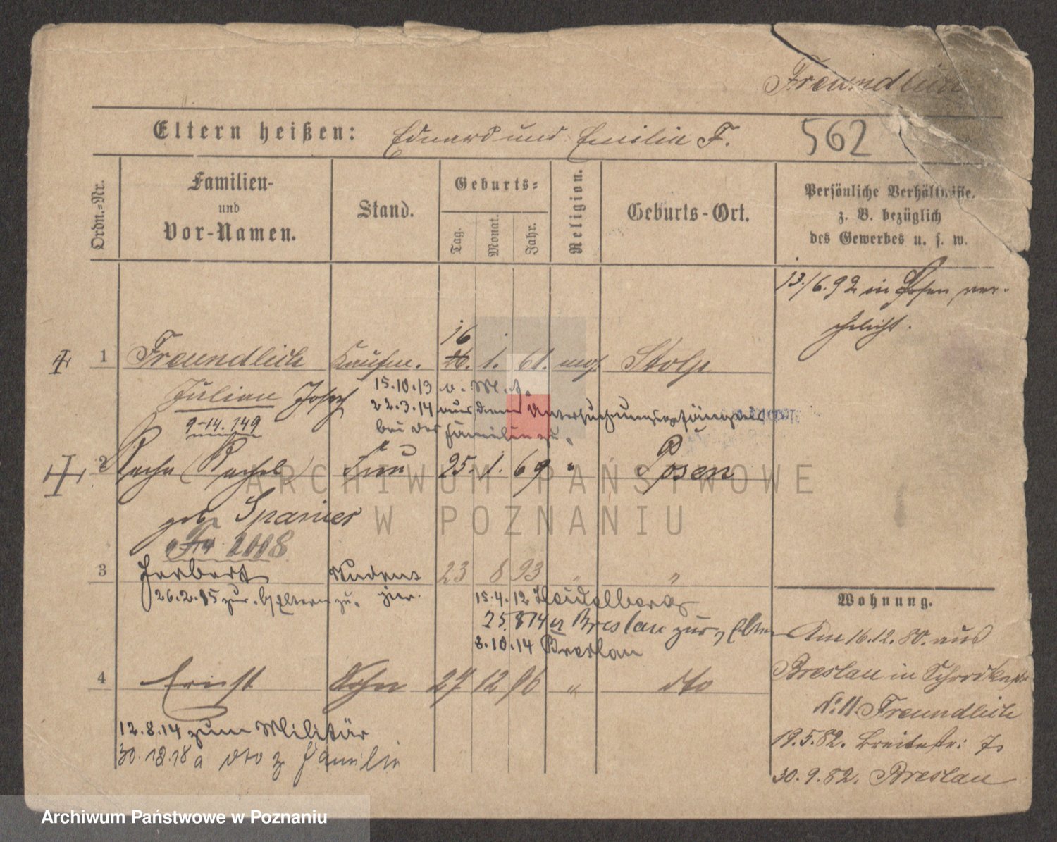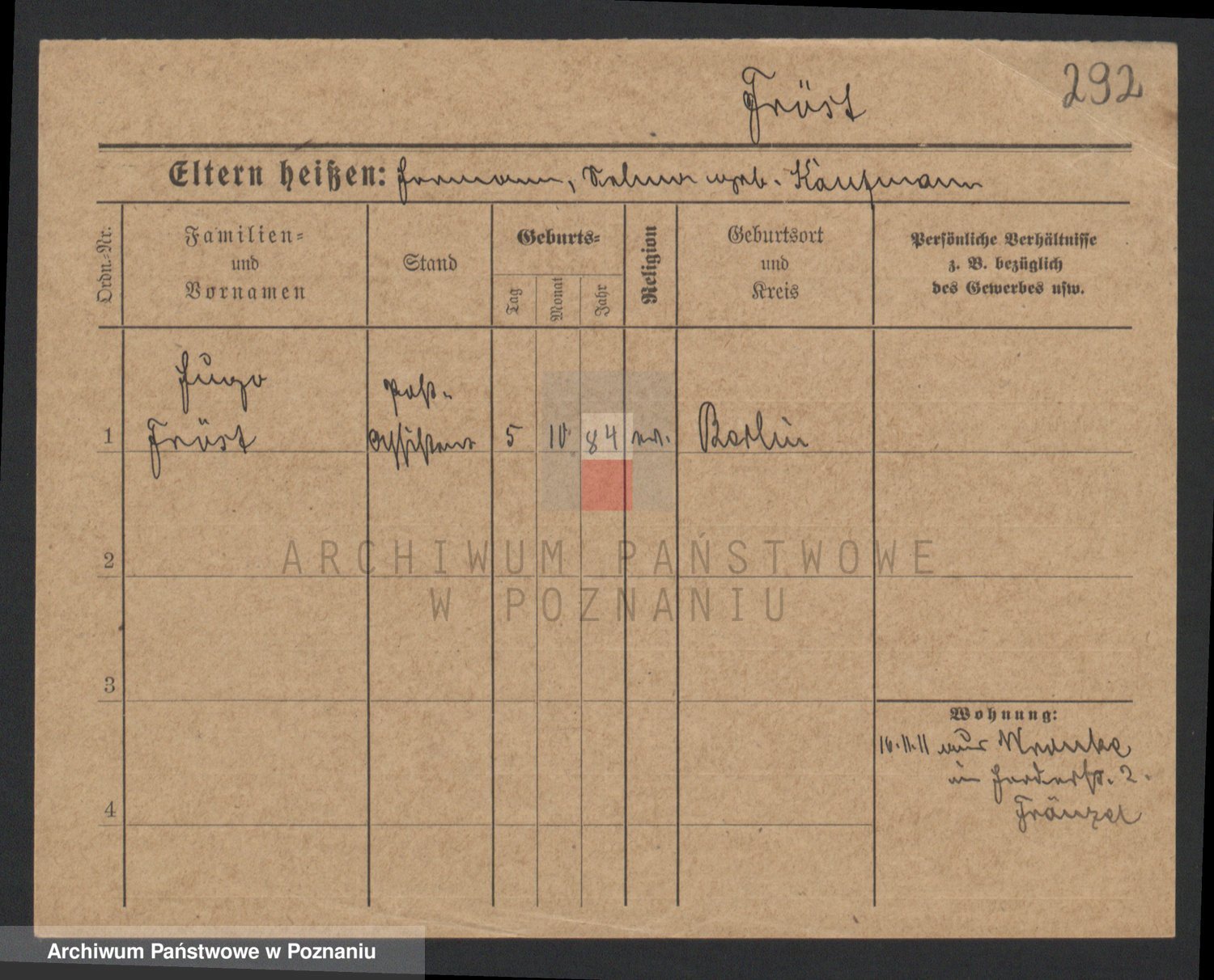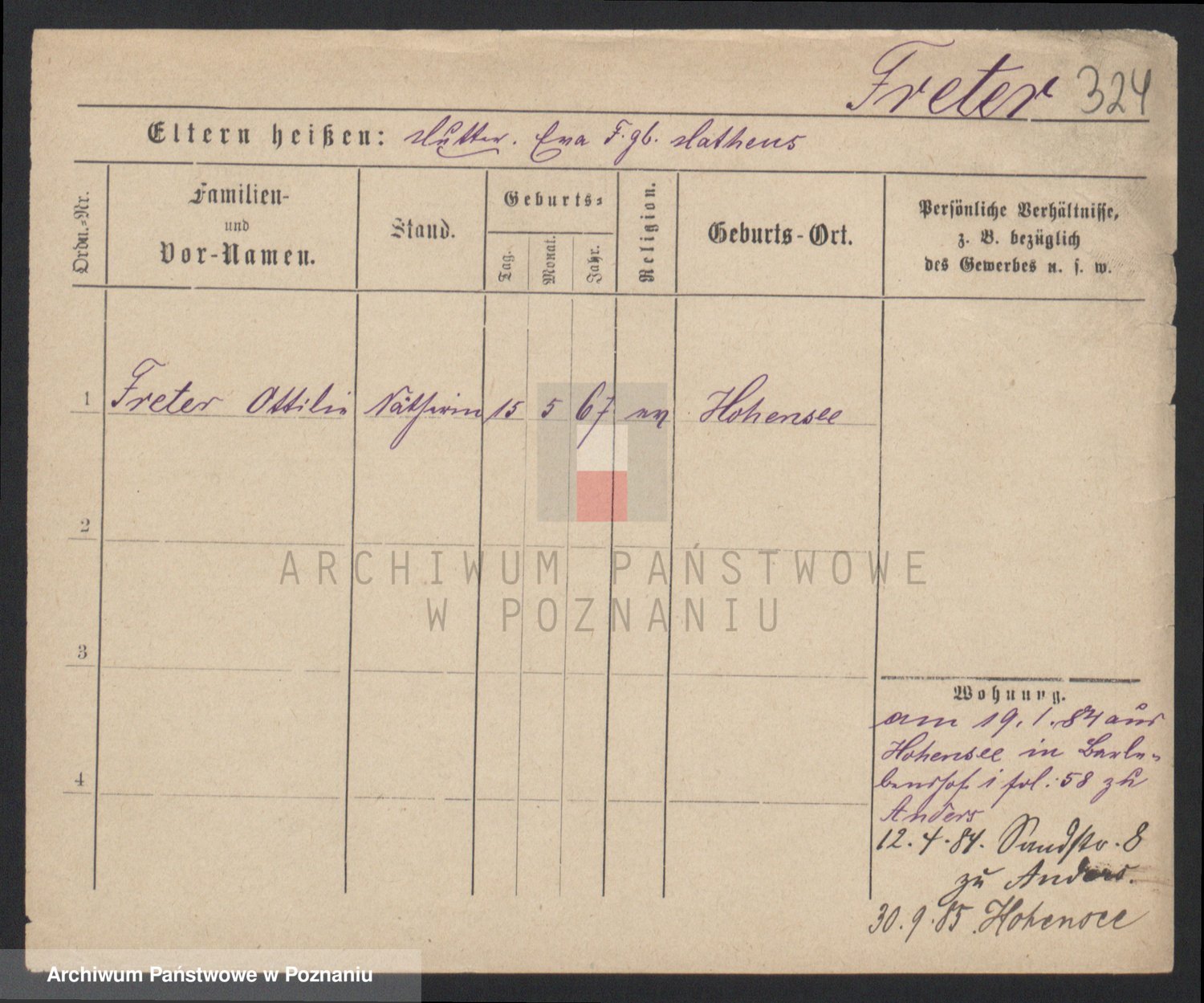 Frenk z d. König, Auguste Wilhelmine