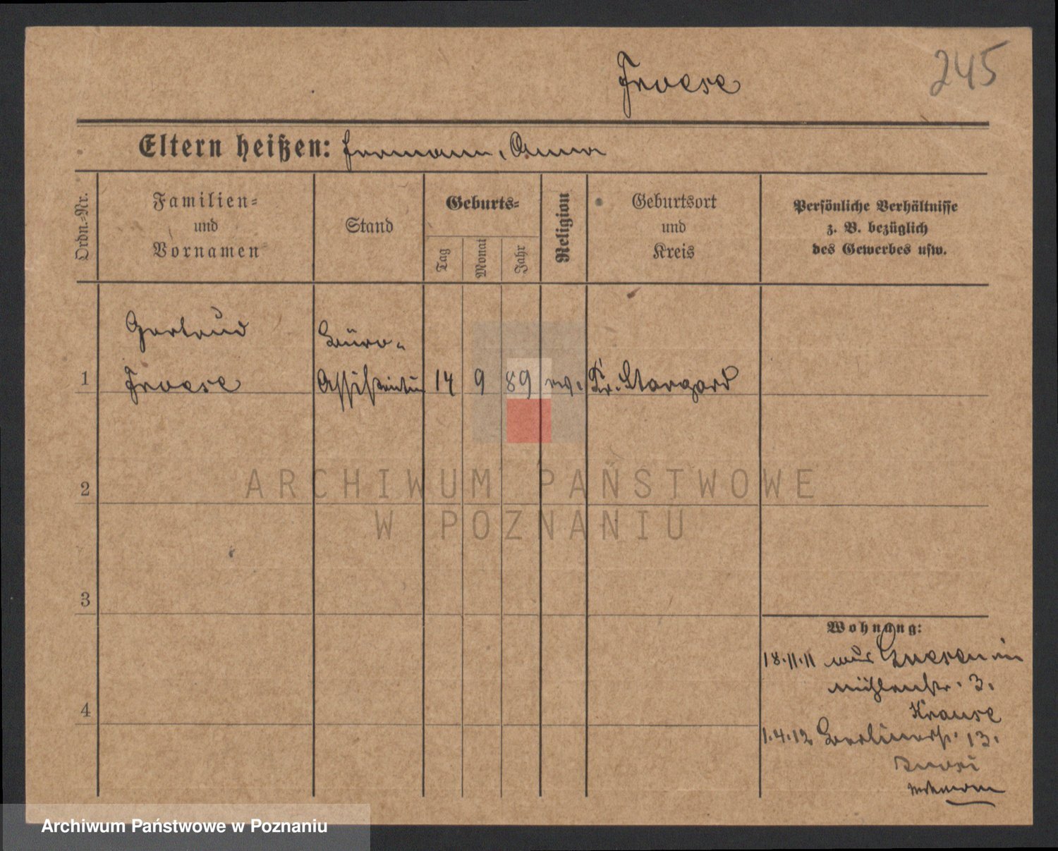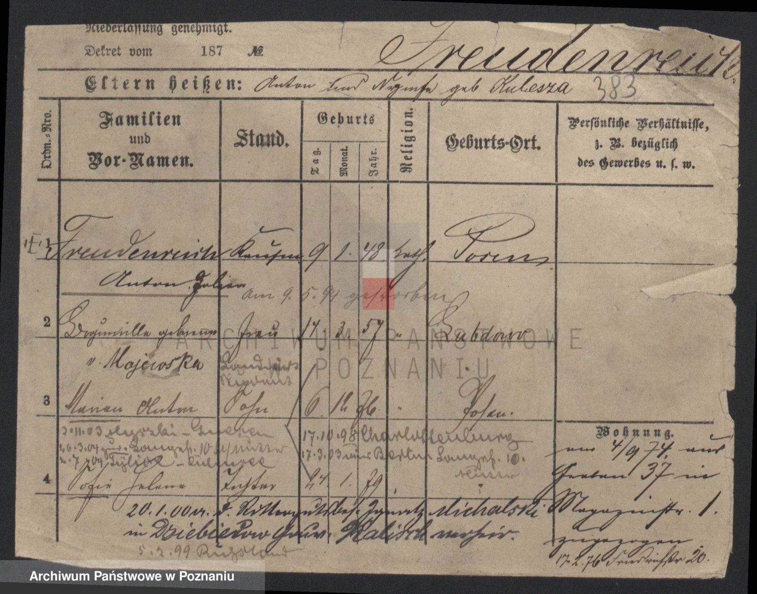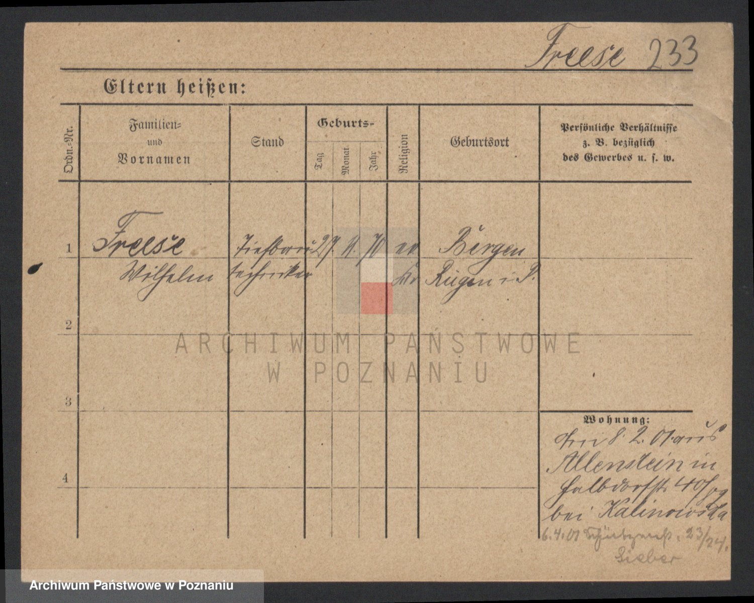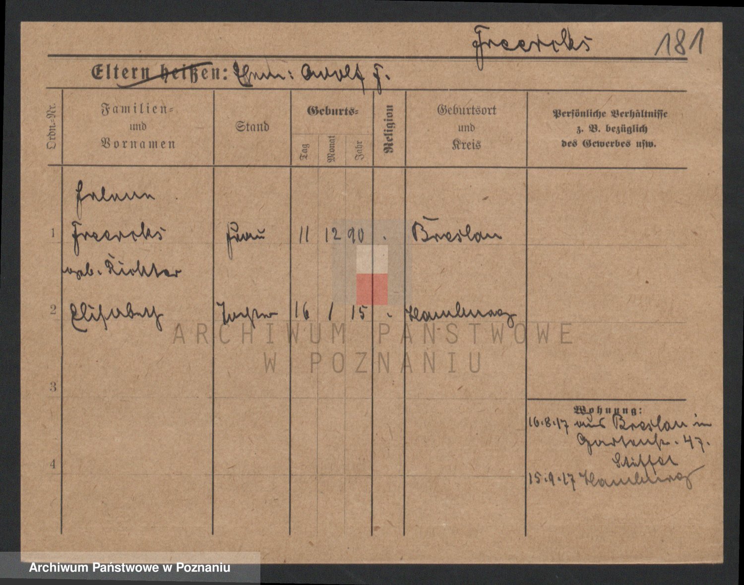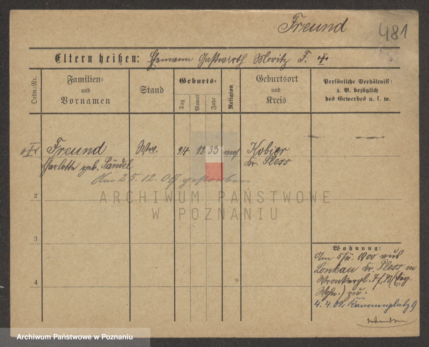 Frenk z d. König, Auguste Wilhelmine
