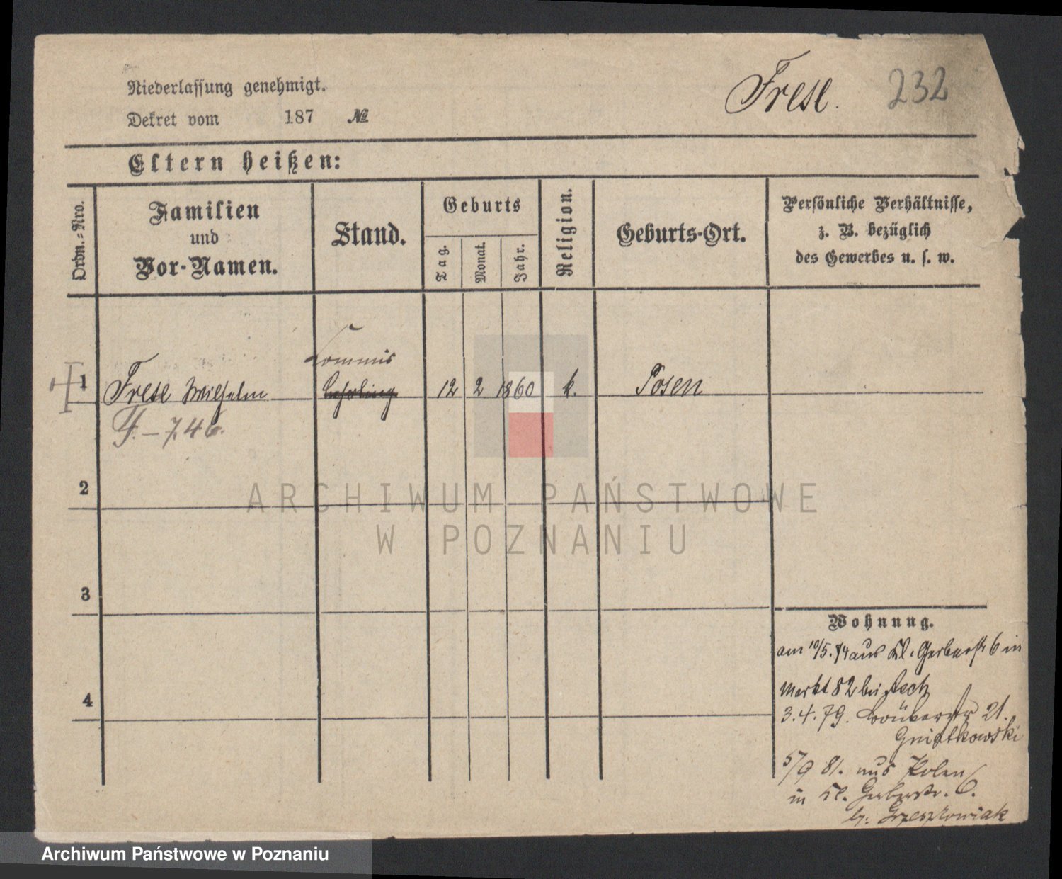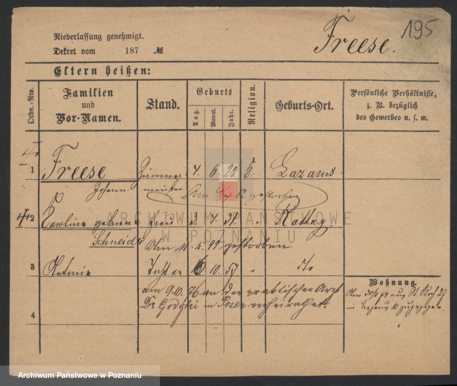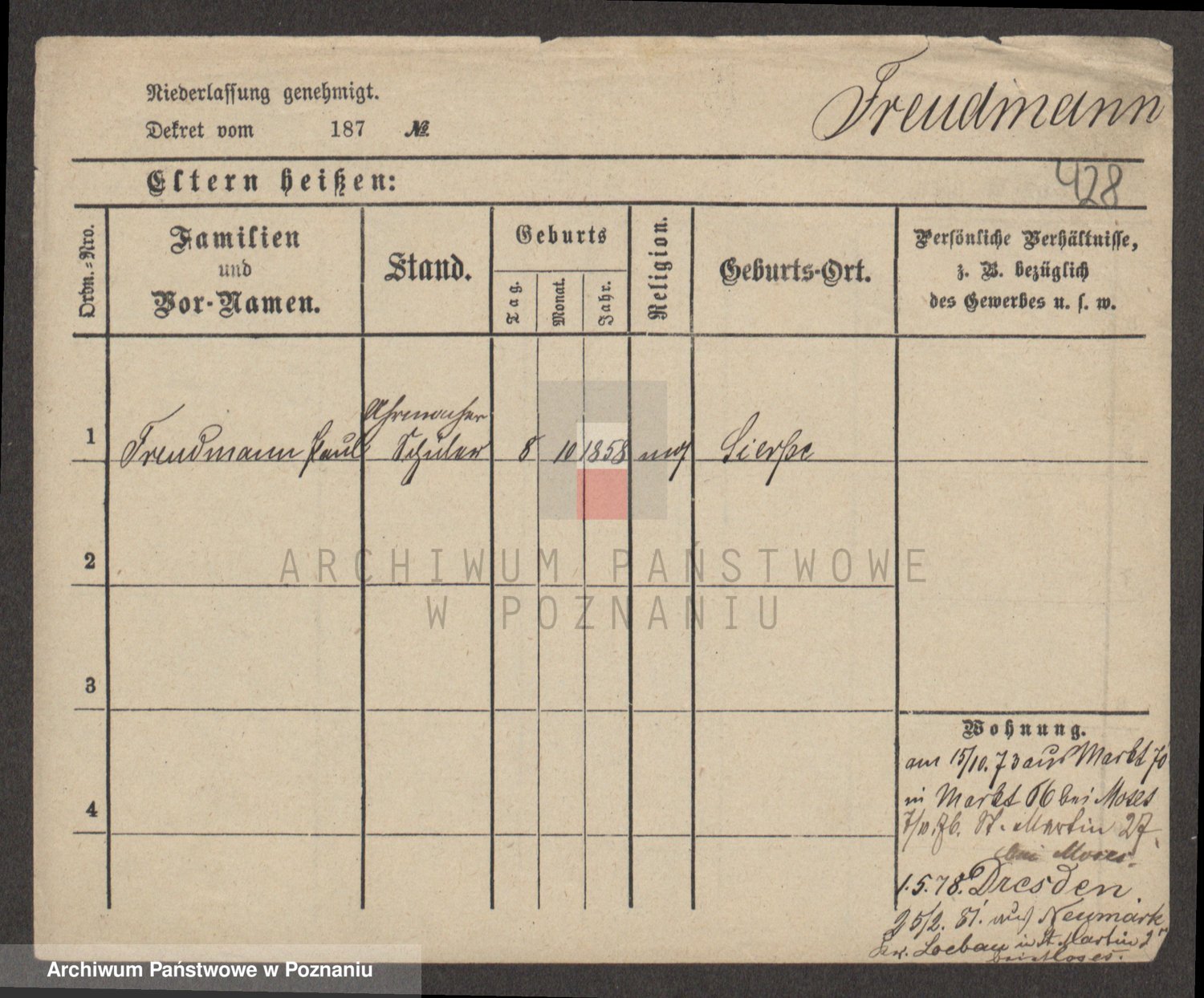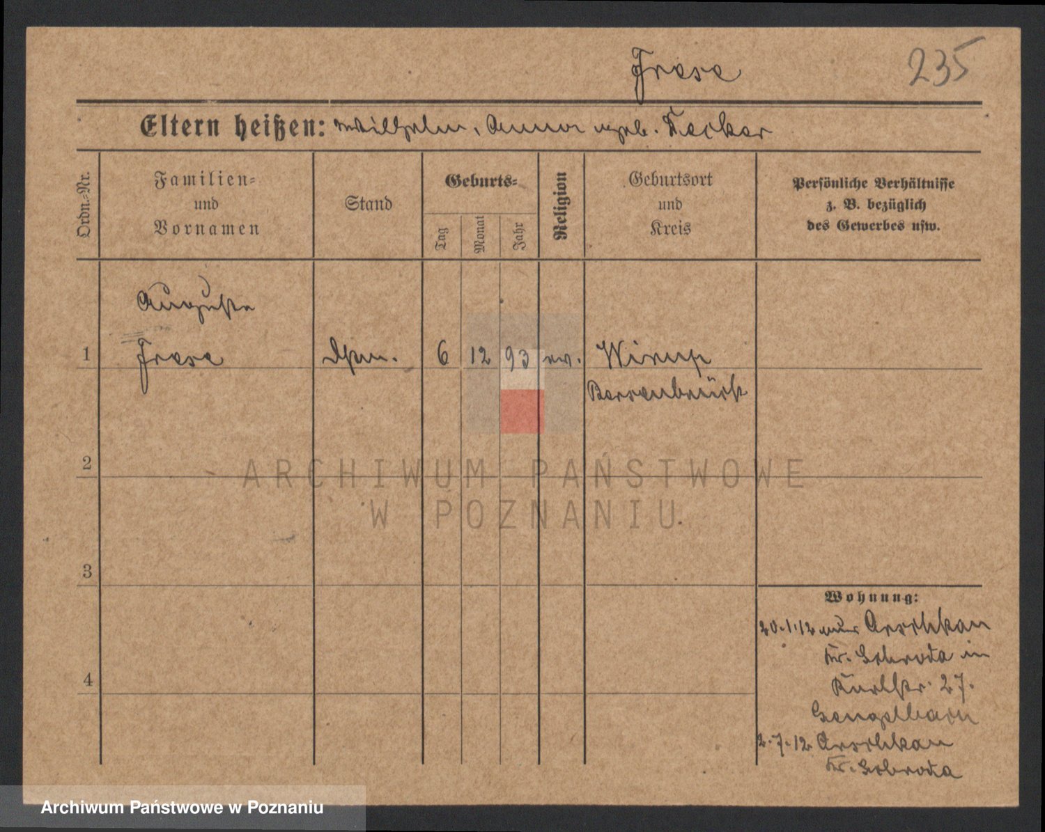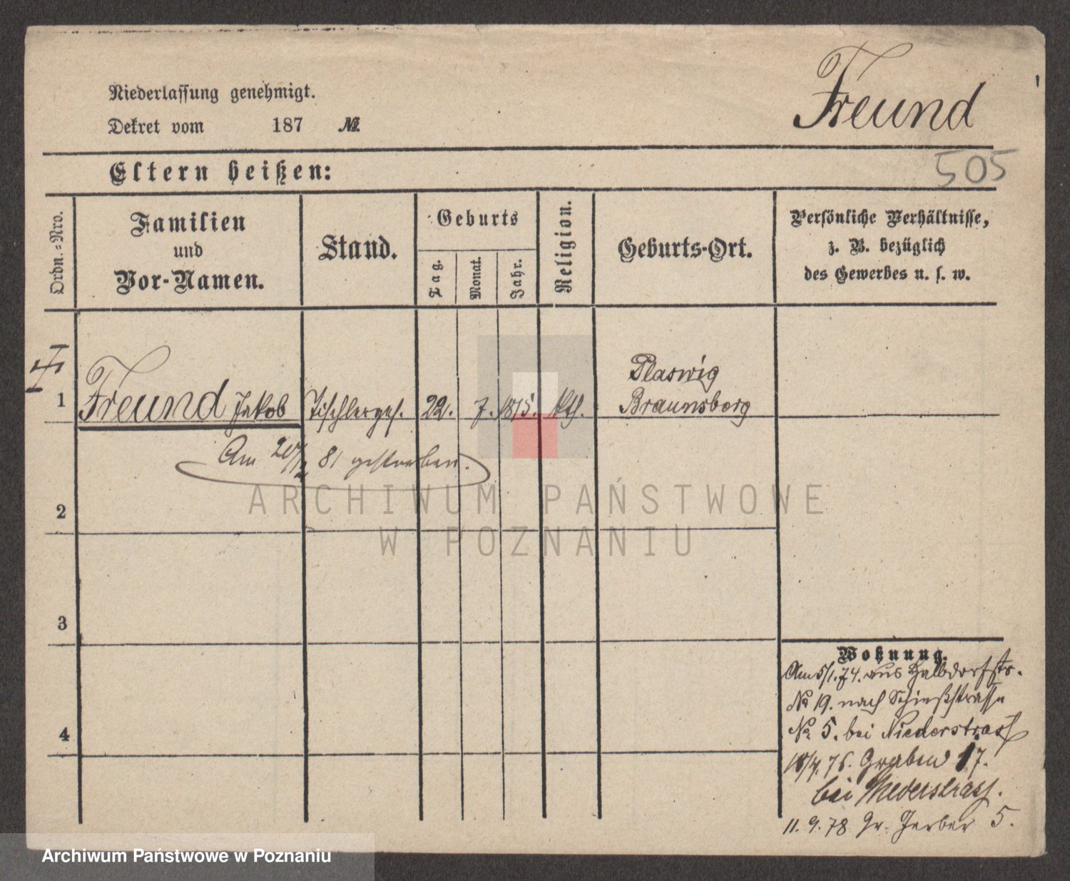 Frenk z d. König, Auguste Wilhelmine