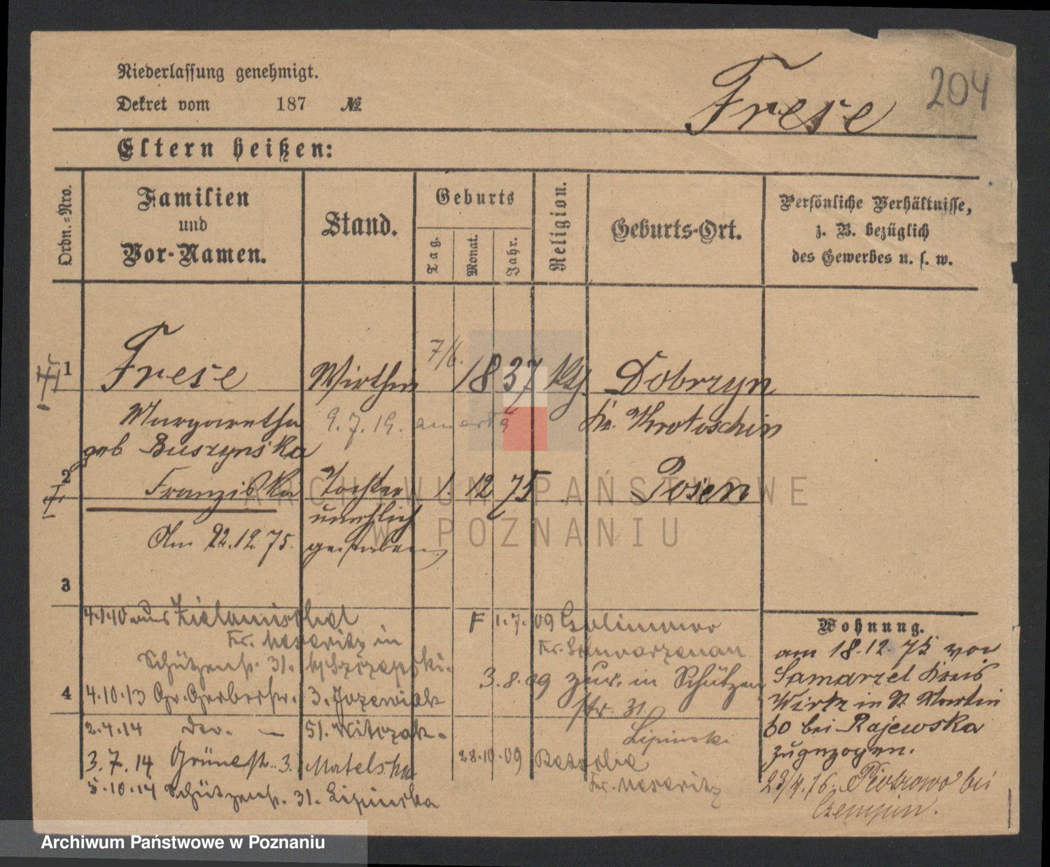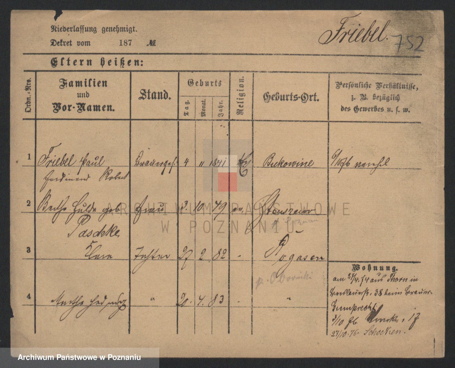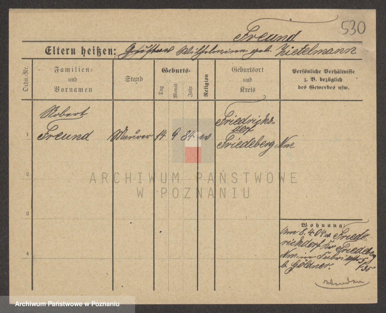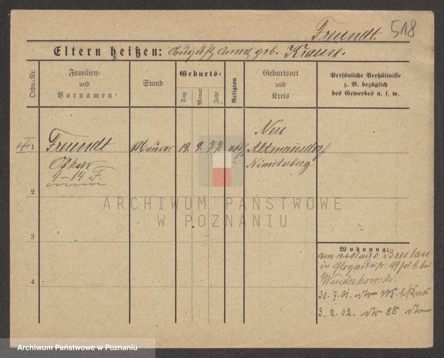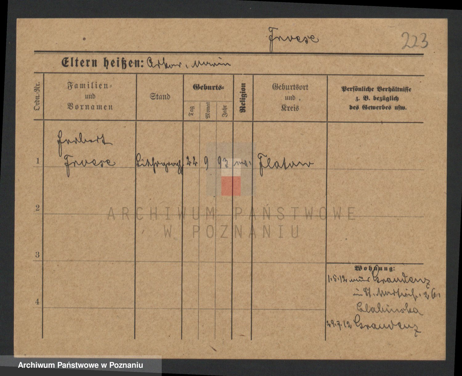 Frenk z d. König, Auguste Wilhelmine