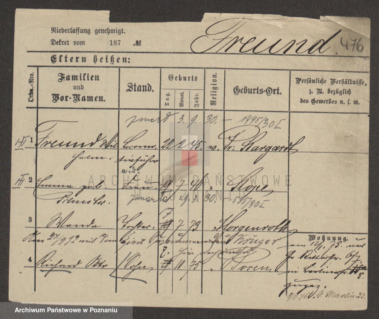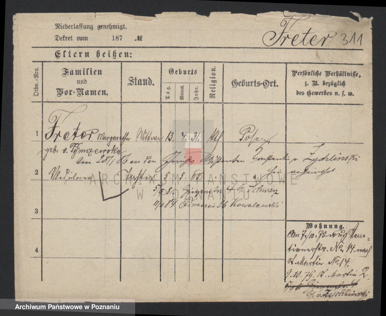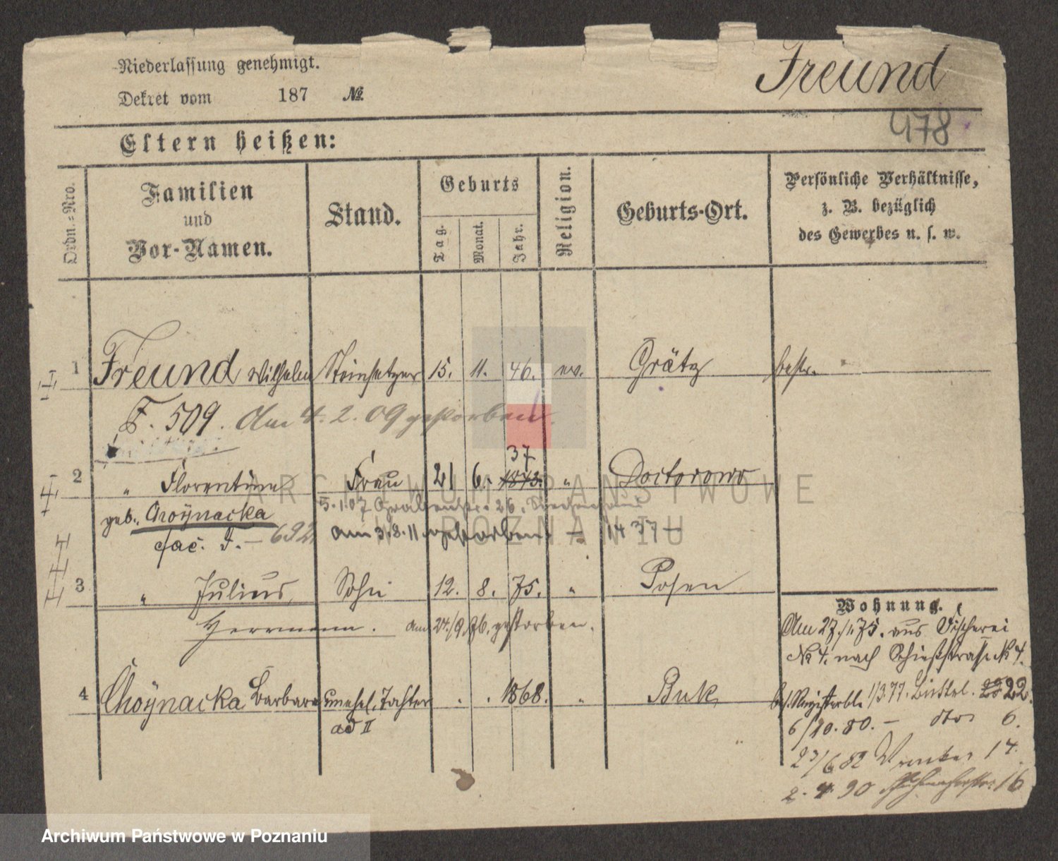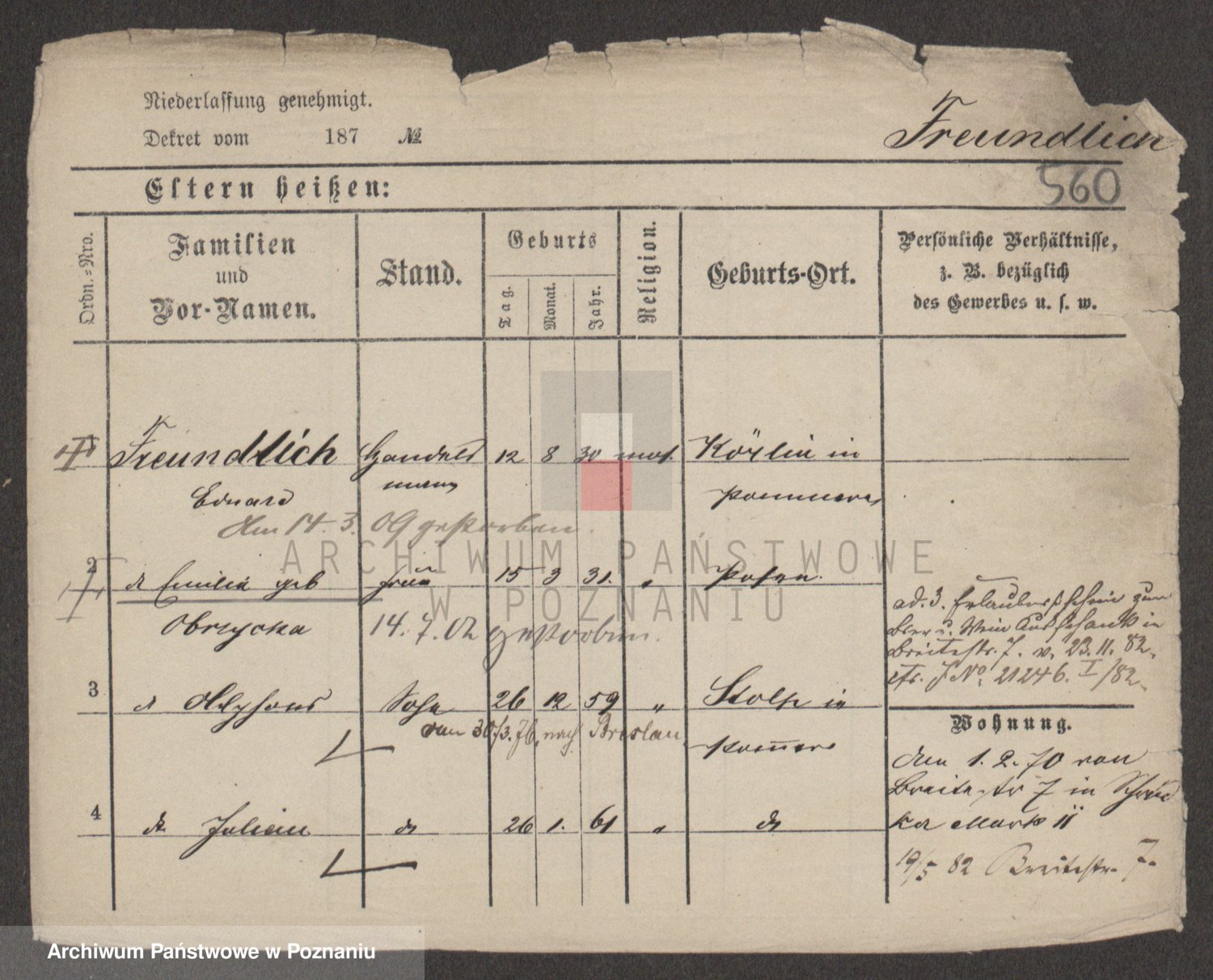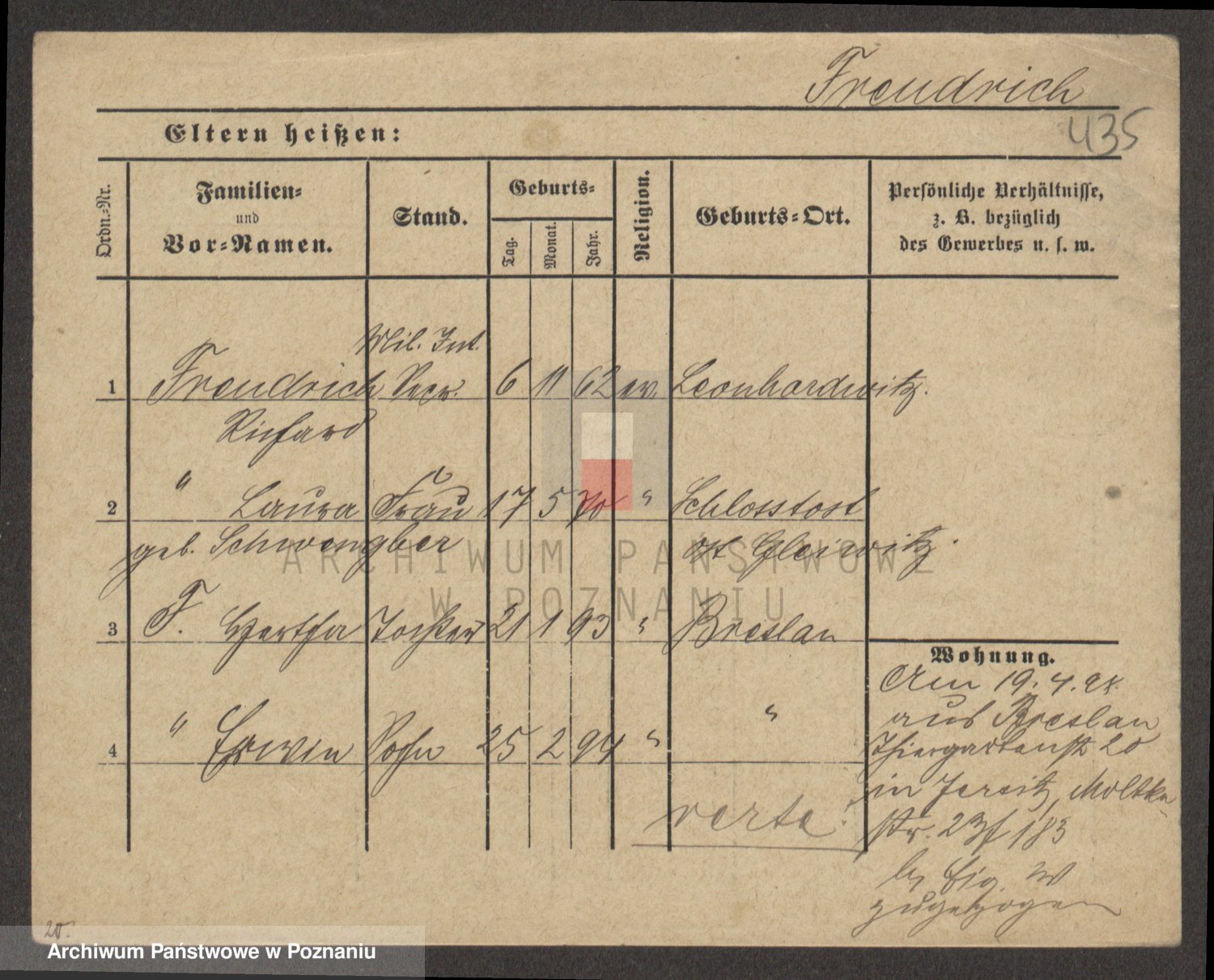Frenk z d. König, Auguste Wilhelmine