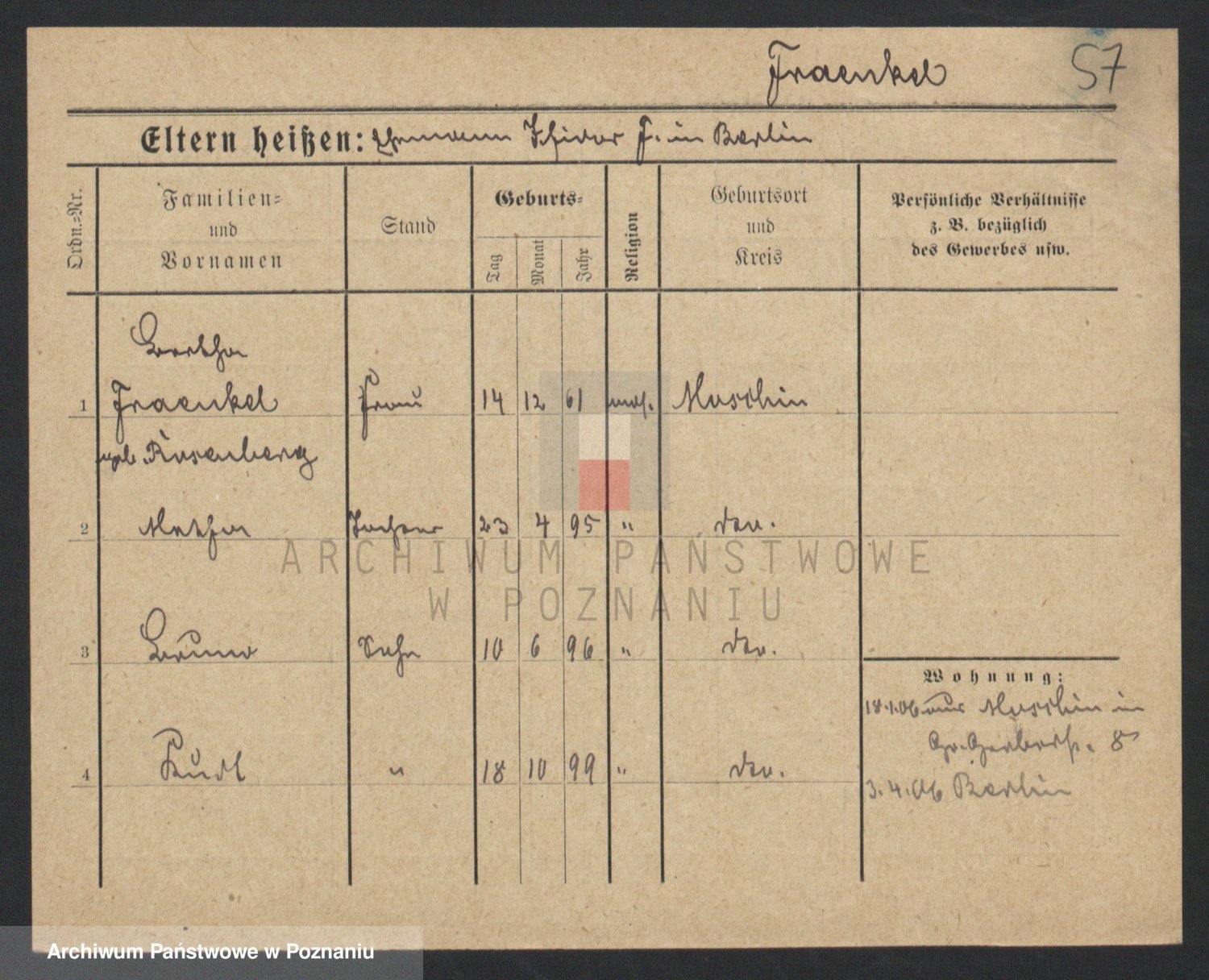 Fraenkel z d. Manasse, Rebecka