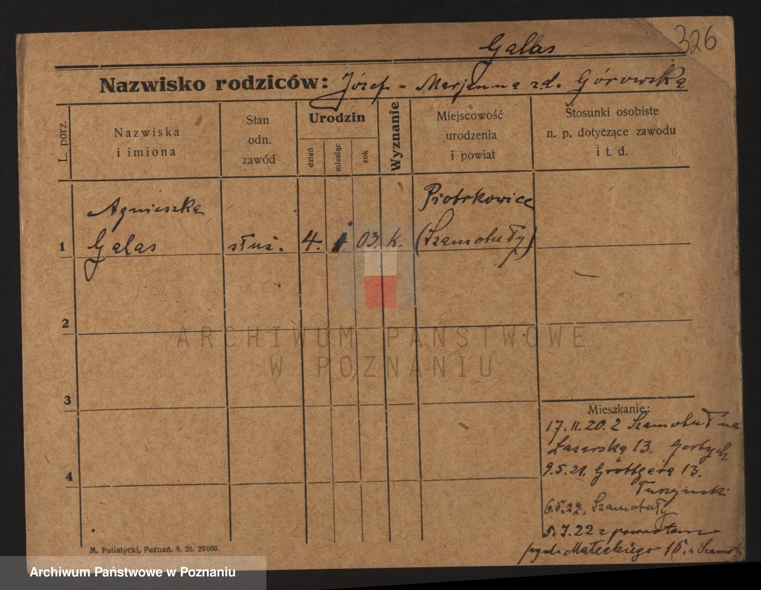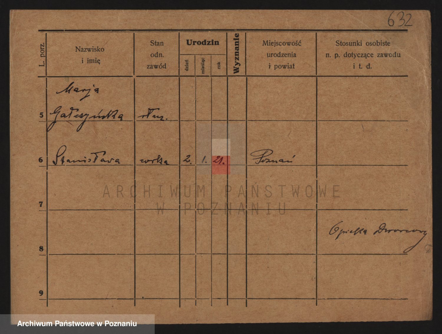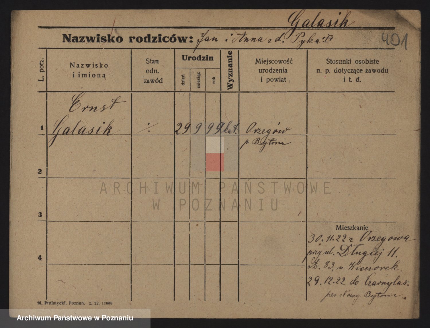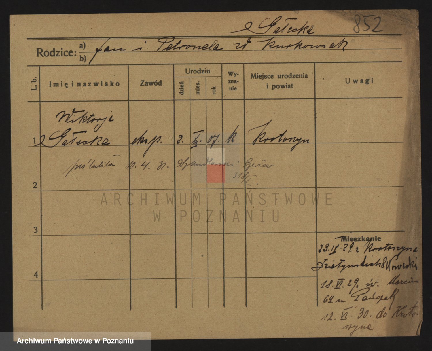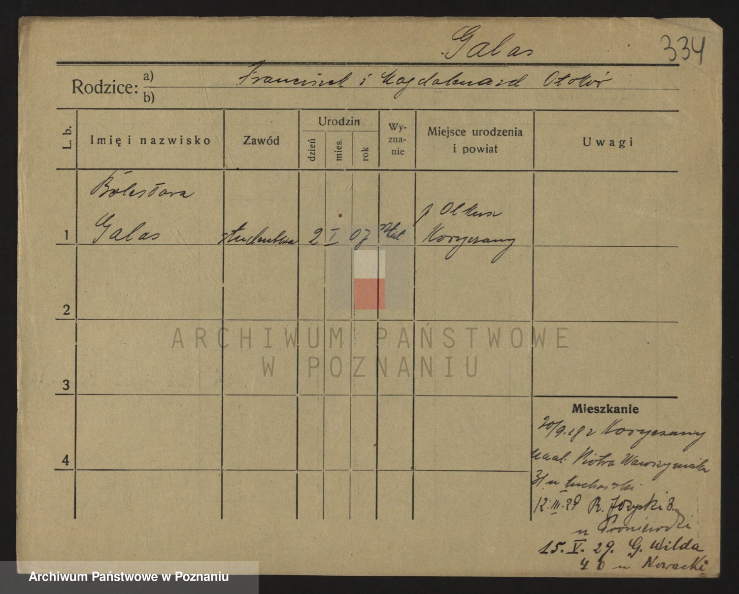 Podgląd karty osobowej dostępny jest po kliknięciu na nazwisko lub ikonkę karty. Można dokonywać powiększenia (ikony na górze) lub przechodzić między kolejnymi skanami (strzałki po bokach).