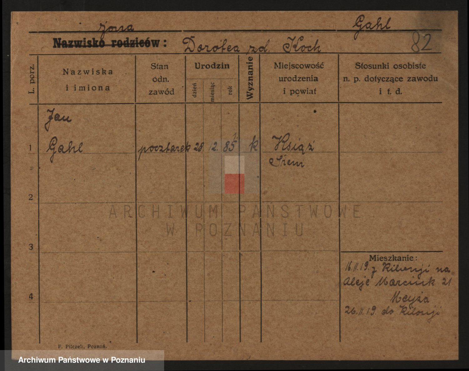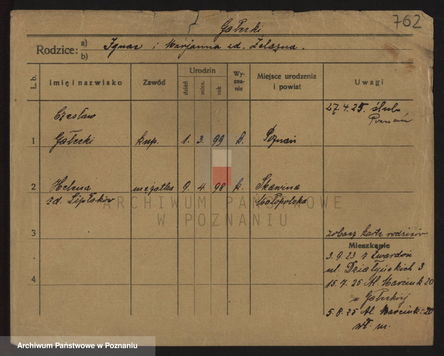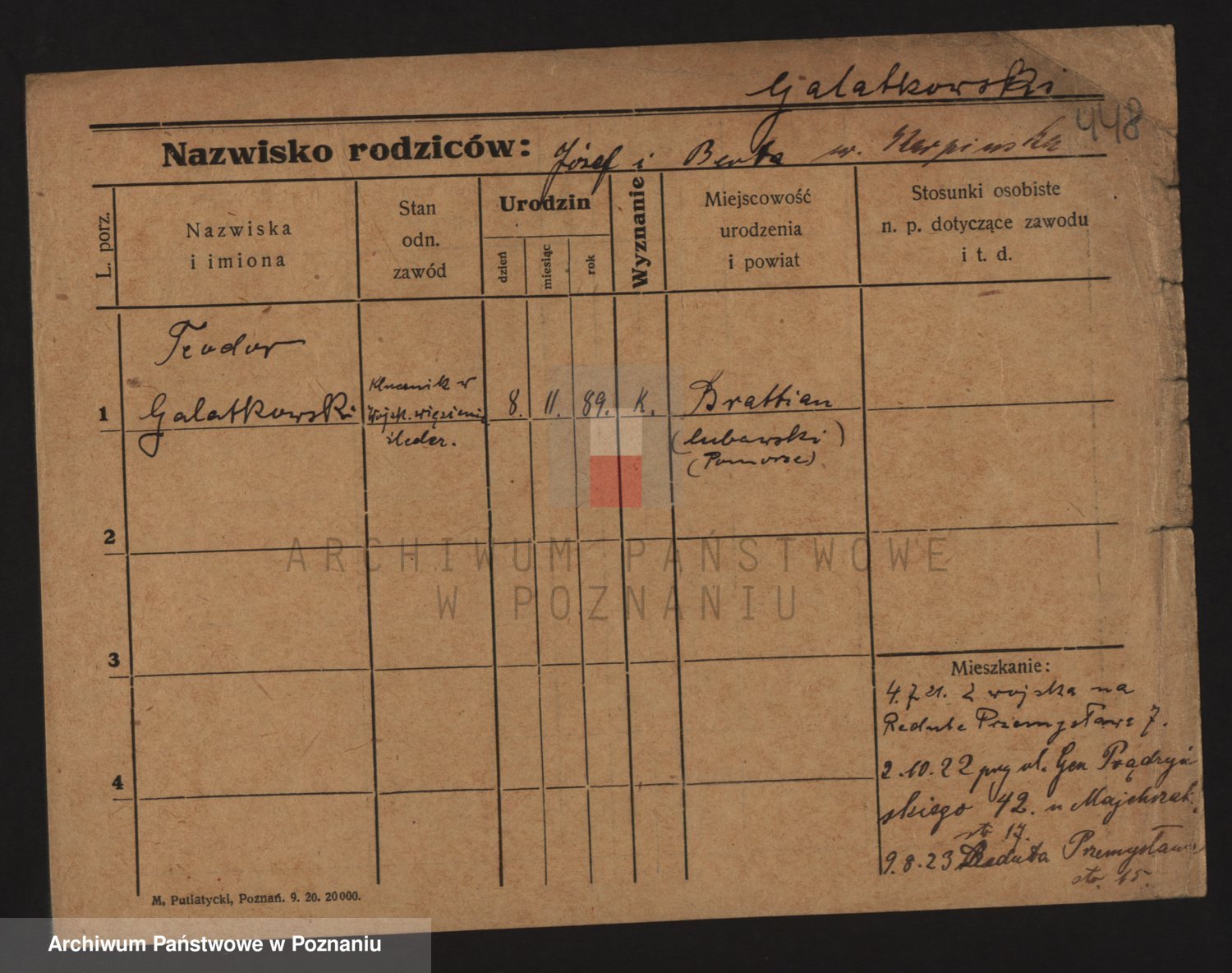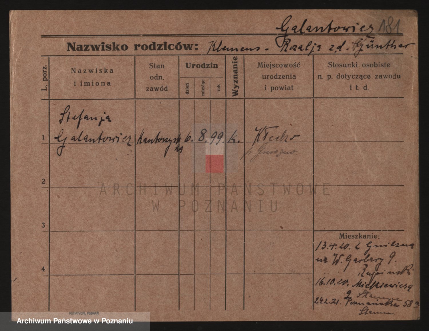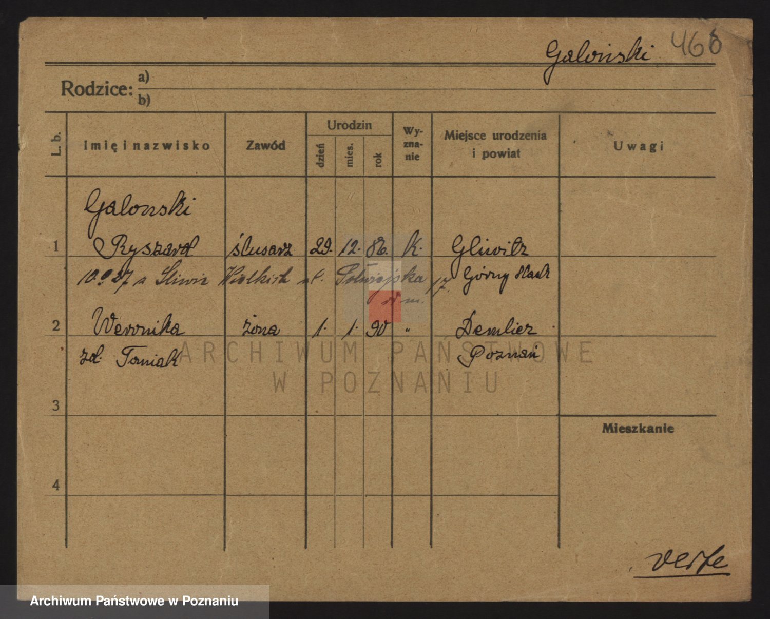Podgląd karty osobowej dostępny jest po kliknięciu na nazwisko lub ikonkę karty. Można dokonywać powiększenia (ikony na górze) lub przechodzić między kolejnymi skanami (strzałki po bokach).