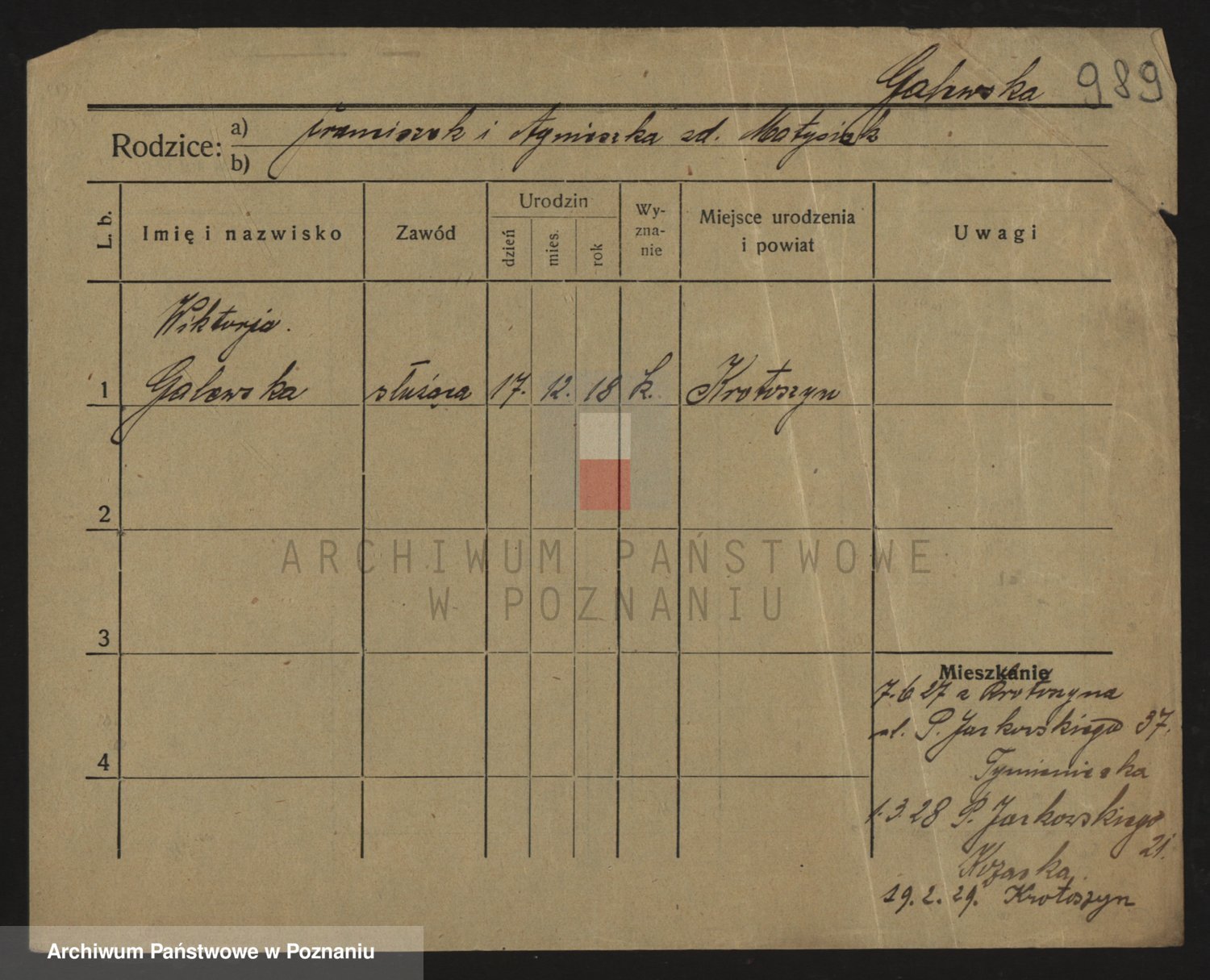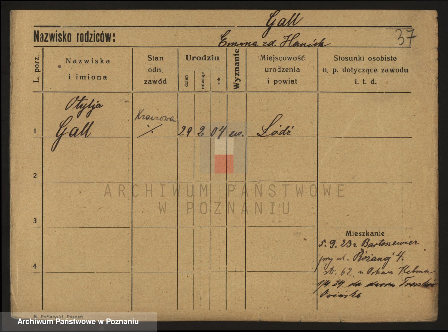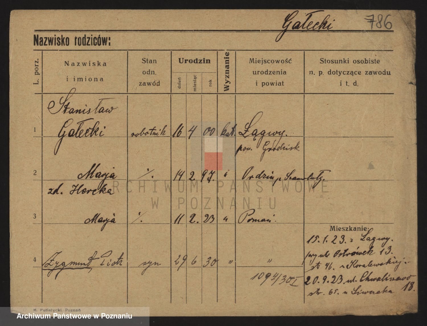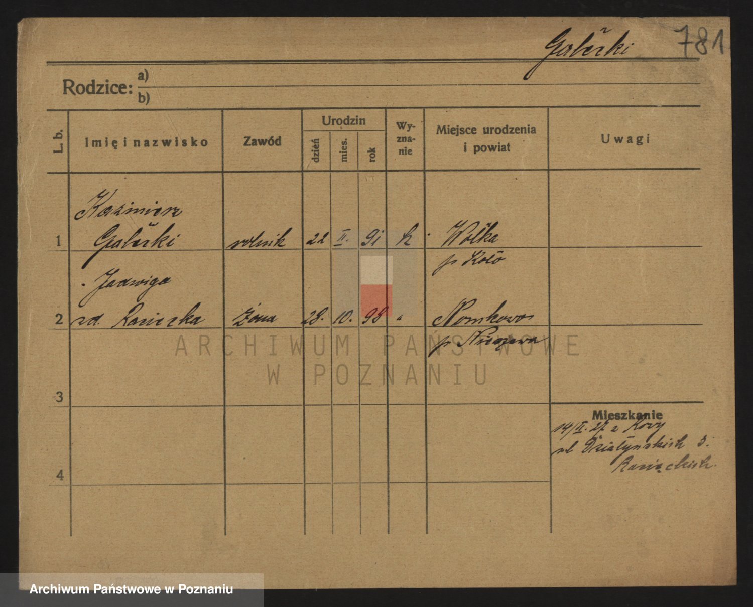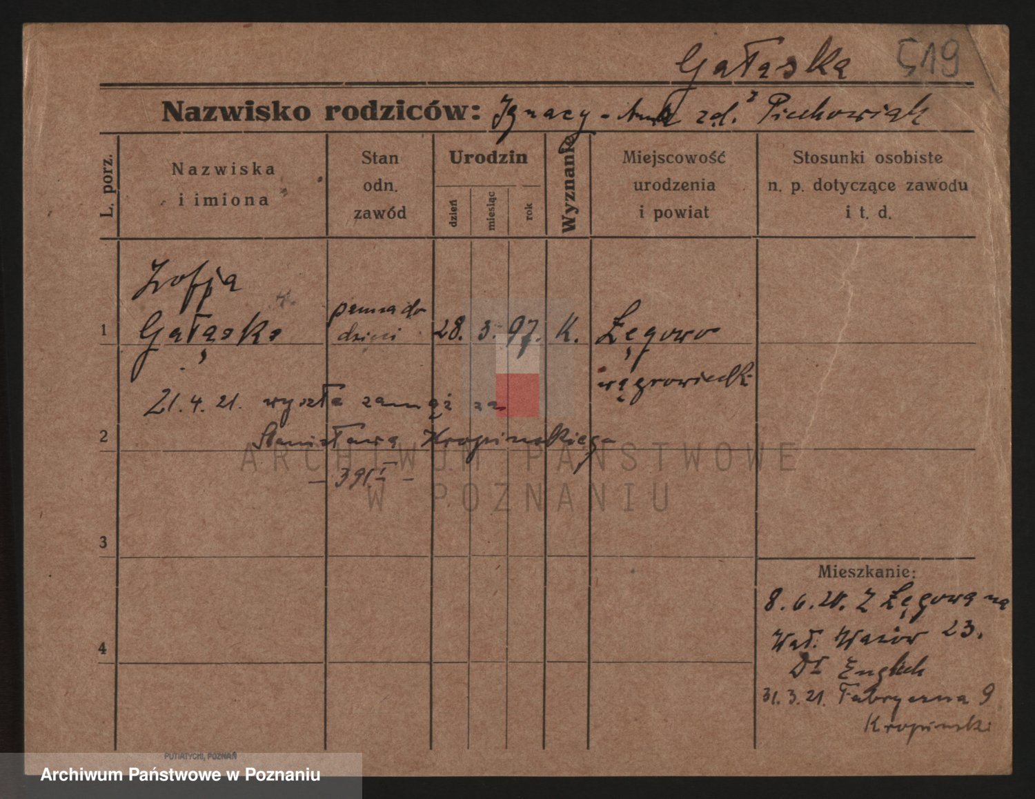 Podgląd karty osobowej dostępny jest po kliknięciu na nazwisko lub ikonkę karty. Można dokonywać powiększenia (ikony na górze) lub przechodzić między kolejnymi skanami (strzałki po bokach).