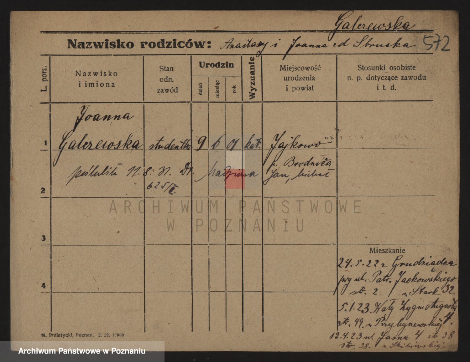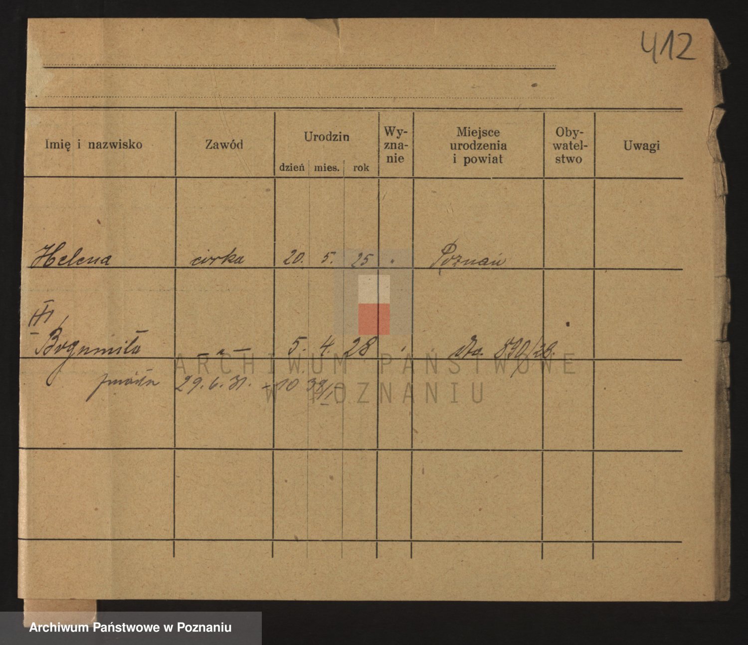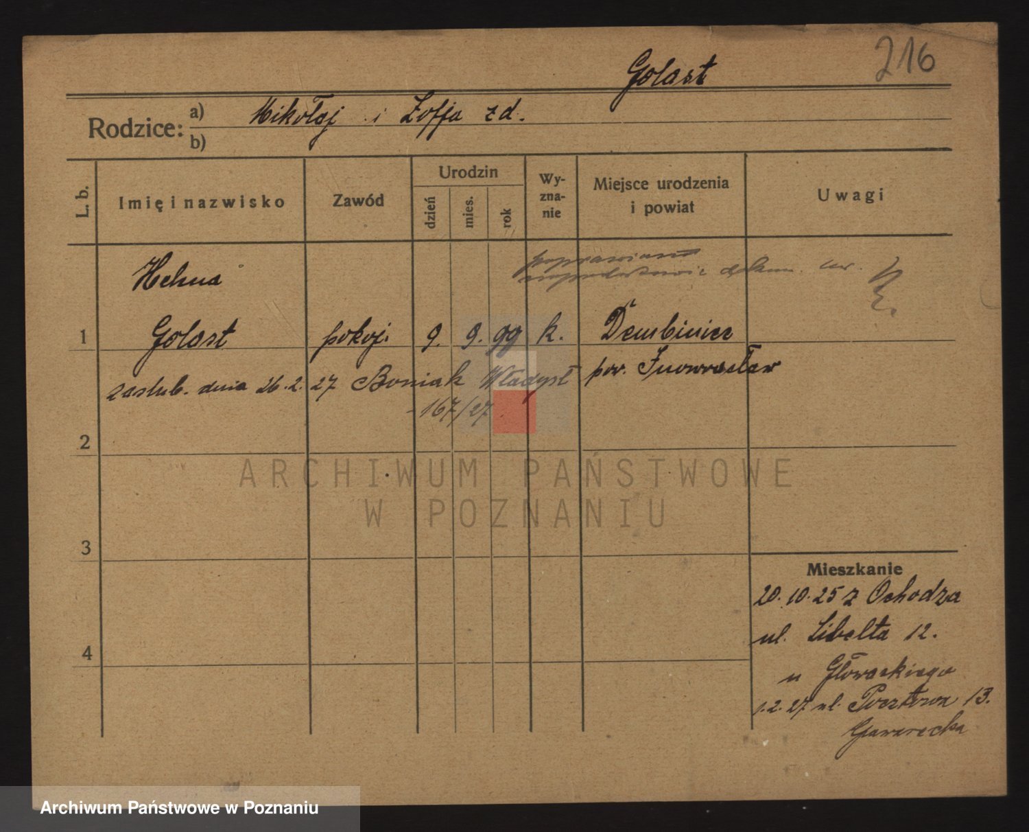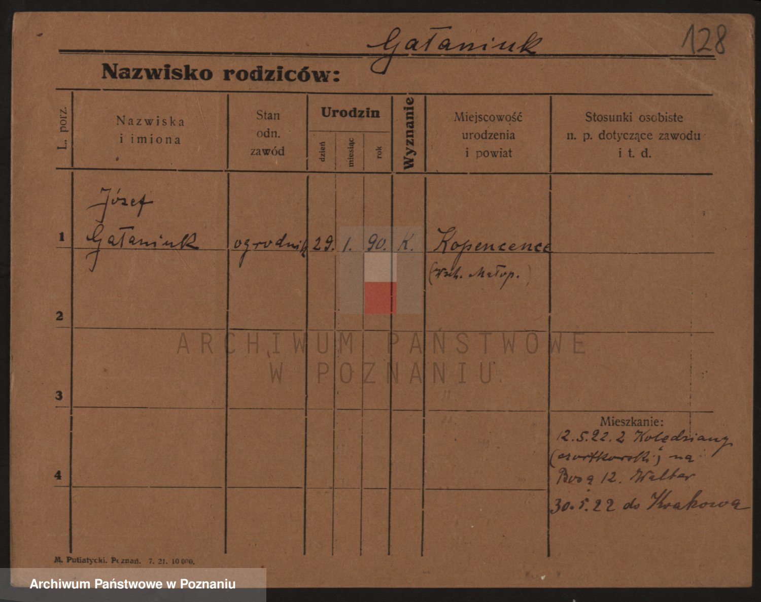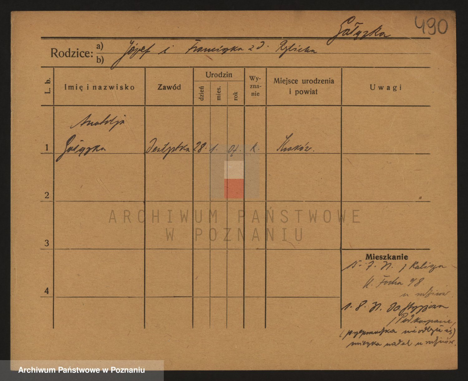 Podgląd karty osobowej dostępny jest po kliknięciu na nazwisko lub ikonkę karty. Można dokonywać powiększenia (ikony na górze) lub przechodzić między kolejnymi skanami (strzałki po bokach).