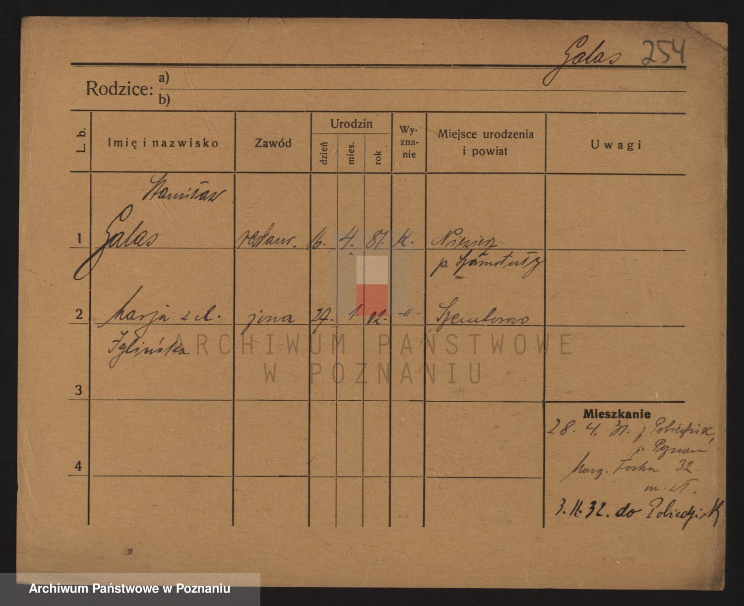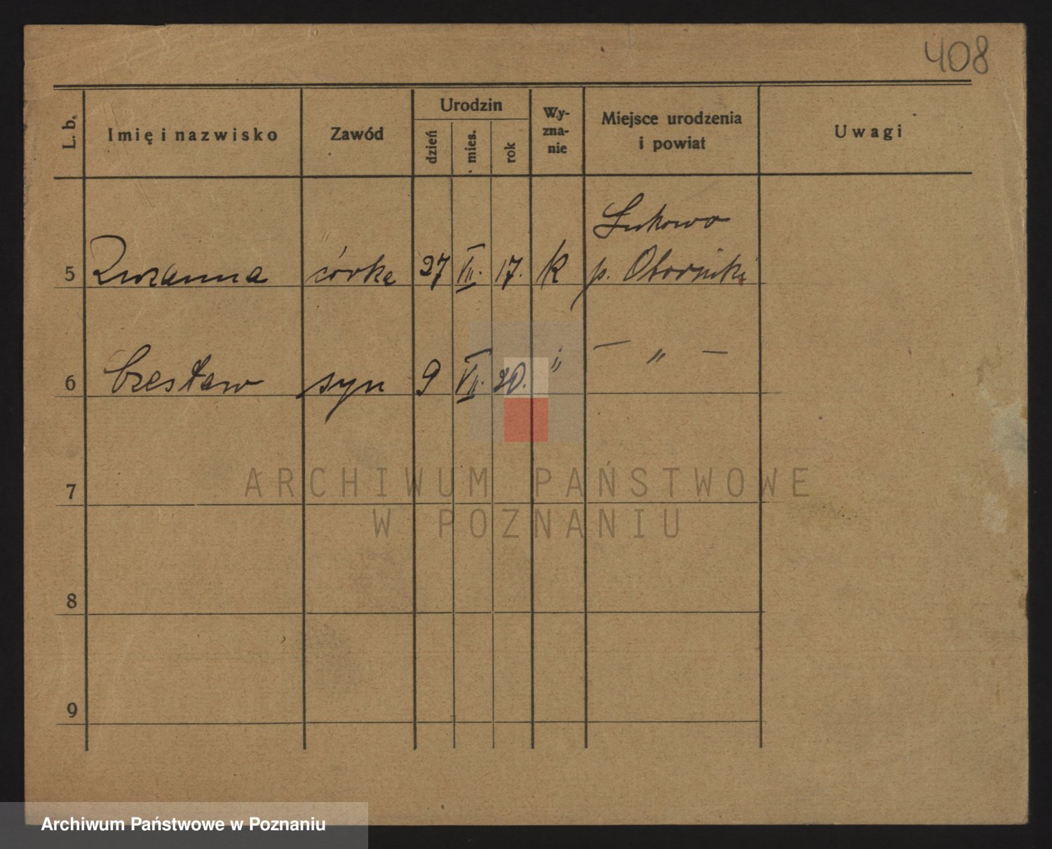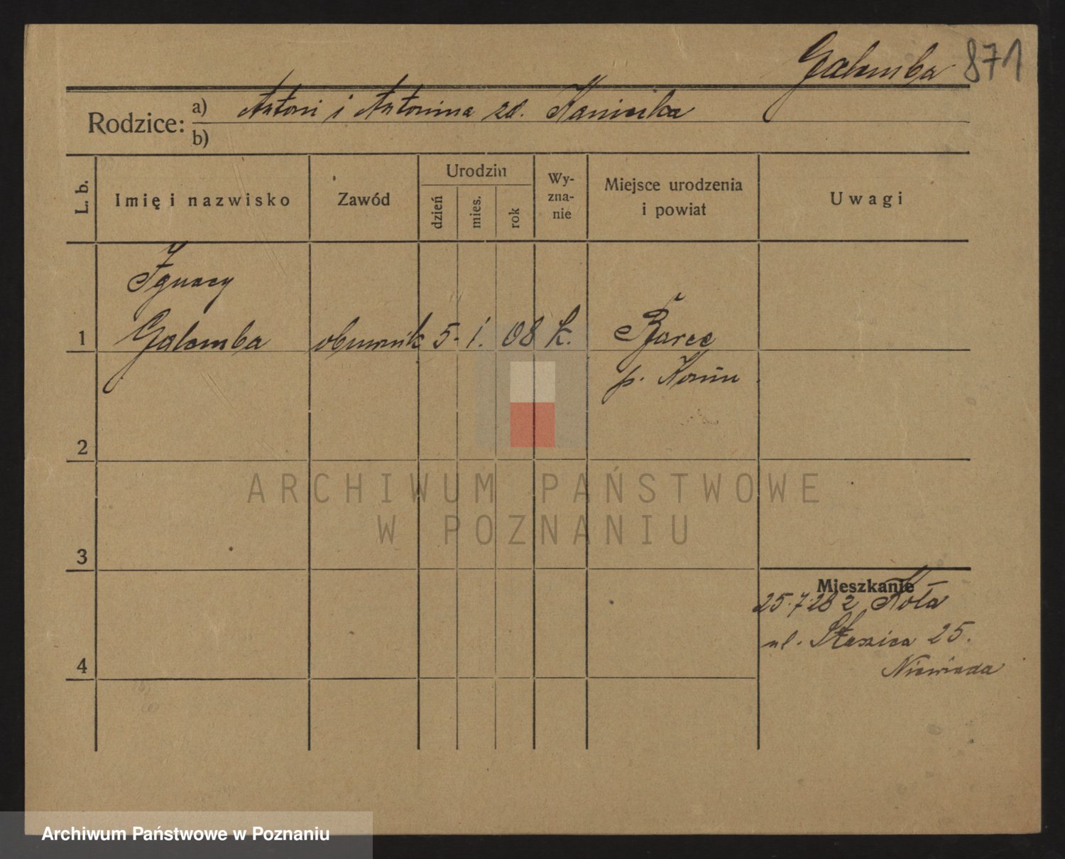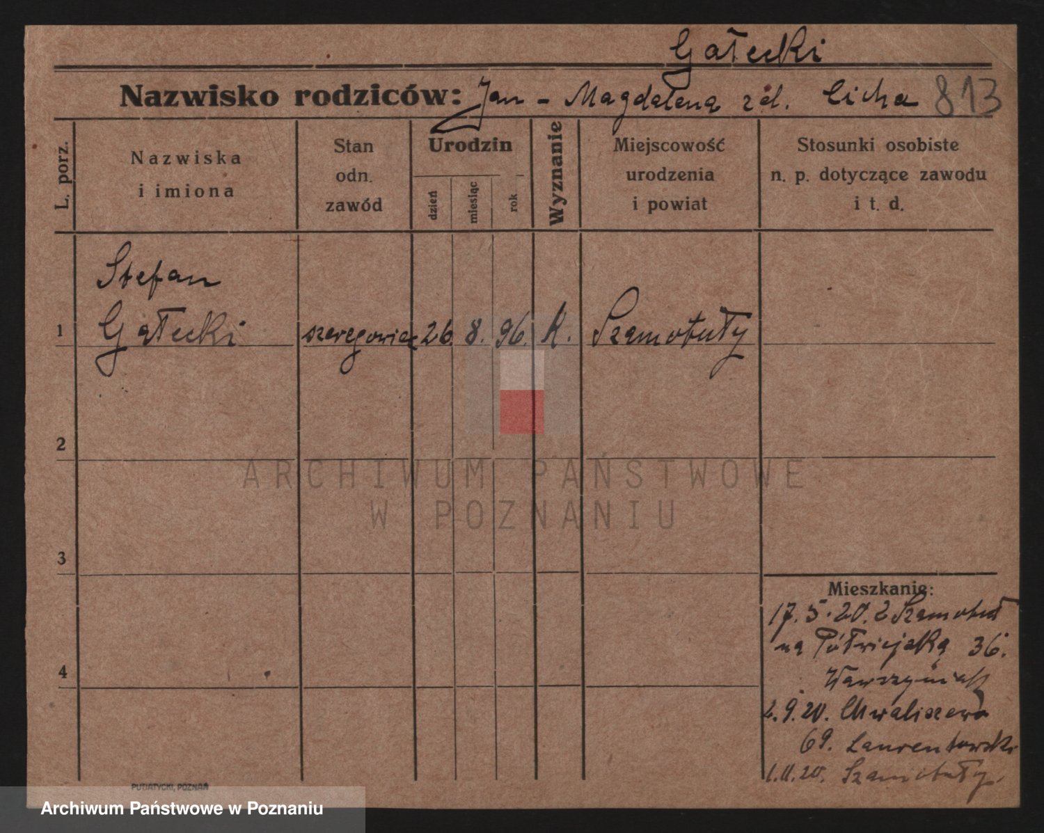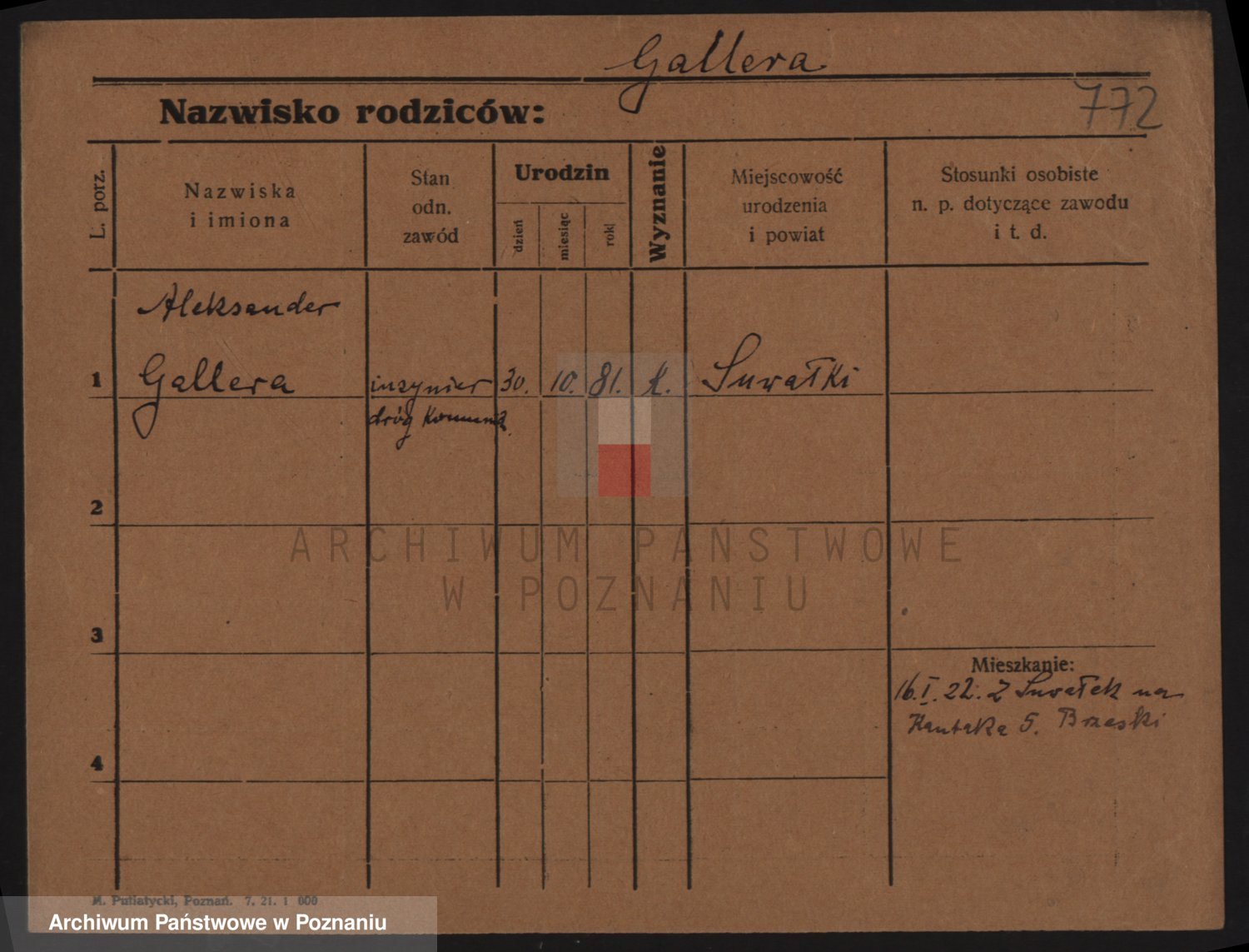 Podgląd karty osobowej dostępny jest po kliknięciu na nazwisko lub ikonkę karty. Można dokonywać powiększenia (ikony na górze) lub przechodzić między kolejnymi skanami (strzałki po bokach).