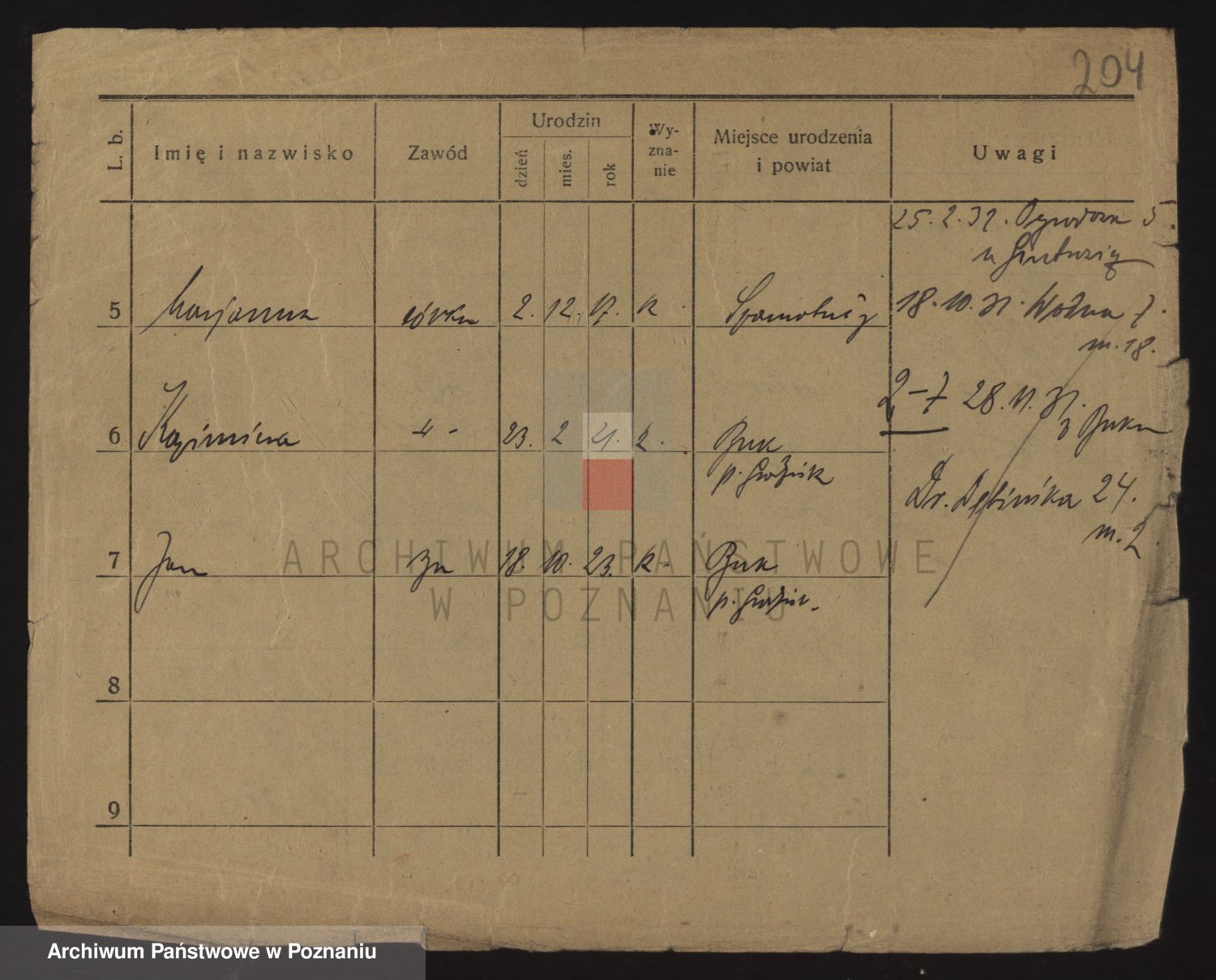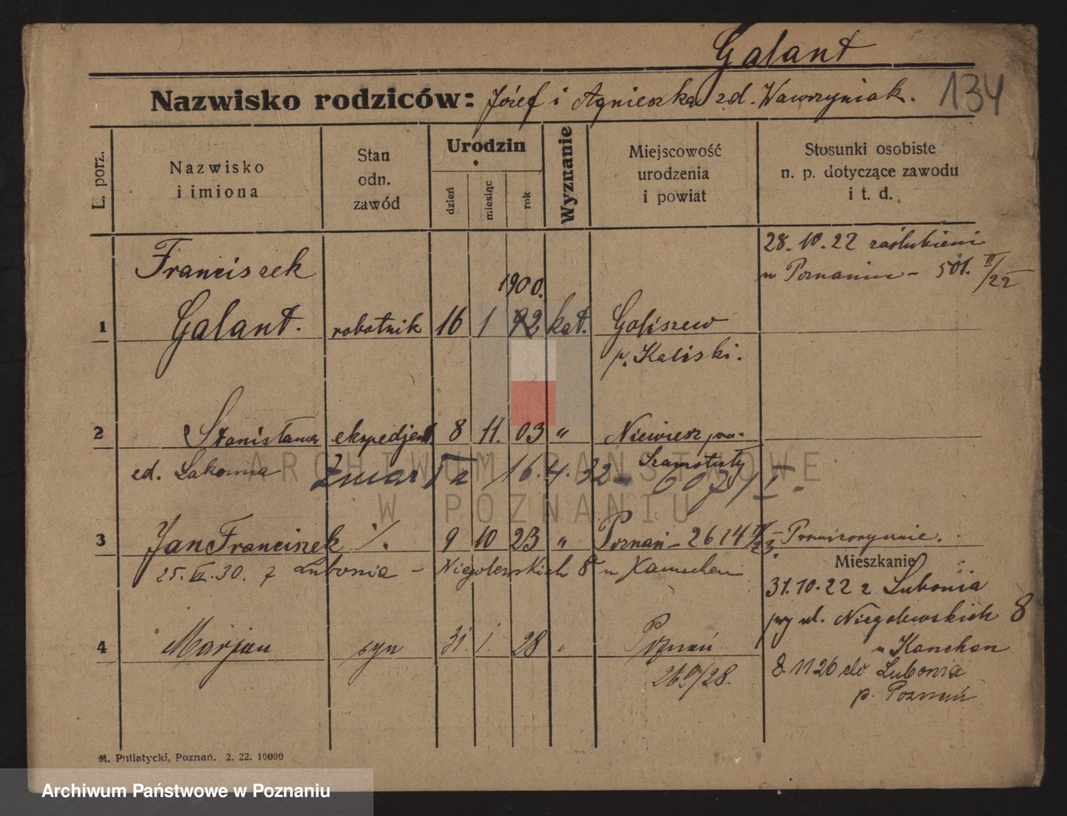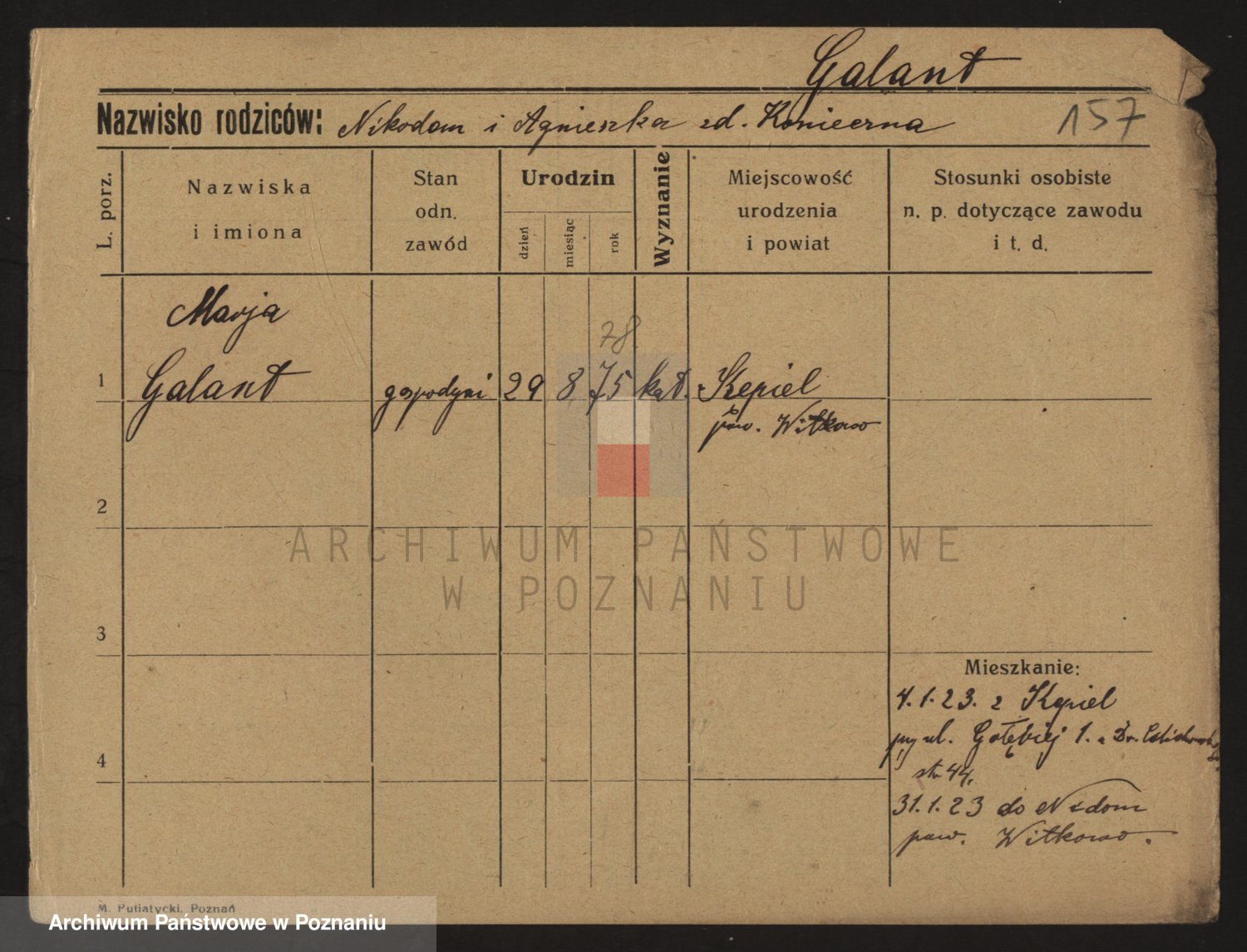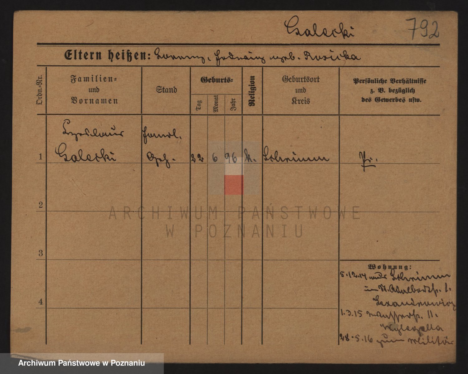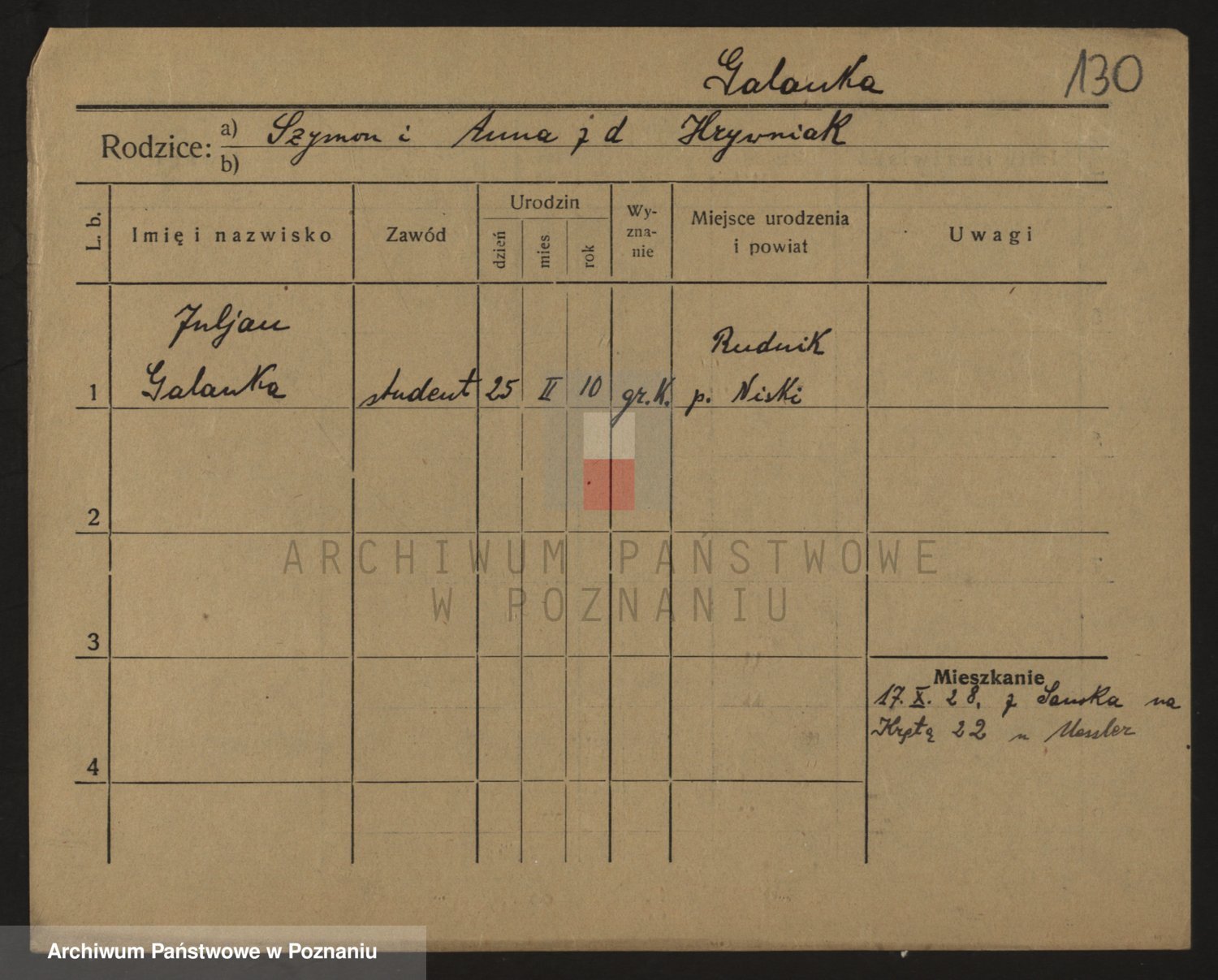 Podgląd karty osobowej dostępny jest po kliknięciu na nazwisko lub ikonkę karty. Można dokonywać powiększenia (ikony na górze) lub przechodzić między kolejnymi skanami (strzałki po bokach).