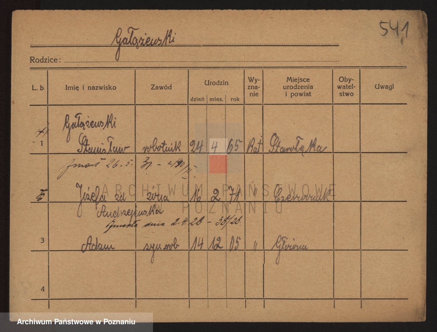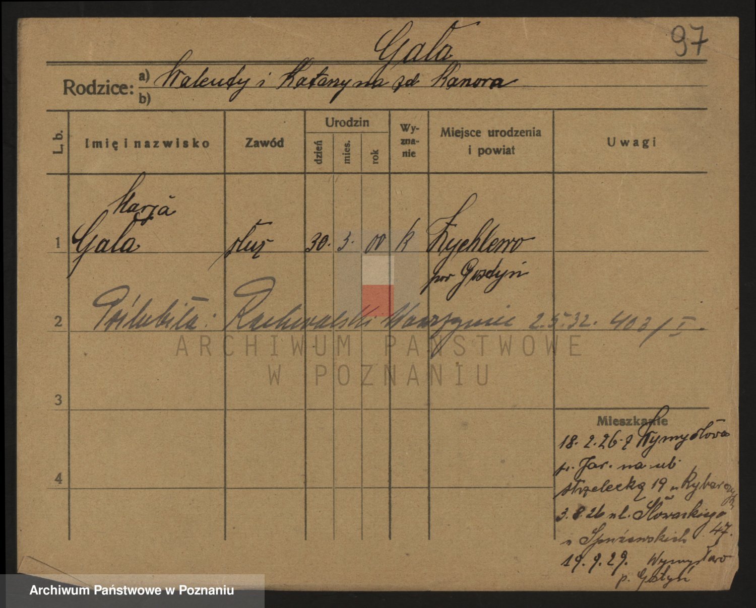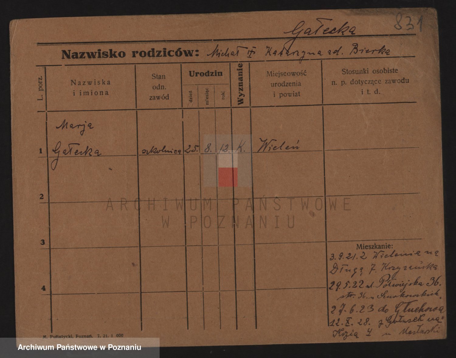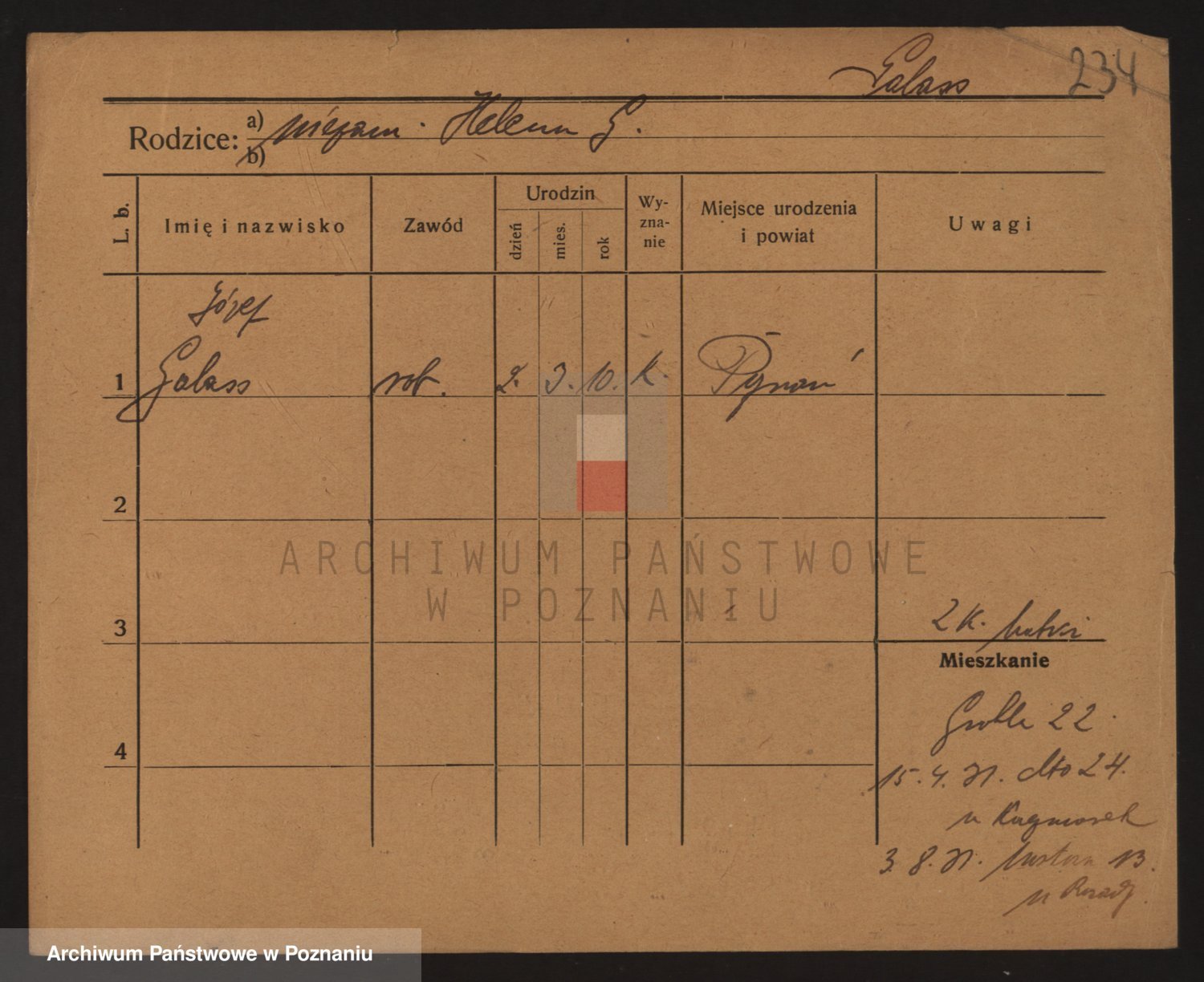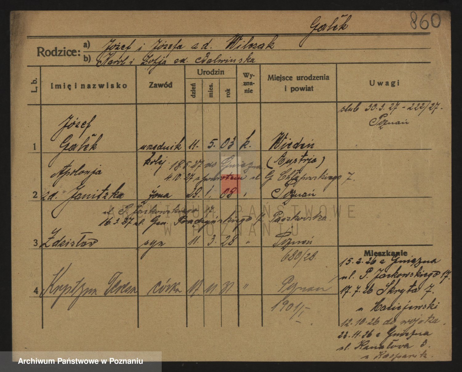 Podgląd karty osobowej dostępny jest po kliknięciu na nazwisko lub ikonkę karty. Można dokonywać powiększenia (ikony na górze) lub przechodzić między kolejnymi skanami (strzałki po bokach).