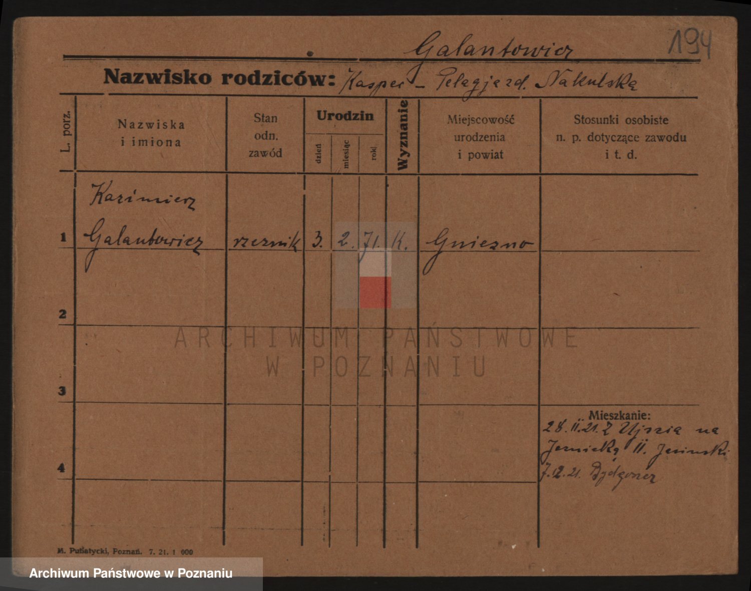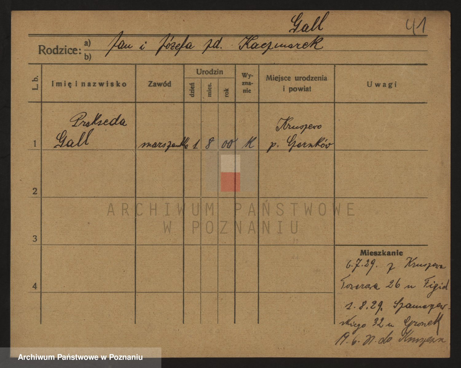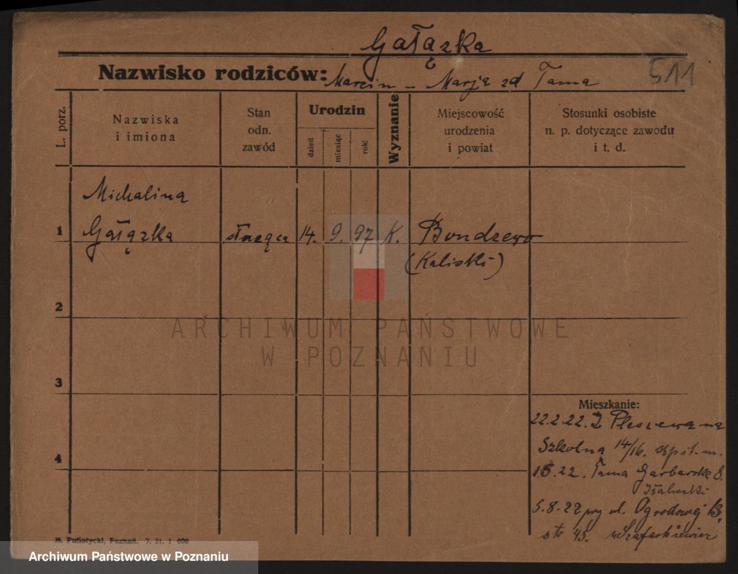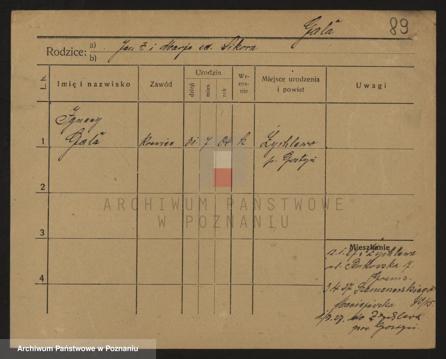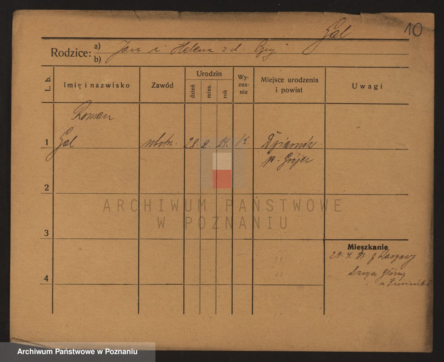 Podgląd karty osobowej dostępny jest po kliknięciu na nazwisko lub ikonkę karty. Można dokonywać powiększenia (ikony na górze) lub przechodzić między kolejnymi skanami (strzałki po bokach).