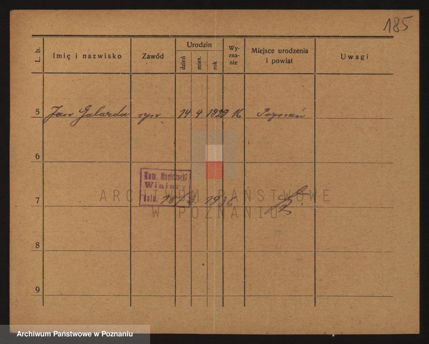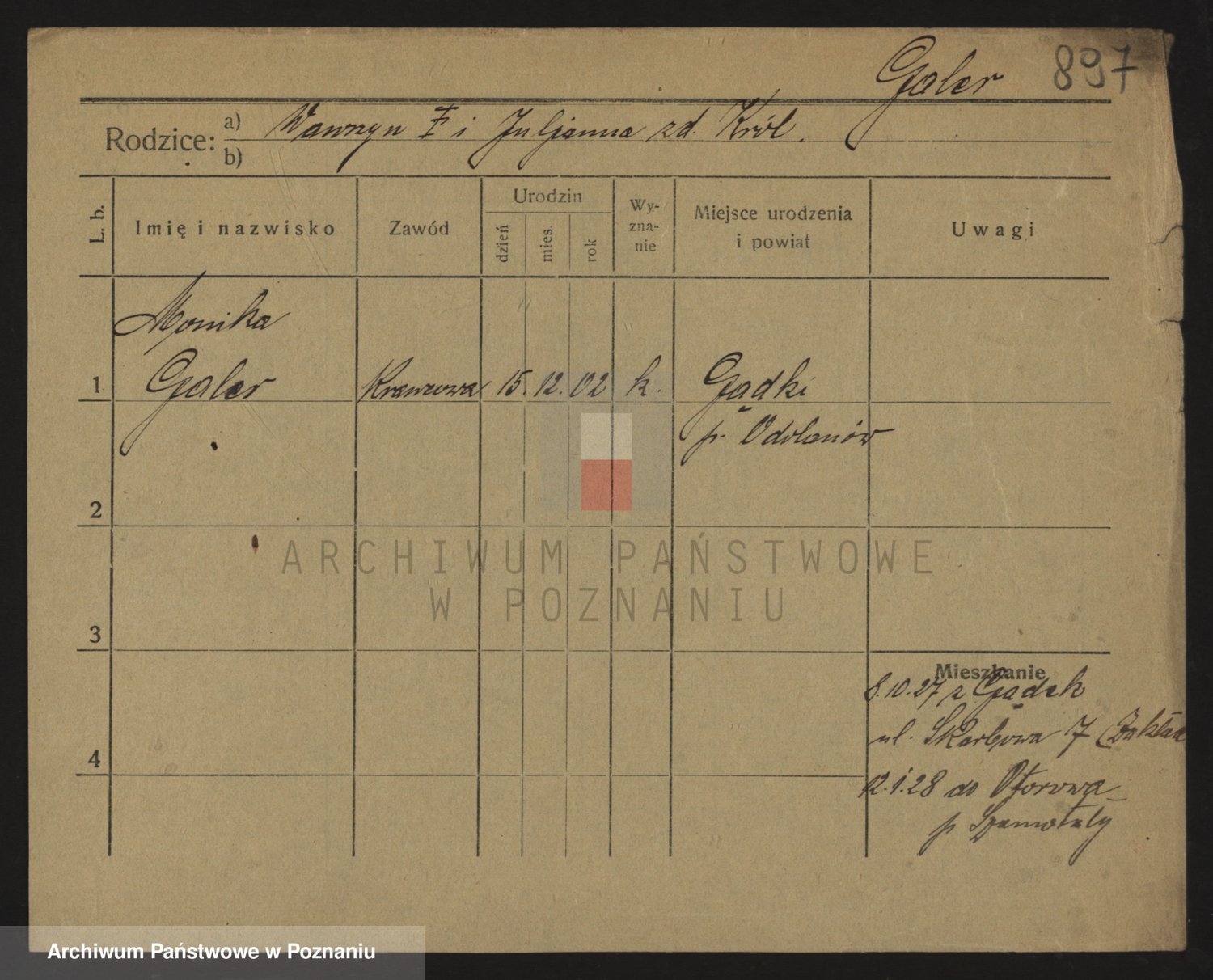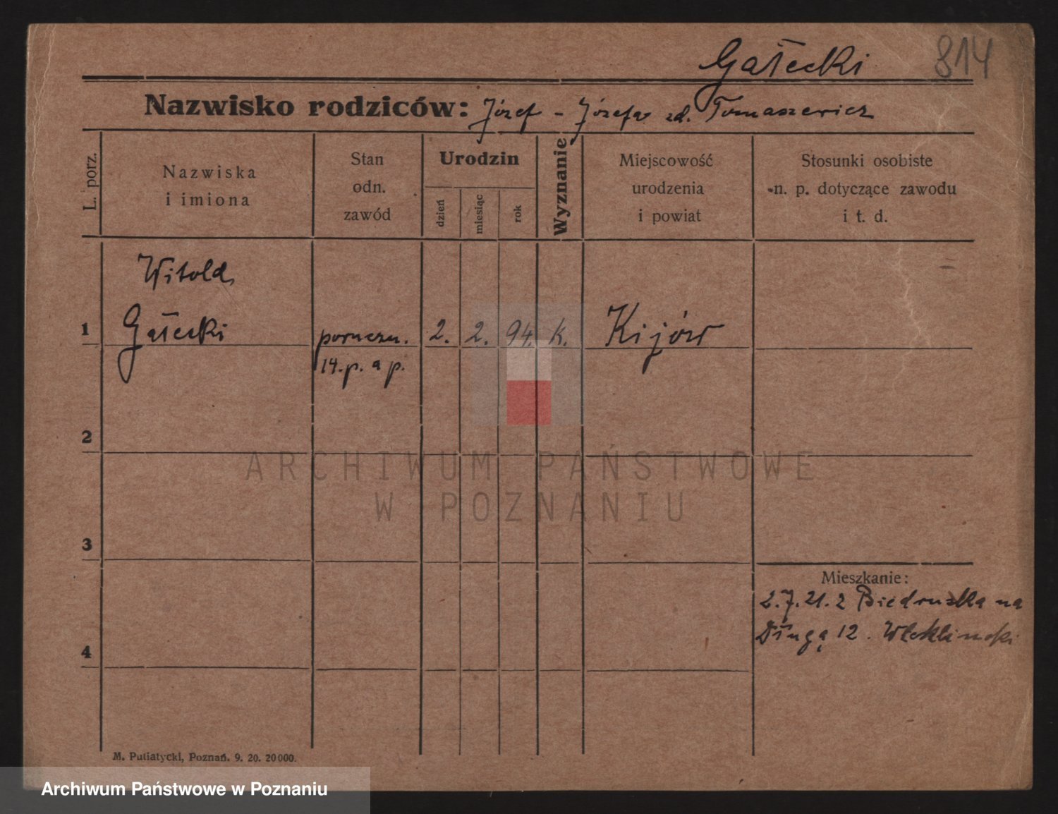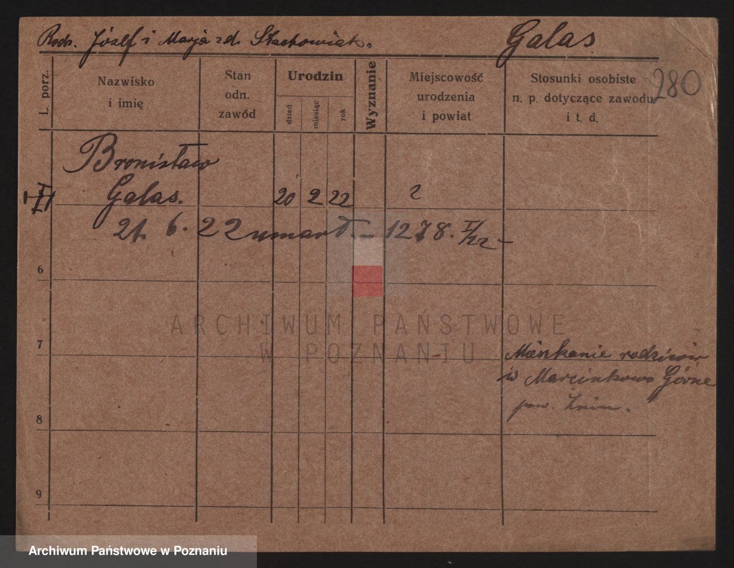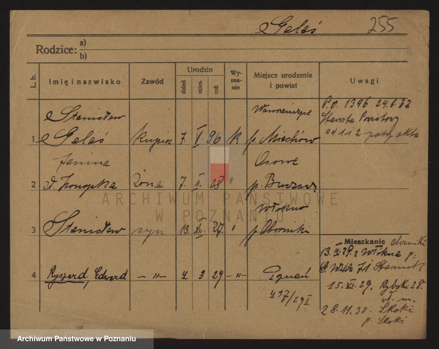 Podgląd karty osobowej dostępny jest po kliknięciu na nazwisko lub ikonkę karty. Można dokonywać powiększenia (ikony na górze) lub przechodzić między kolejnymi skanami (strzałki po bokach).