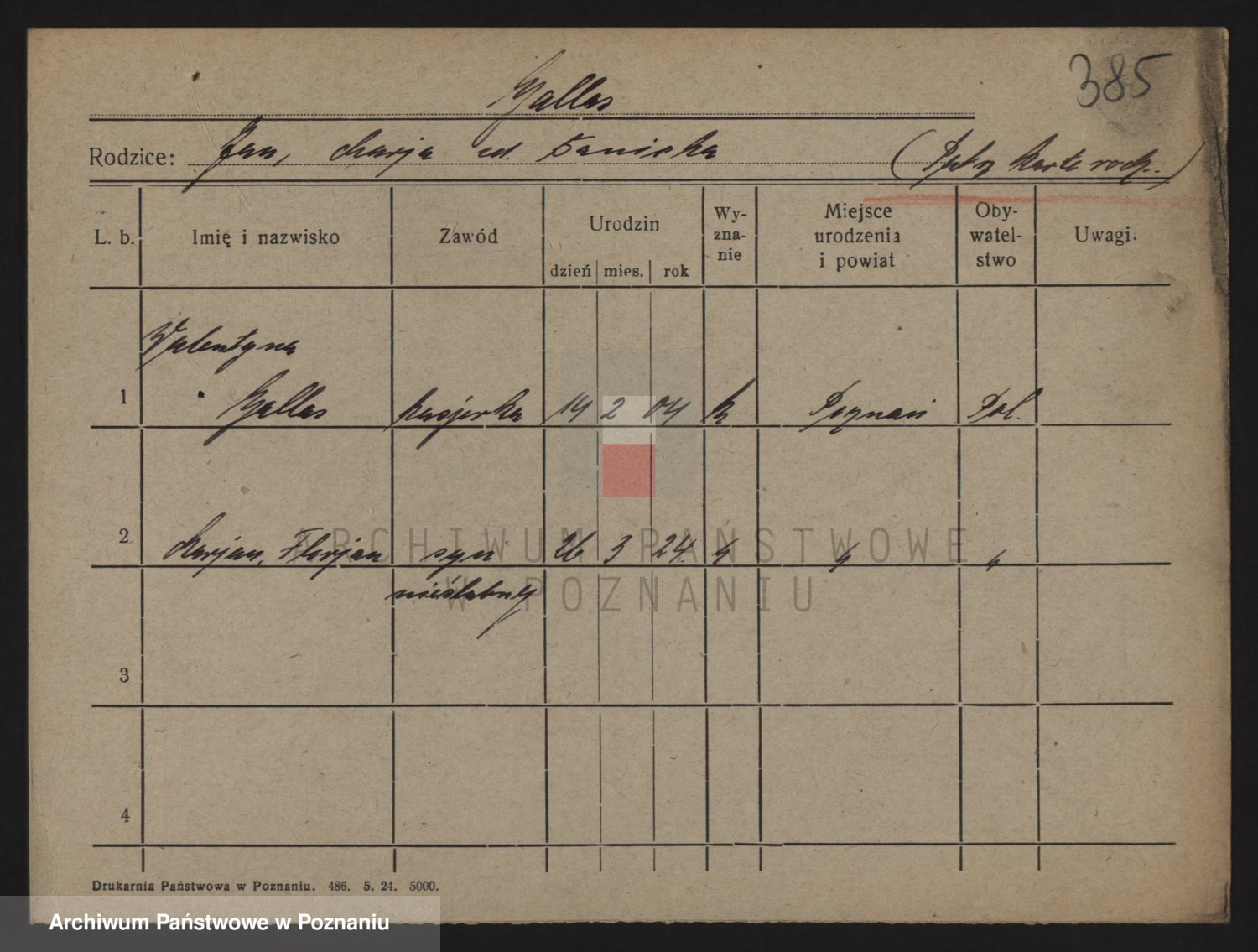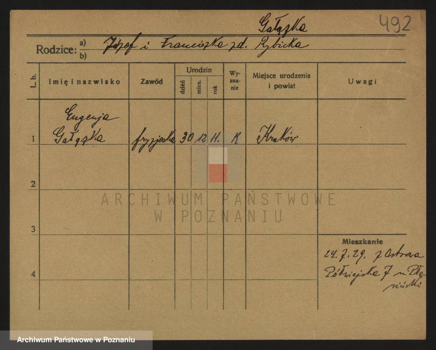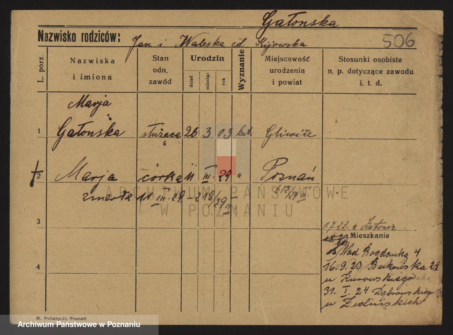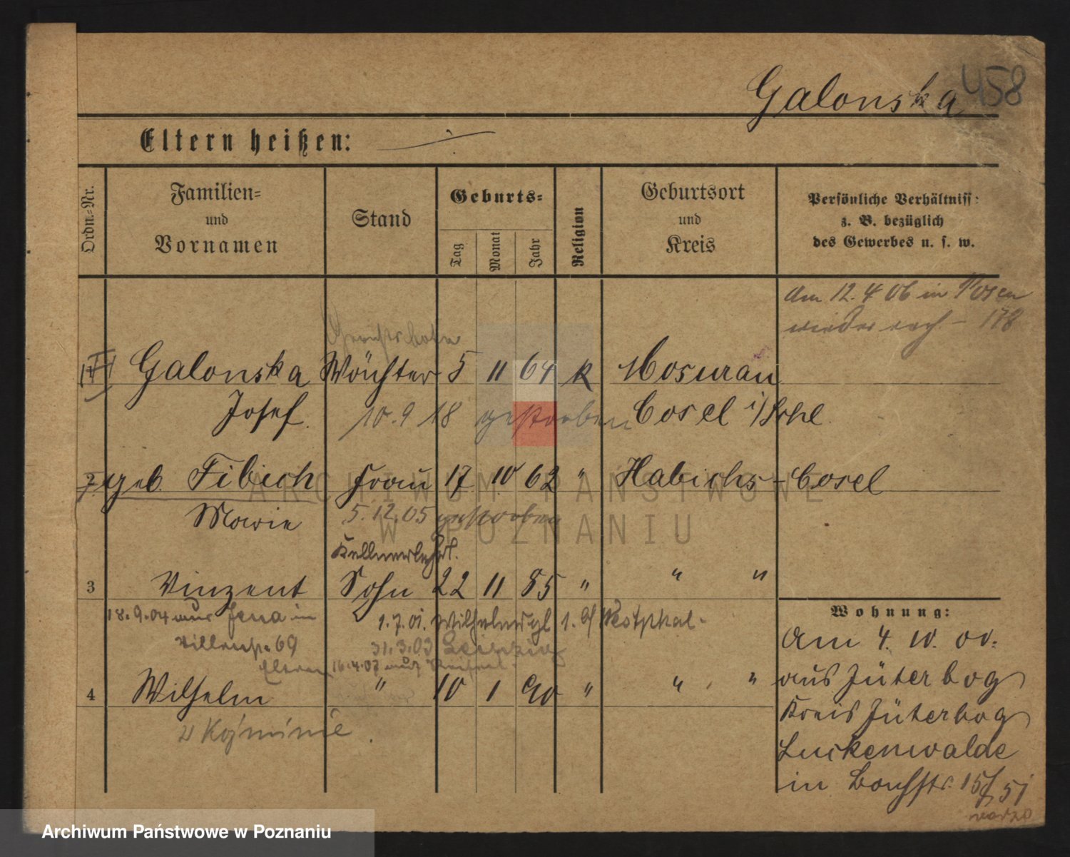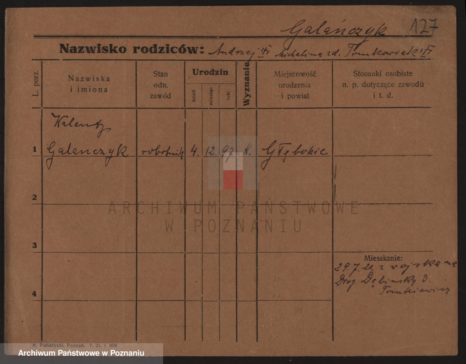Podgląd karty osobowej dostępny jest po kliknięciu na nazwisko lub ikonkę karty. Można dokonywać powiększenia (ikony na górze) lub przechodzić między kolejnymi skanami (strzałki po bokach).