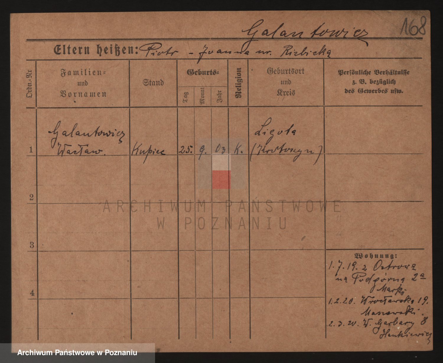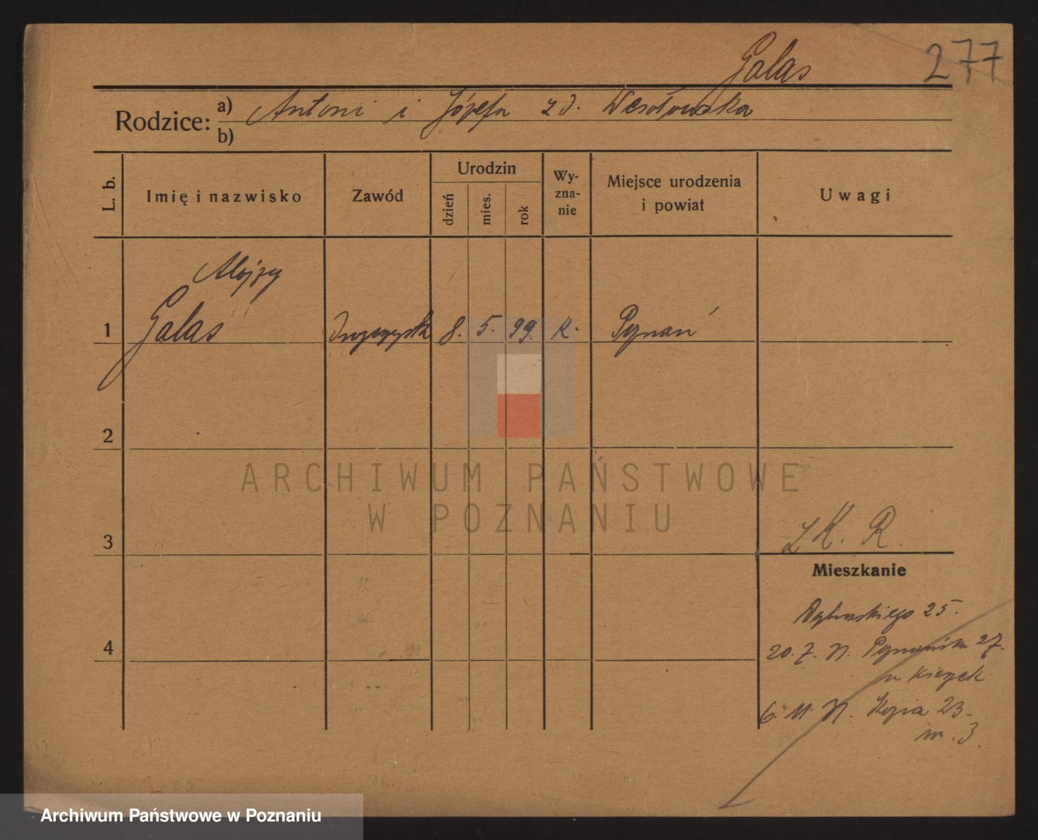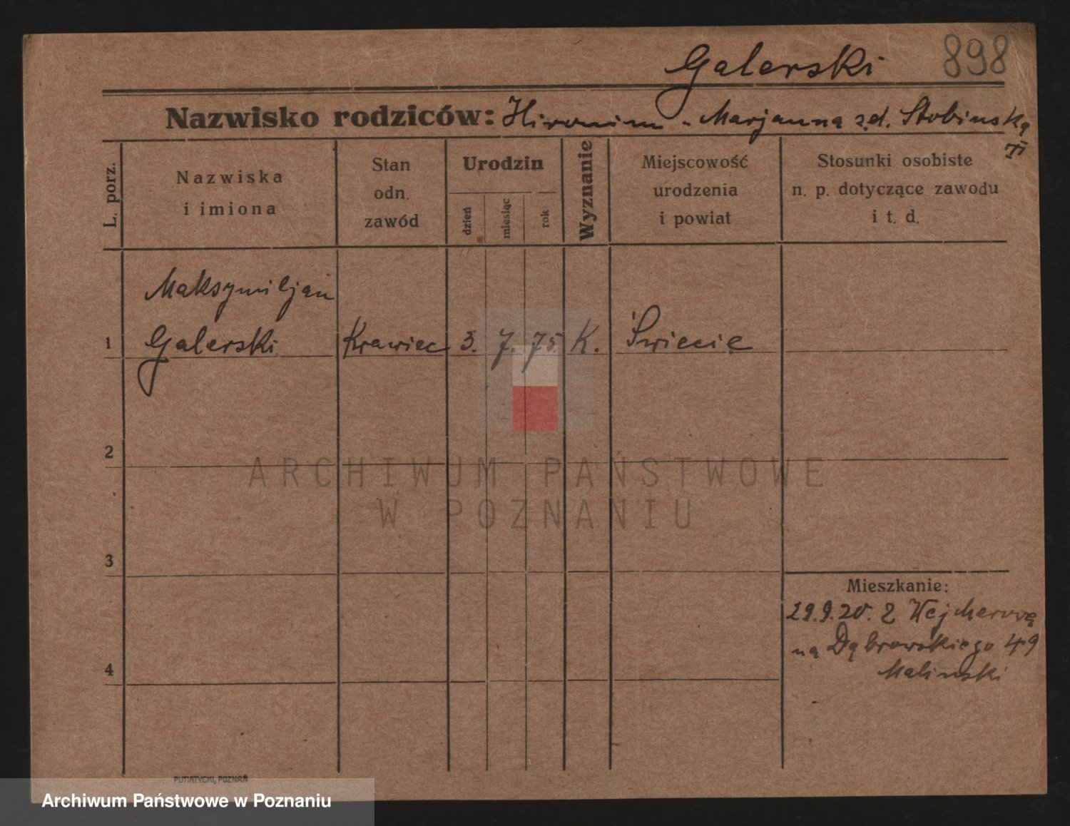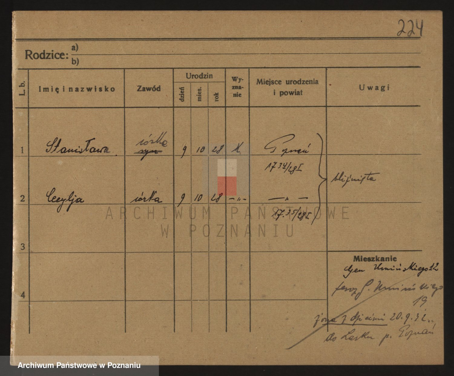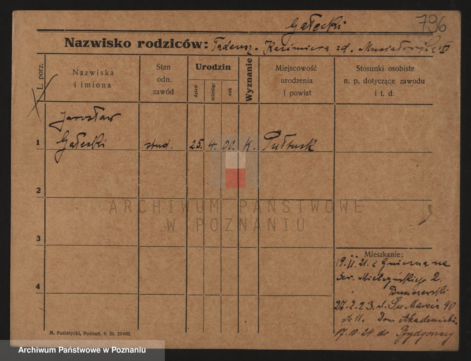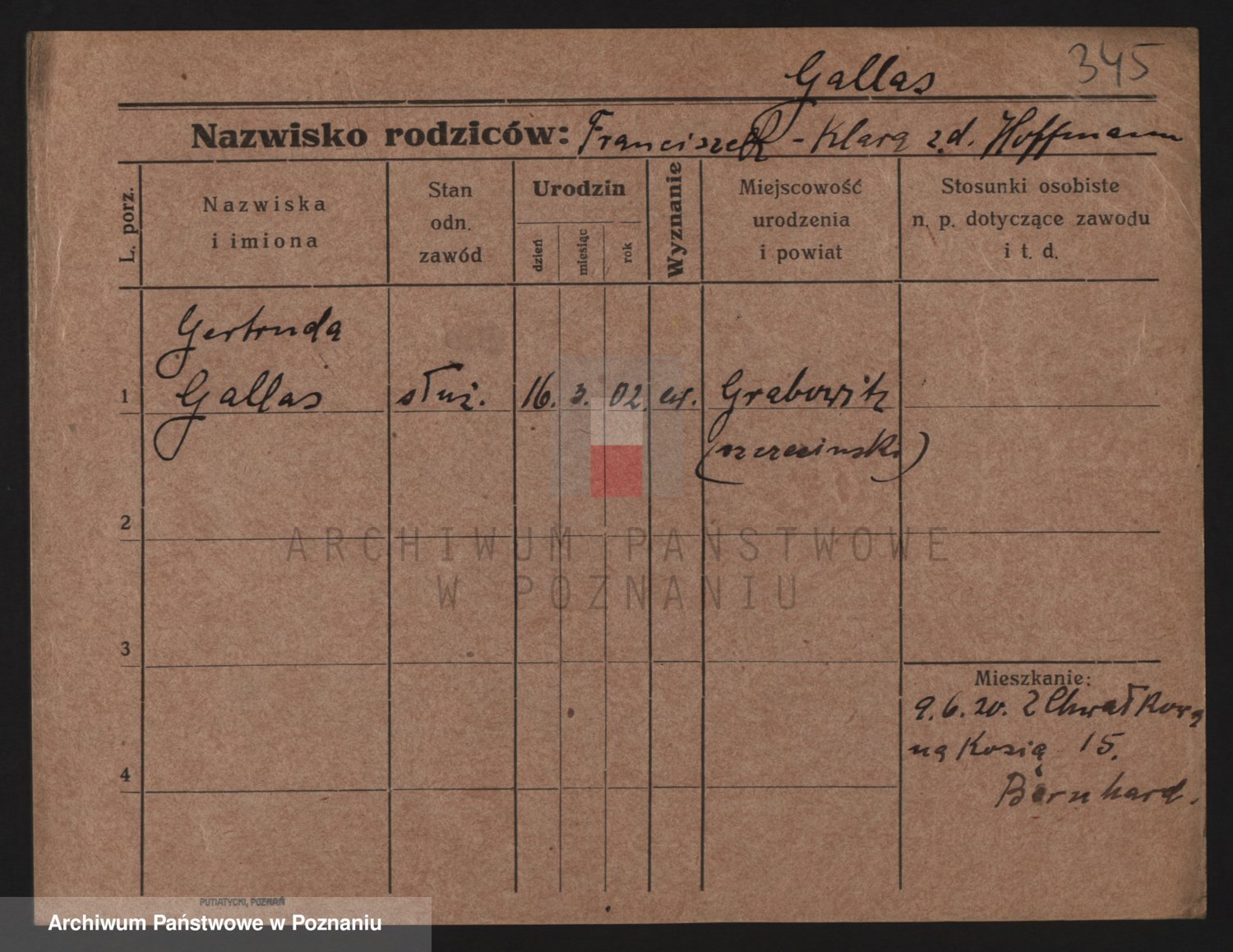 Podgląd karty osobowej dostępny jest po kliknięciu na nazwisko lub ikonkę karty. Można dokonywać powiększenia (ikony na górze) lub przechodzić między kolejnymi skanami (strzałki po bokach).