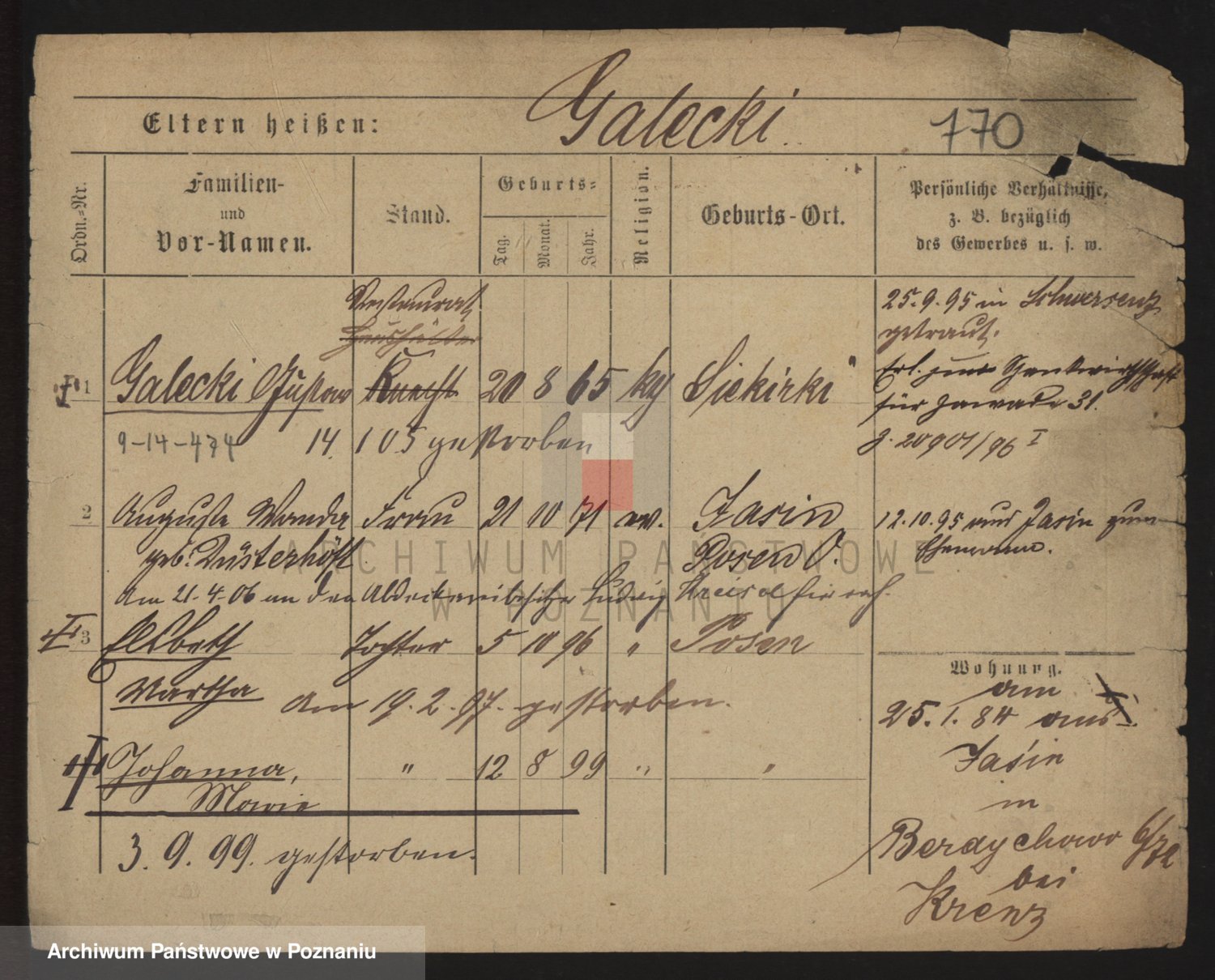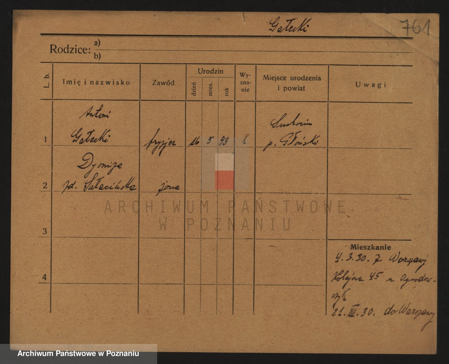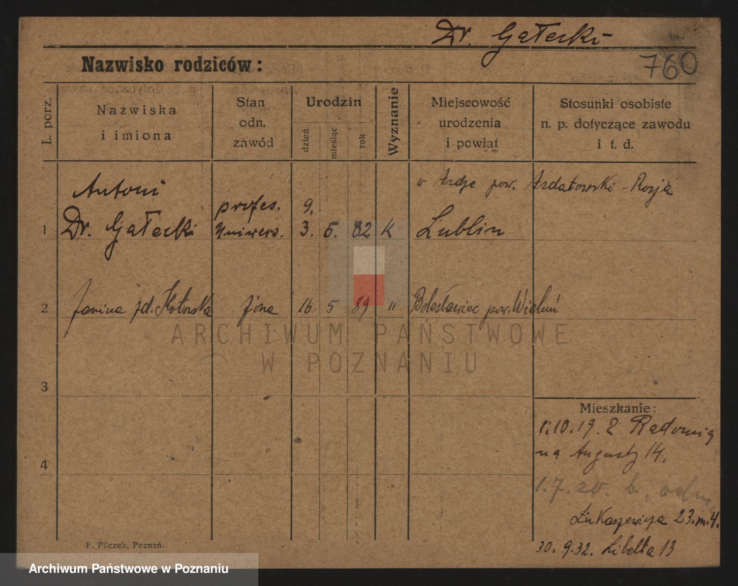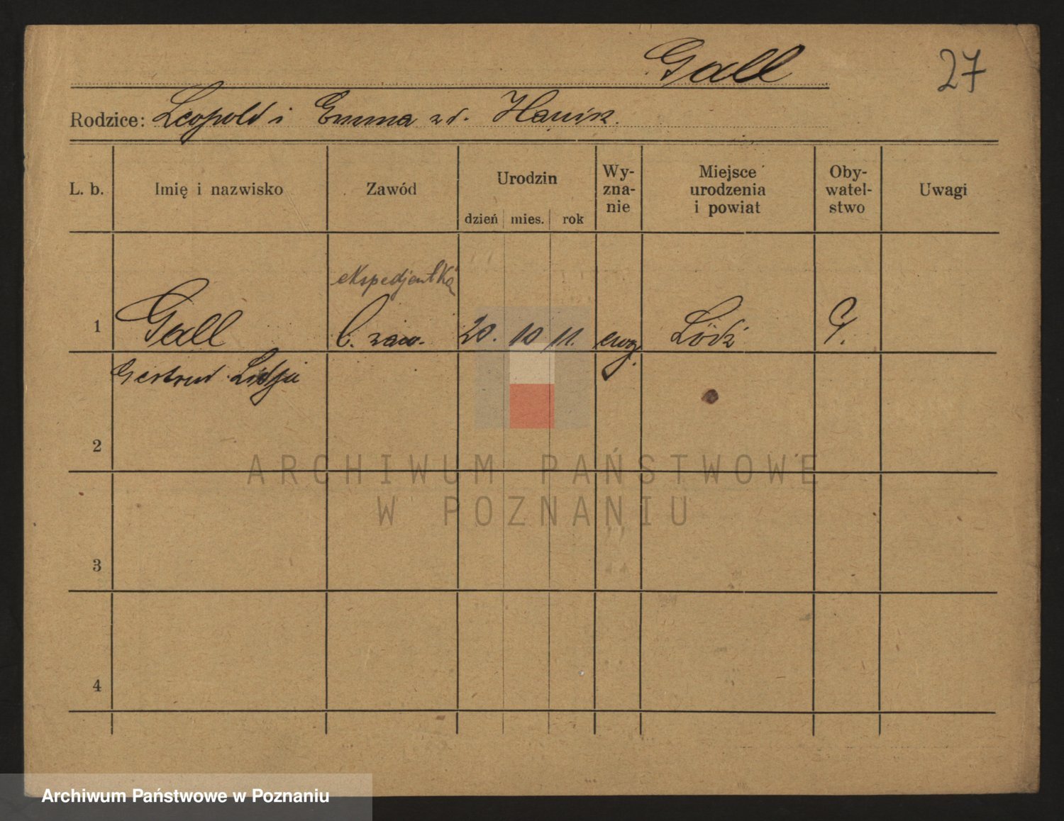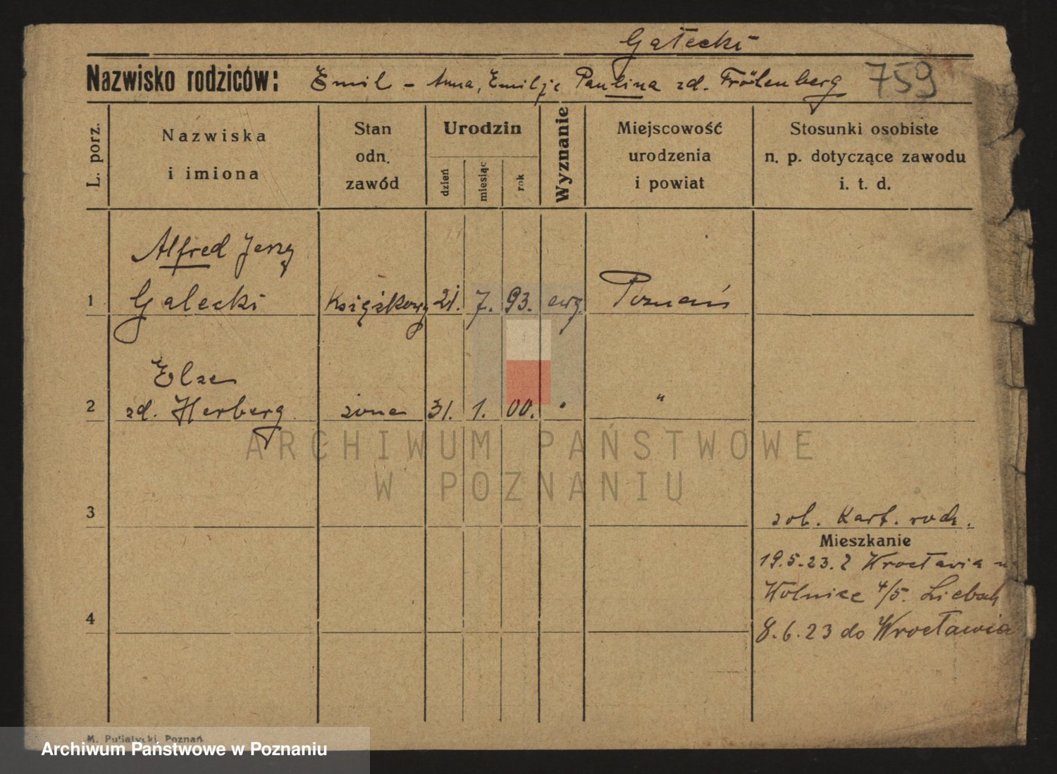 Podgląd karty osobowej dostępny jest po kliknięciu na nazwisko lub ikonkę karty. Można dokonywać powiększenia (ikony na górze) lub przechodzić między kolejnymi skanami (strzałki po bokach).