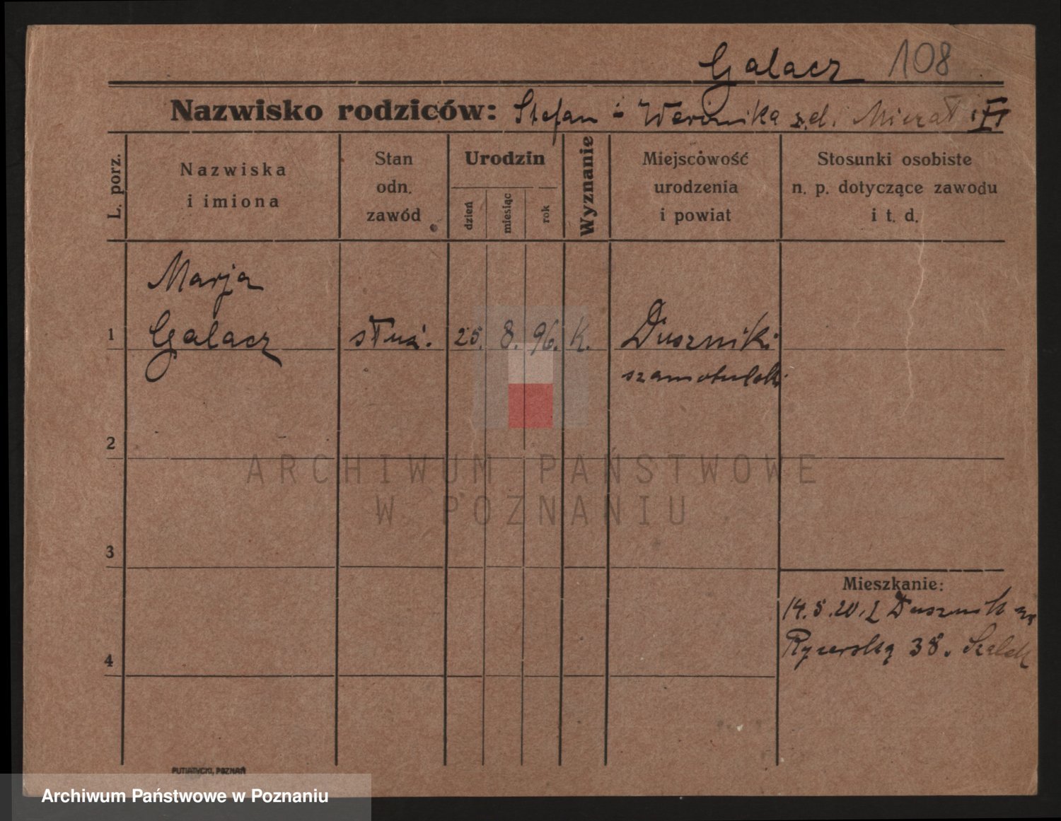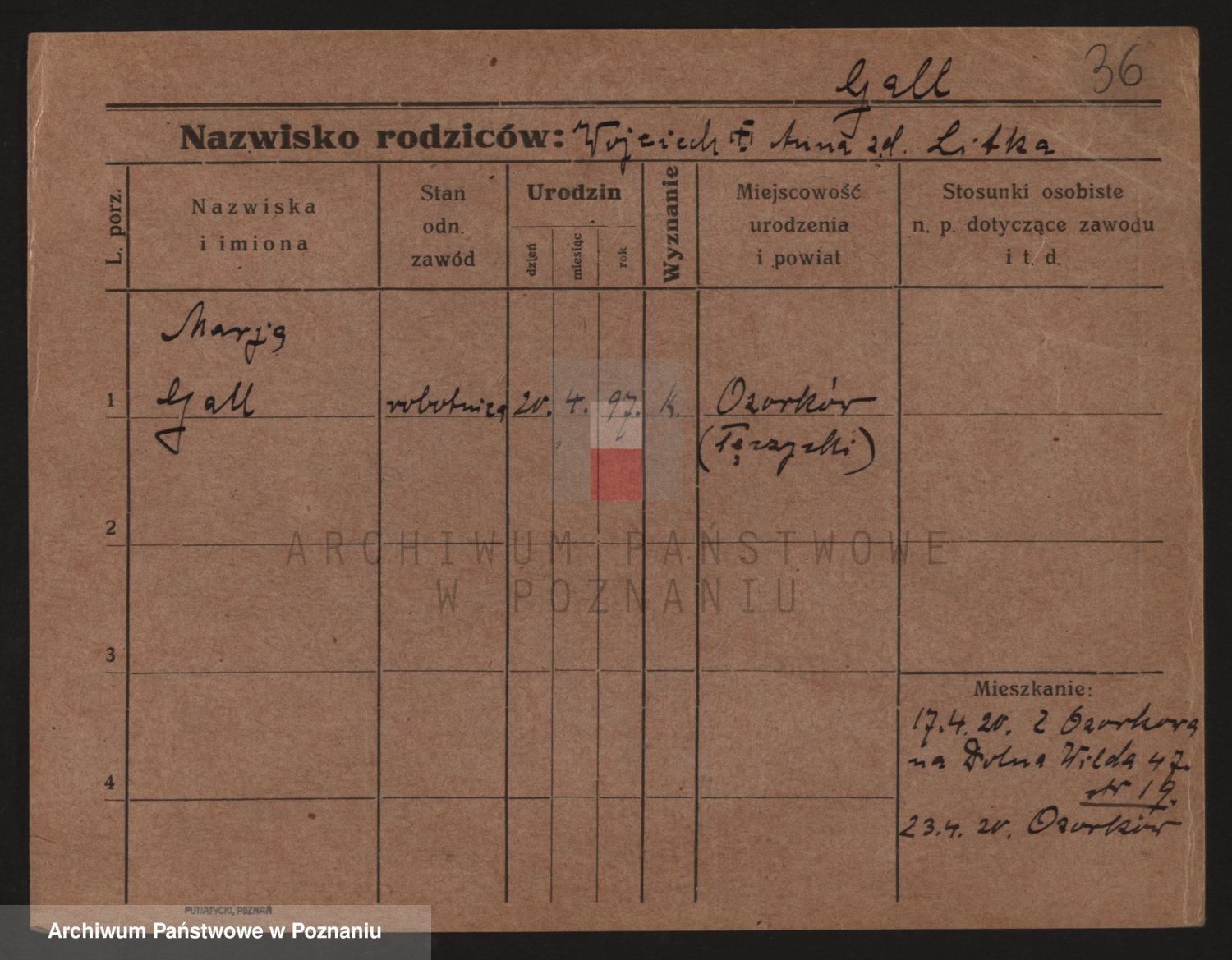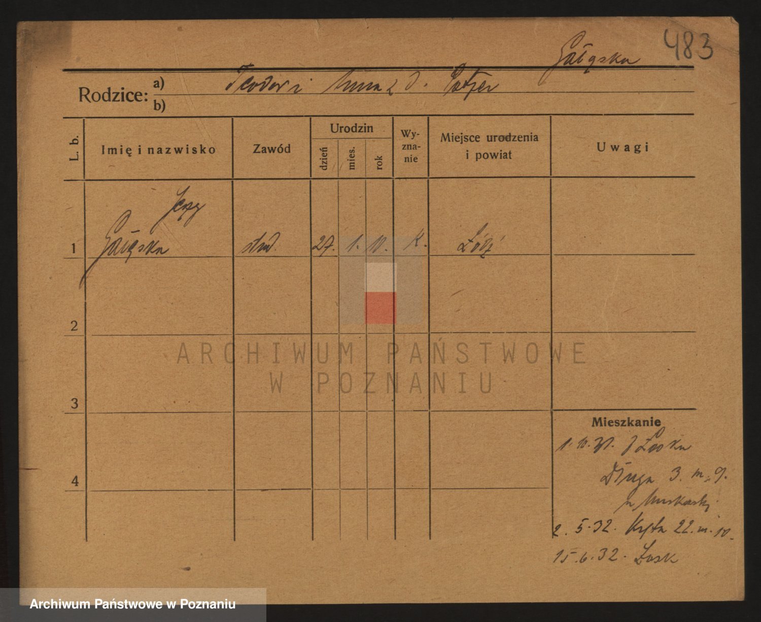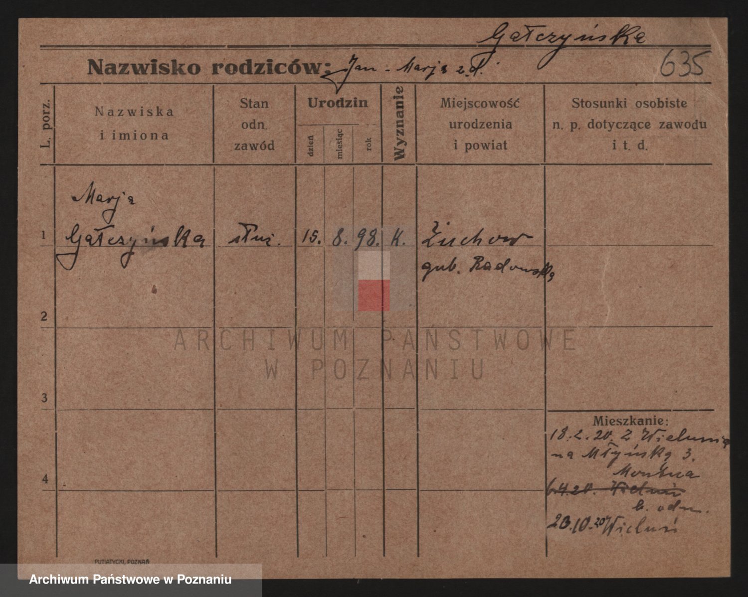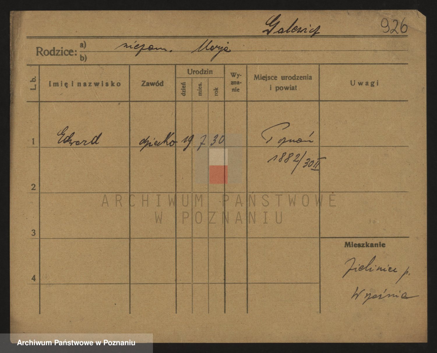 Podgląd karty osobowej dostępny jest po kliknięciu na nazwisko lub ikonkę karty. Można dokonywać powiększenia (ikony na górze) lub przechodzić między kolejnymi skanami (strzałki po bokach).