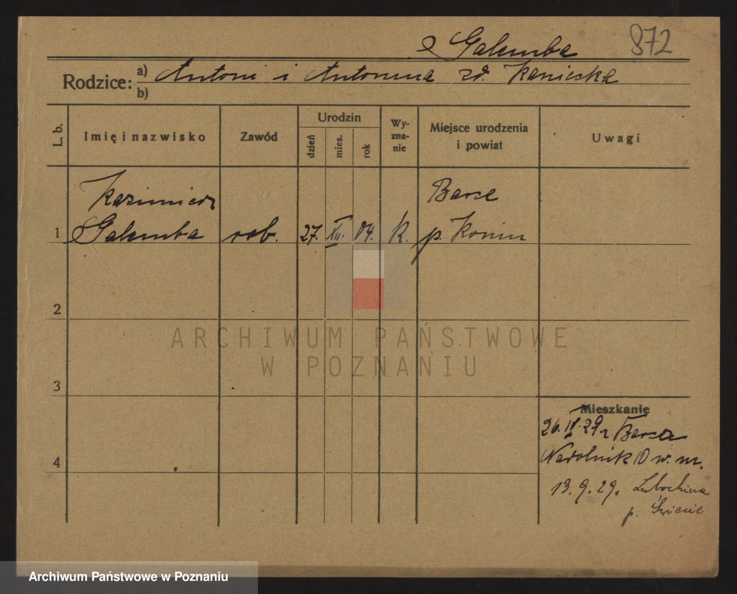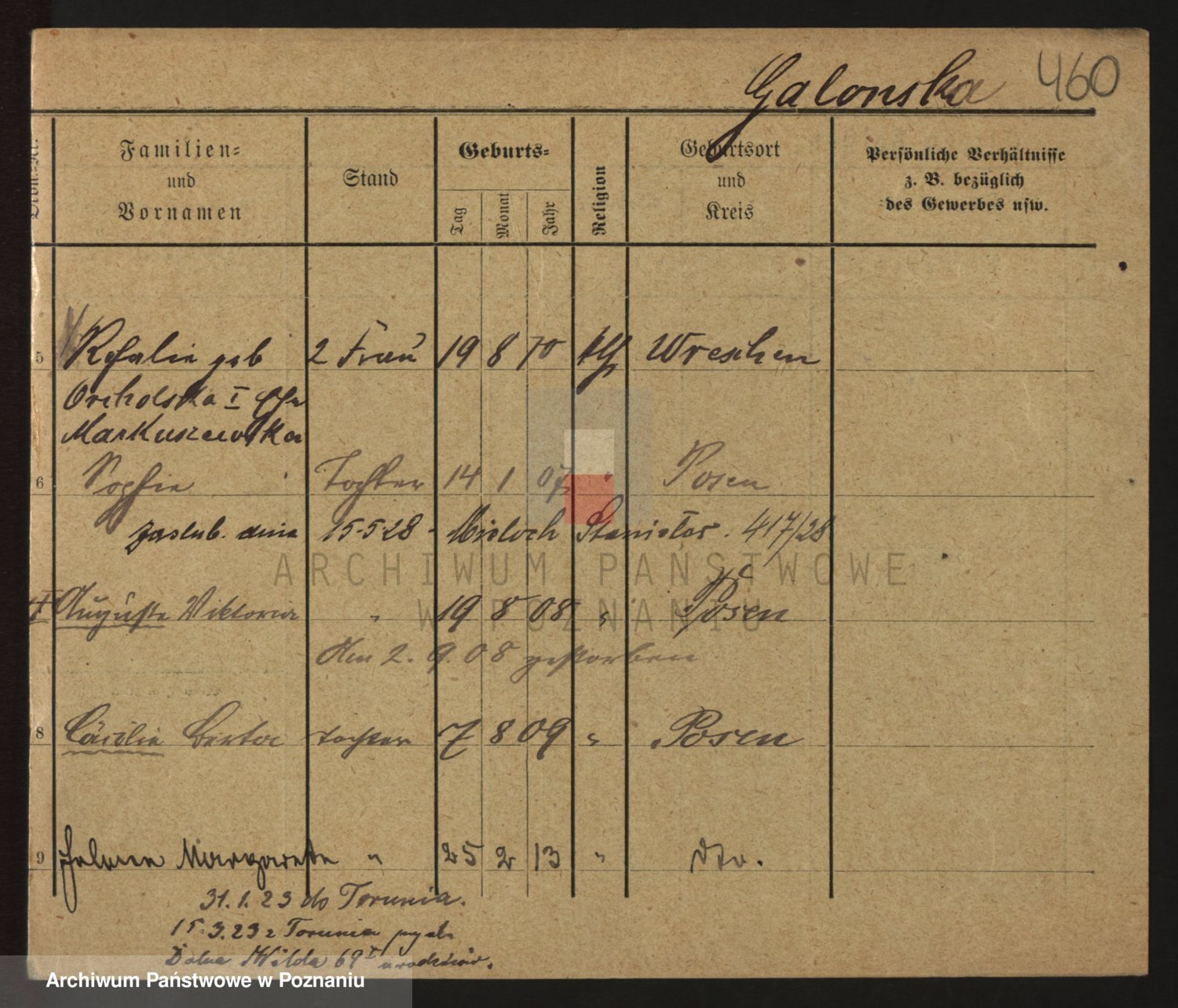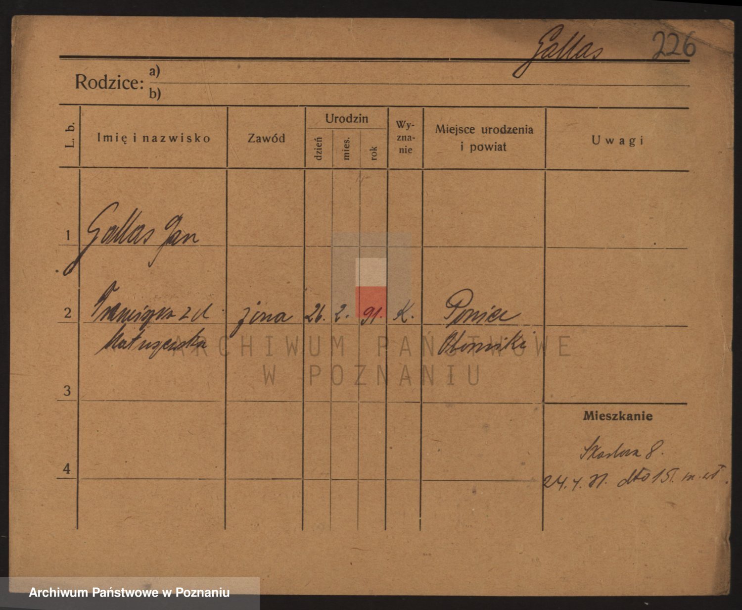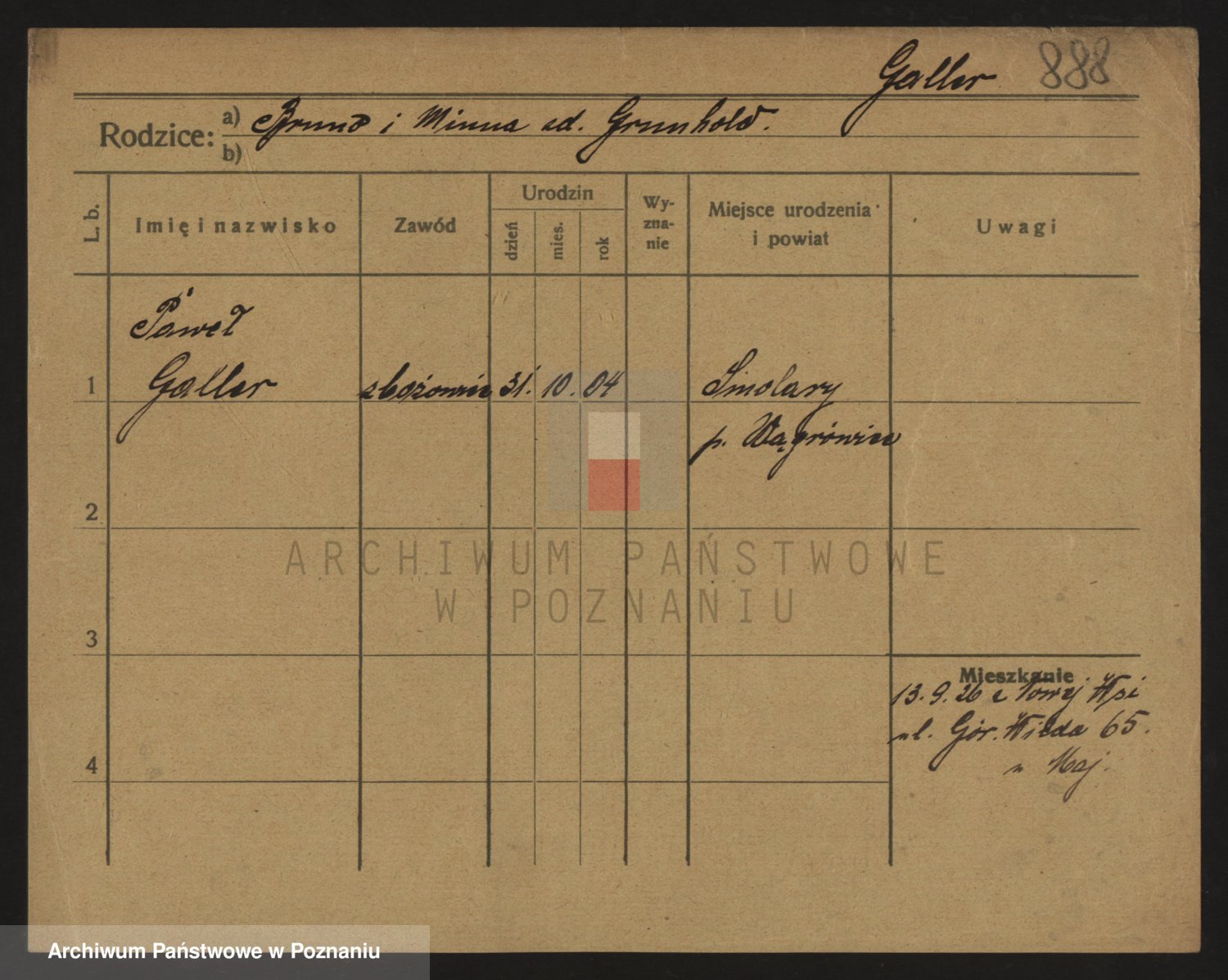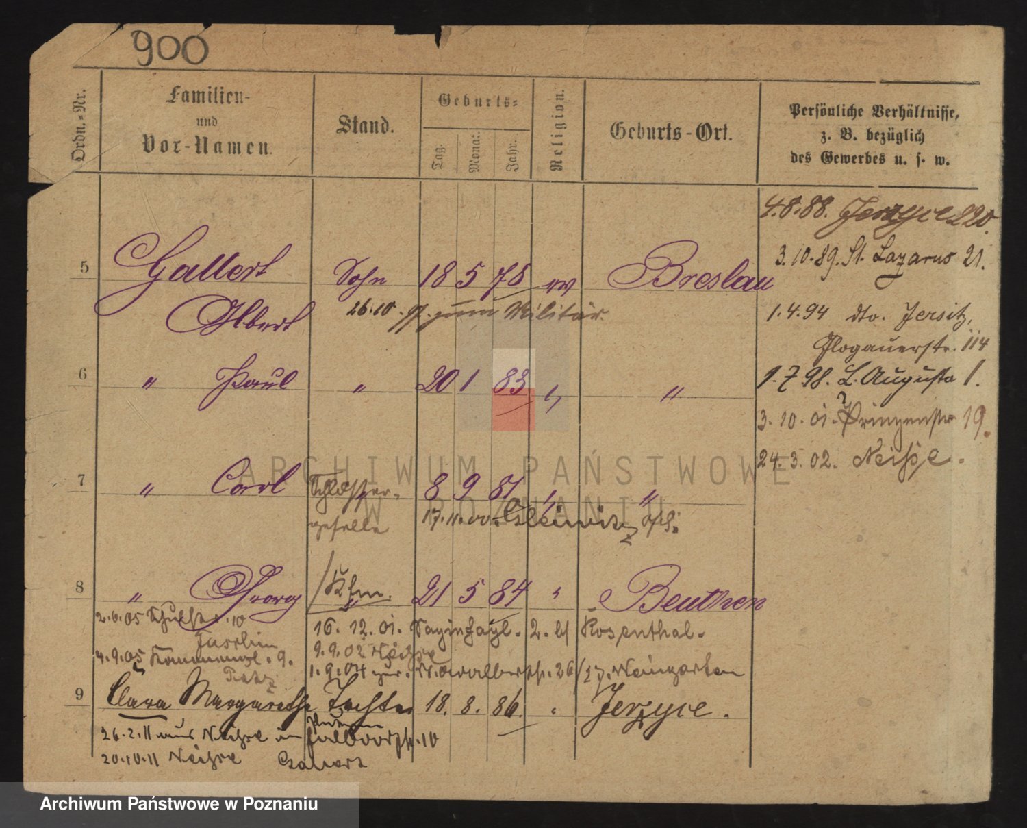 Podgląd karty osobowej dostępny jest po kliknięciu na nazwisko lub ikonkę karty. Można dokonywać powiększenia (ikony na górze) lub przechodzić między kolejnymi skanami (strzałki po bokach).