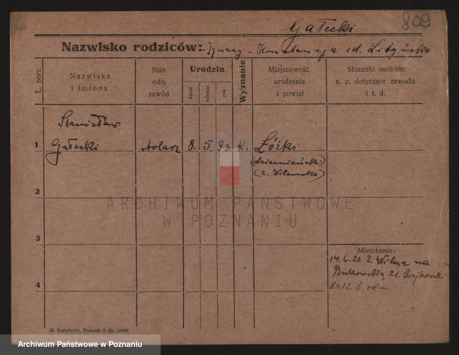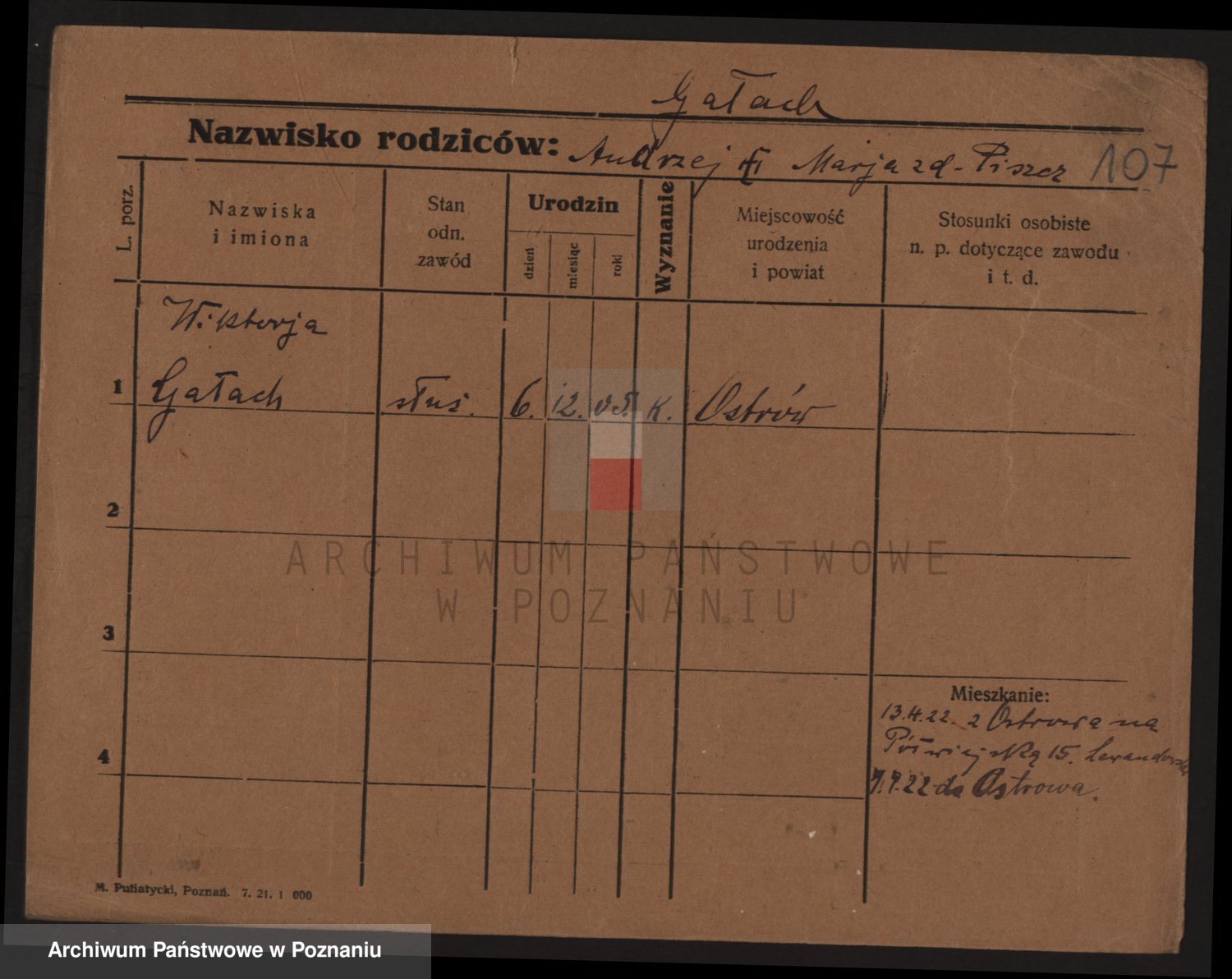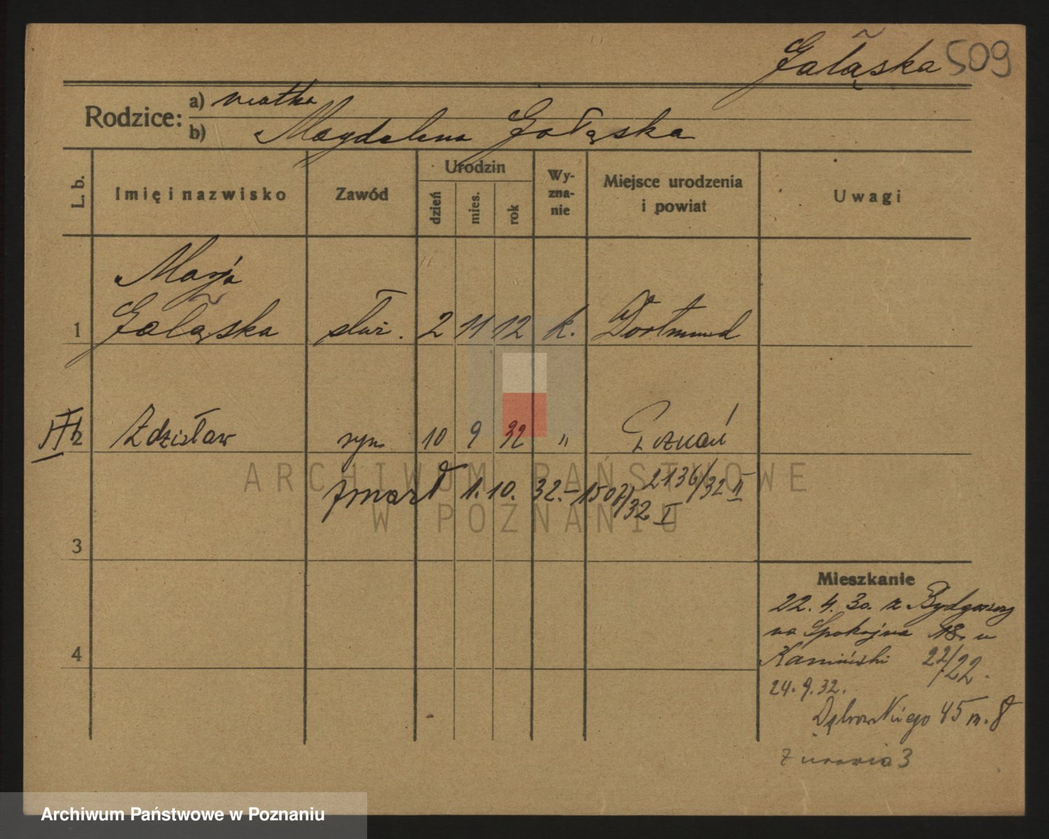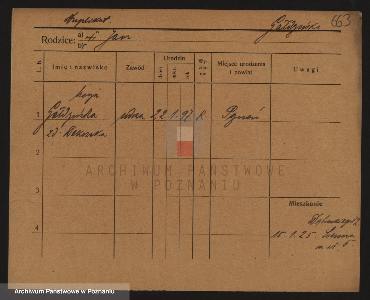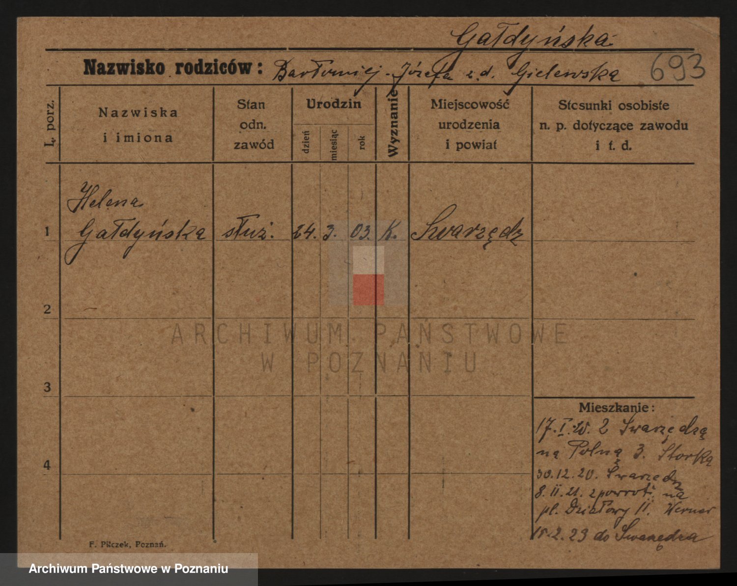 Podgląd karty osobowej dostępny jest po kliknięciu na nazwisko lub ikonkę karty. Można dokonywać powiększenia (ikony na górze) lub przechodzić między kolejnymi skanami (strzałki po bokach).