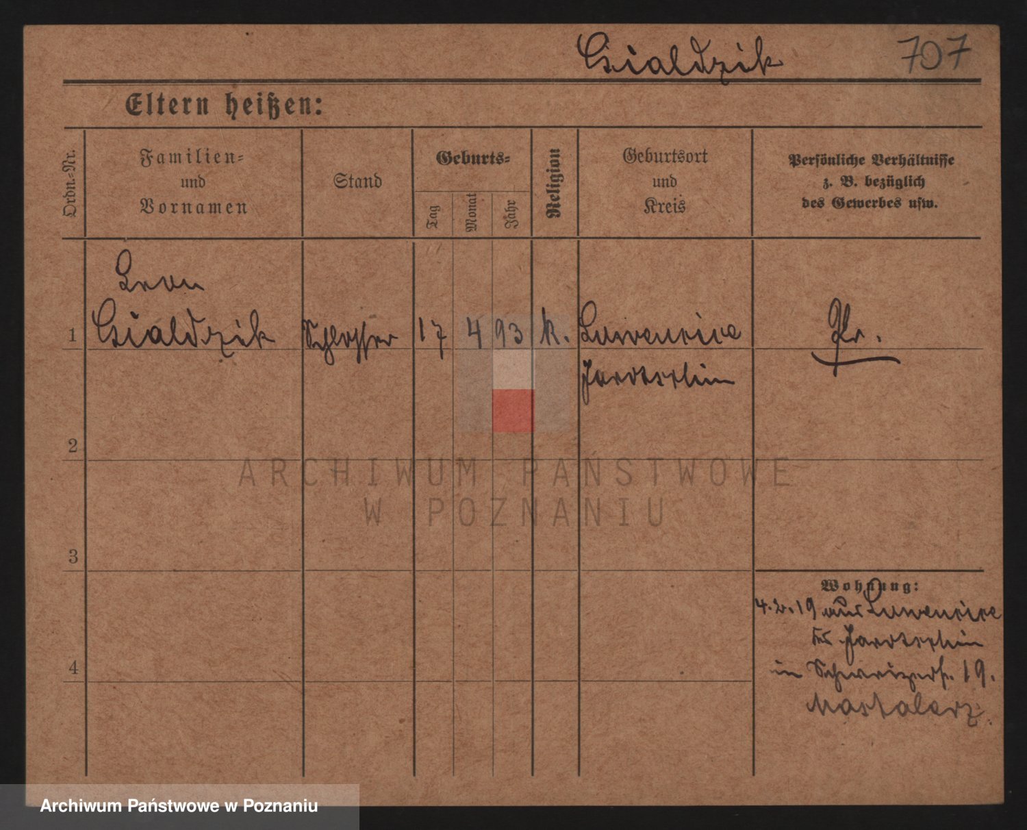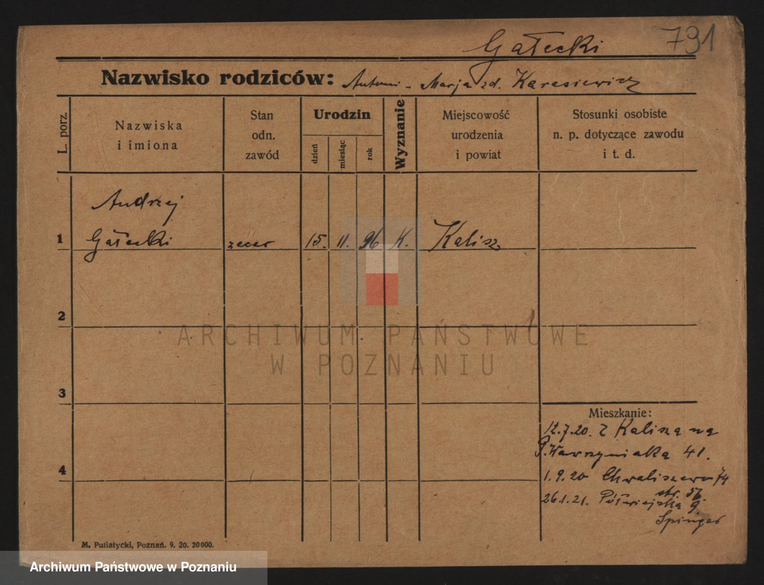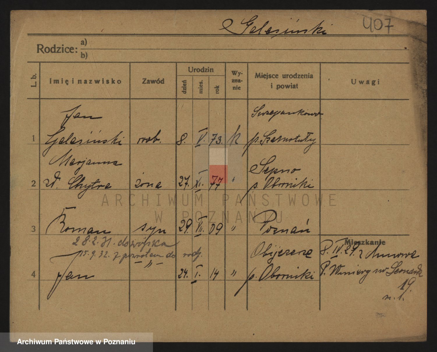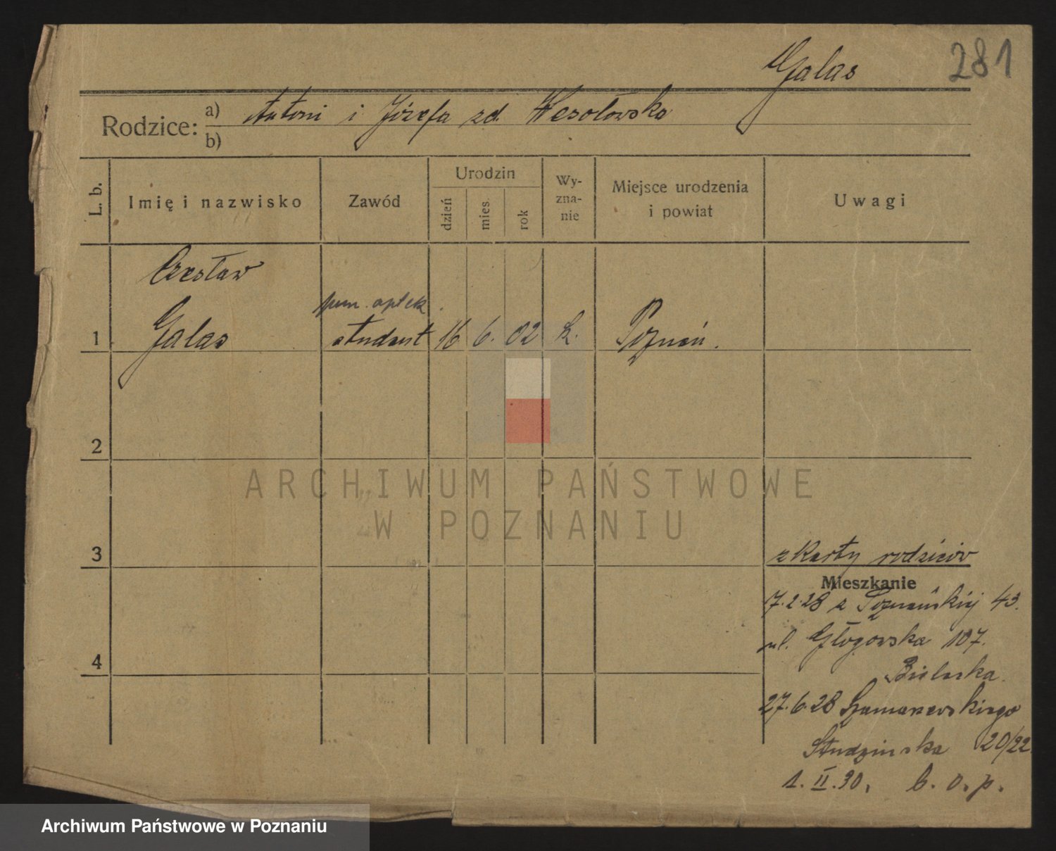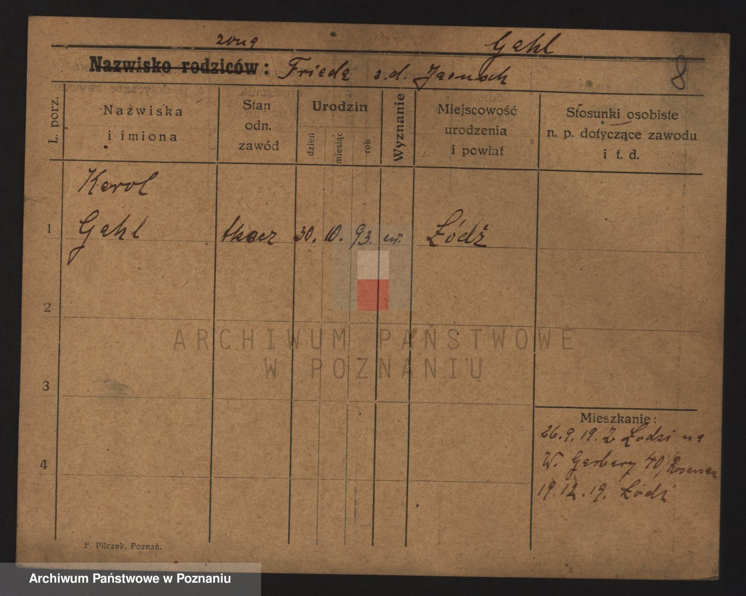 Podgląd karty osobowej dostępny jest po kliknięciu na nazwisko lub ikonkę karty. Można dokonywać powiększenia (ikony na górze) lub przechodzić między kolejnymi skanami (strzałki po bokach).