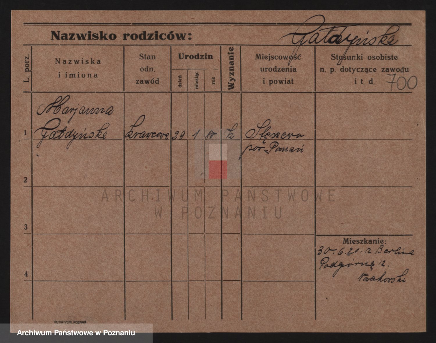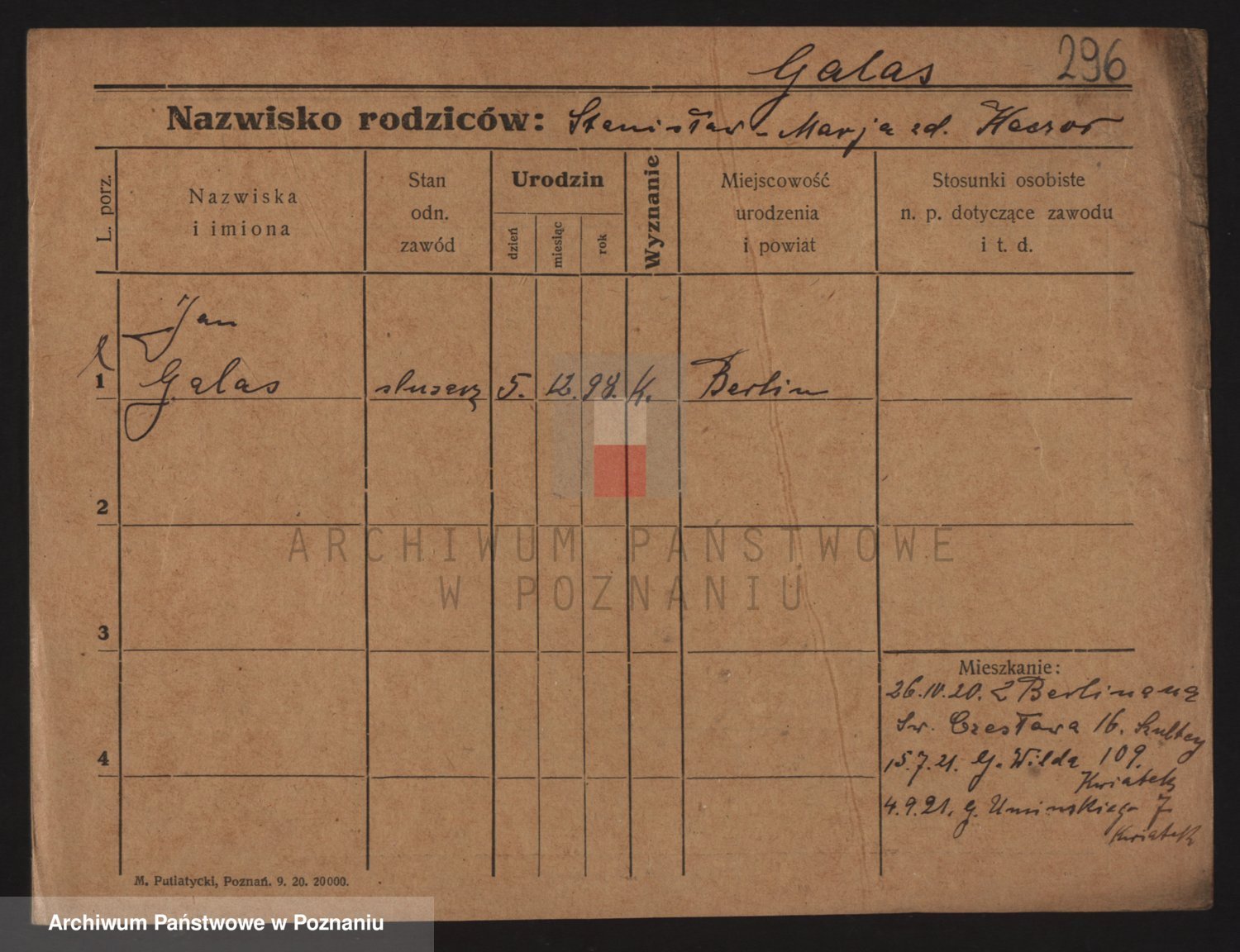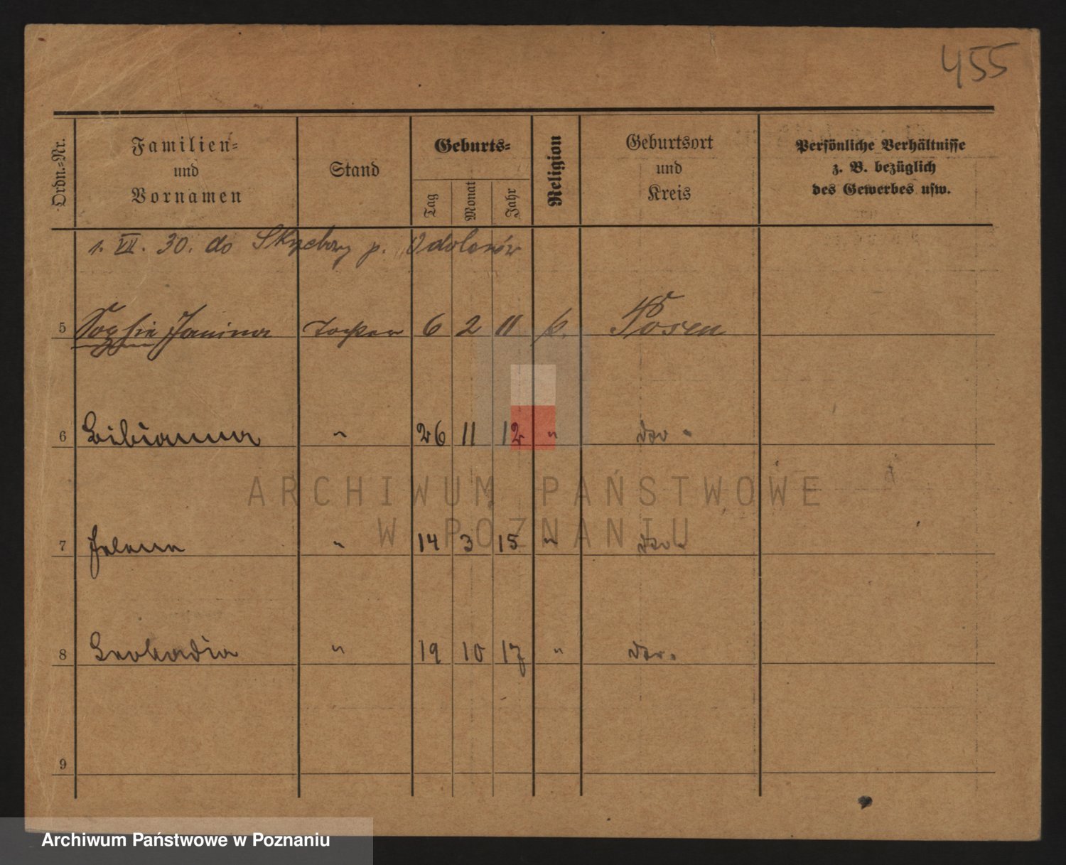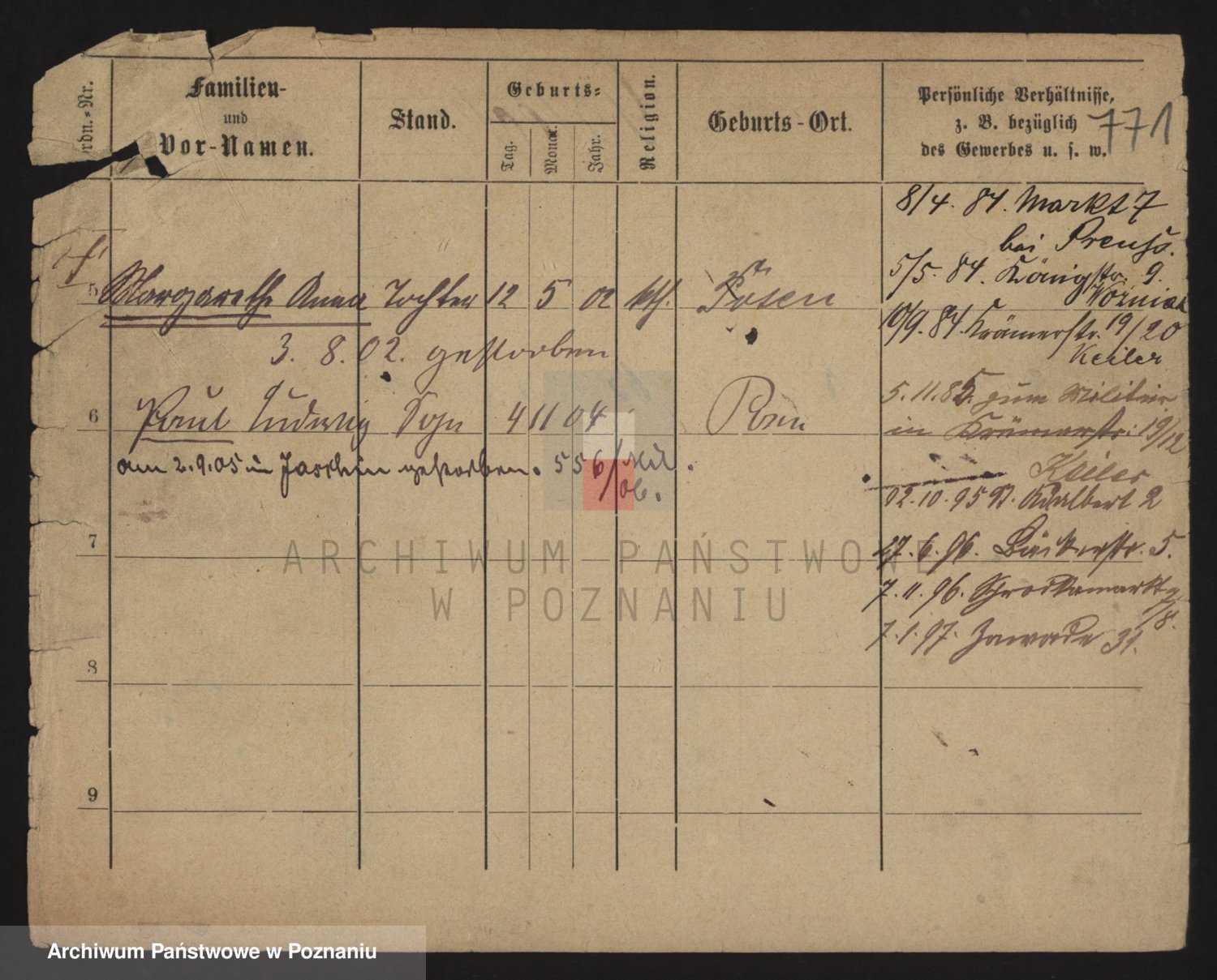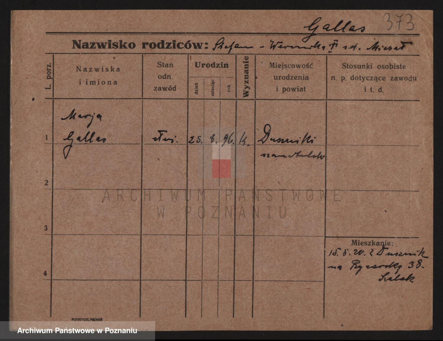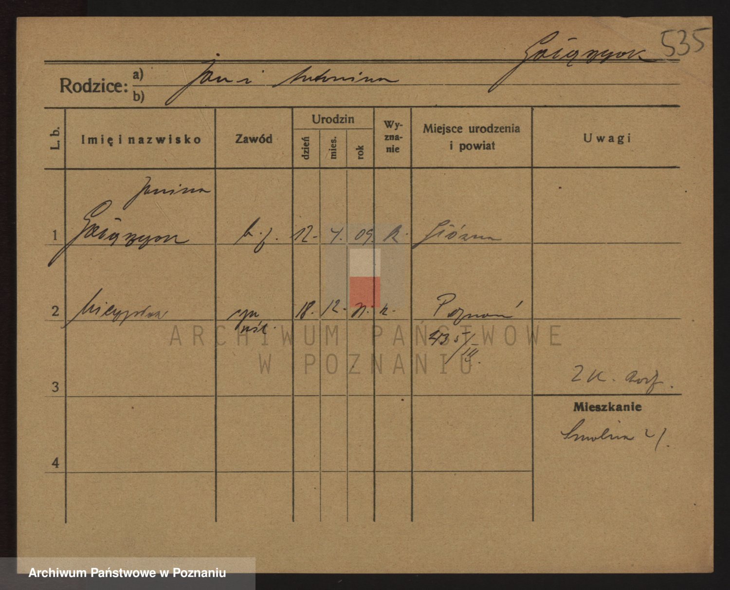 Podgląd karty osobowej dostępny jest po kliknięciu na nazwisko lub ikonkę karty. Można dokonywać powiększenia (ikony na górze) lub przechodzić między kolejnymi skanami (strzałki po bokach).