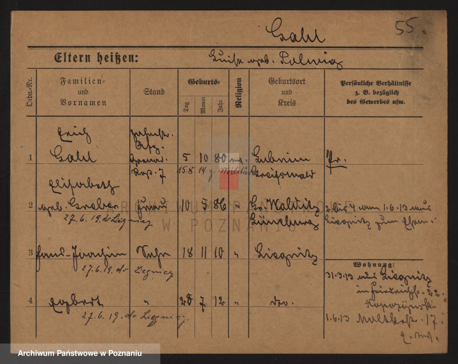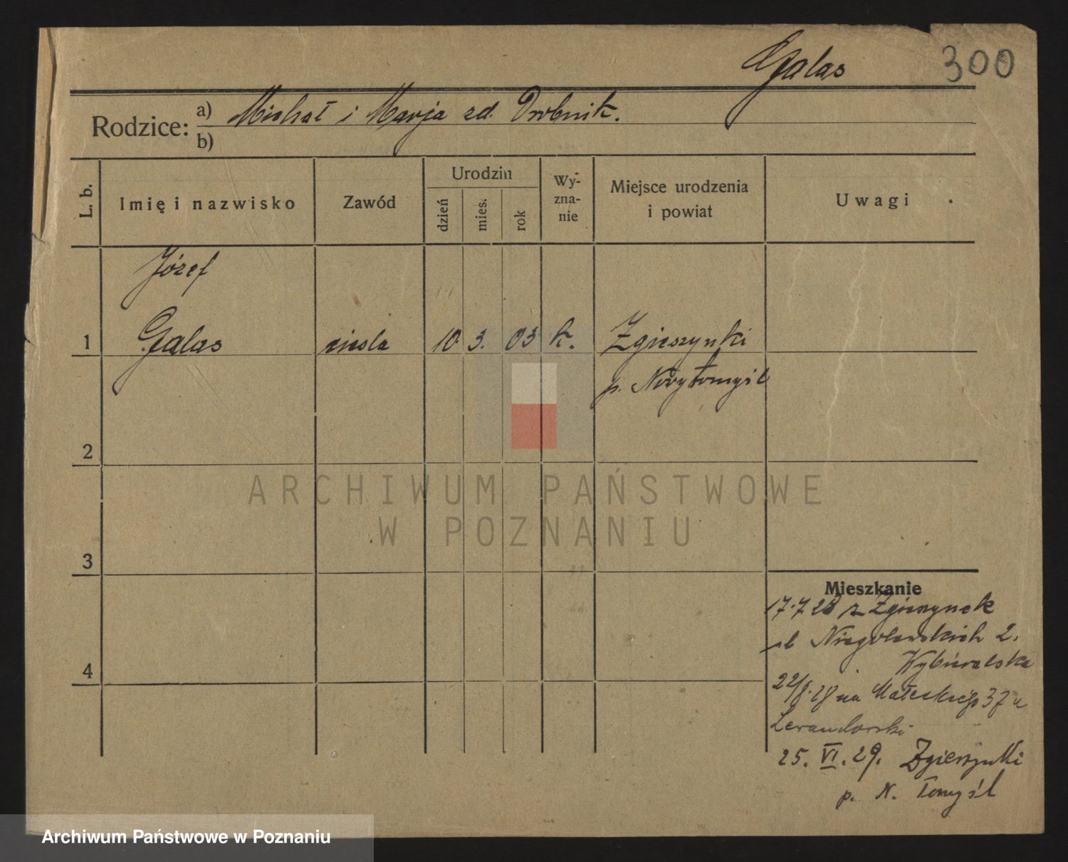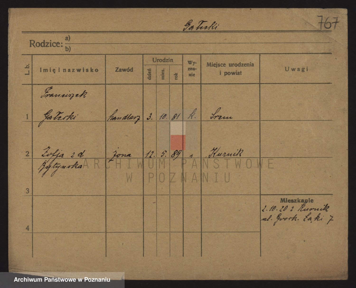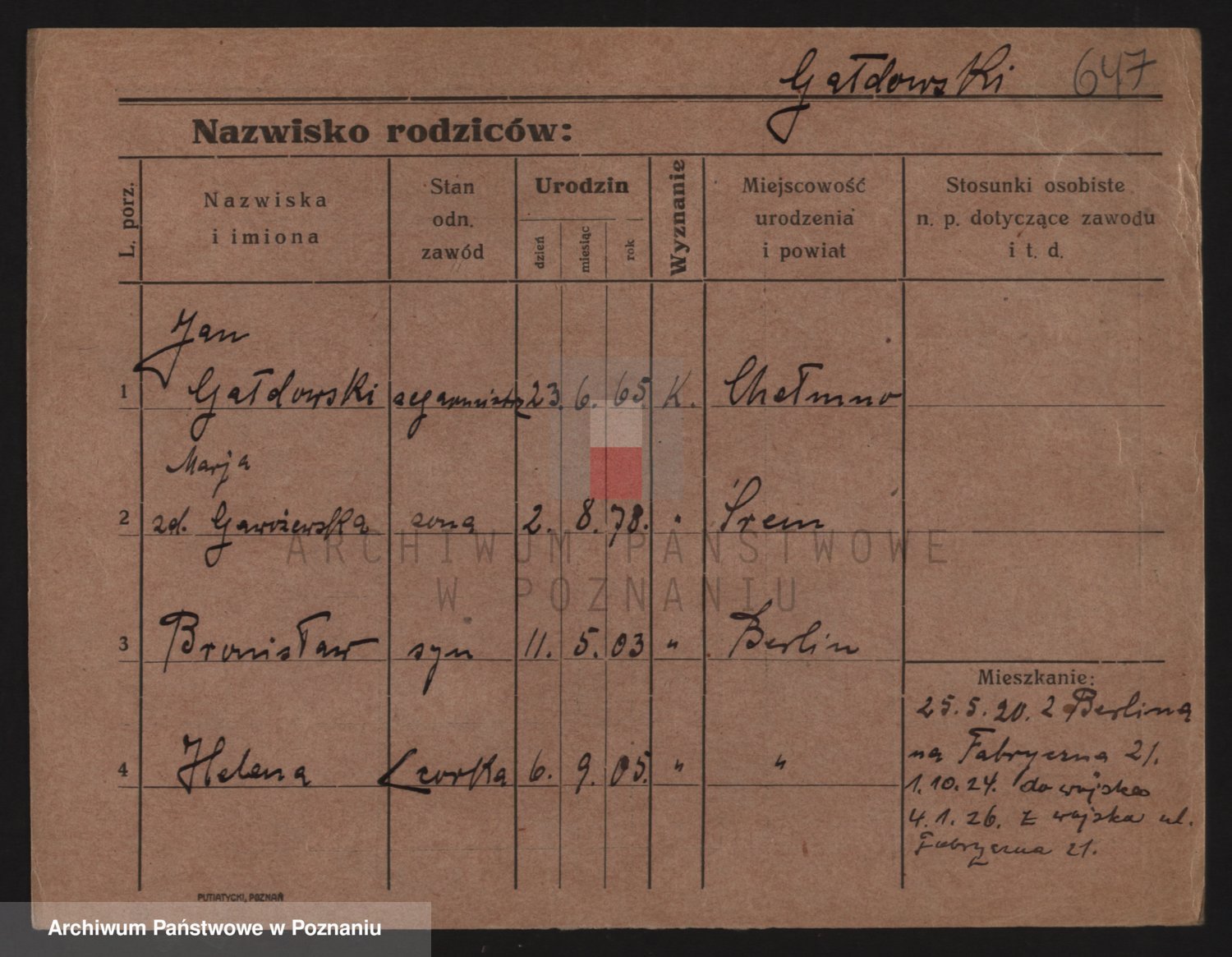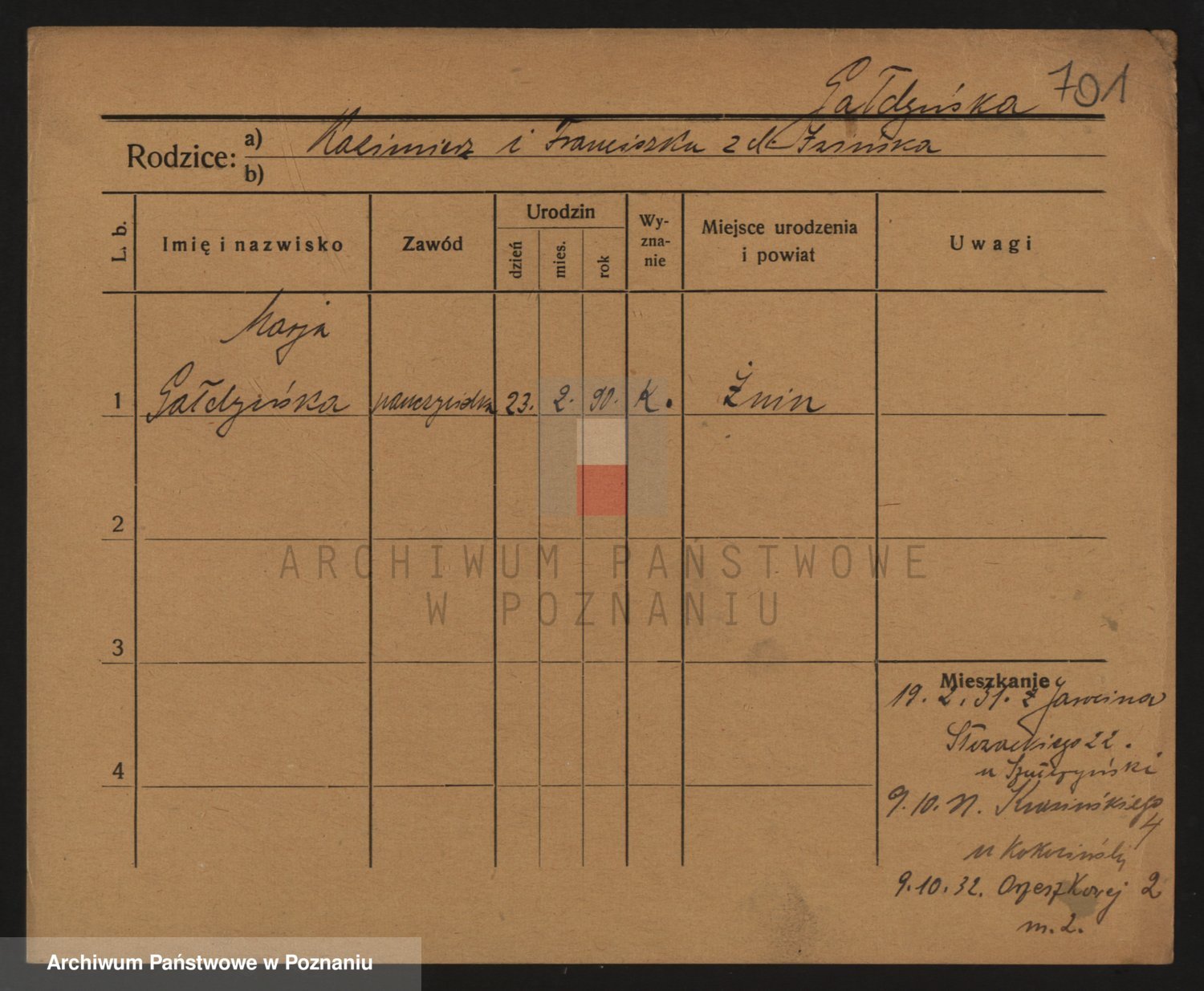 Podgląd karty osobowej dostępny jest po kliknięciu na nazwisko lub ikonkę karty. Można dokonywać powiększenia (ikony na górze) lub przechodzić między kolejnymi skanami (strzałki po bokach).
