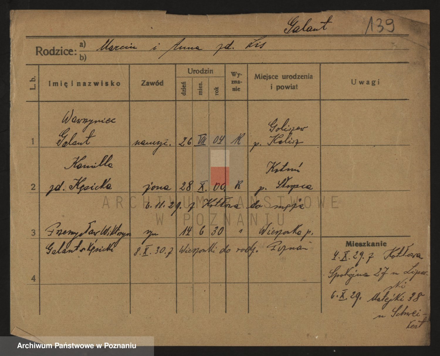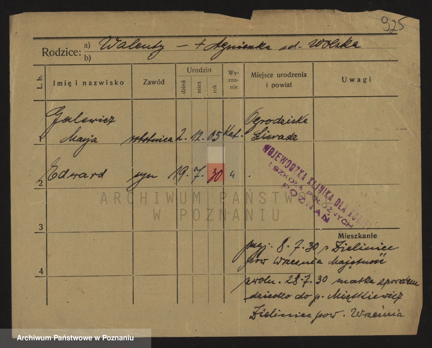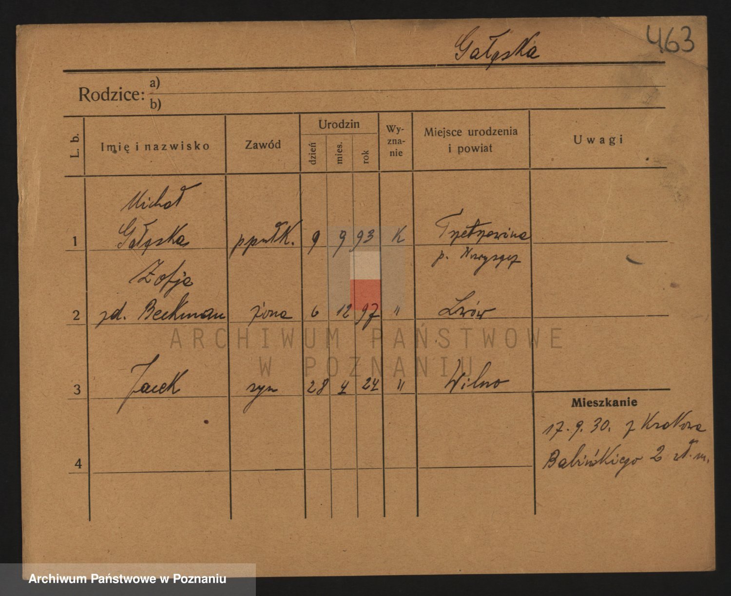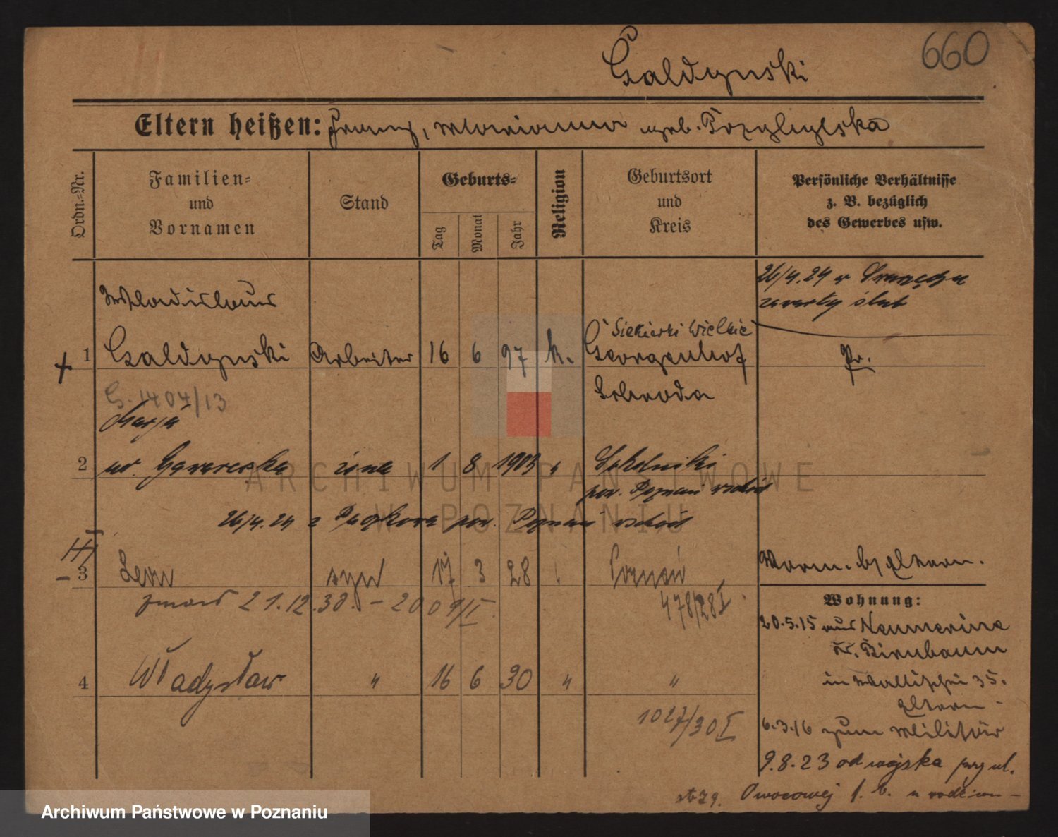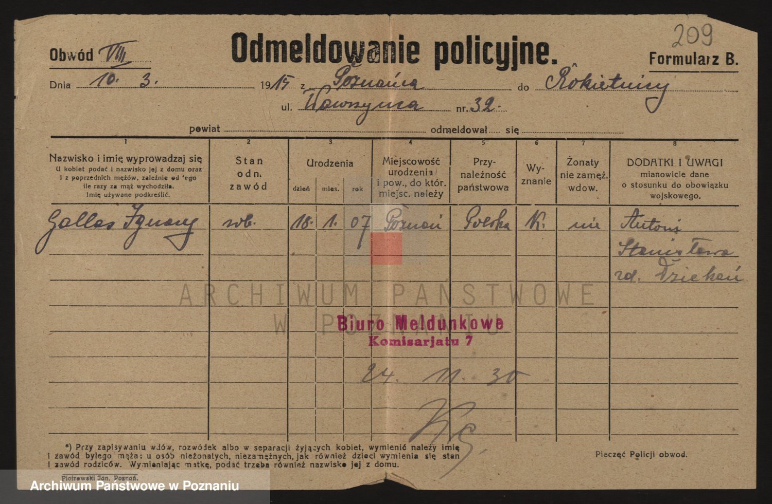 Podgląd karty osobowej dostępny jest po kliknięciu na nazwisko lub ikonkę karty. Można dokonywać powiększenia (ikony na górze) lub przechodzić między kolejnymi skanami (strzałki po bokach).