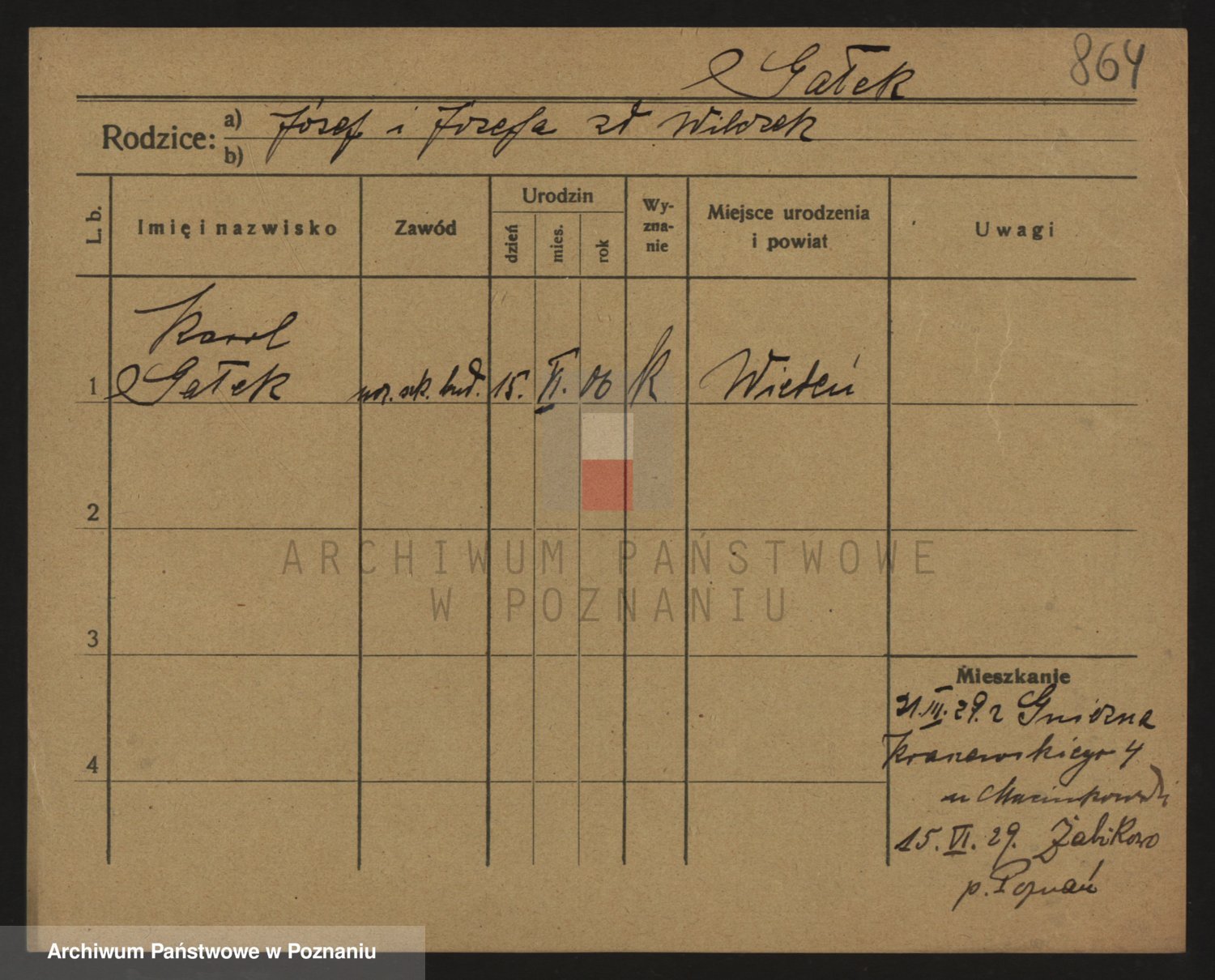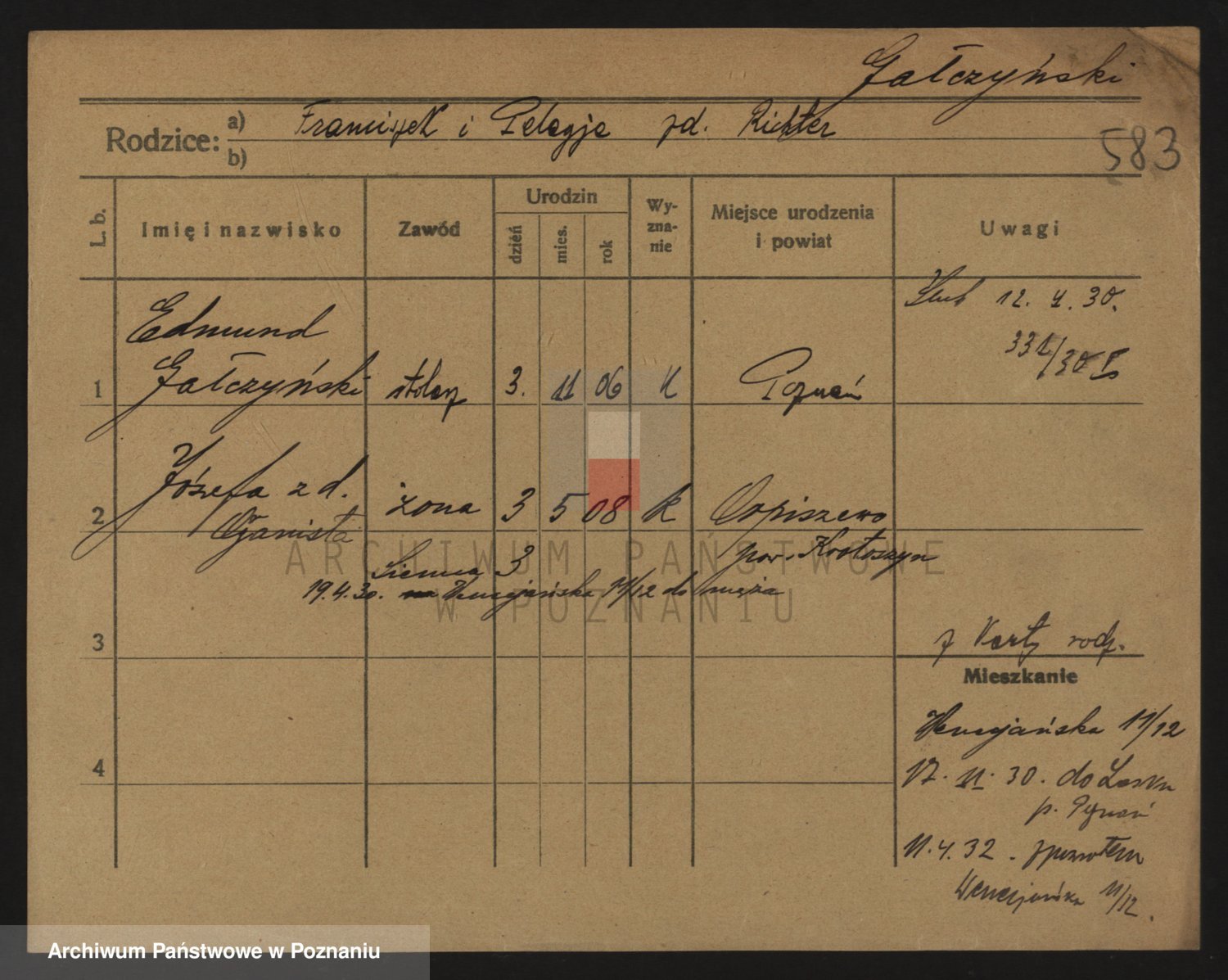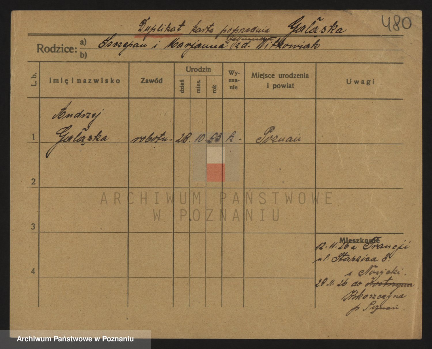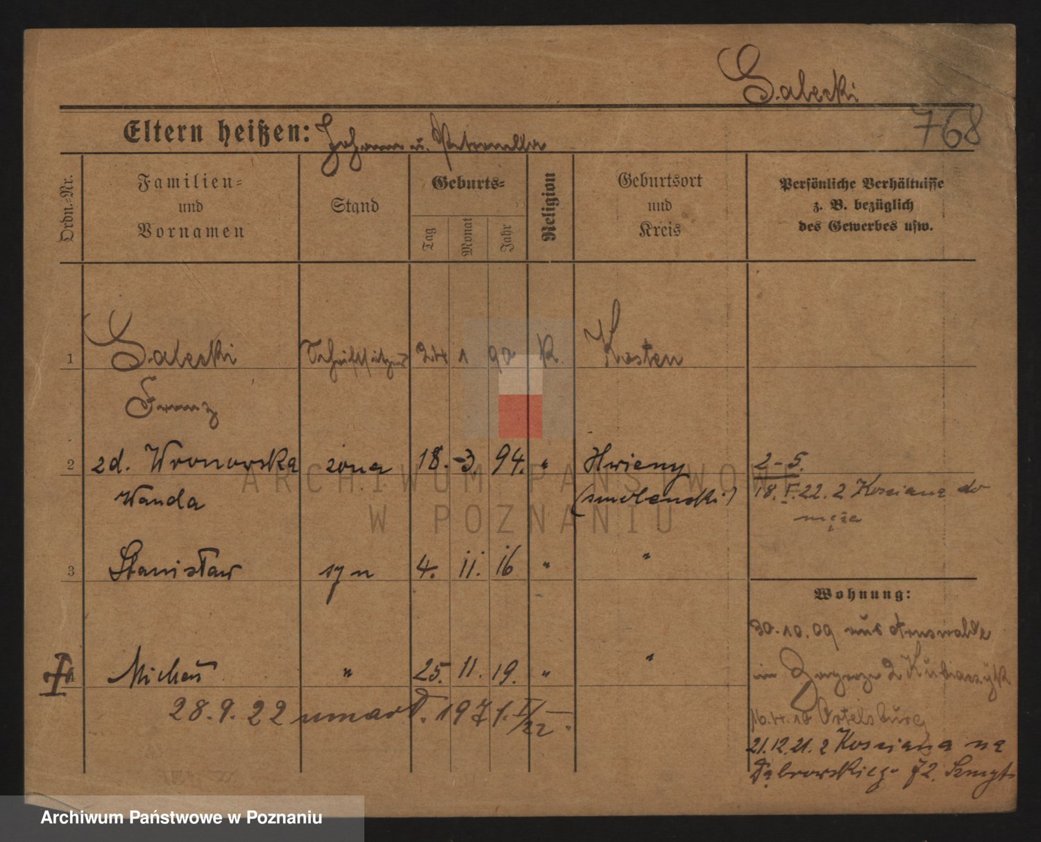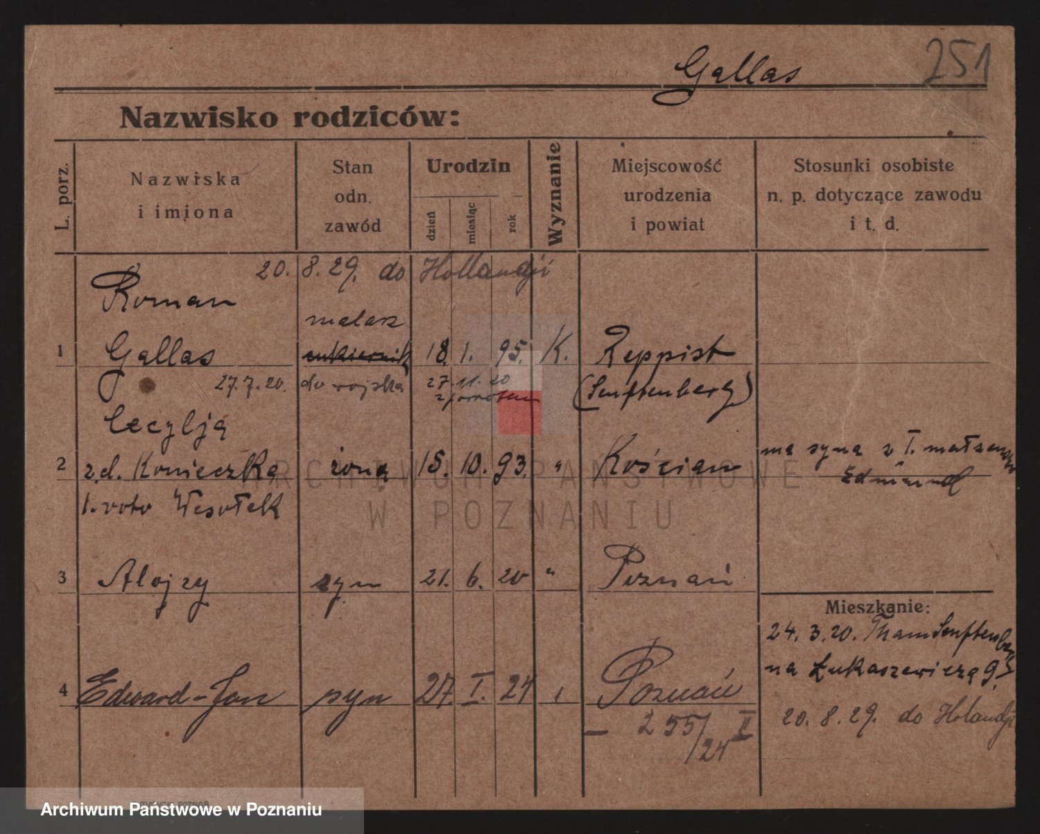 Podgląd karty osobowej dostępny jest po kliknięciu na nazwisko lub ikonkę karty. Można dokonywać powiększenia (ikony na górze) lub przechodzić między kolejnymi skanami (strzałki po bokach).
