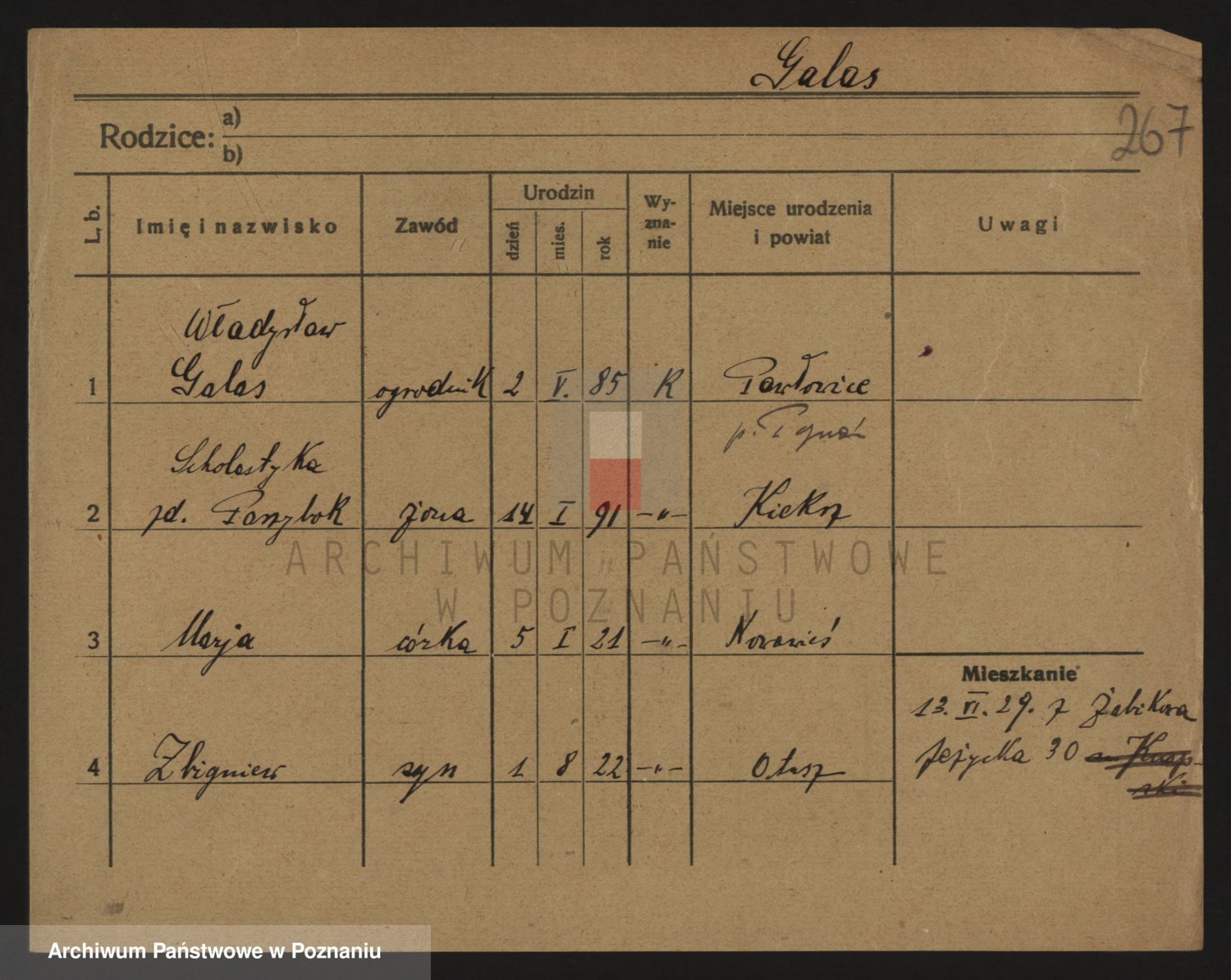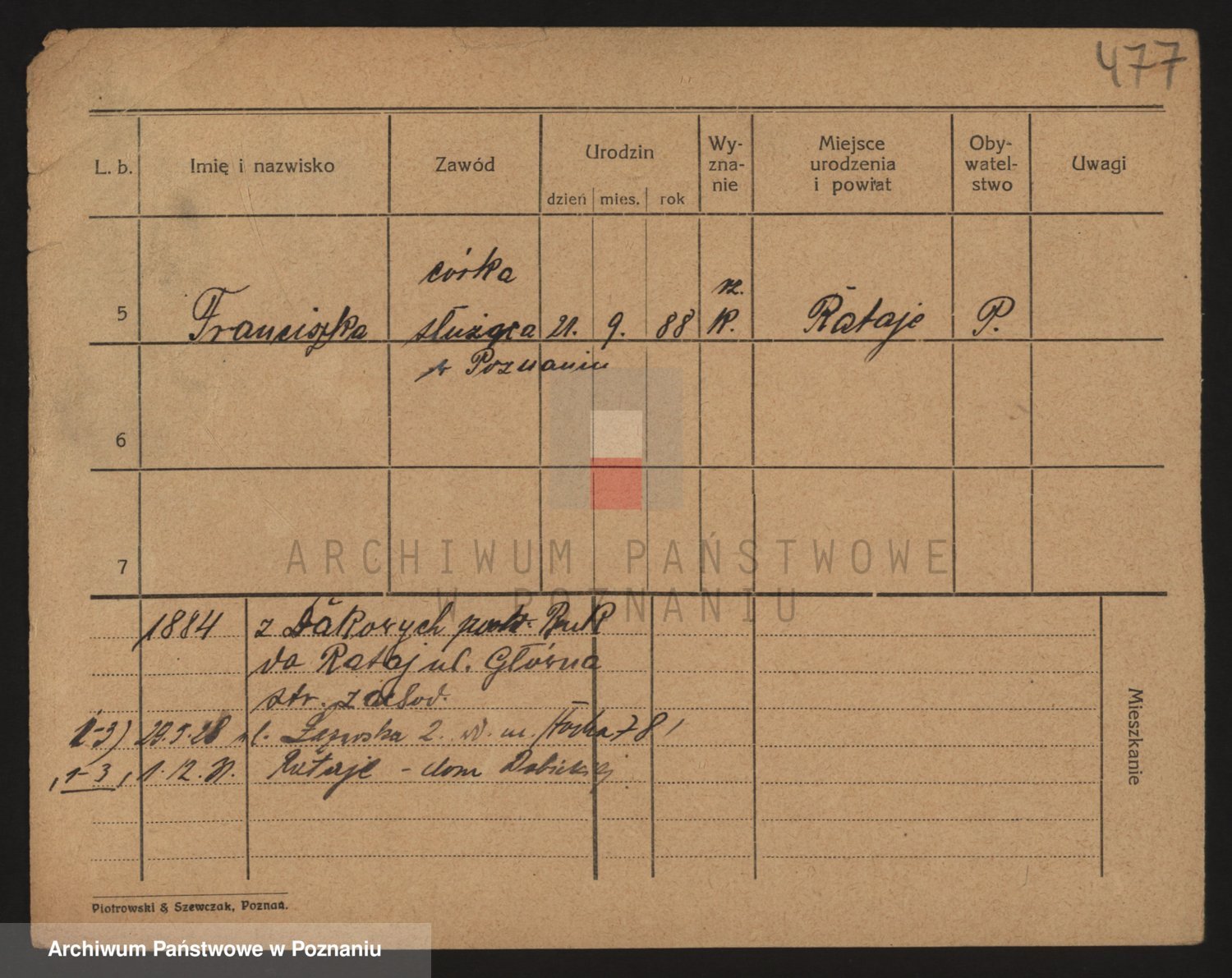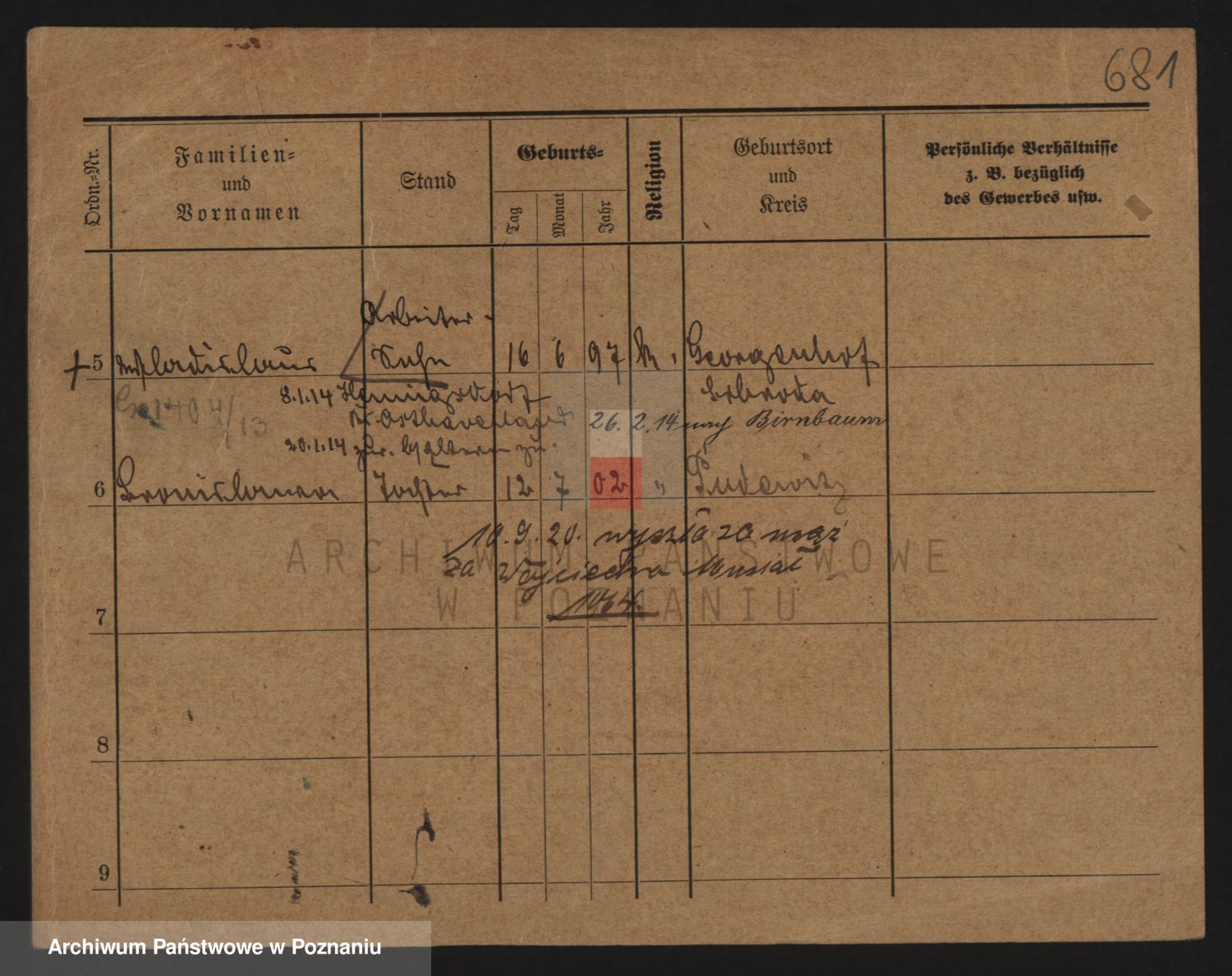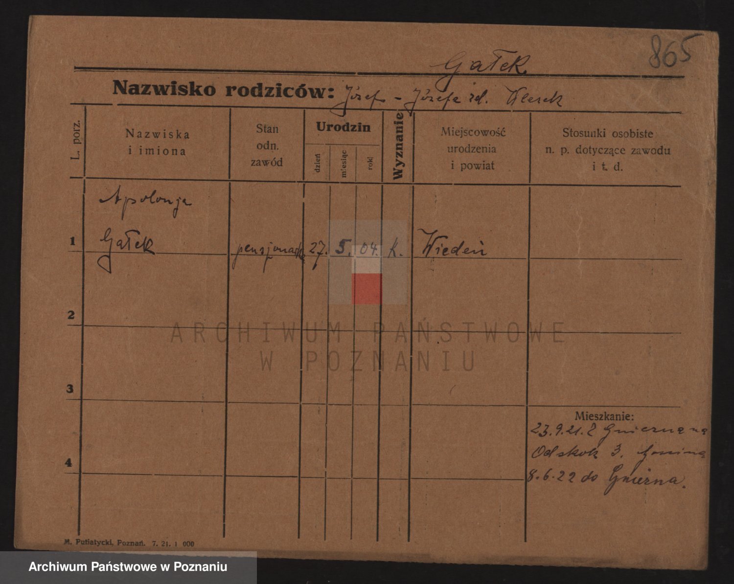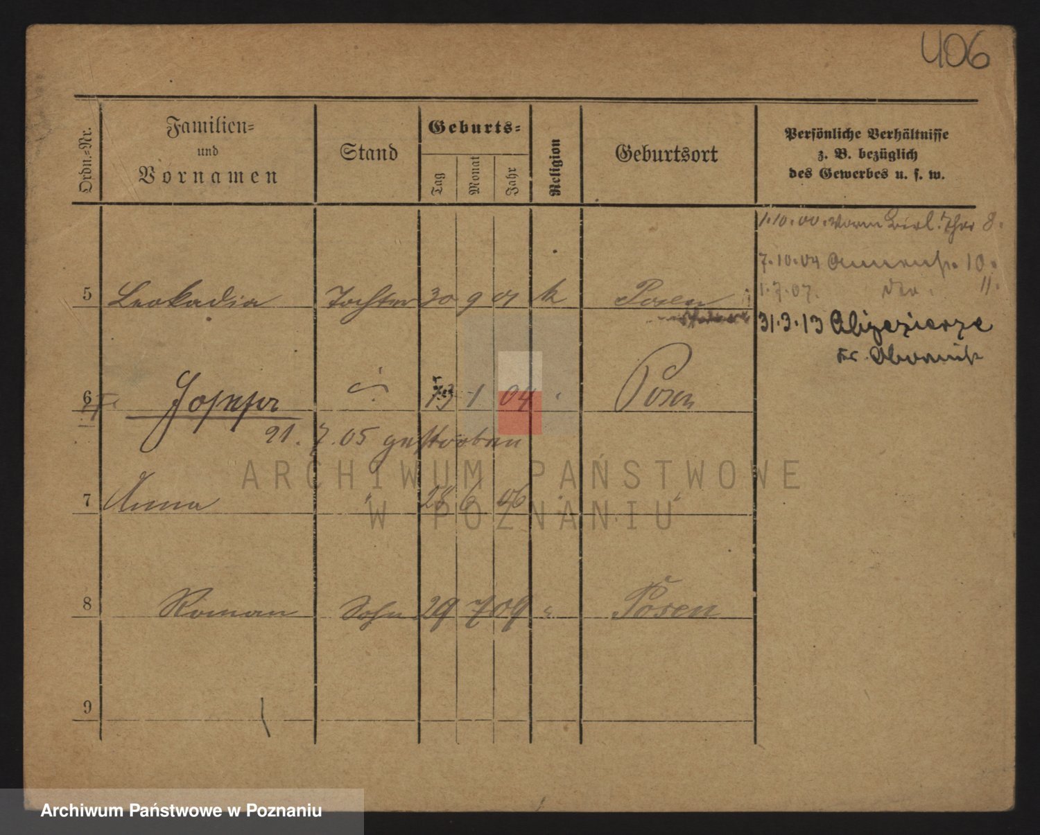 Podgląd karty osobowej dostępny jest po kliknięciu na nazwisko lub ikonkę karty. Można dokonywać powiększenia (ikony na górze) lub przechodzić między kolejnymi skanami (strzałki po bokach).