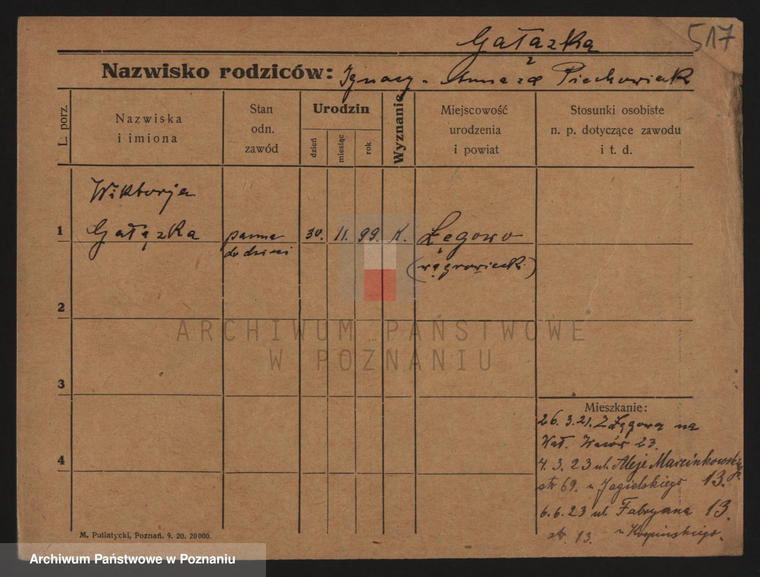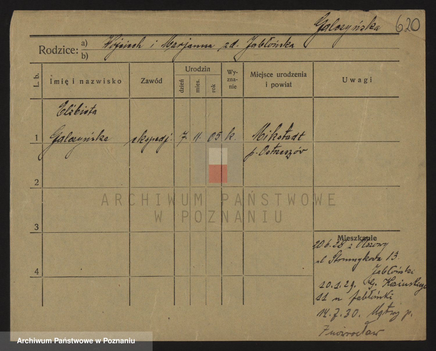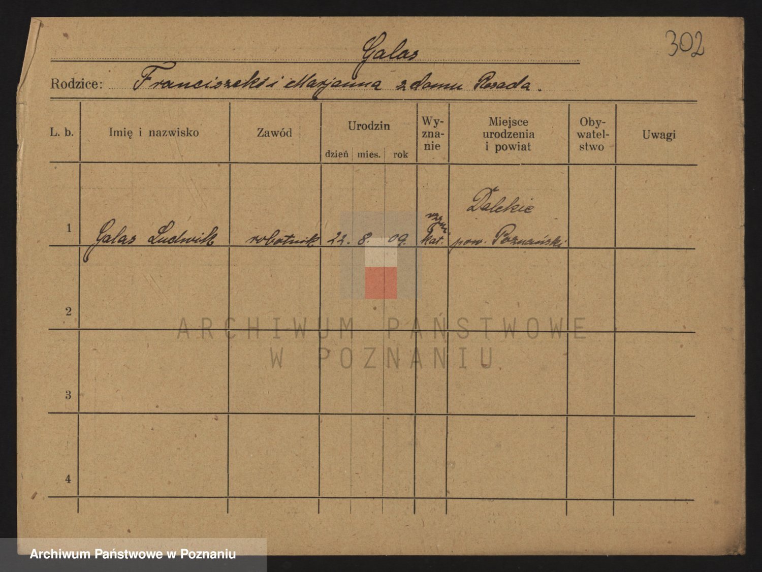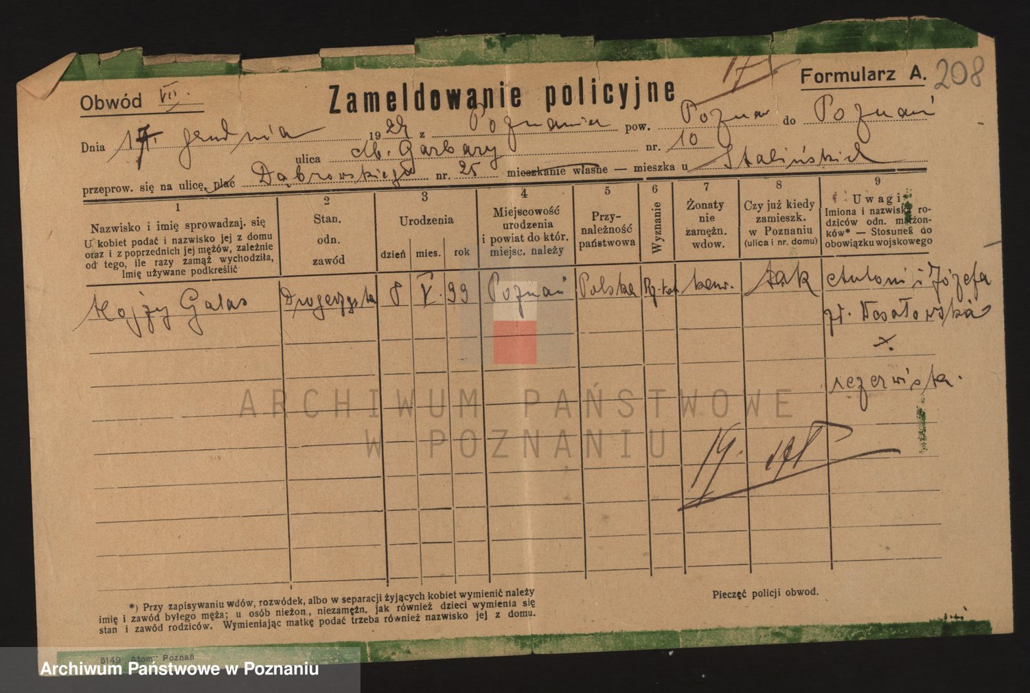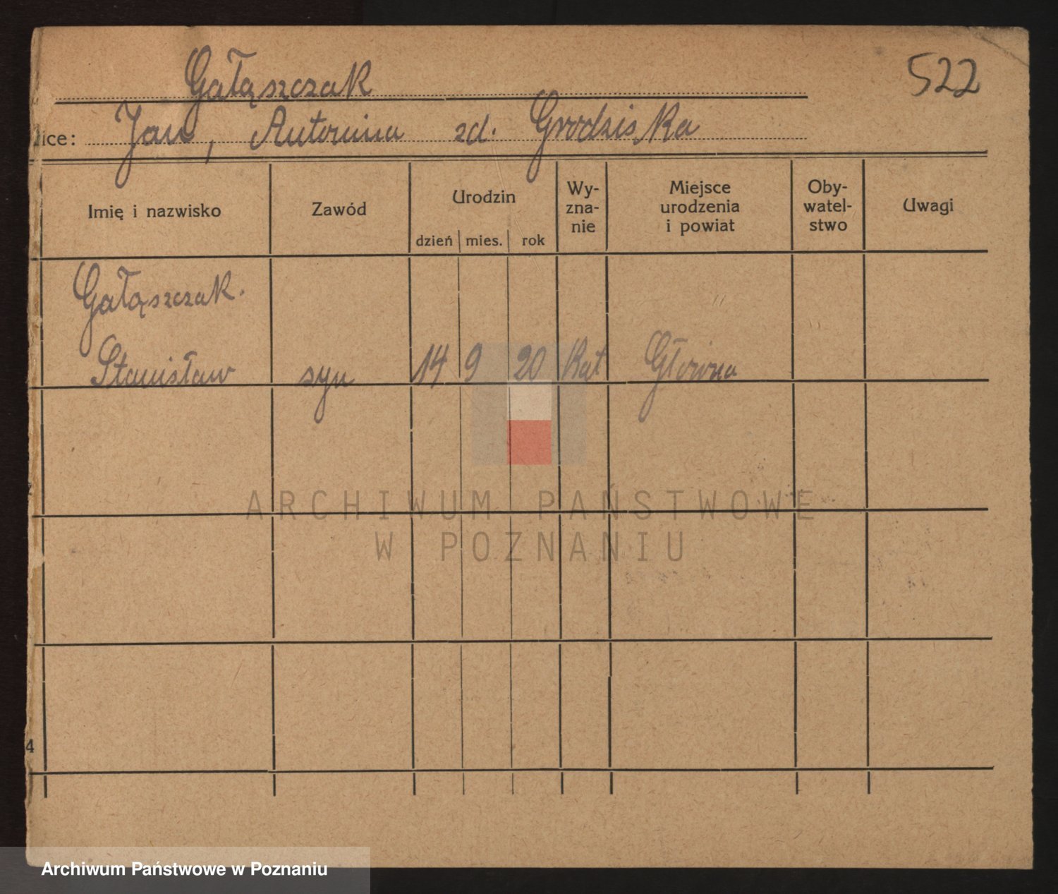 Podgląd karty osobowej dostępny jest po kliknięciu na nazwisko lub ikonkę karty. Można dokonywać powiększenia (ikony na górze) lub przechodzić między kolejnymi skanami (strzałki po bokach).