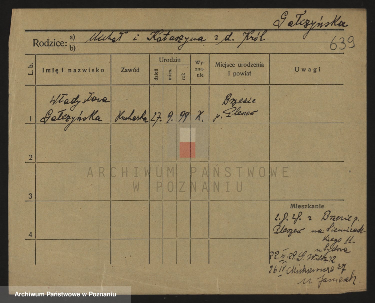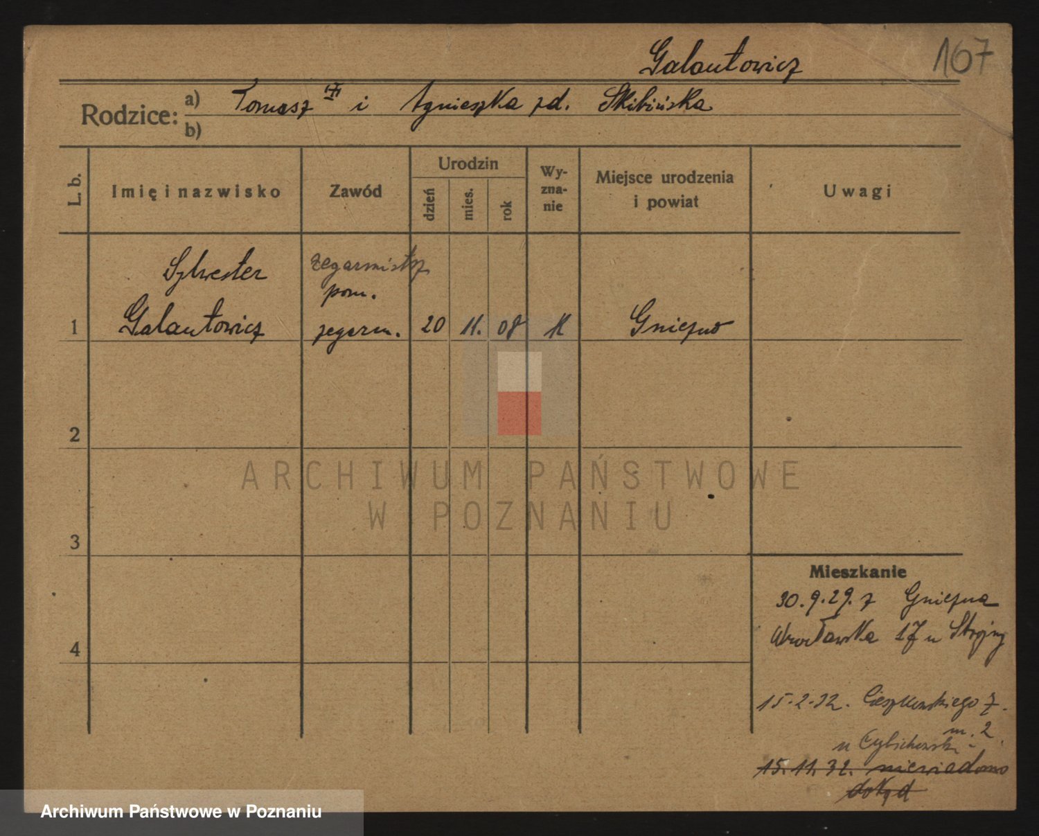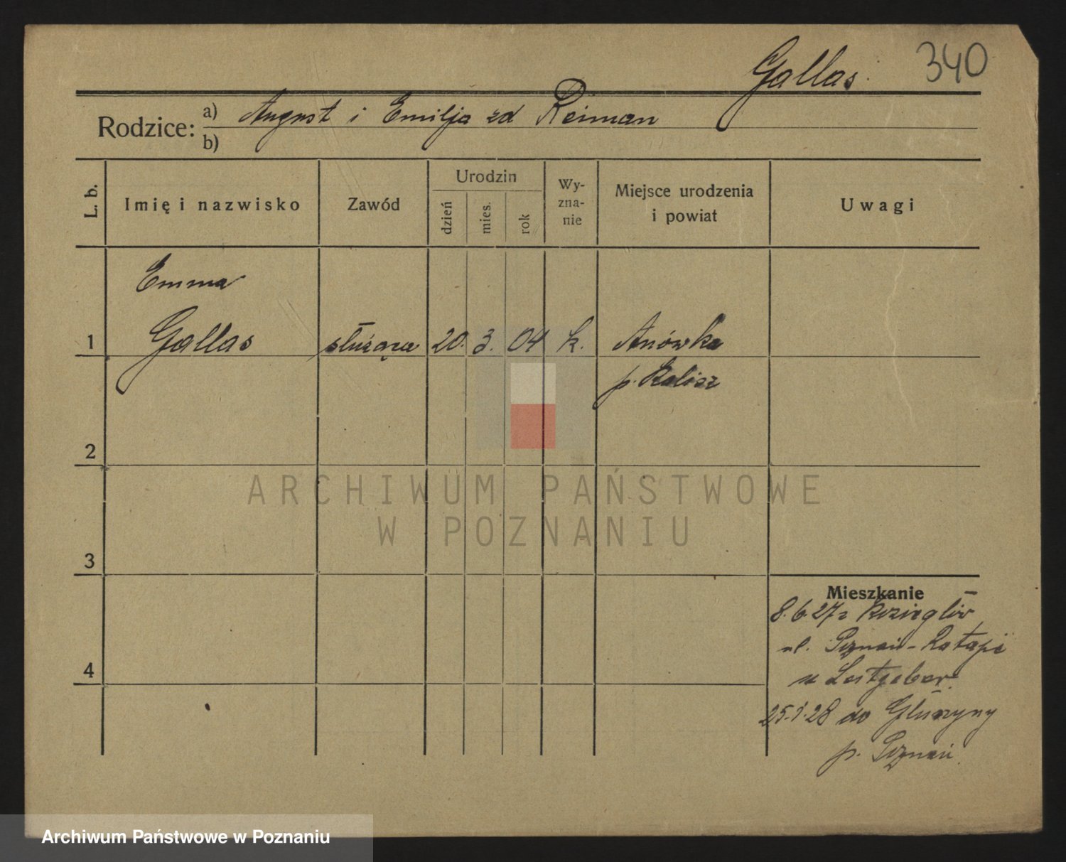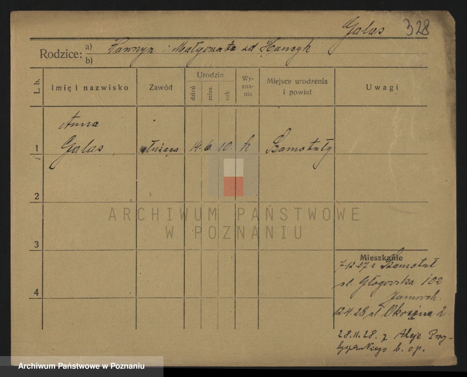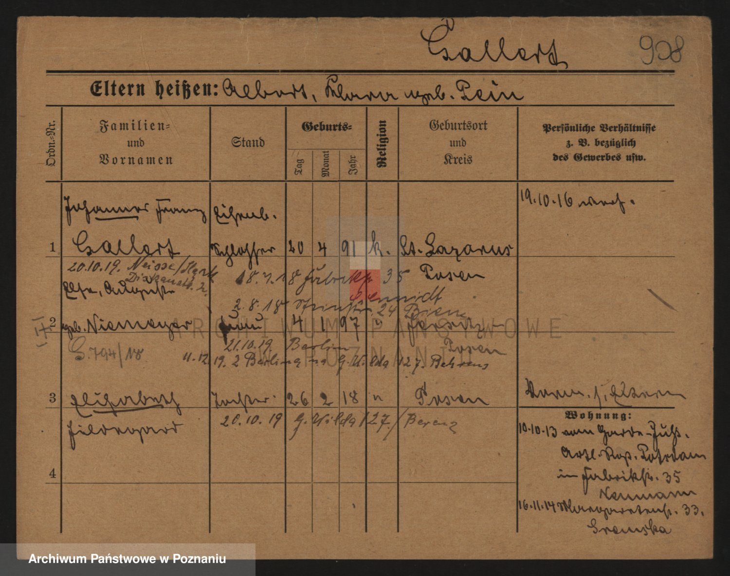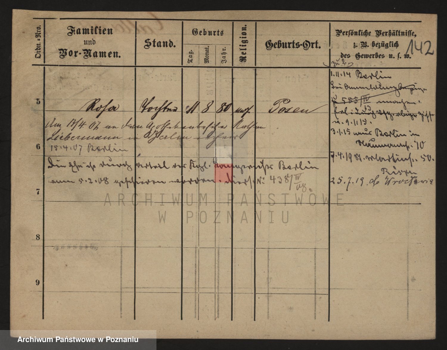 Podgląd karty osobowej dostępny jest po kliknięciu na nazwisko lub ikonkę karty. Można dokonywać powiększenia (ikony na górze) lub przechodzić między kolejnymi skanami (strzałki po bokach).