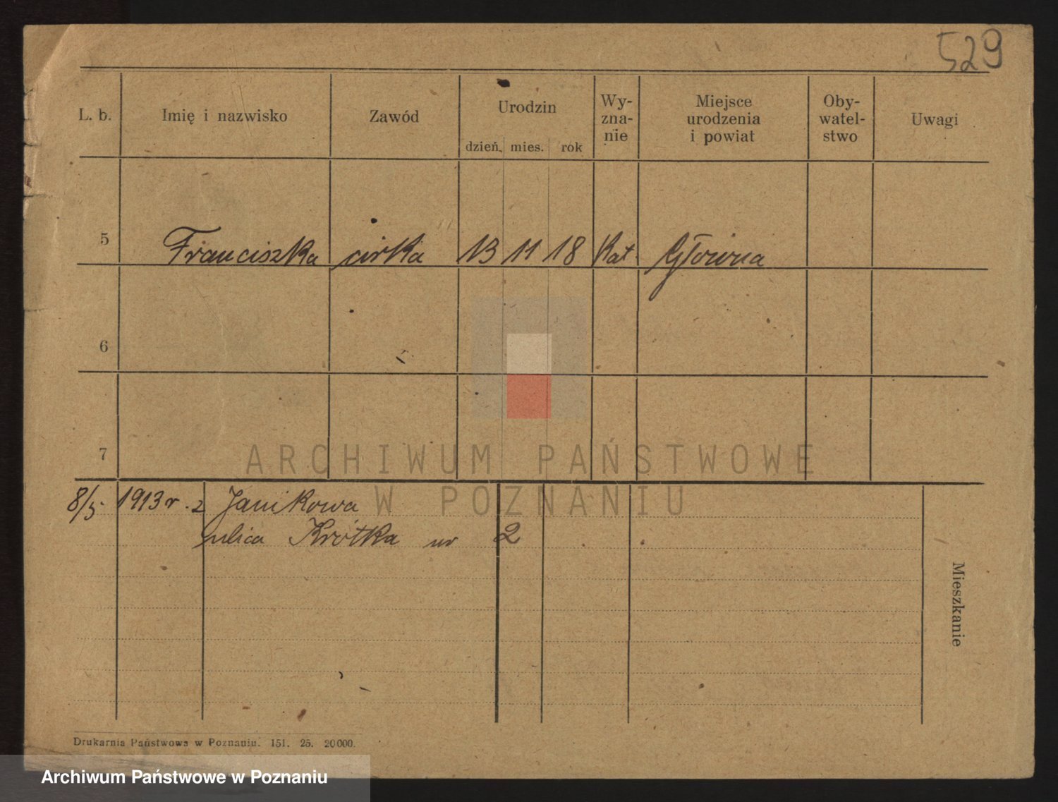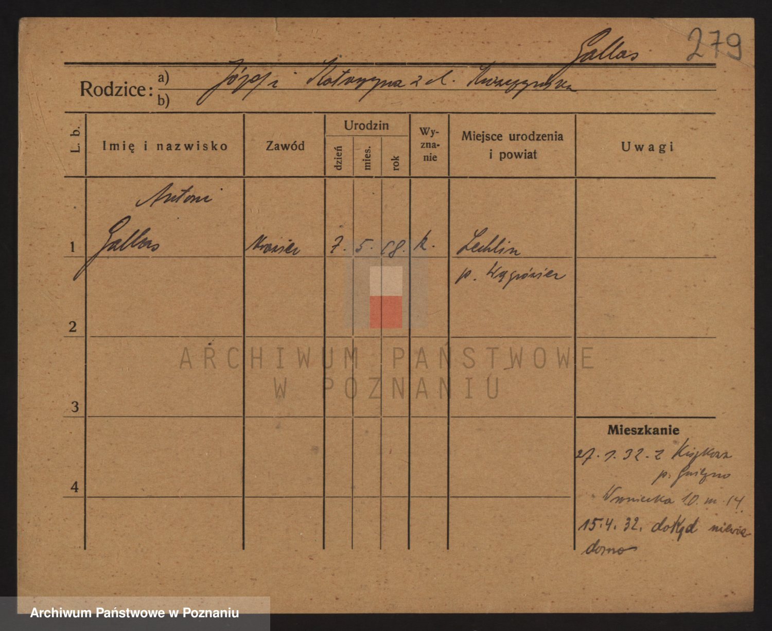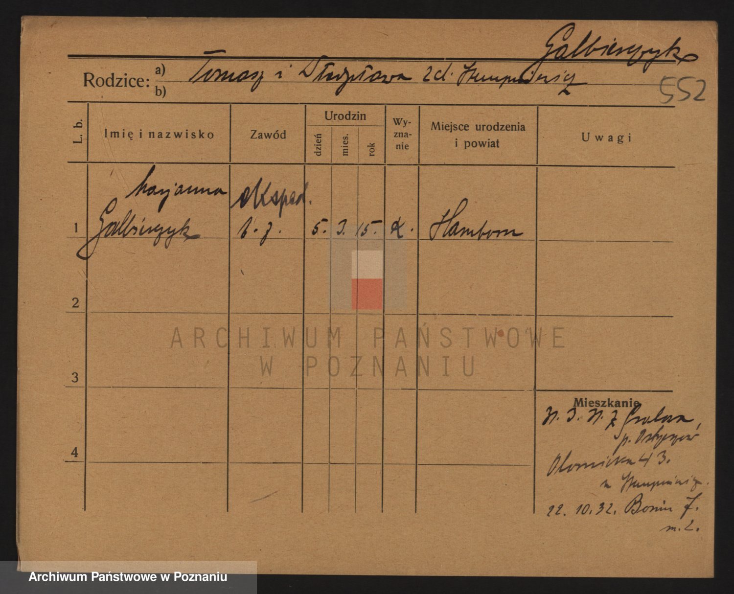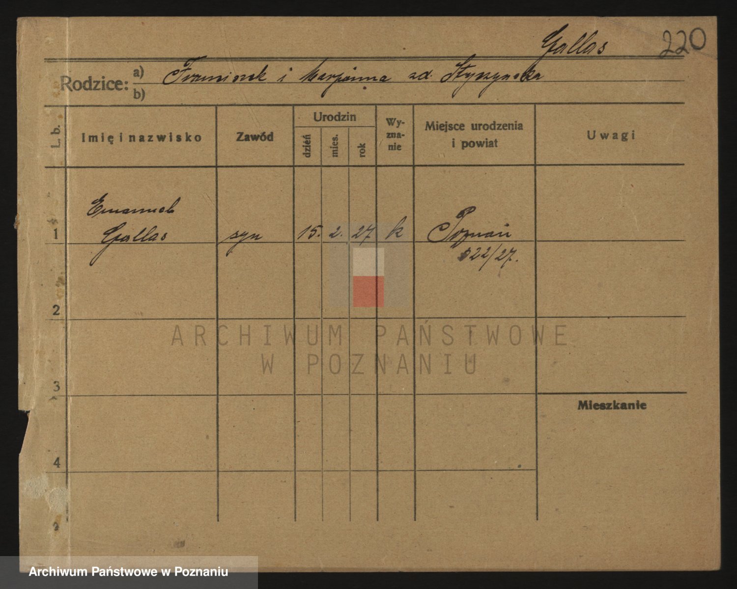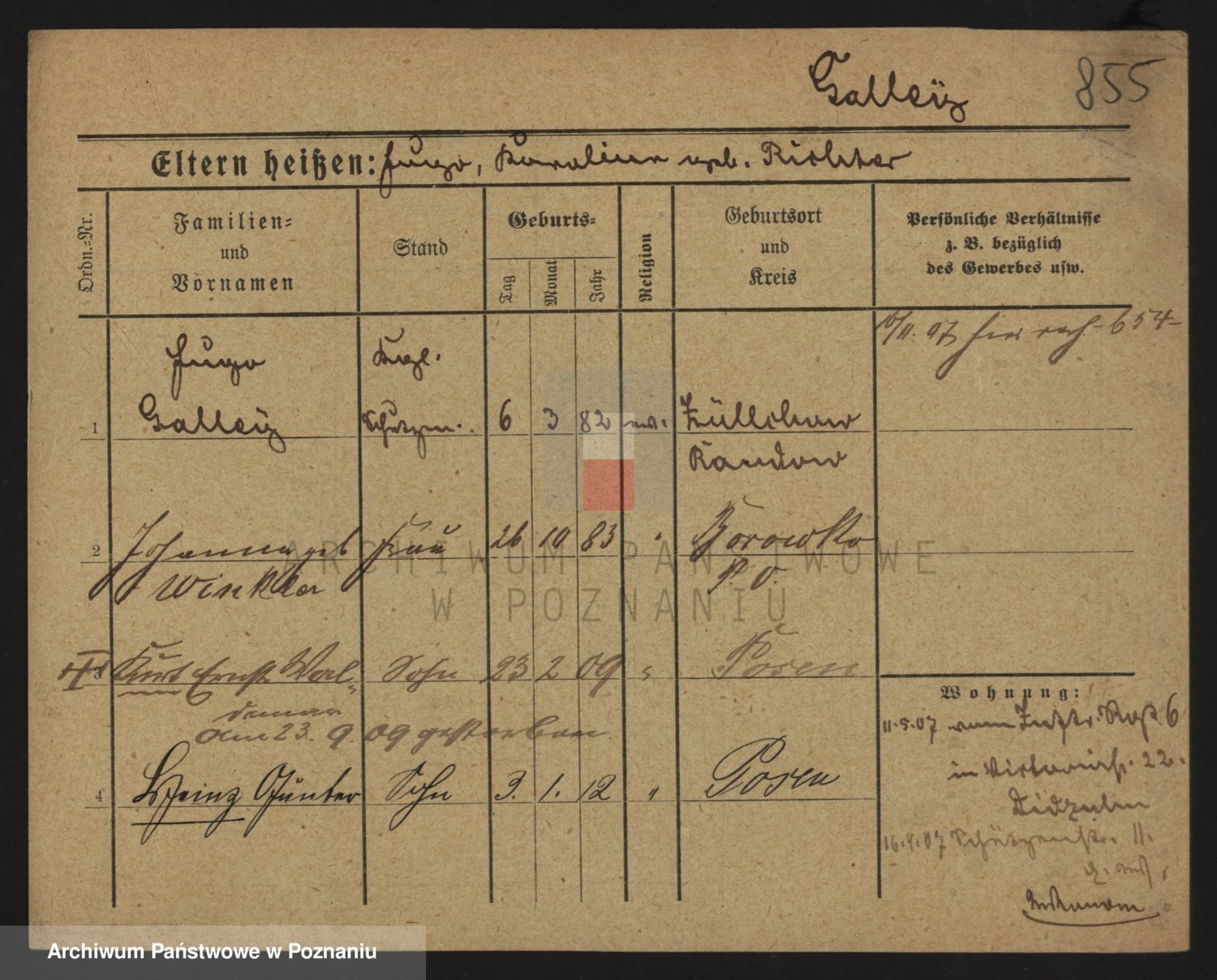 Podgląd karty osobowej dostępny jest po kliknięciu na nazwisko lub ikonkę karty. Można dokonywać powiększenia (ikony na górze) lub przechodzić między kolejnymi skanami (strzałki po bokach).