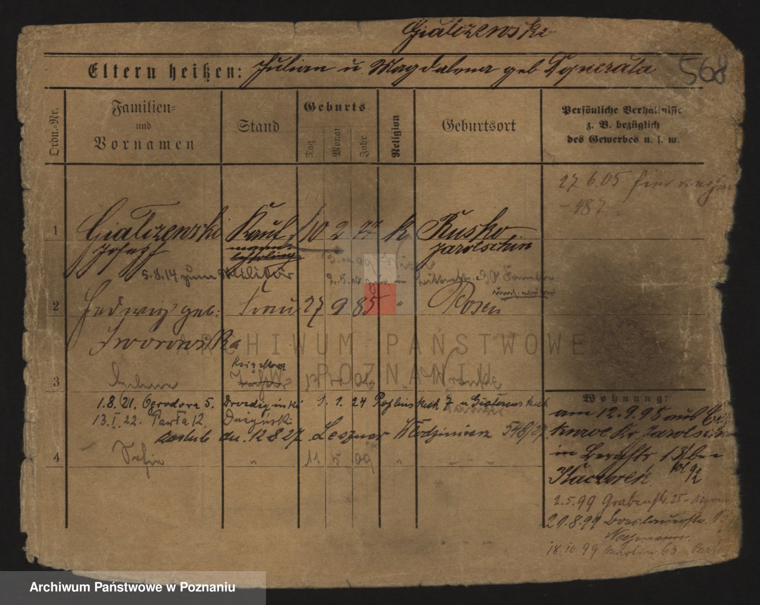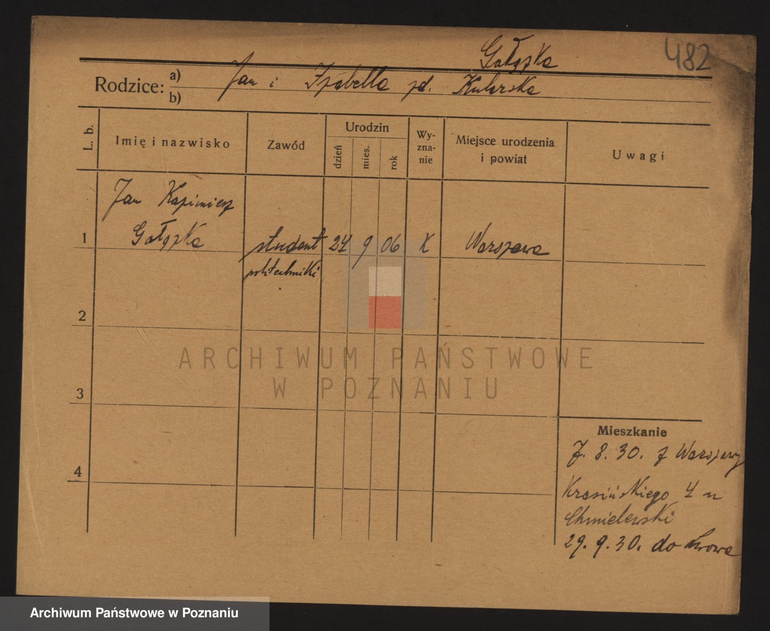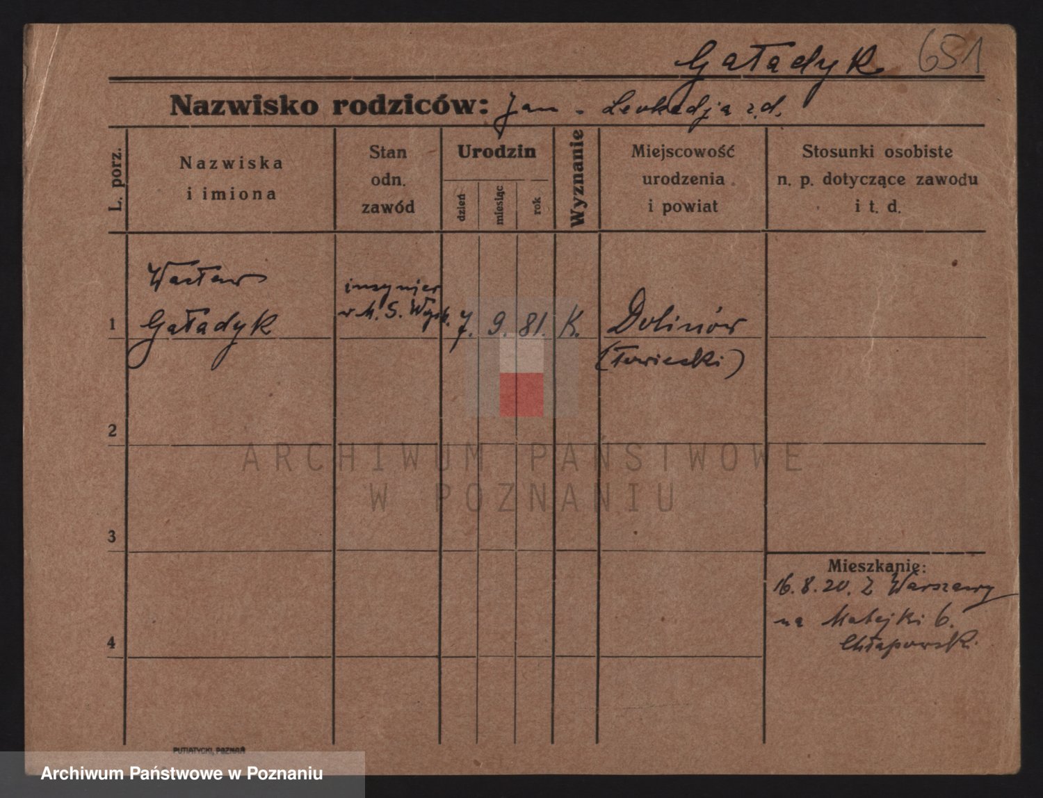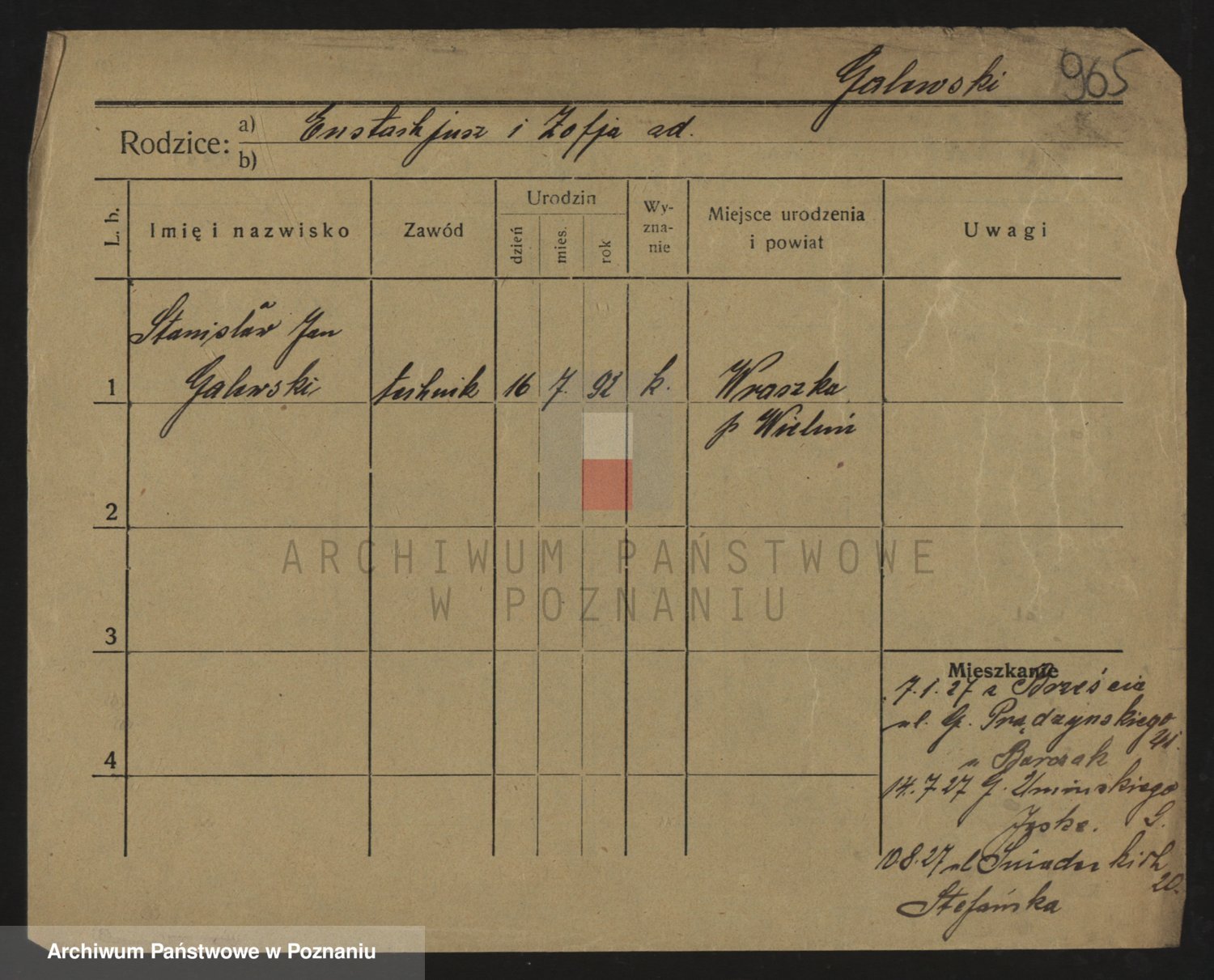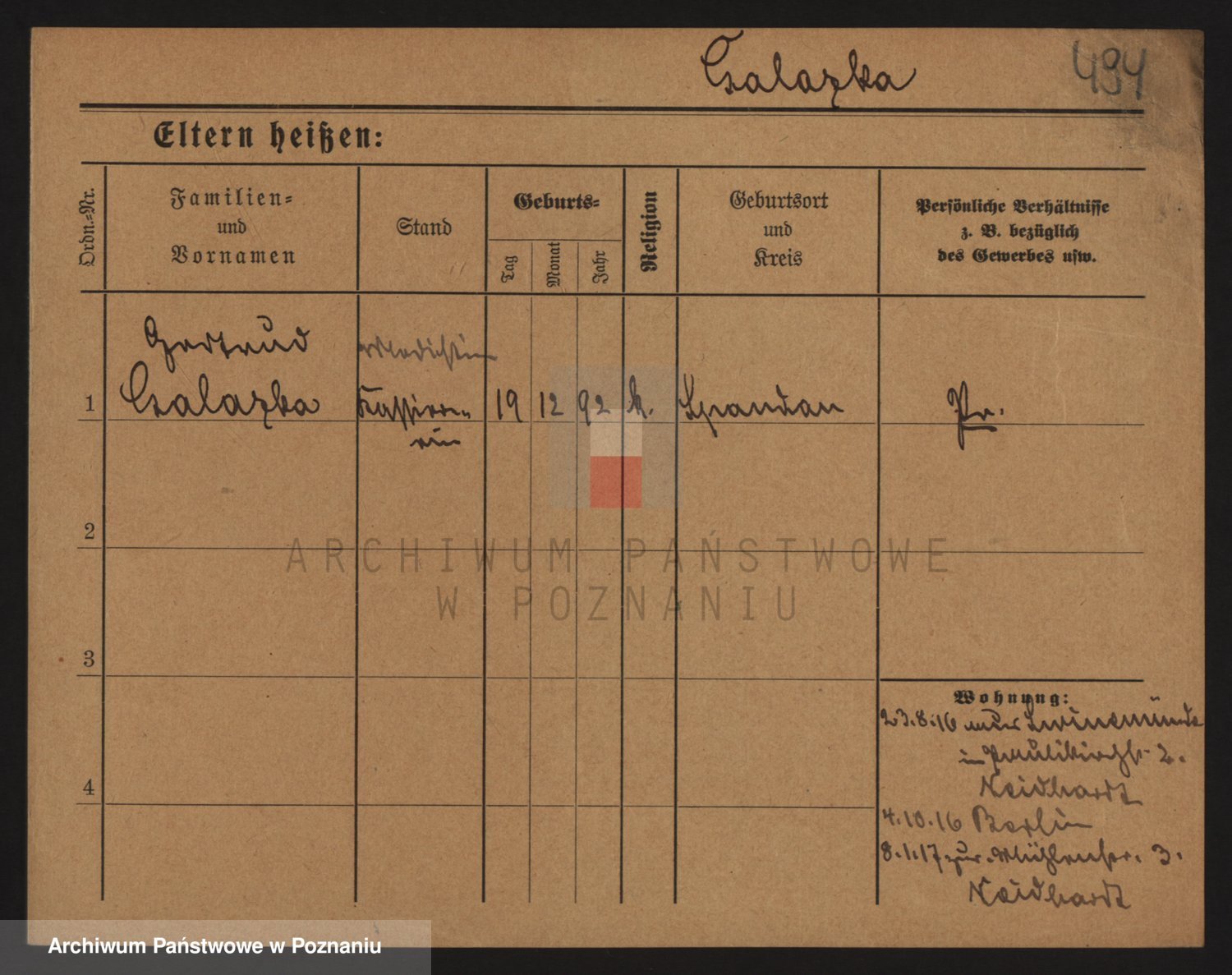 Podgląd karty osobowej dostępny jest po kliknięciu na nazwisko lub ikonkę karty. Można dokonywać powiększenia (ikony na górze) lub przechodzić między kolejnymi skanami (strzałki po bokach).