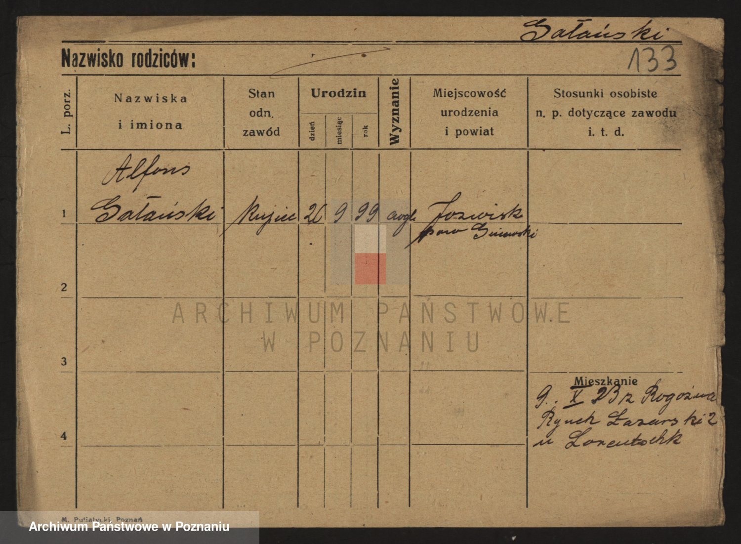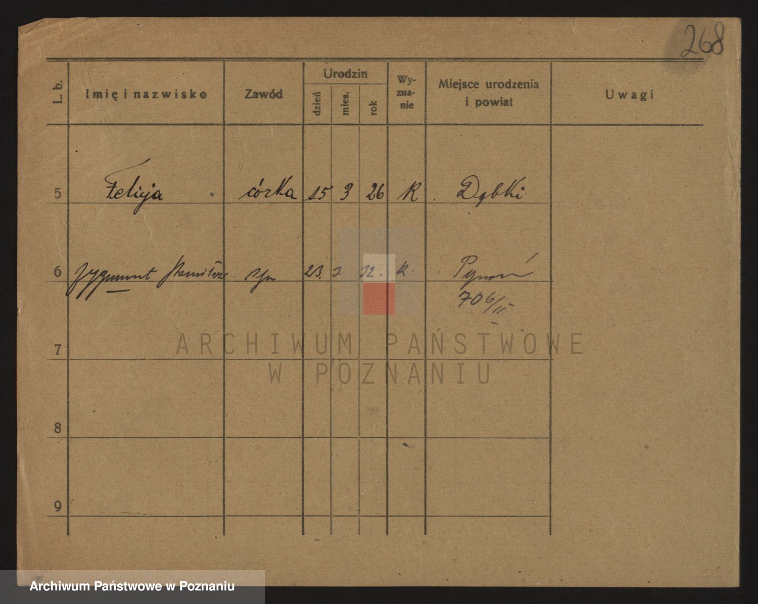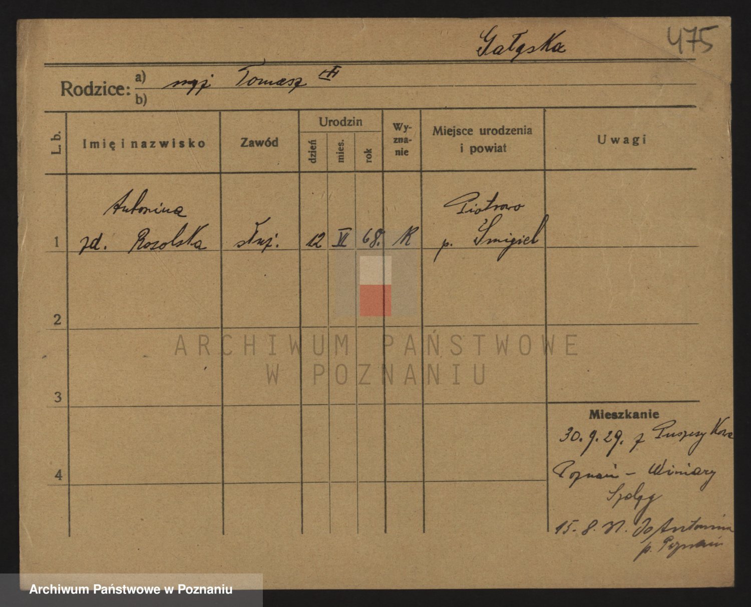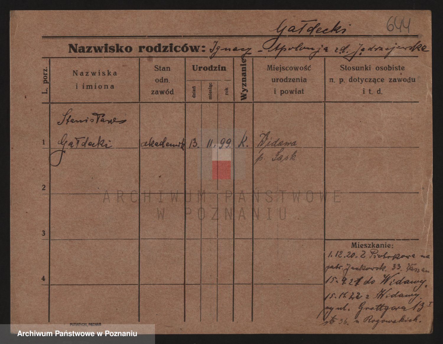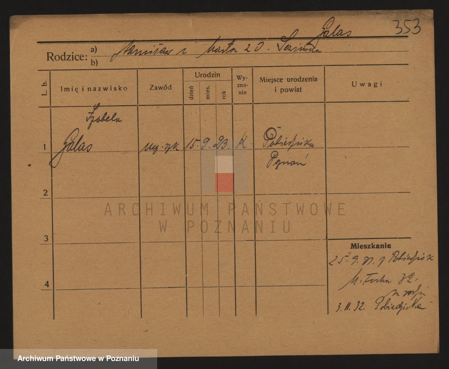 Podgląd karty osobowej dostępny jest po kliknięciu na nazwisko lub ikonkę karty. Można dokonywać powiększenia (ikony na górze) lub przechodzić między kolejnymi skanami (strzałki po bokach).