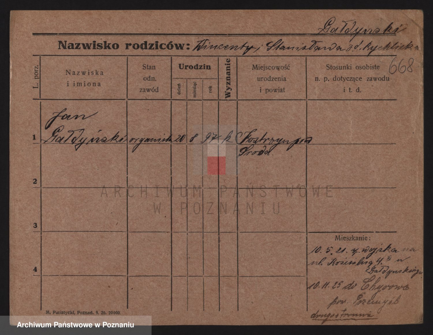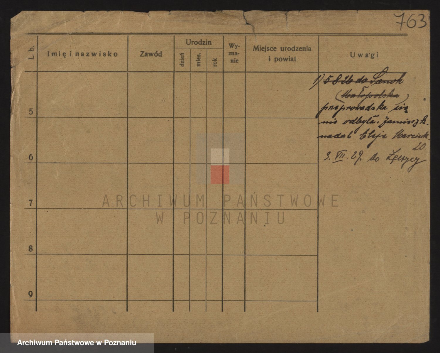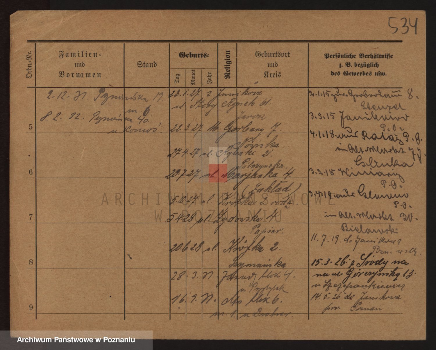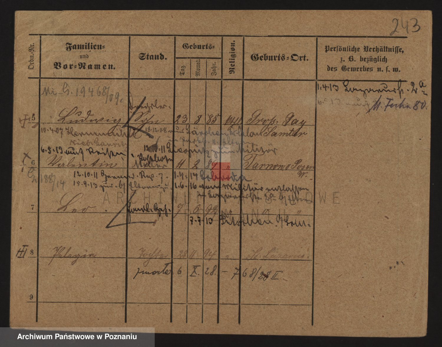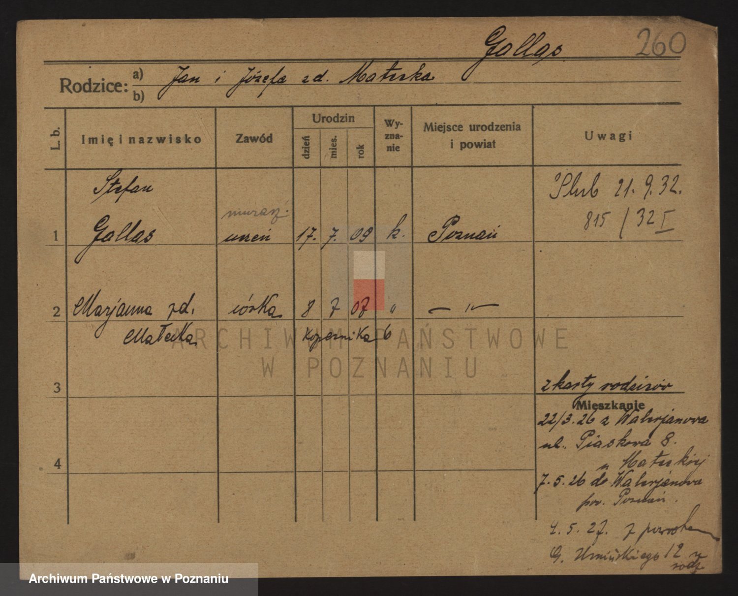 Podgląd karty osobowej dostępny jest po kliknięciu na nazwisko lub ikonkę karty. Można dokonywać powiększenia (ikony na górze) lub przechodzić między kolejnymi skanami (strzałki po bokach).