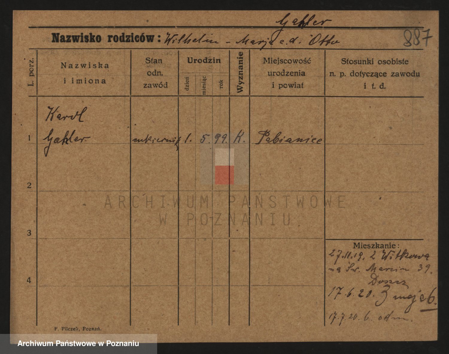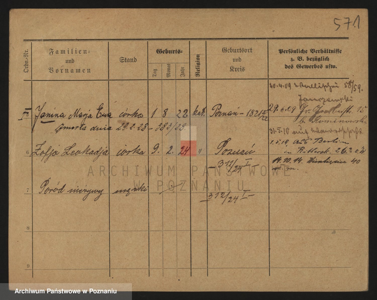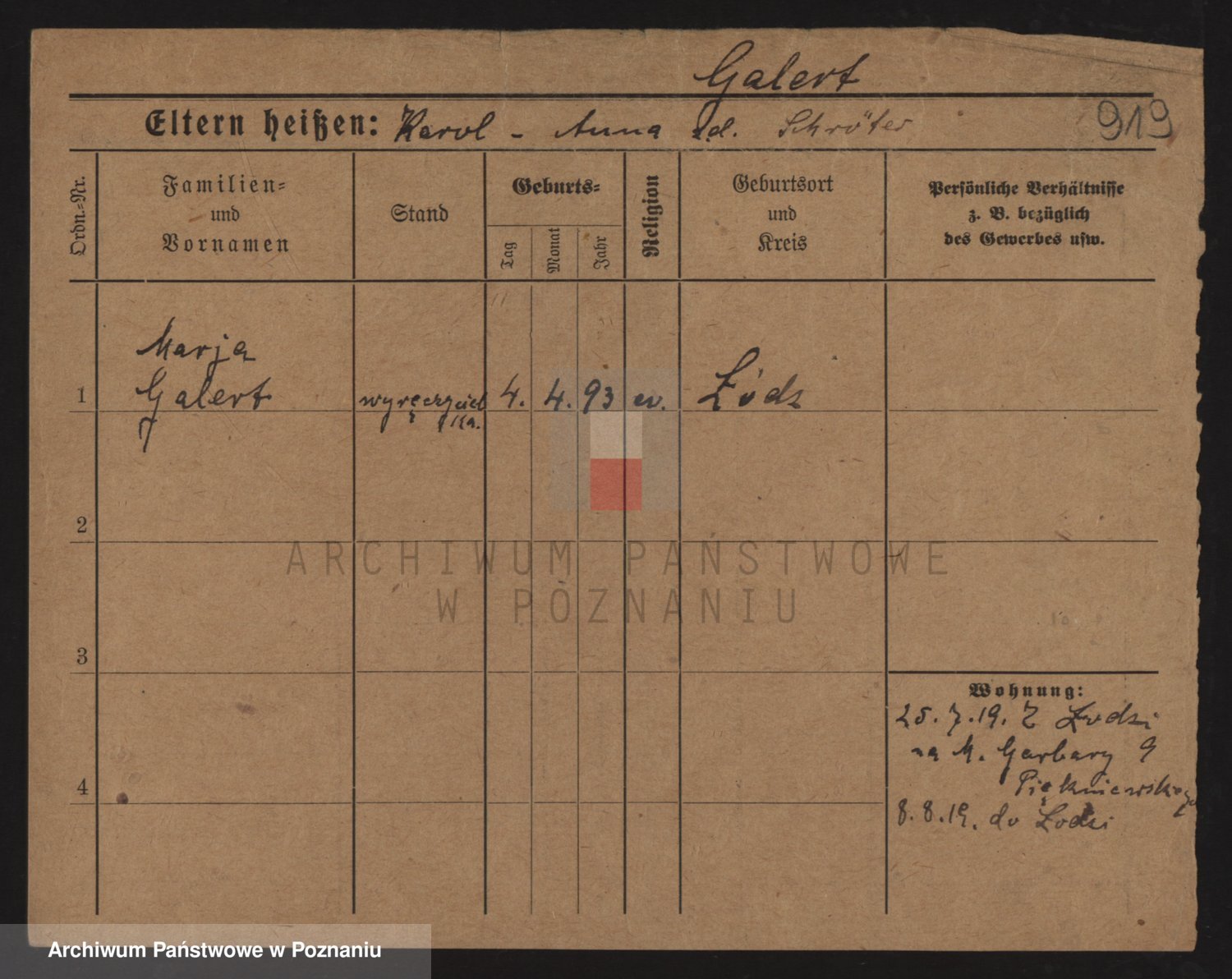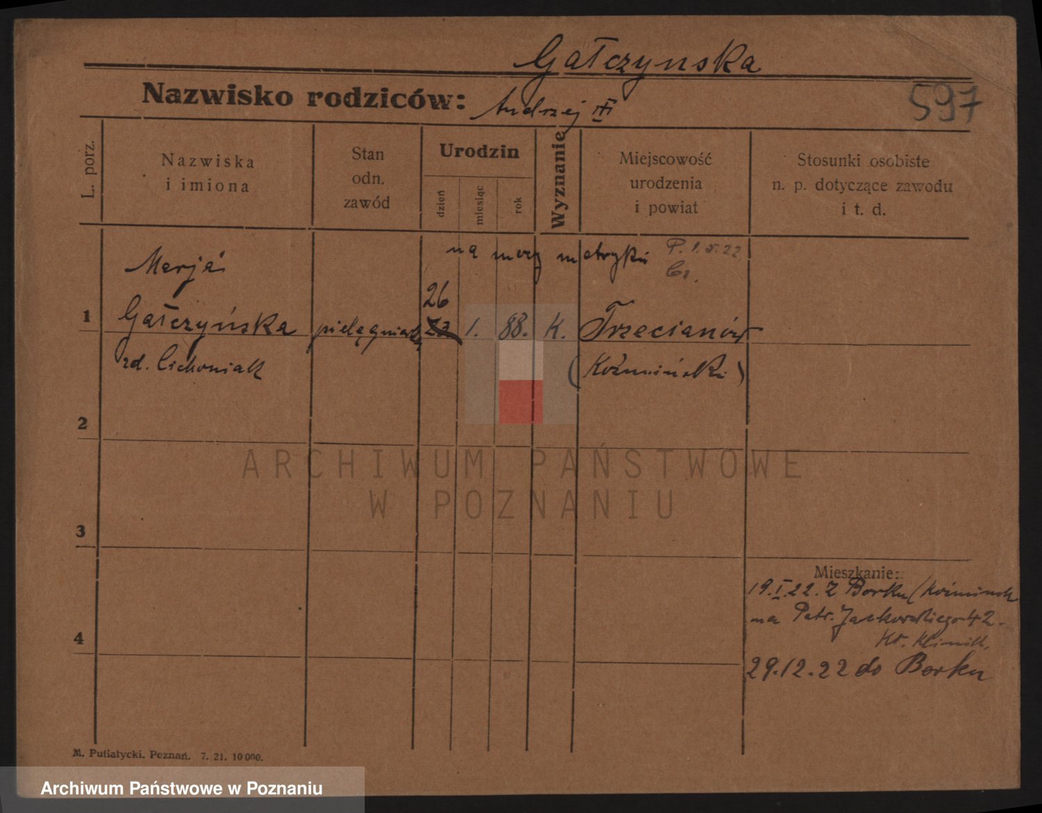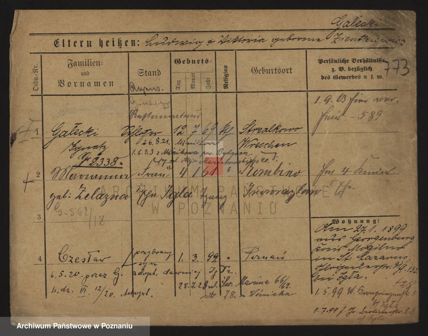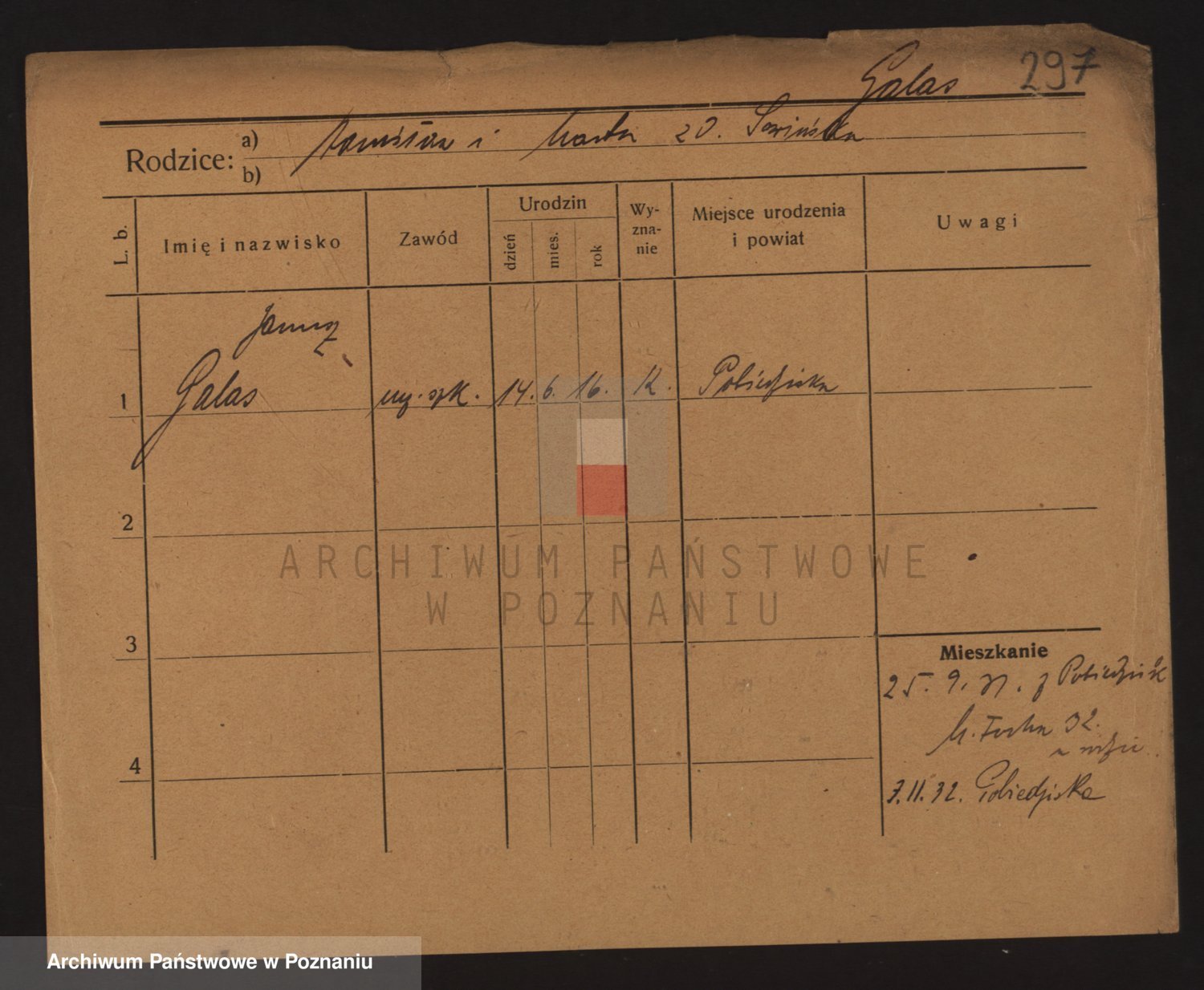 Podgląd karty osobowej dostępny jest po kliknięciu na nazwisko lub ikonkę karty. Można dokonywać powiększenia (ikony na górze) lub przechodzić między kolejnymi skanami (strzałki po bokach).