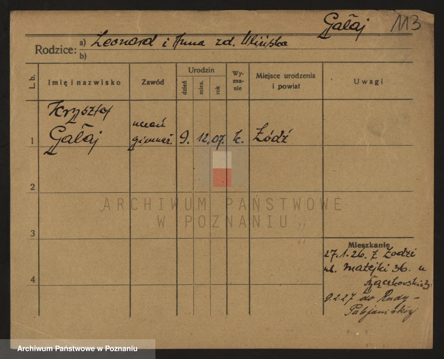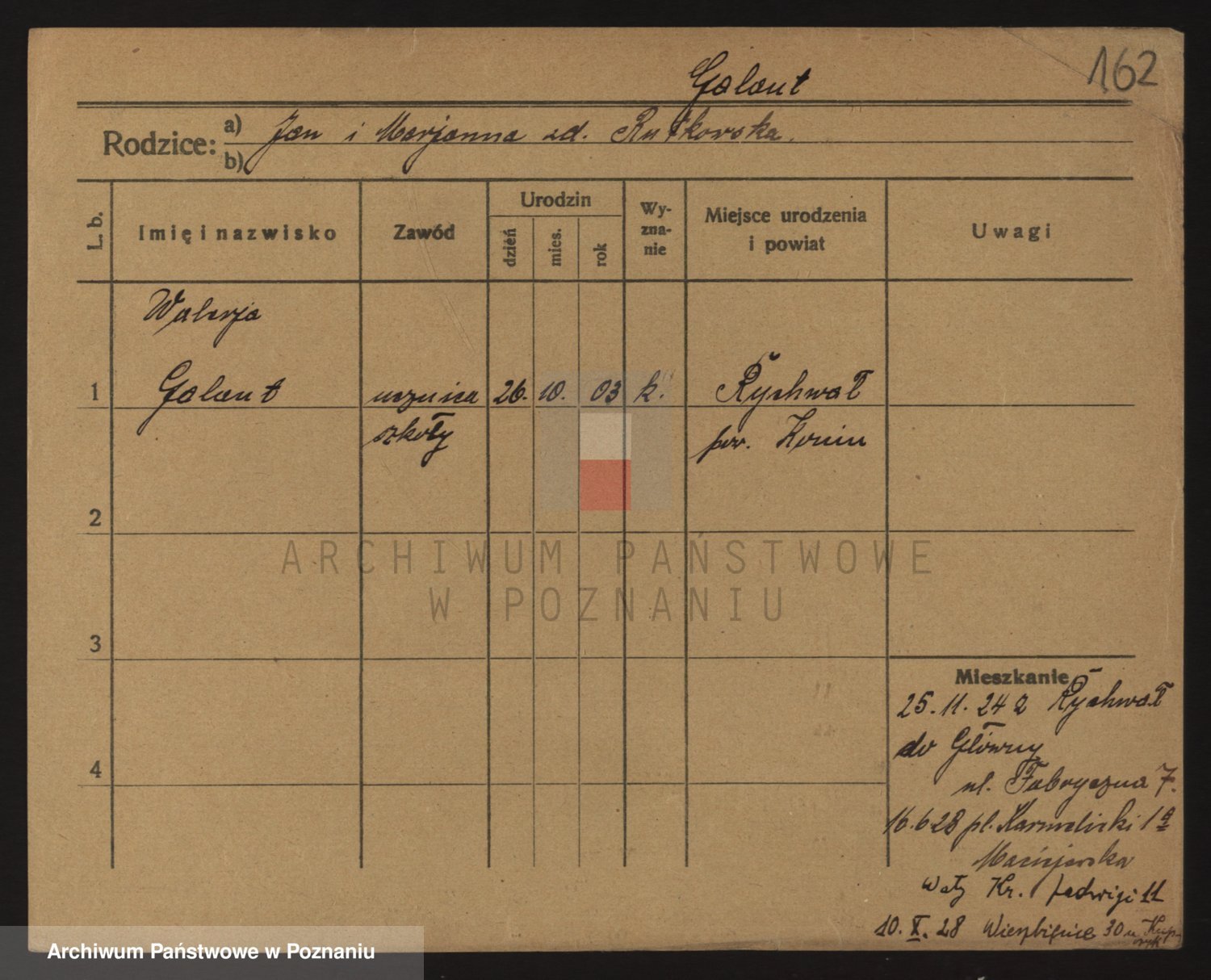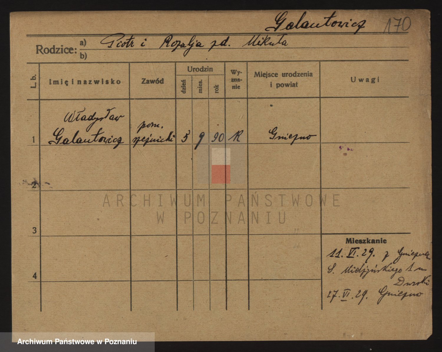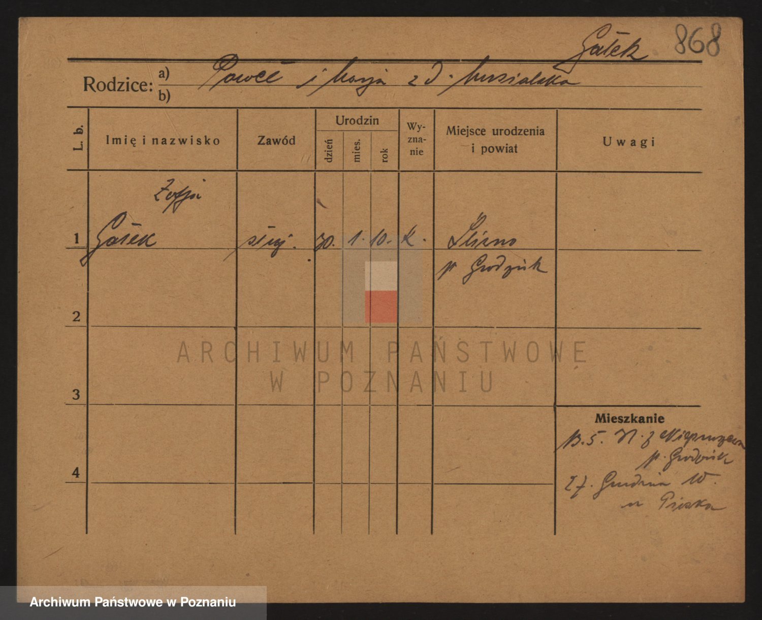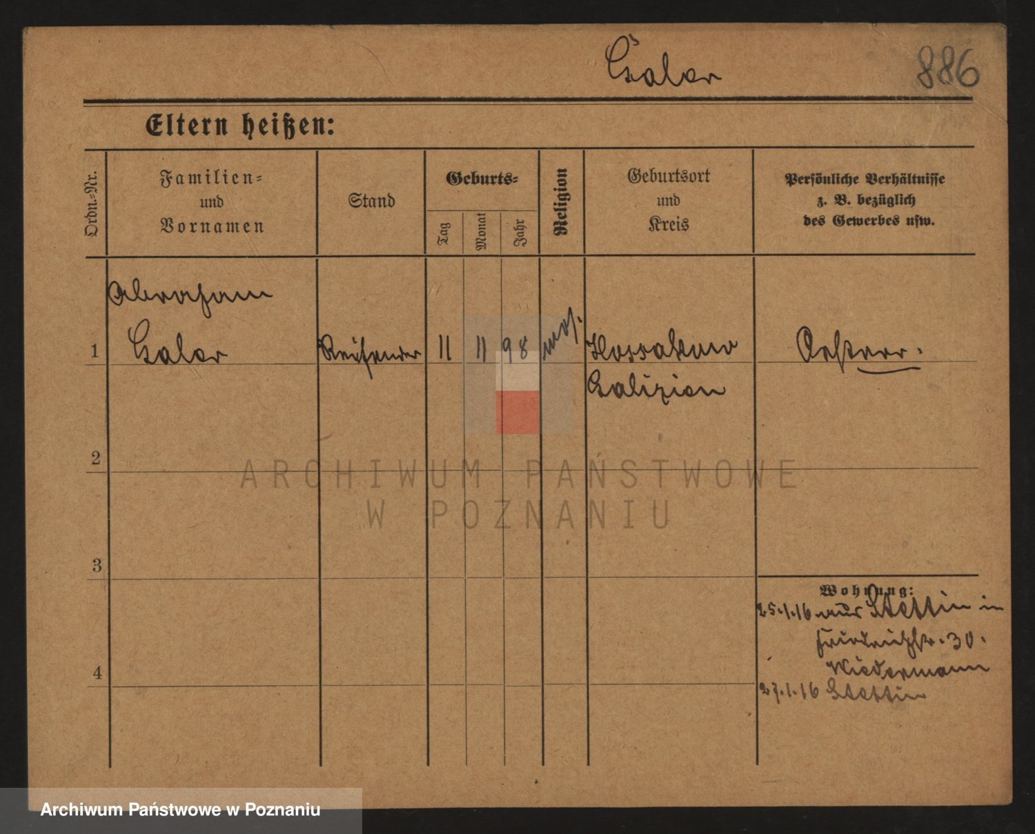 Podgląd karty osobowej dostępny jest po kliknięciu na nazwisko lub ikonkę karty. Można dokonywać powiększenia (ikony na górze) lub przechodzić między kolejnymi skanami (strzałki po bokach).